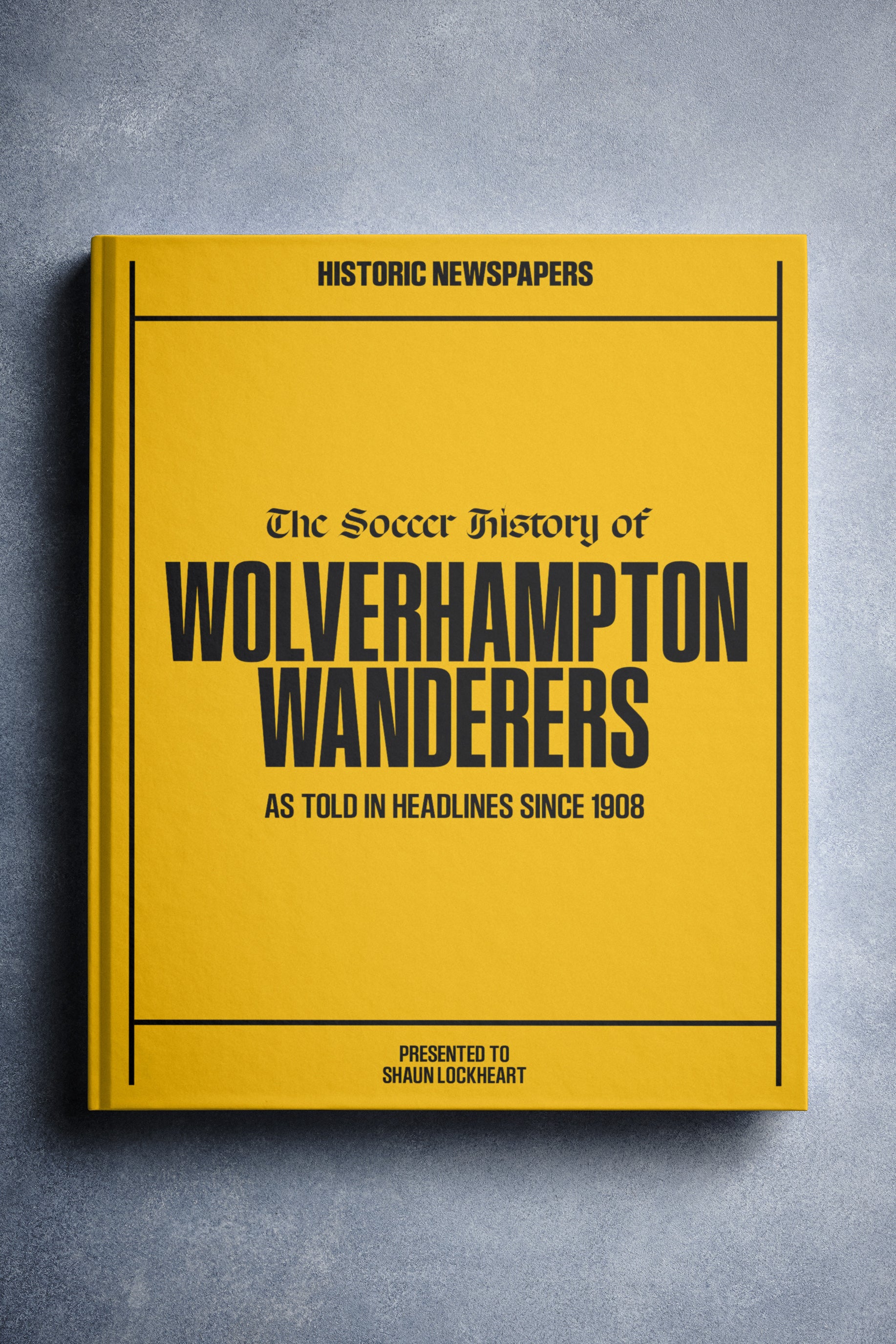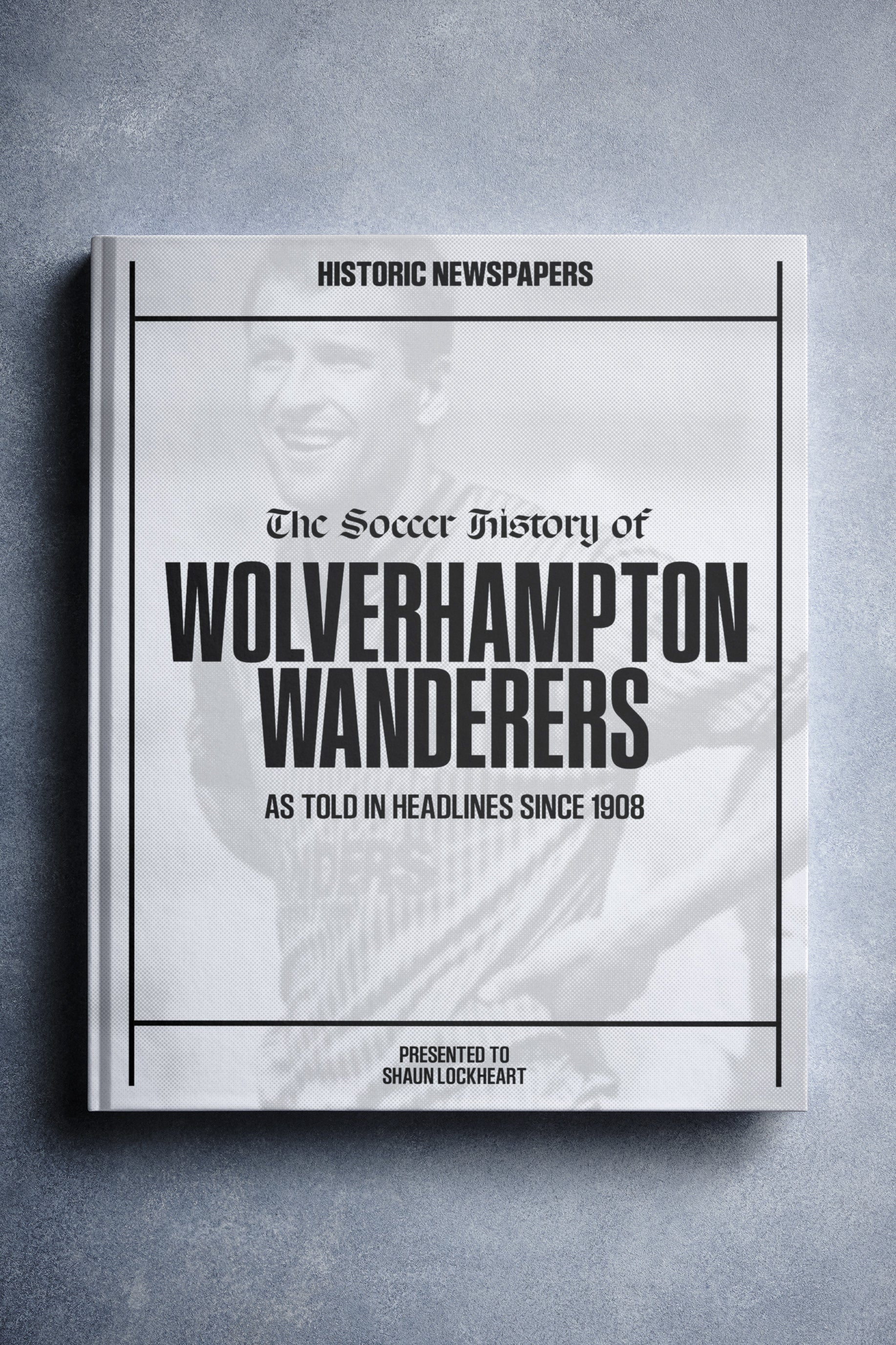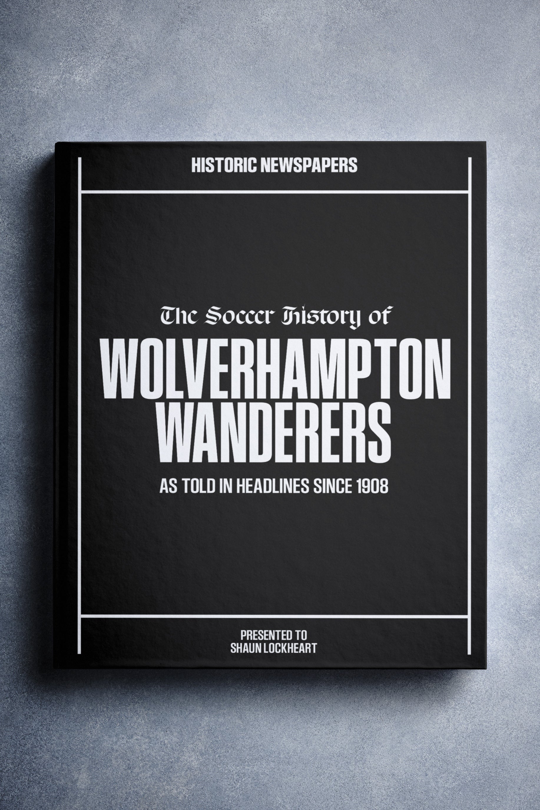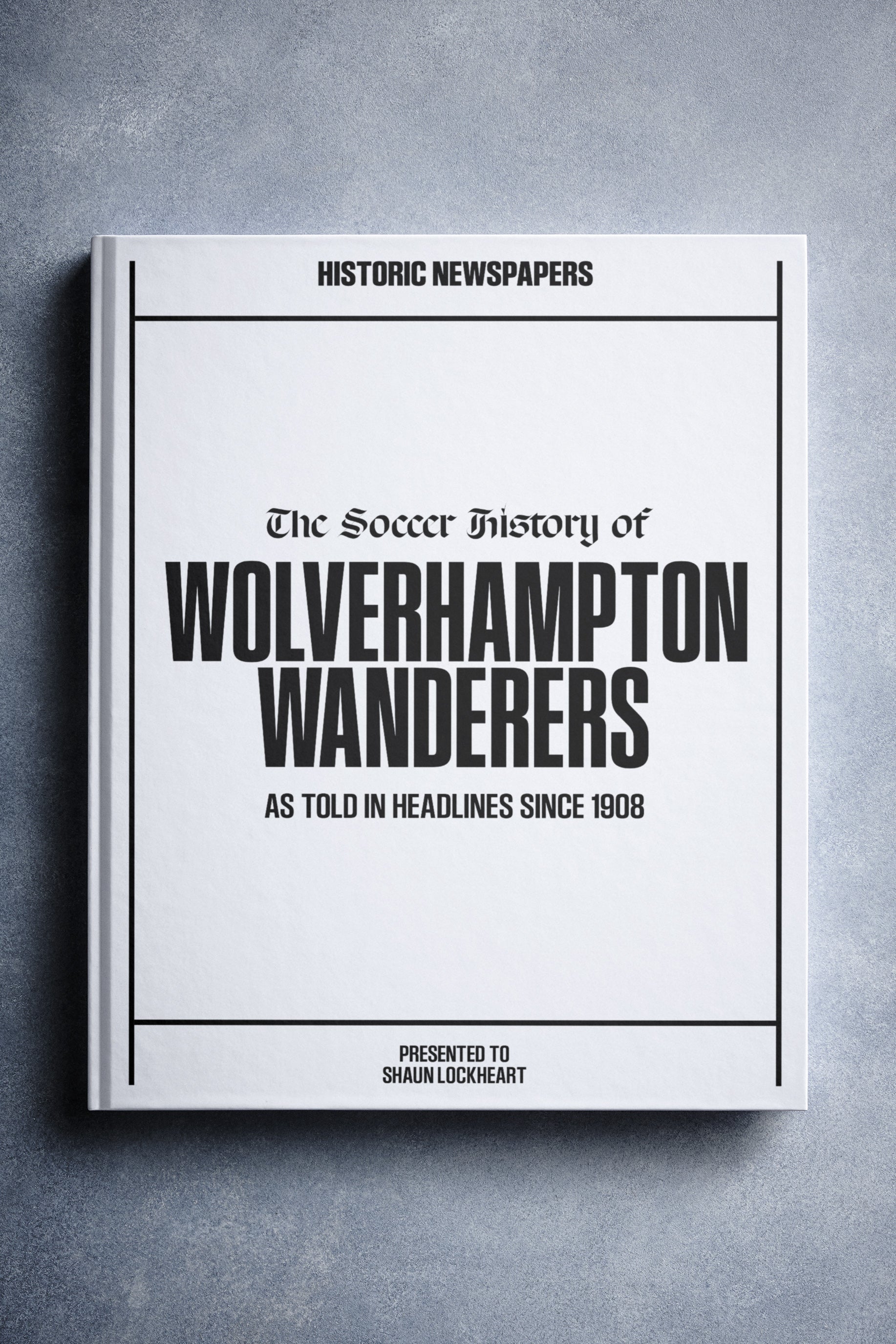 The personalized book features over 140 pages of authentic newspaper football reports about Wolverhampton Wanderers, from 1908 onwards.It comes with a choice of covers and the option to have the recipient’s name printed on the cover for free.