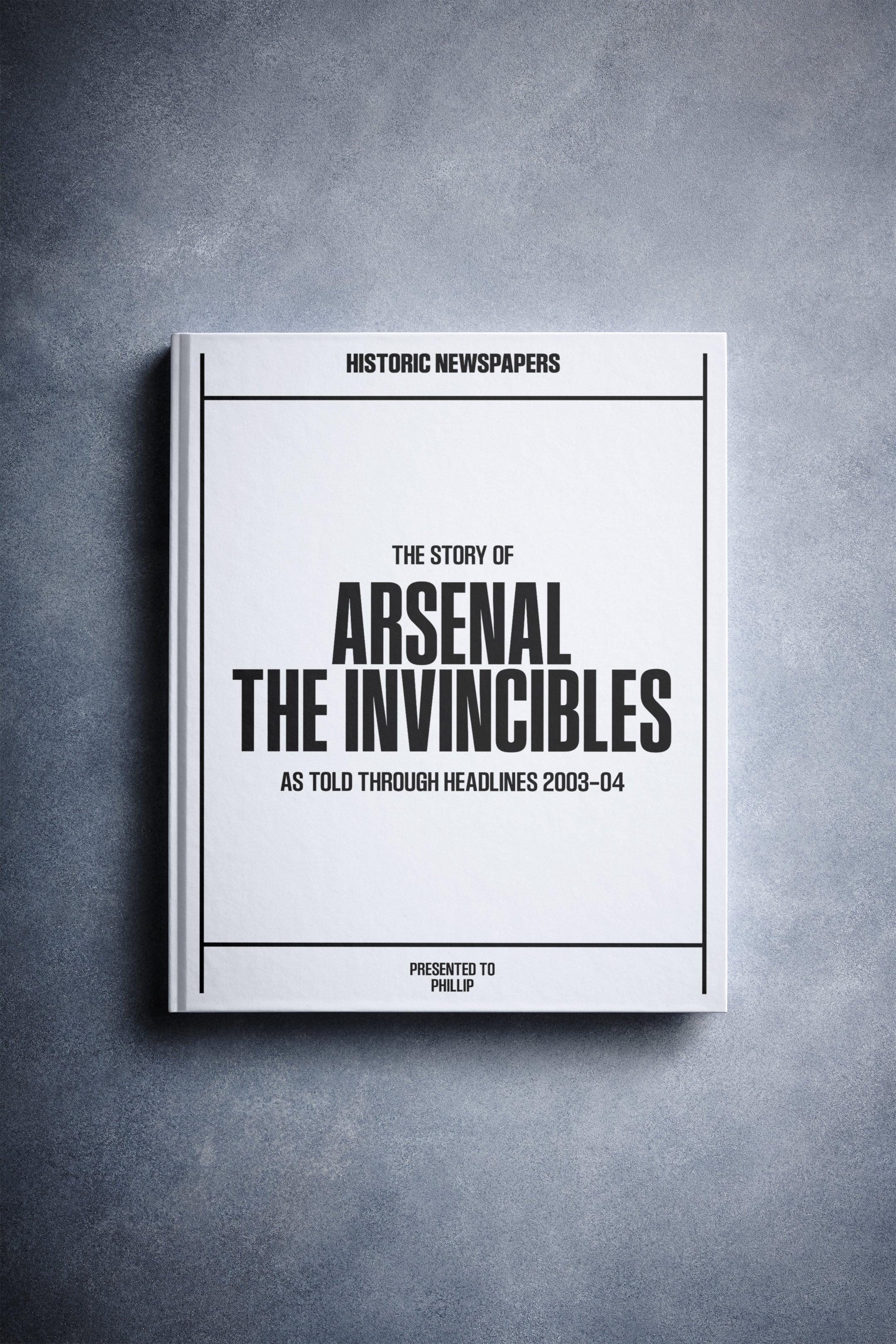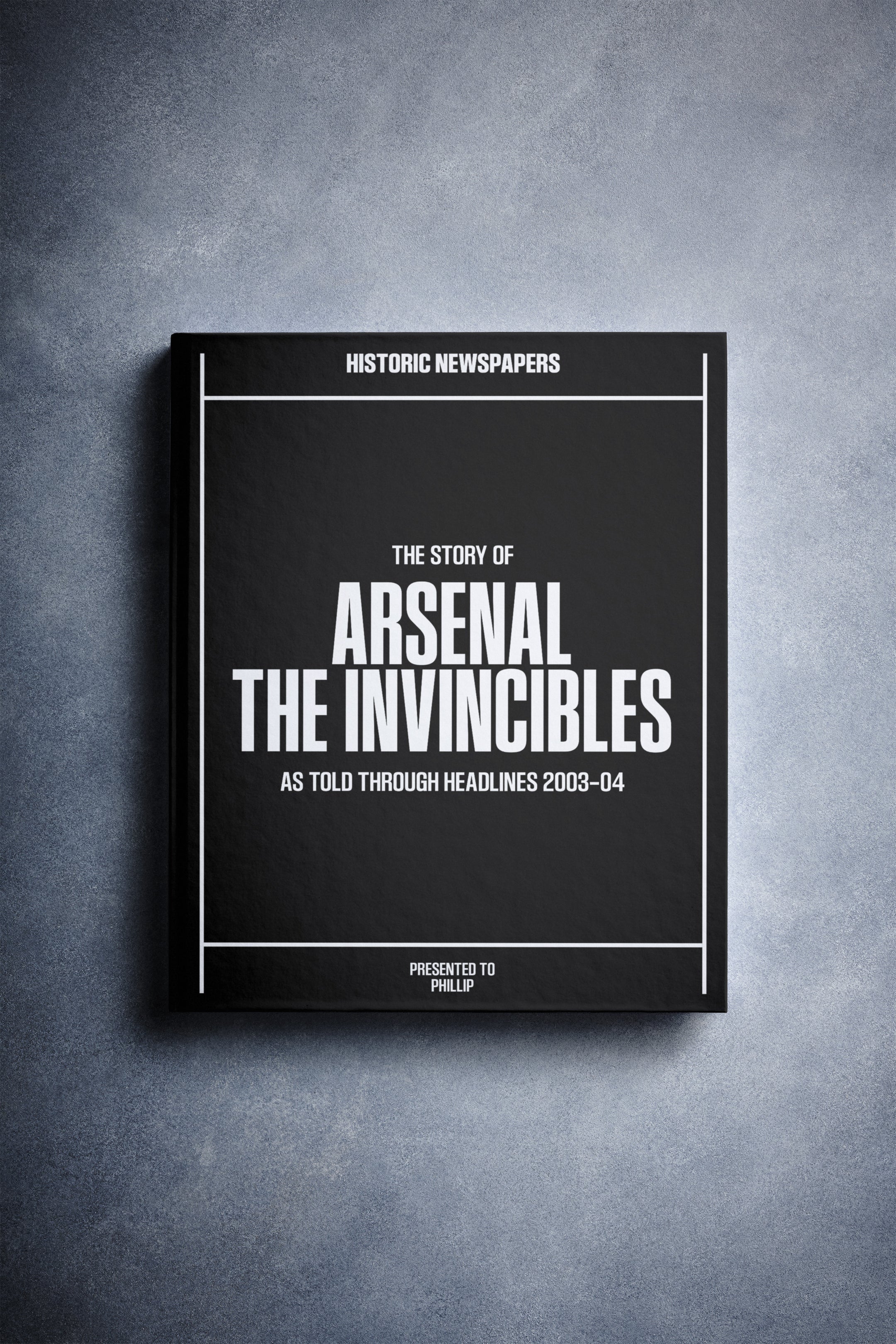FOLLOW the story of Arsenal's unbeaten 2003/04 season, told through authentic newspaper reports. Revisit victories over Chelsea, Liverpool, and Newcastle, the title win at White Hart Lane, legends like Vieira, Ljungberg, Bergkamp, Henry and more. Choose a cover and personalize your book with a name and message to create a unique gift.