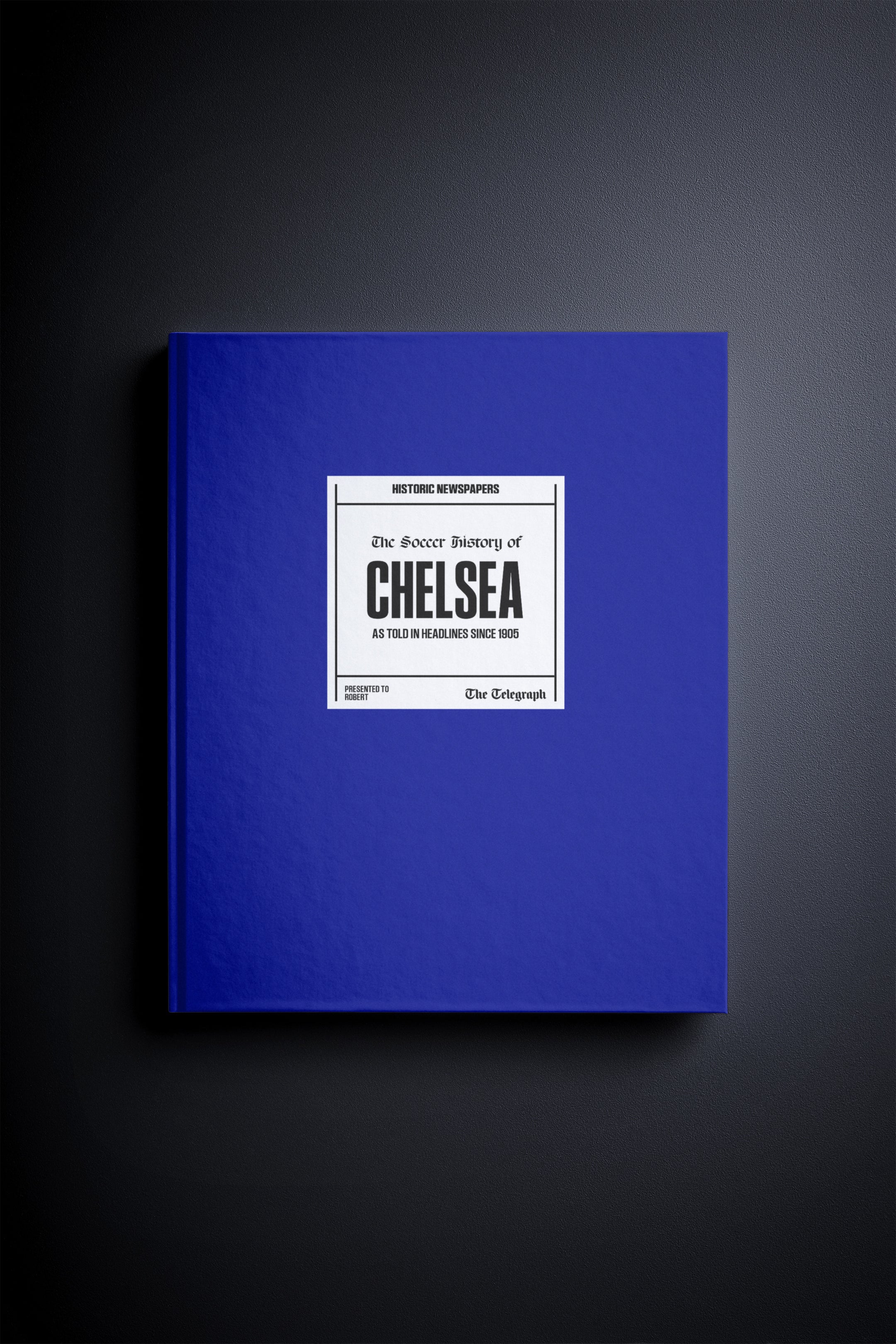 The personalized book features over 100 pages of authentic Telegraph newspaper football reports about Chelsea, from 1905 onwards. It comes with a choice of covers and the option to have the recipient’s name printed on the cover for free