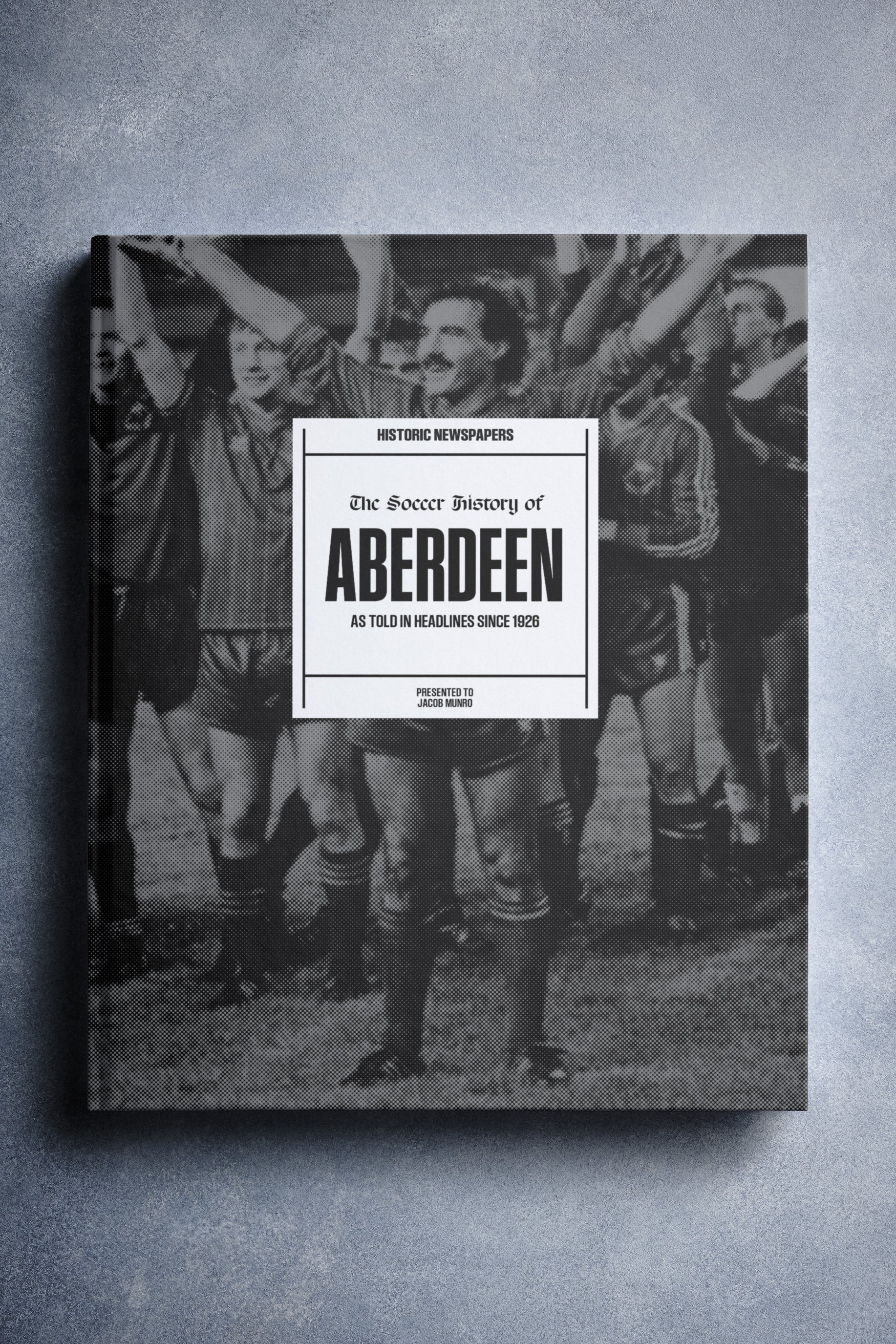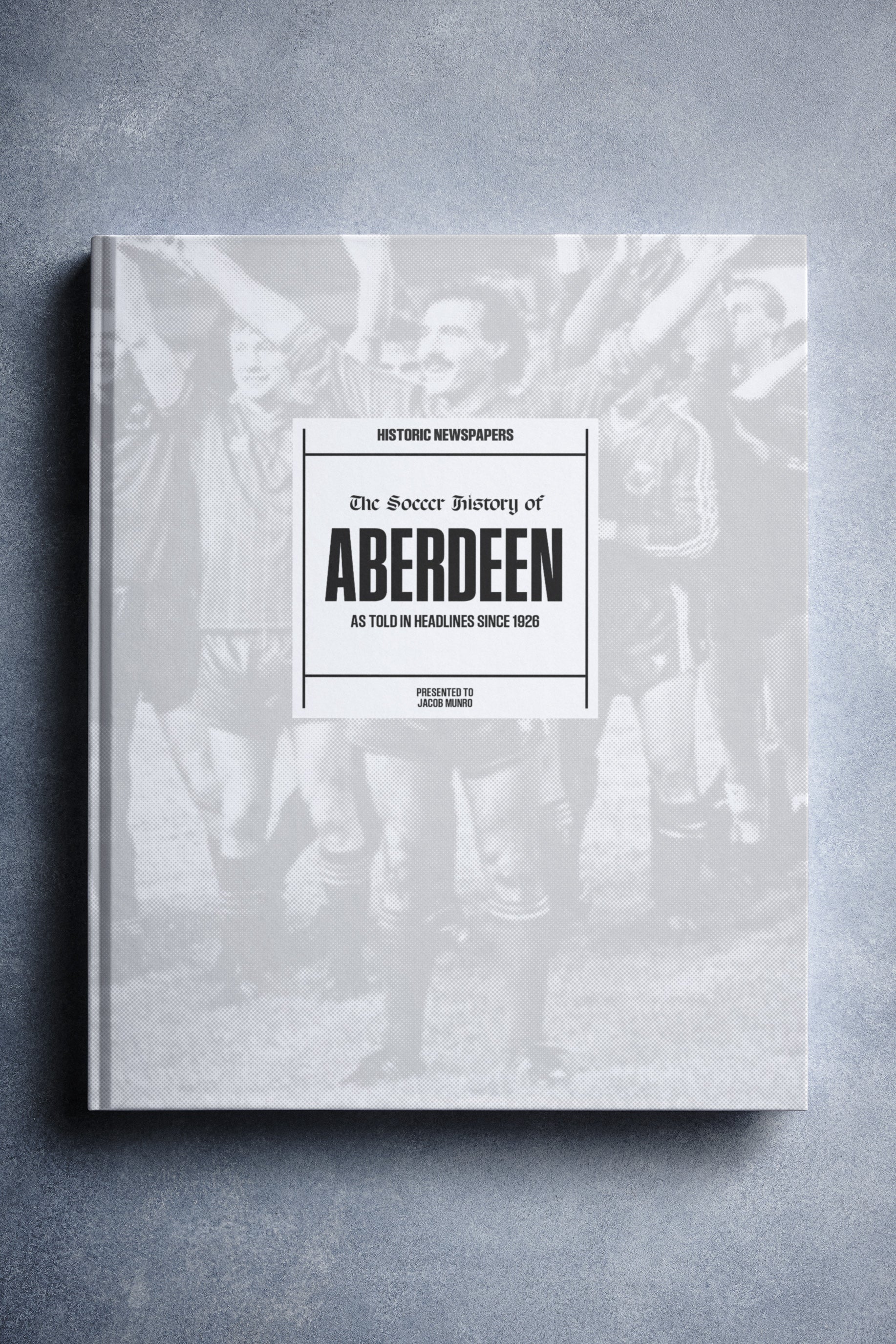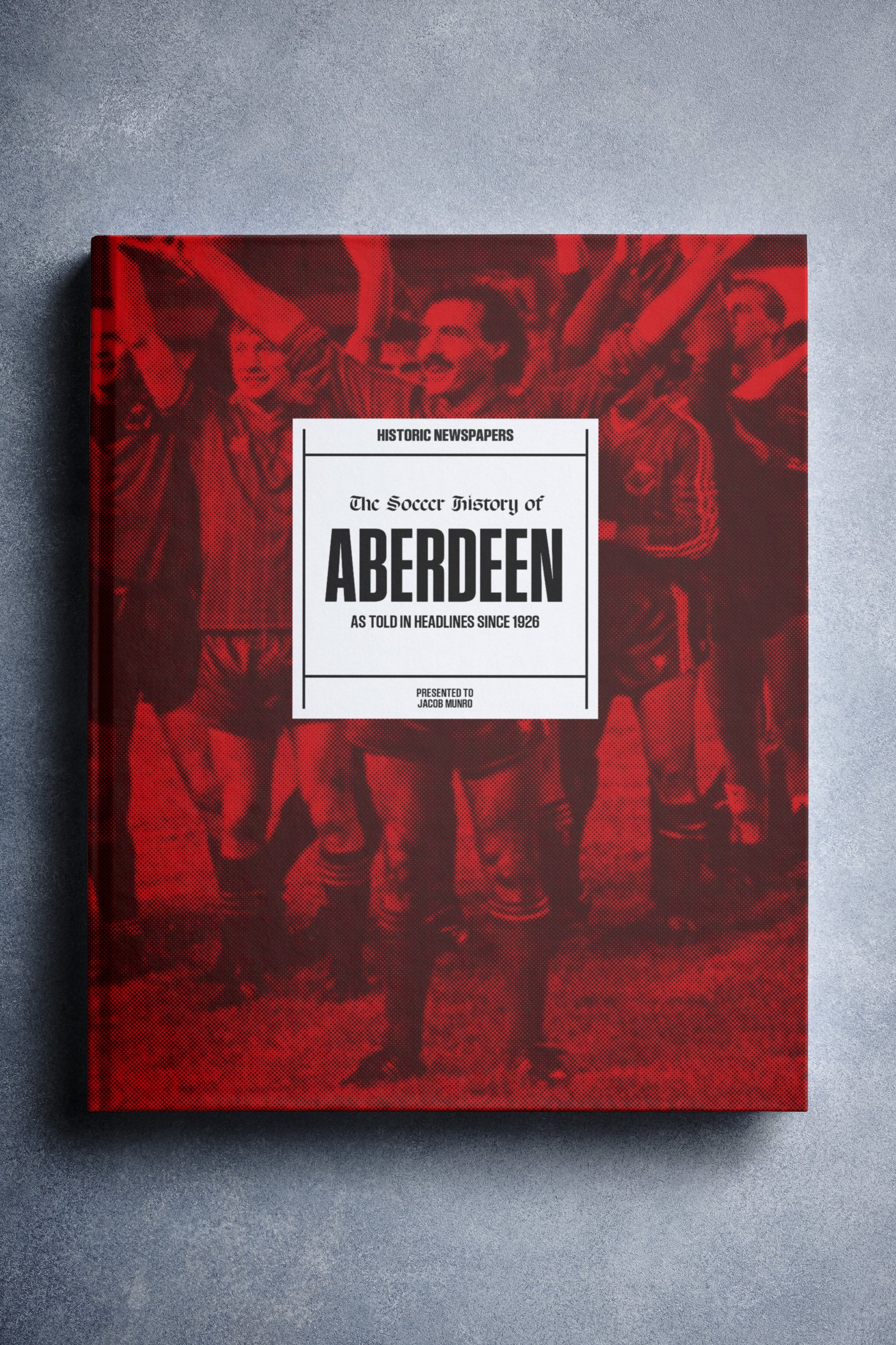 This coffee-table book features 140 pages of authentic newspaper reports about Aberdeen, charting their history from 1926 onwards. It comes with a choice of covers and the option to have the recipientโs name printed on the cover for free.
