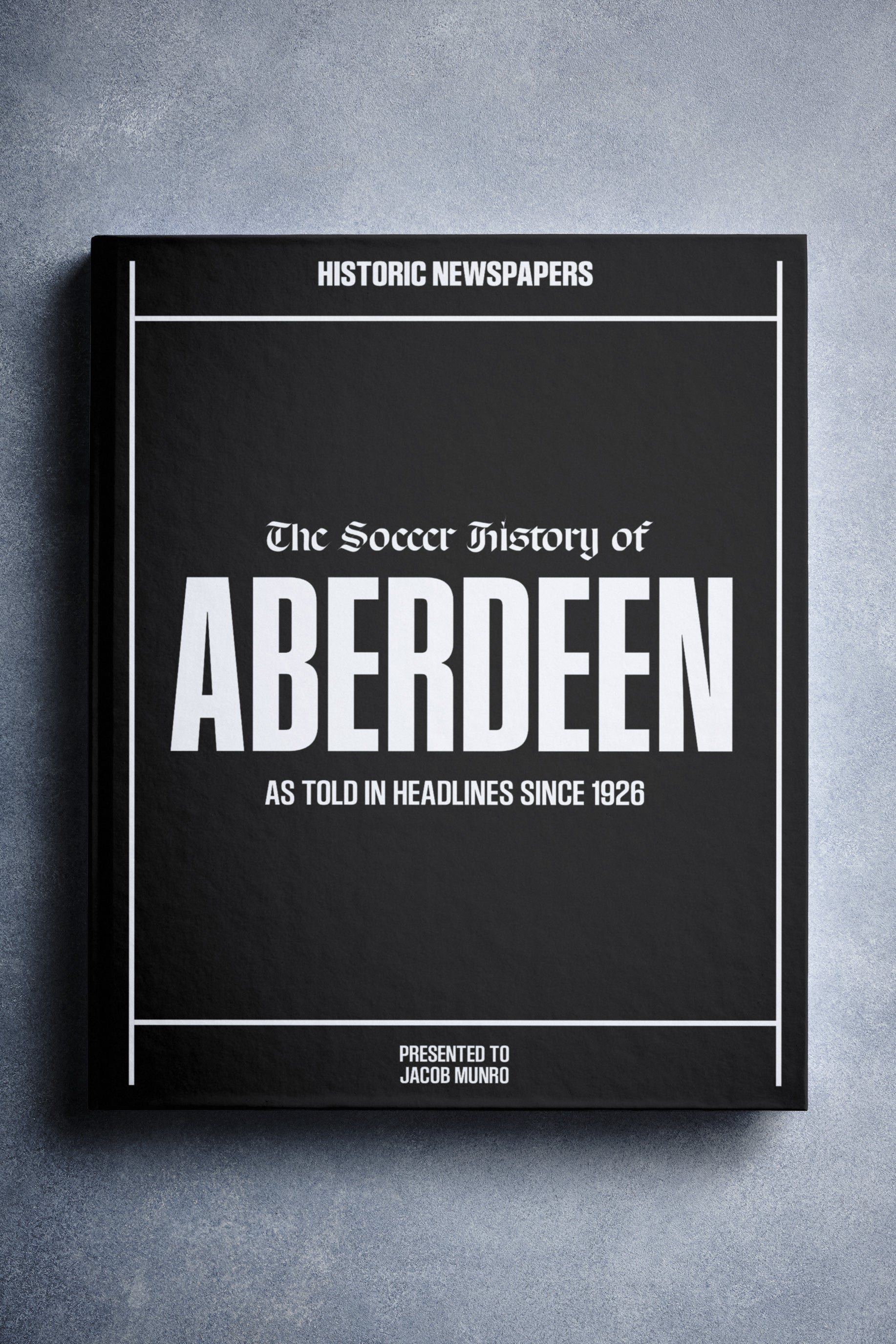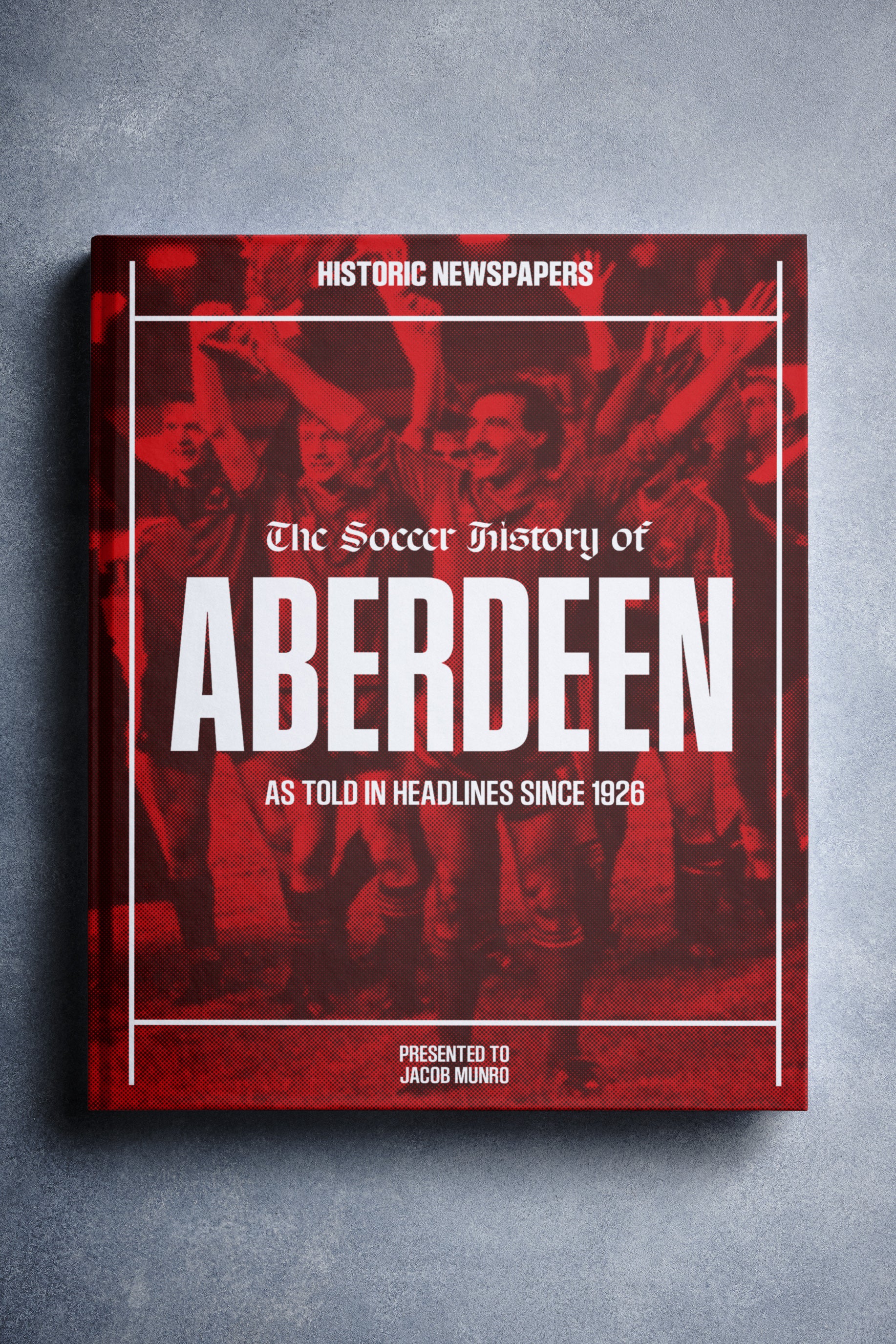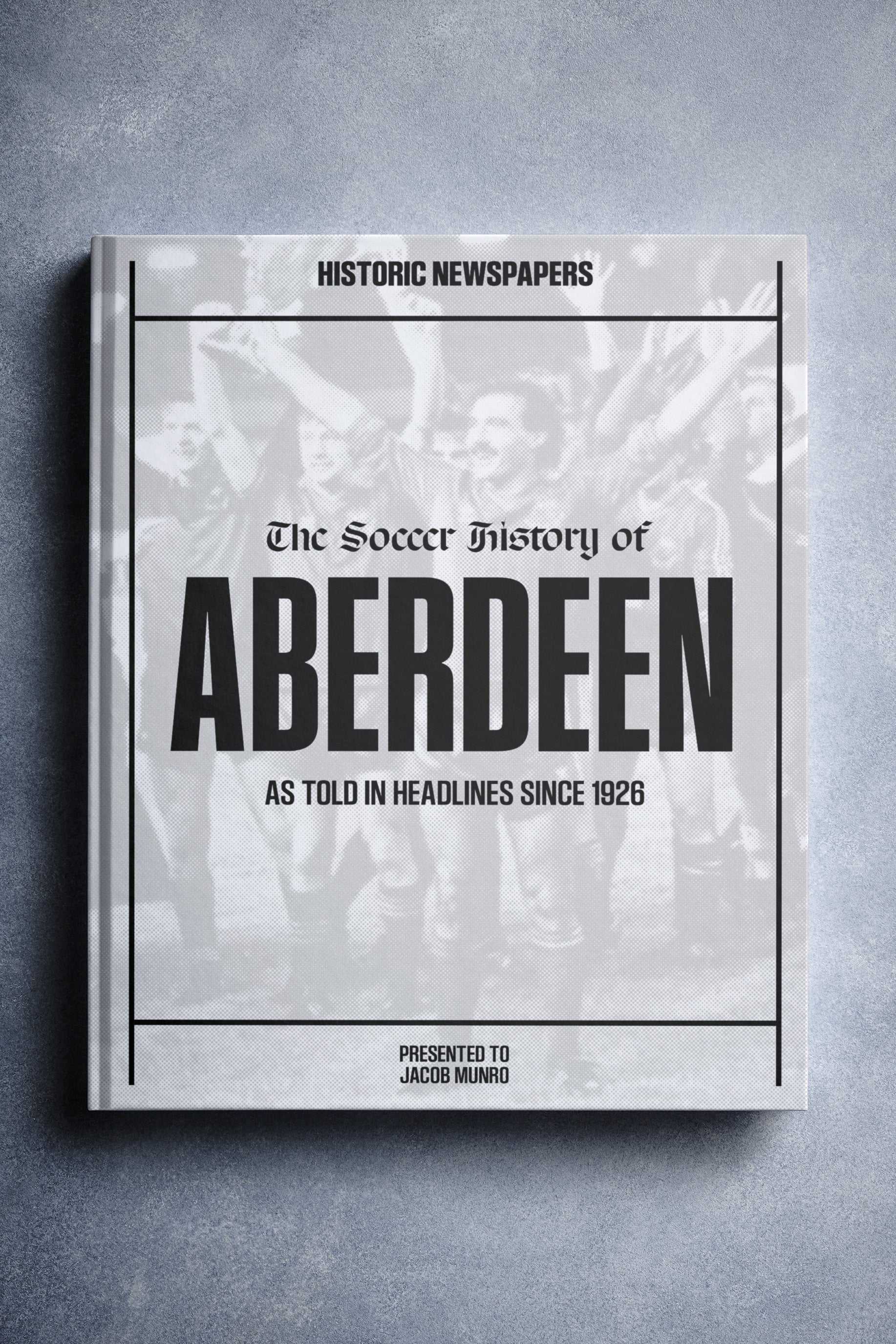 This coffee-table book features 140 pages of authentic newspaper reports about Aberdeen, charting their history from 1926 onwards. It comes with a choice of covers and the option to have the recipientโs name printed on the cover for free.