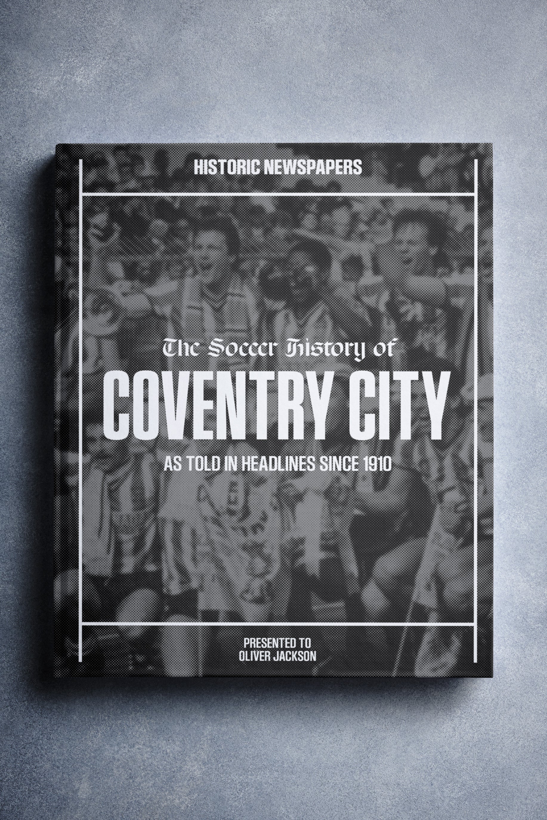 The personalized book features over 140 pages of authentic newspaper football reports about Coventry City, from 1910 onwards.It comes with a choice of covers and the option to have the recipient’s name printed on the cover for free.