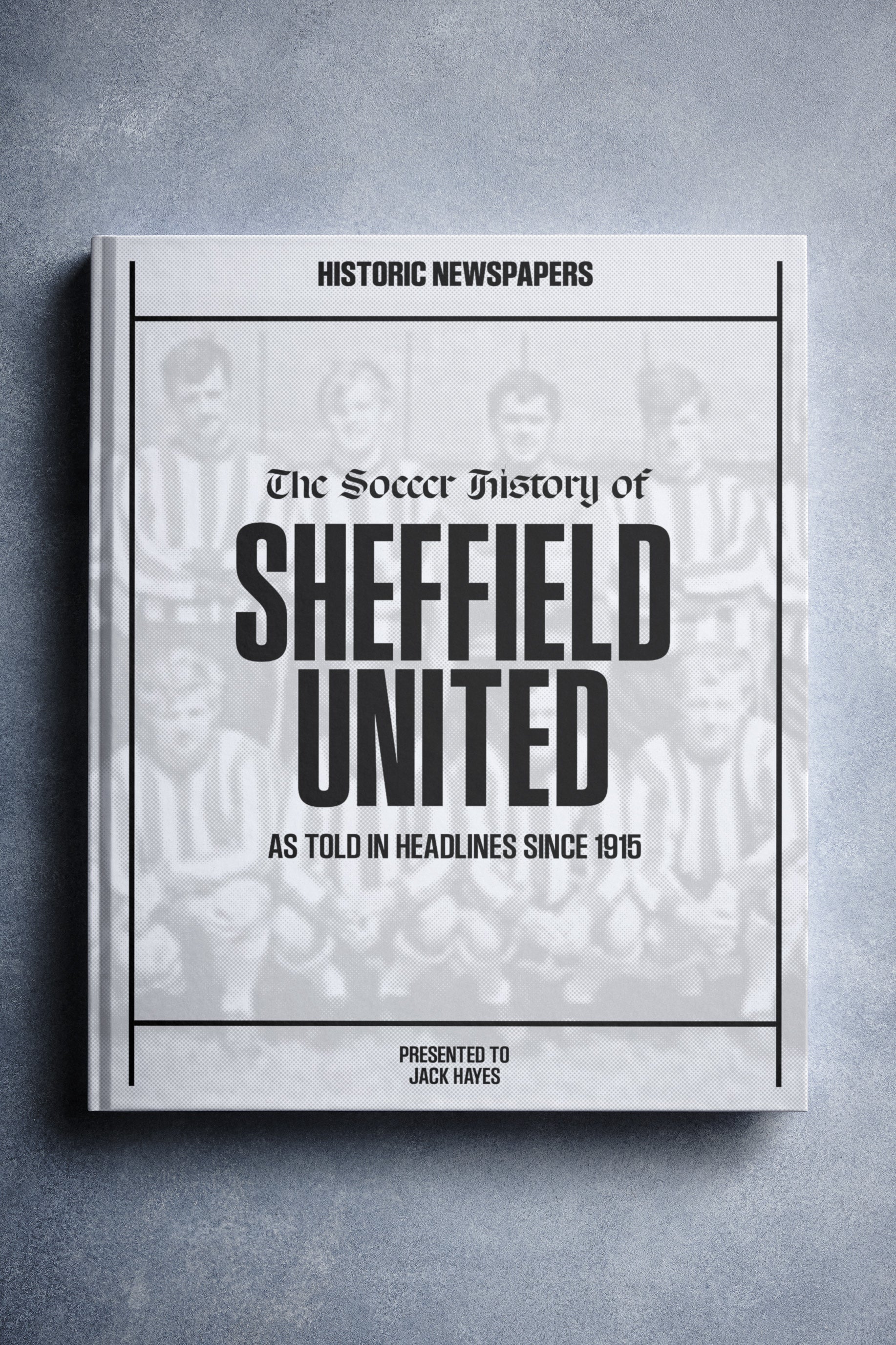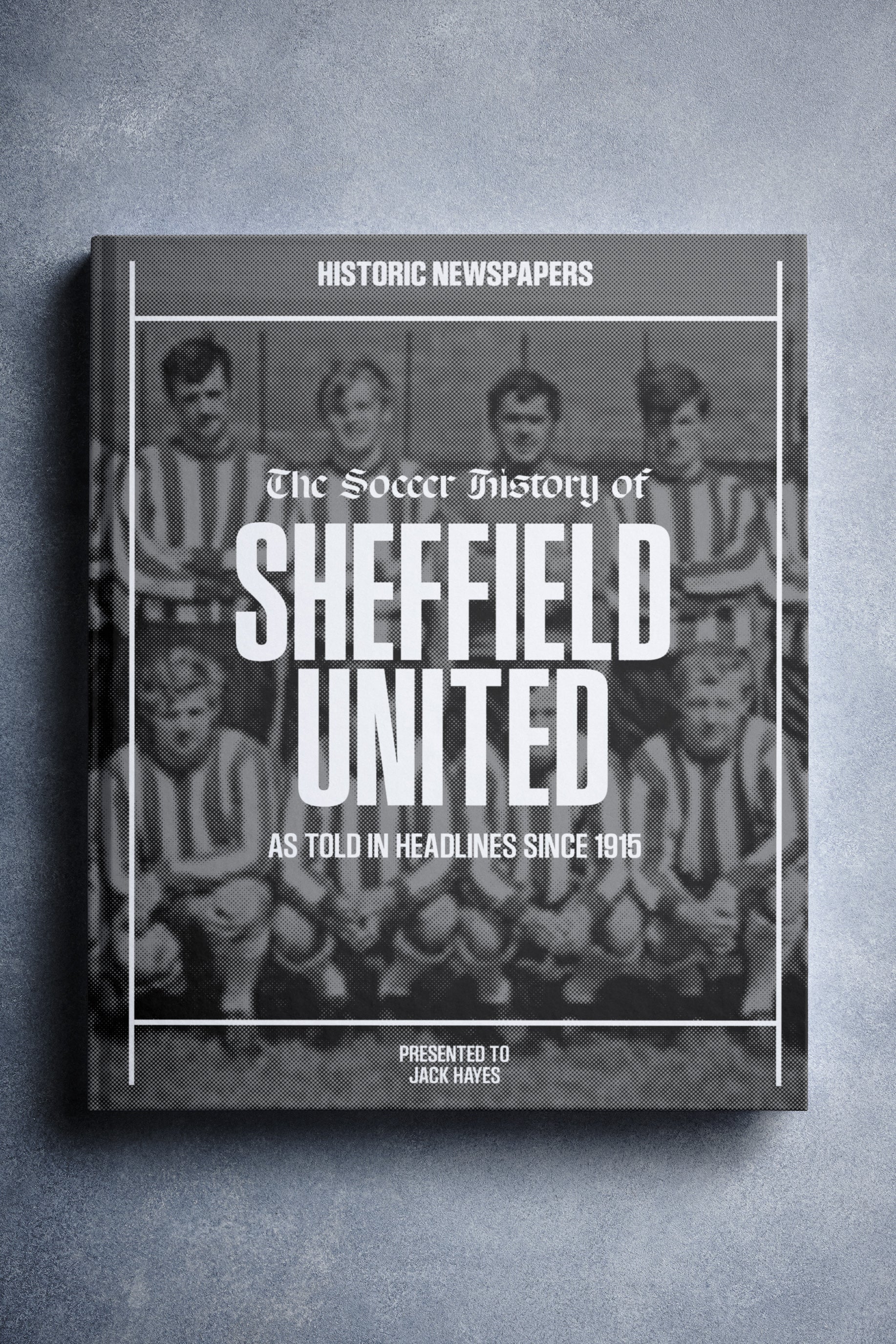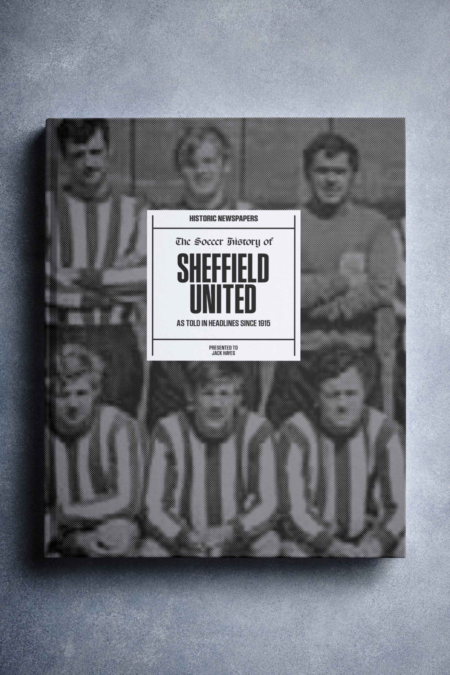 The personalized book features over 140 pages of authentic newspaper football reports about Sheffield United, from 1915 onwards.It comes with a choice of covers and the option to have the recipient’s name printed on the cover for free.