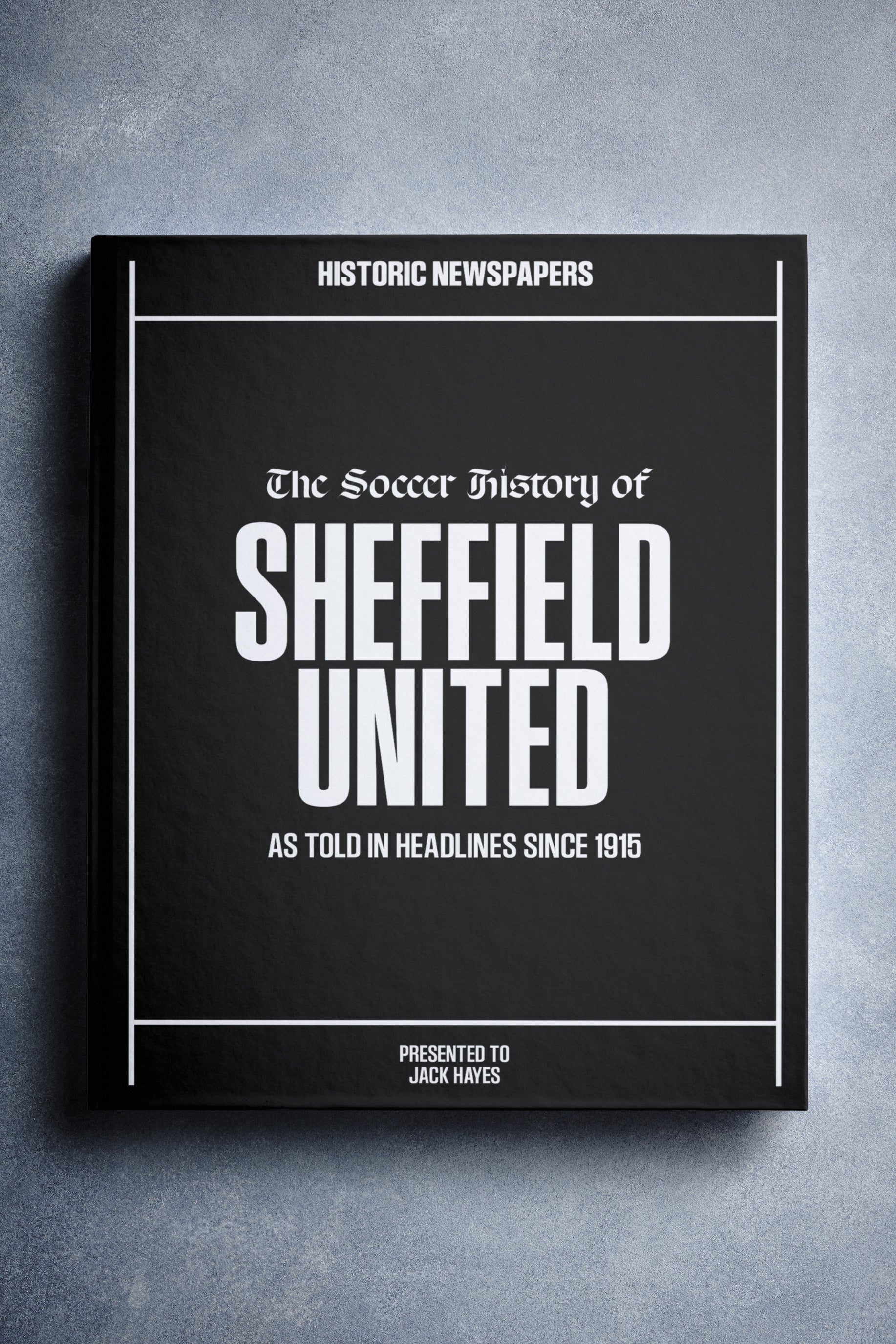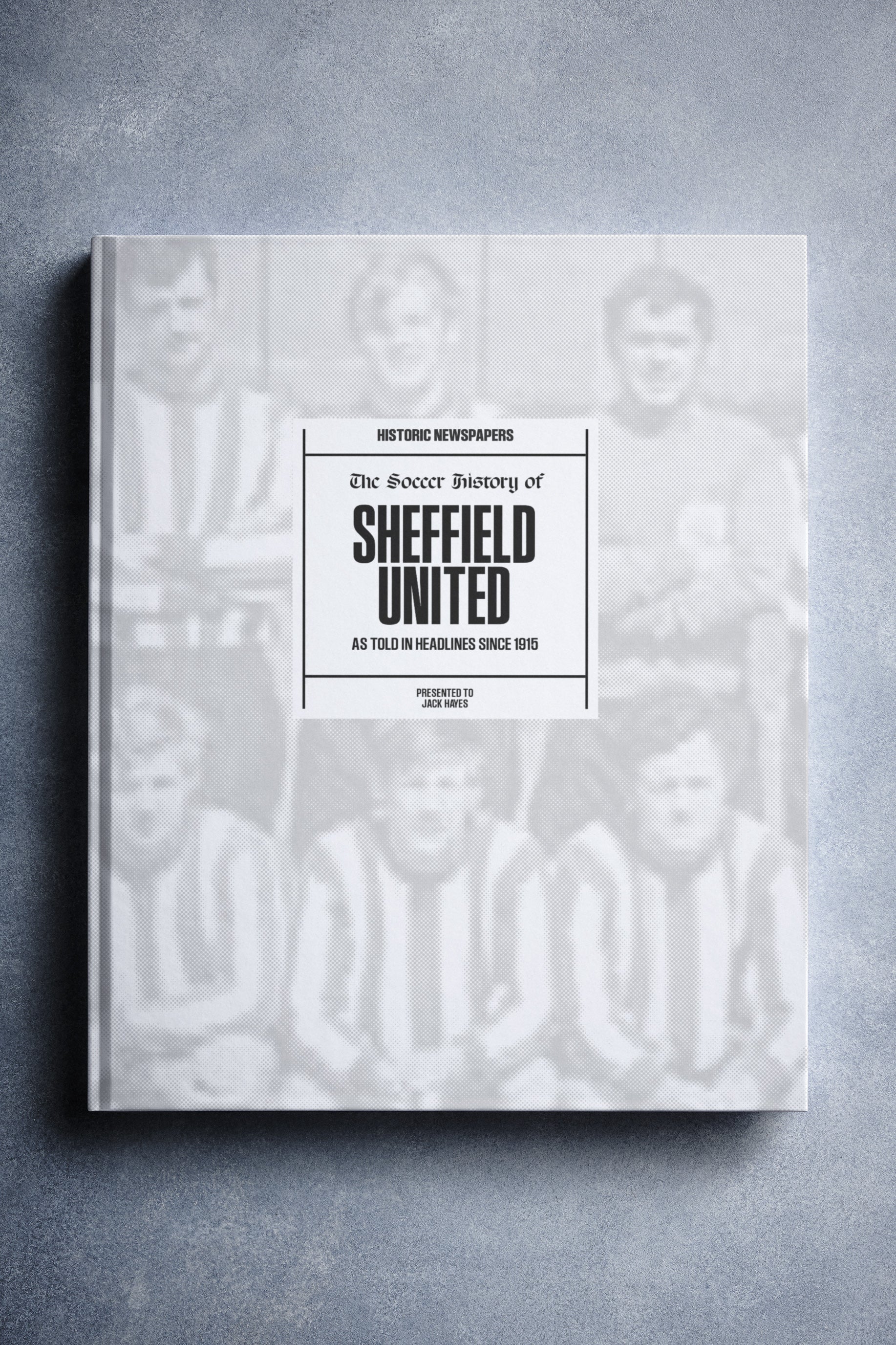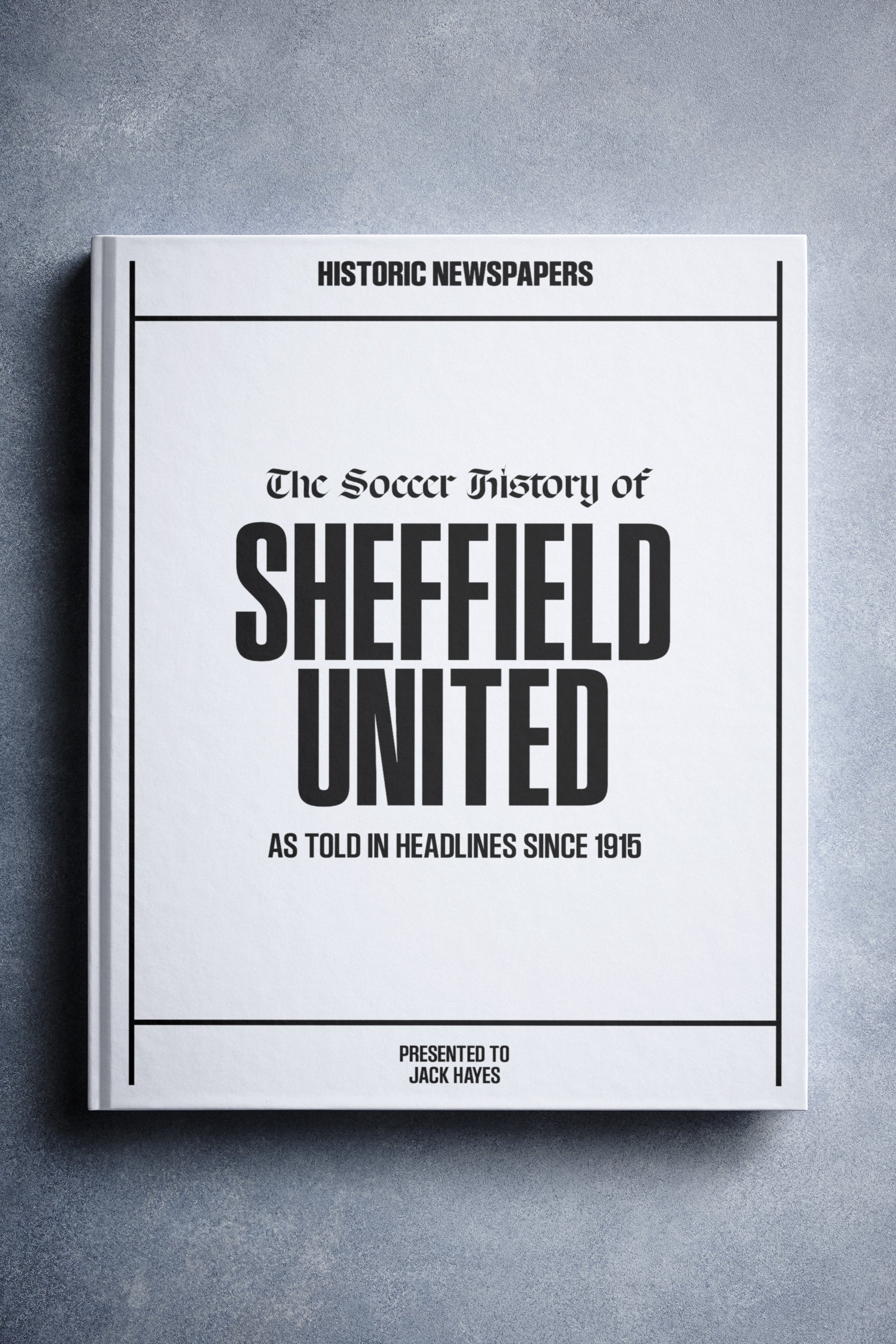 The personalized book features over 140 pages of authentic newspaper football reports about Sheffield United, from 1915 onwards.It comes with a choice of covers and the option to have the recipient’s name printed on the cover for free.