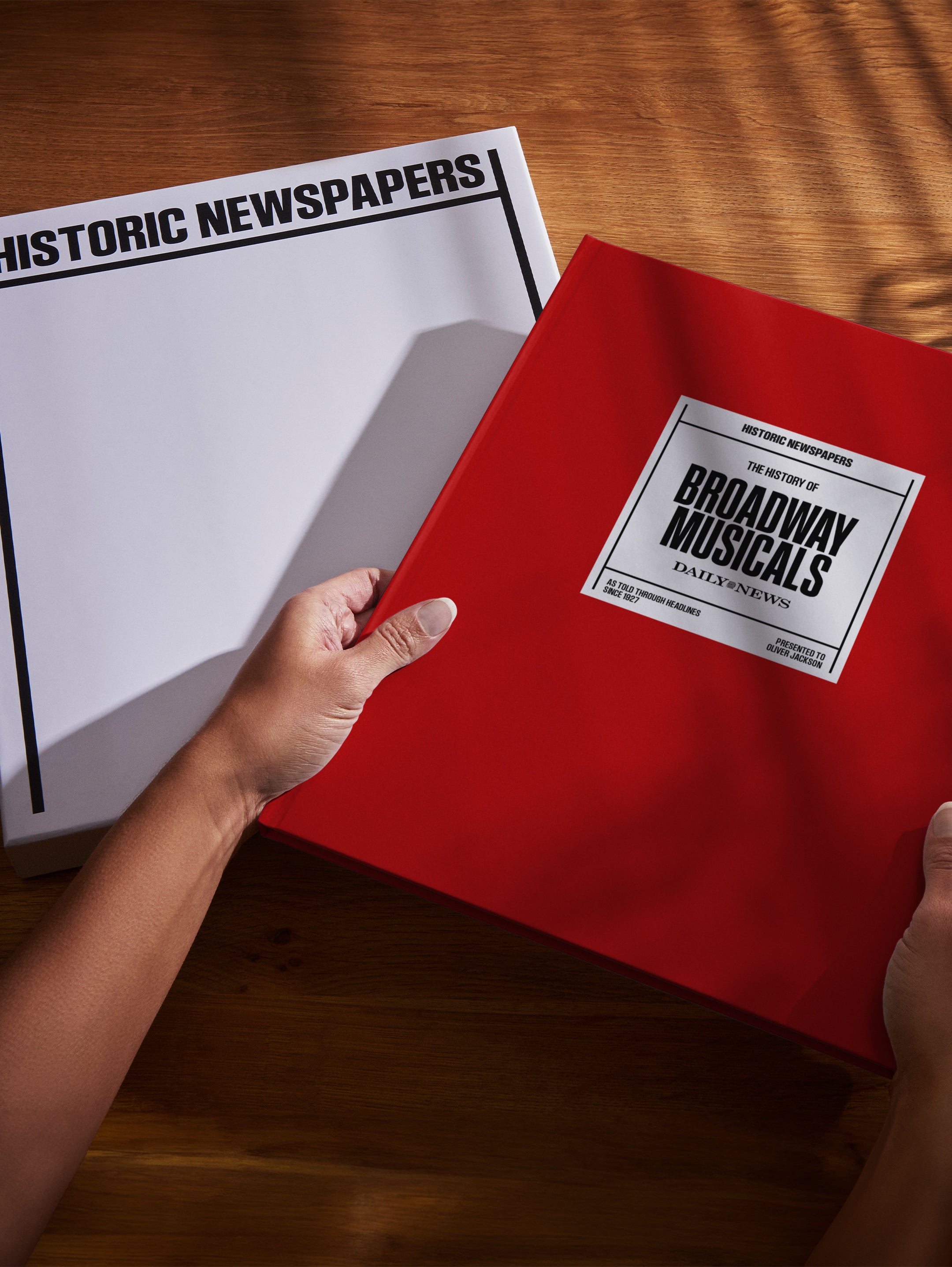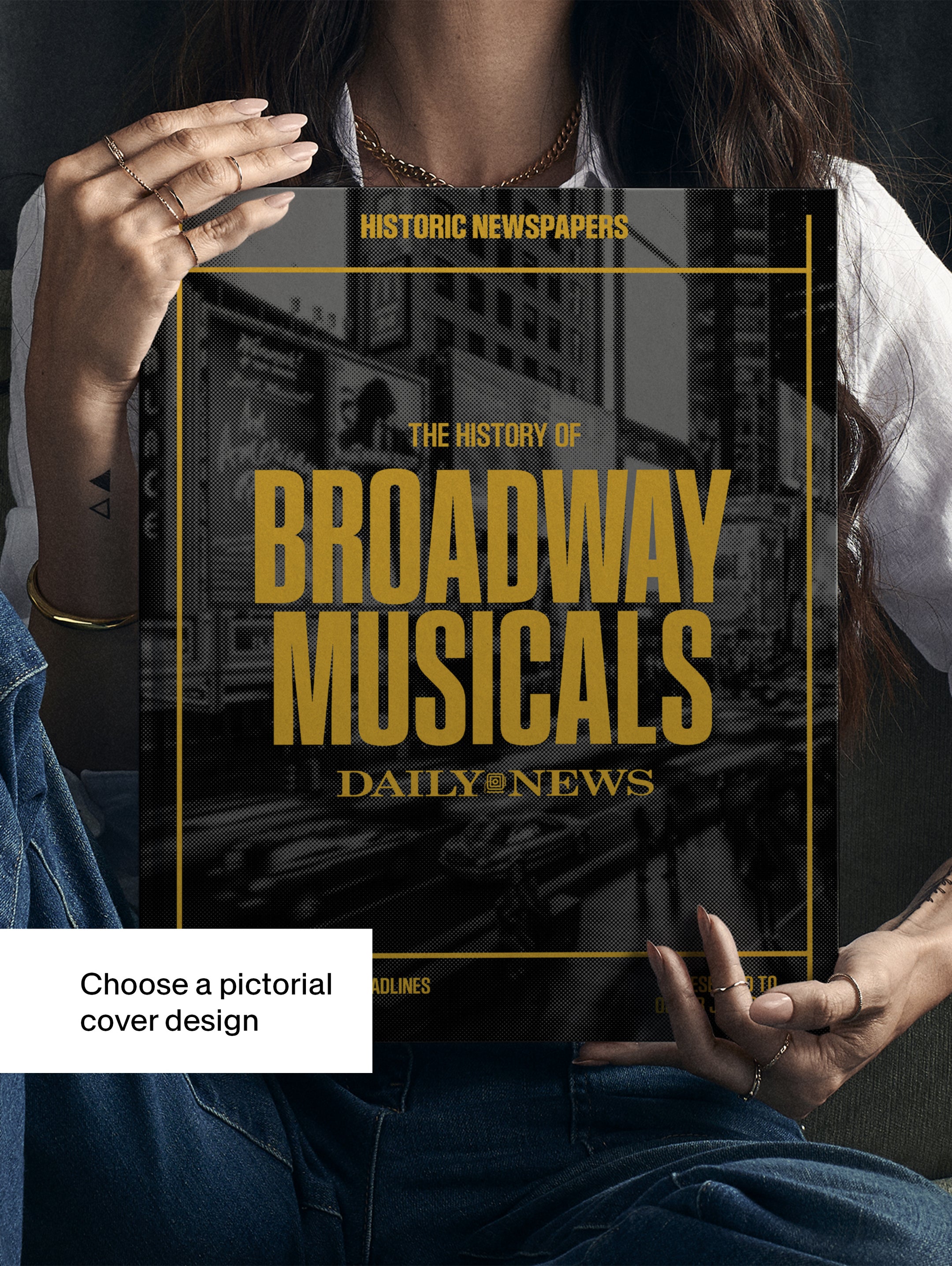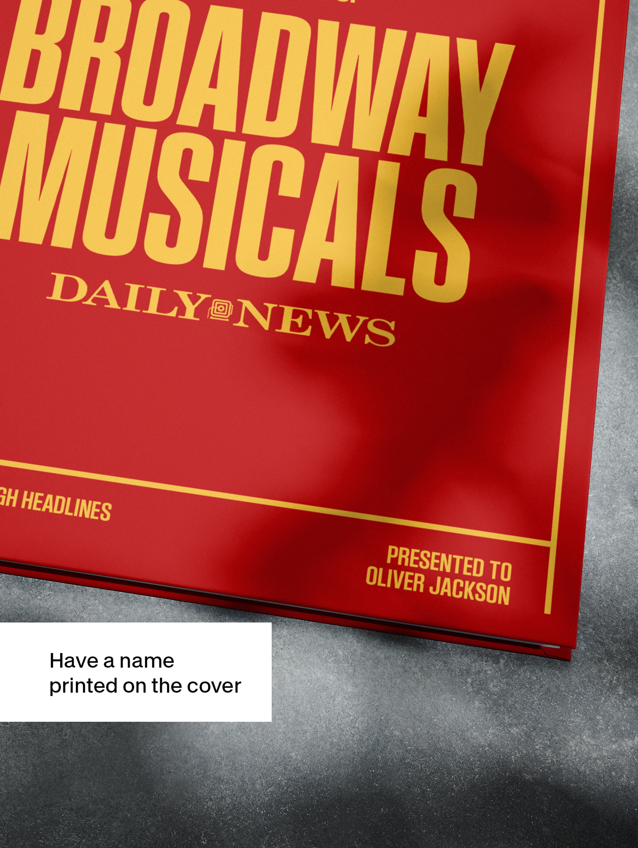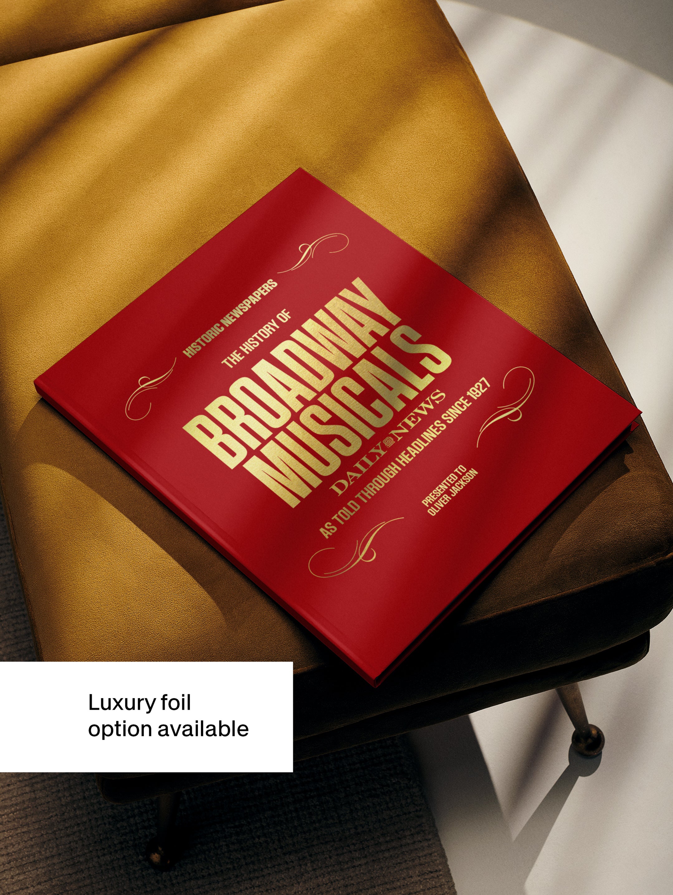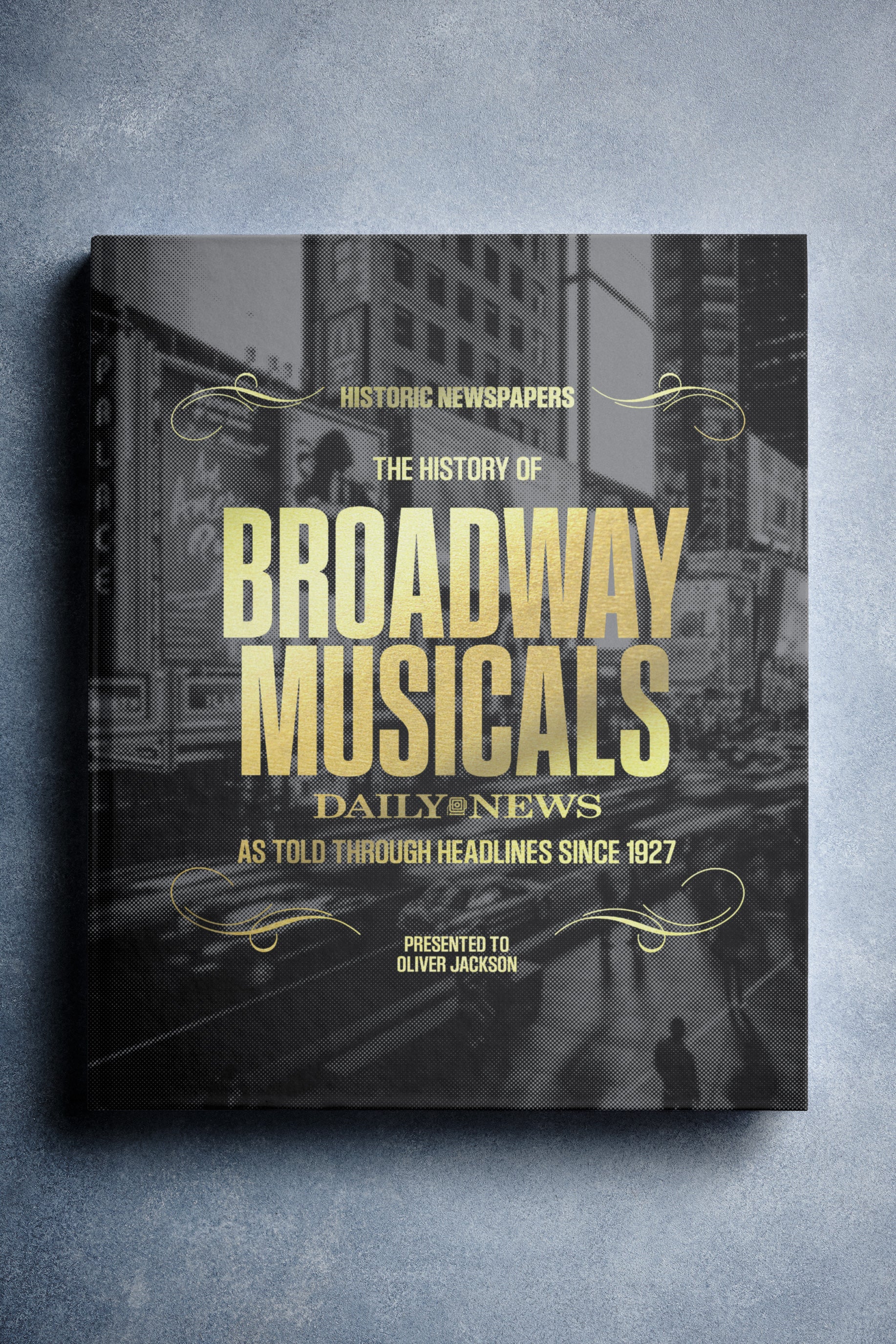 This coffee-table book features 180 pages of authentic New York Daily News newspaper reports about the History of Broadway Musicals. It comes with a choice of covers and the option to have the recipient’s name printed on the cover for free.