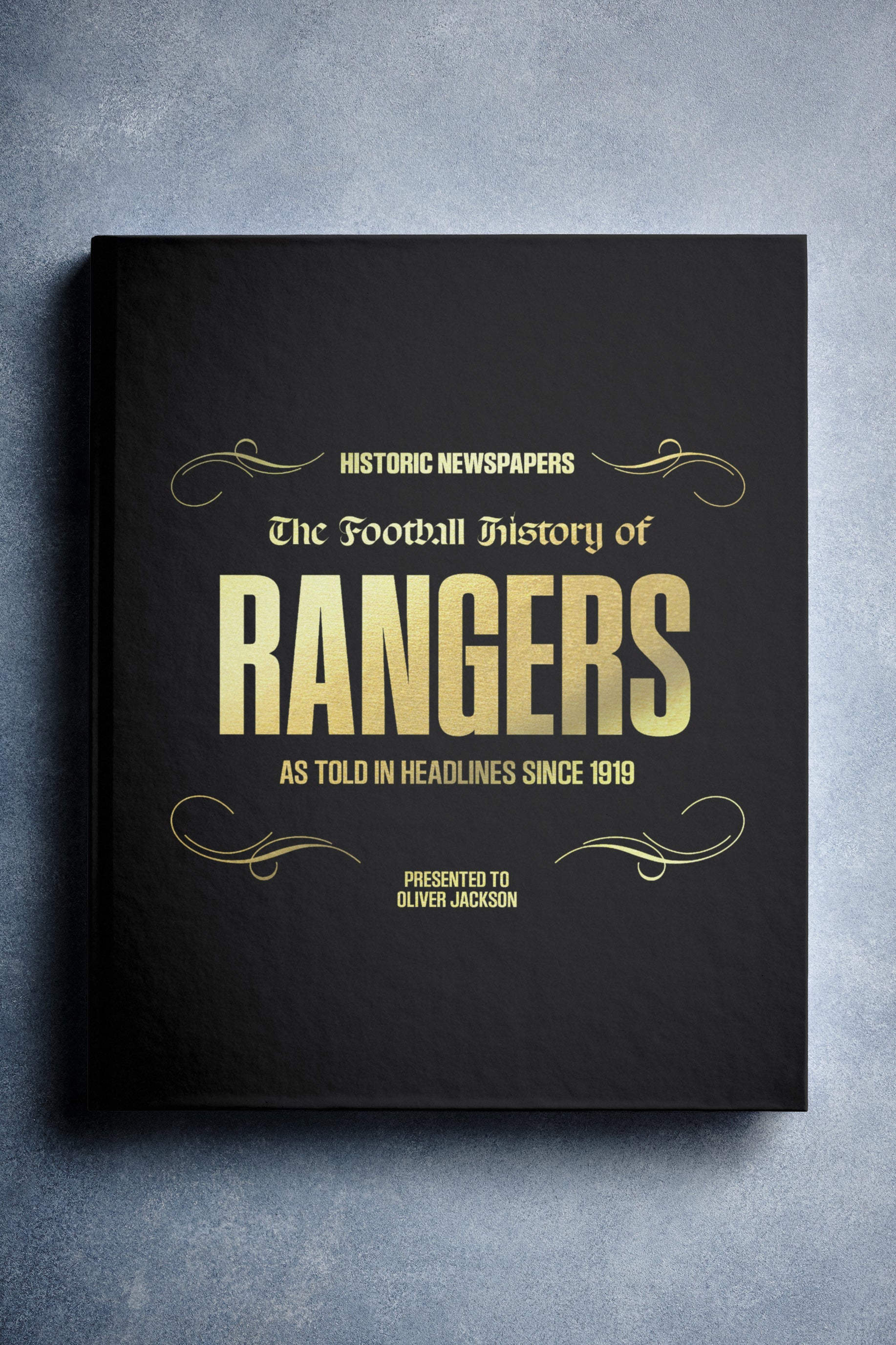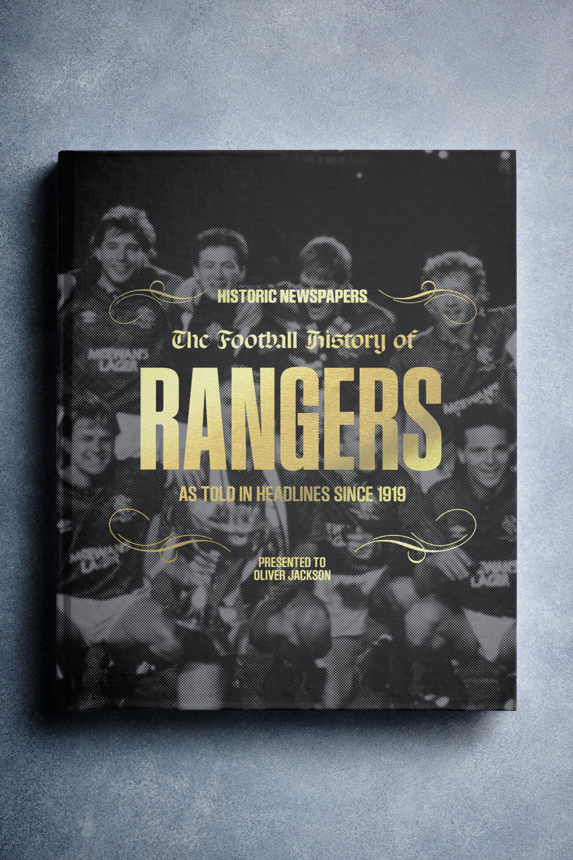 FOLLOW the story of Rangers Football Club from 1919 onwards, told through original newspaper reports. Relive defining moments — from lifting the European Cup Winners’ Cup with a victory over Dynamo Moscow in 1972, to the historic nine-in-a-row title victories, and the halting of Celtic’s bid for ten consecutive Premiership titles in 2021. Choose from a range of book covers and personalize your book with a name and message to create a lasting keepsake. A piece of Gers history to gift, share, and relive.
