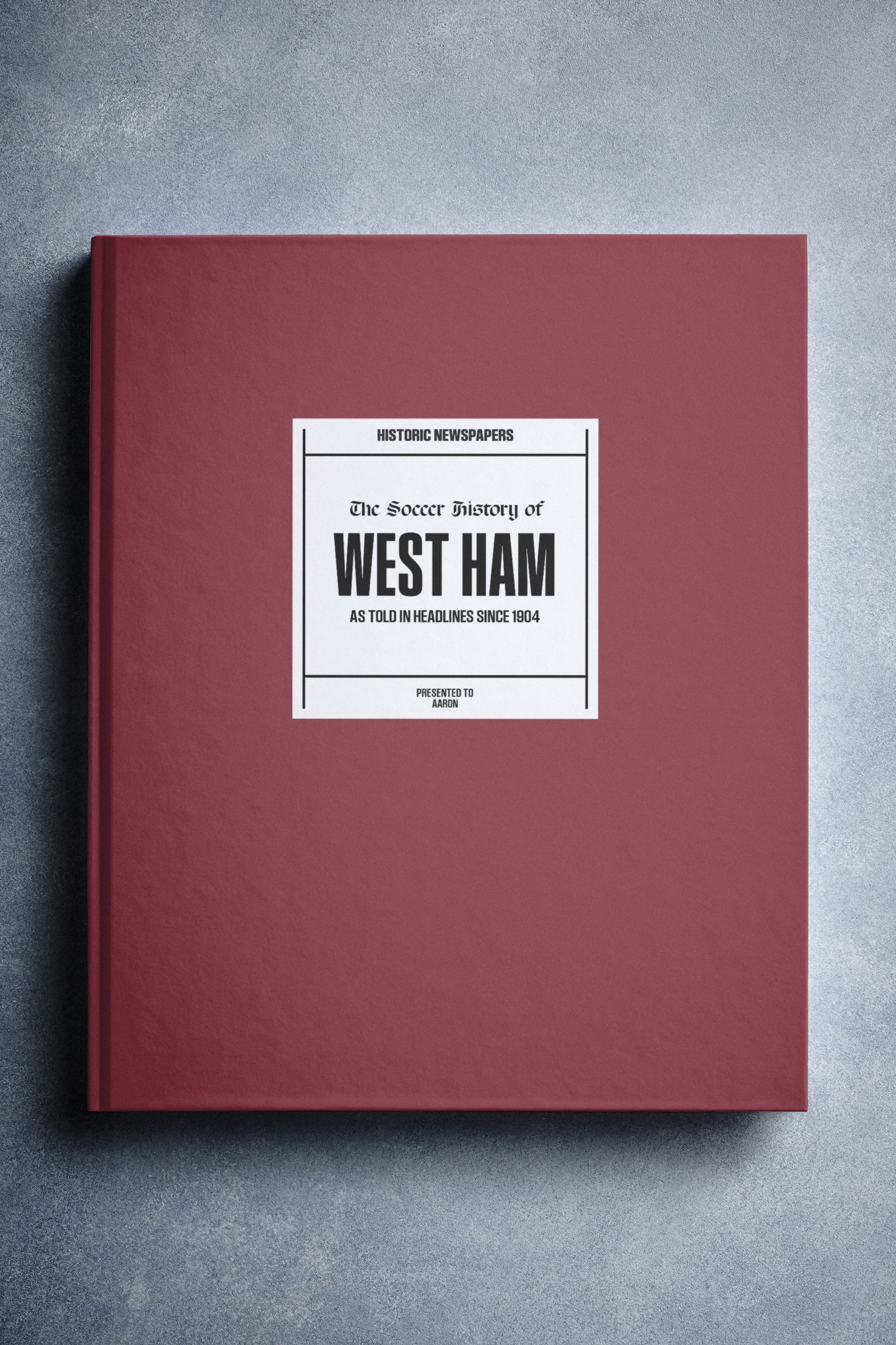 FOLLOW the story of West Ham Football Club from 1904 onwards, told through original newspaper reports. Relive defining moments — from lifting the FA Cup with a 1 – 0 victory over Arsenal in 1980, to the Boys of ’86 finishing third in the league, and the 2023 UEFA Conference League Final. Choose from a range of book covers and personalize your book with a name and message to create a lasting keepsake. A piece of Hammers history to gift, share, and relive.