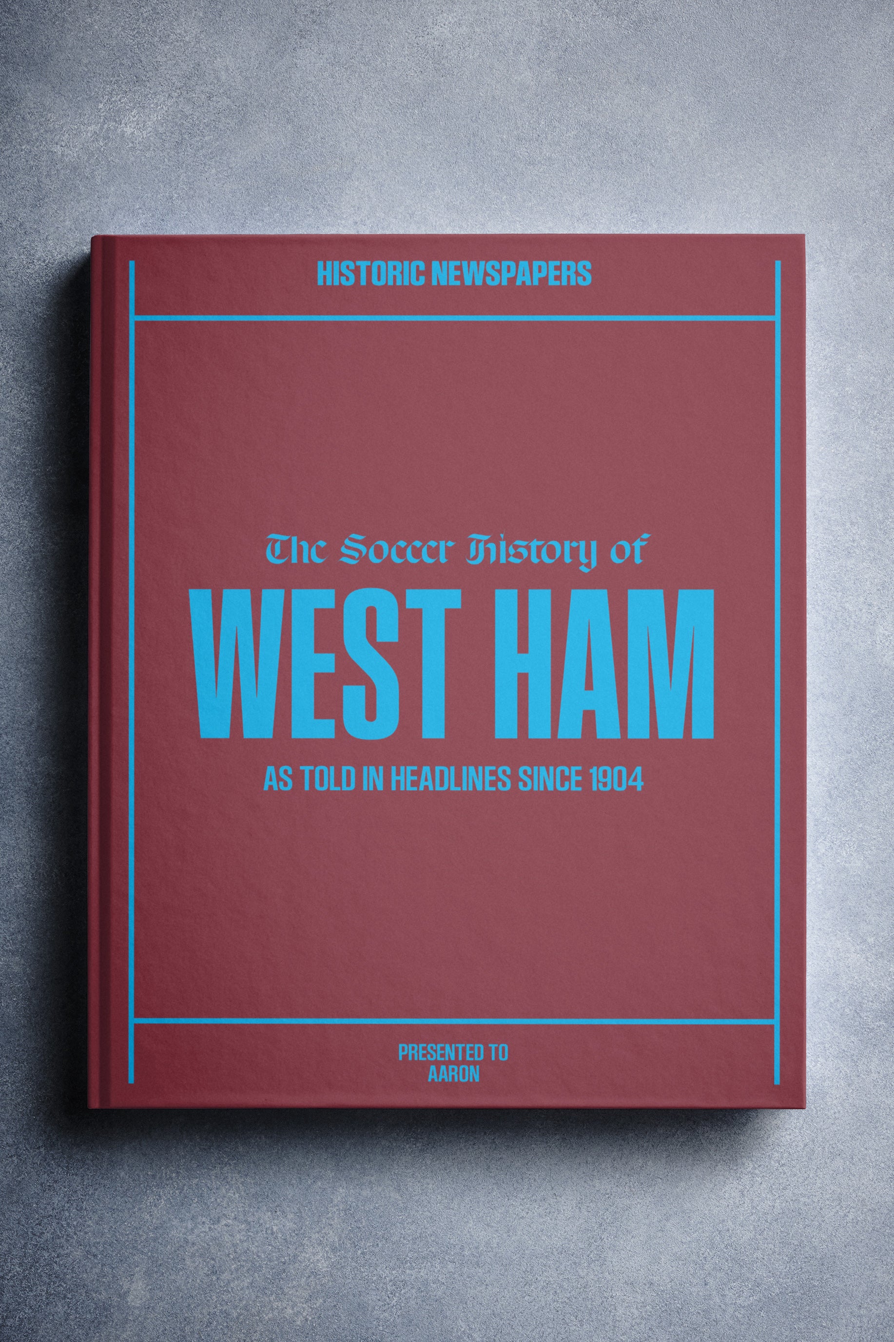 Choose from a range of book covers and personalize your copy with a name and message to create a unique keepsake. Whether for a devoted Hammers fan, a soccer history enthusiast, or someone who remembers it all first-hand — you hold not just a gift, but a piece of West Ham’s proud history ready to be passed on.