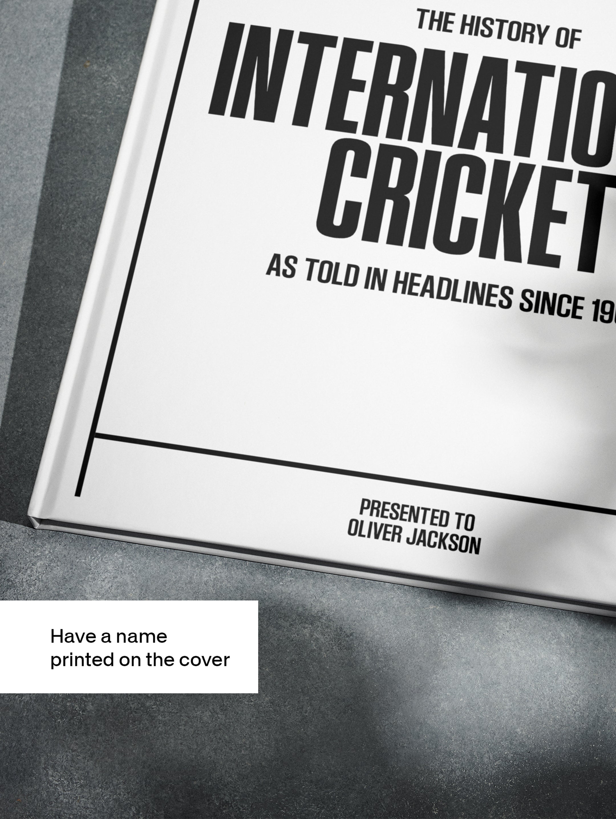 FOLLOW the story of The History of Cricket from 1905, told through original newspaper reports. Relive the 2019 Cricket World Cup, the dominance of Australia across decades, the emergence of T20 cricket and more. Choose from a cover and personalize your book with a name and message to create a unique gift.