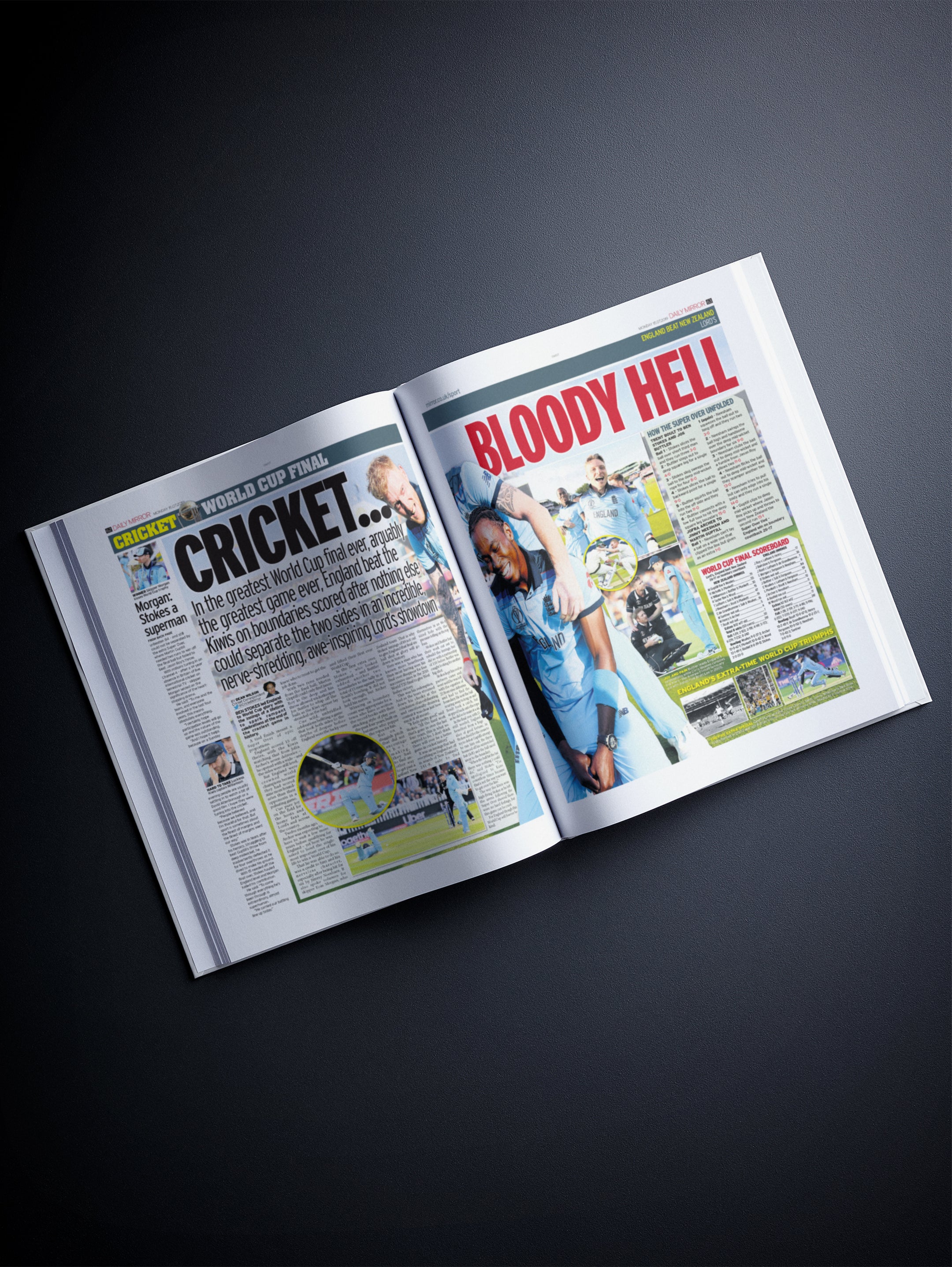 THE FINAL over at Lord’s, England have tied the Cricket World Cup final against New Zealand. Every run counts. Ben Stokes races between the wickets, and an overthrow skims past the fielder, reaching the boundary, the scores are still level! A super over decides everything. Jofra Archer bowls with nerves of steel, England hit 15. New Zealand matches it, 15 too … but England edge it on boundary count. History is made: England win their first-ever Cricket World Cup!