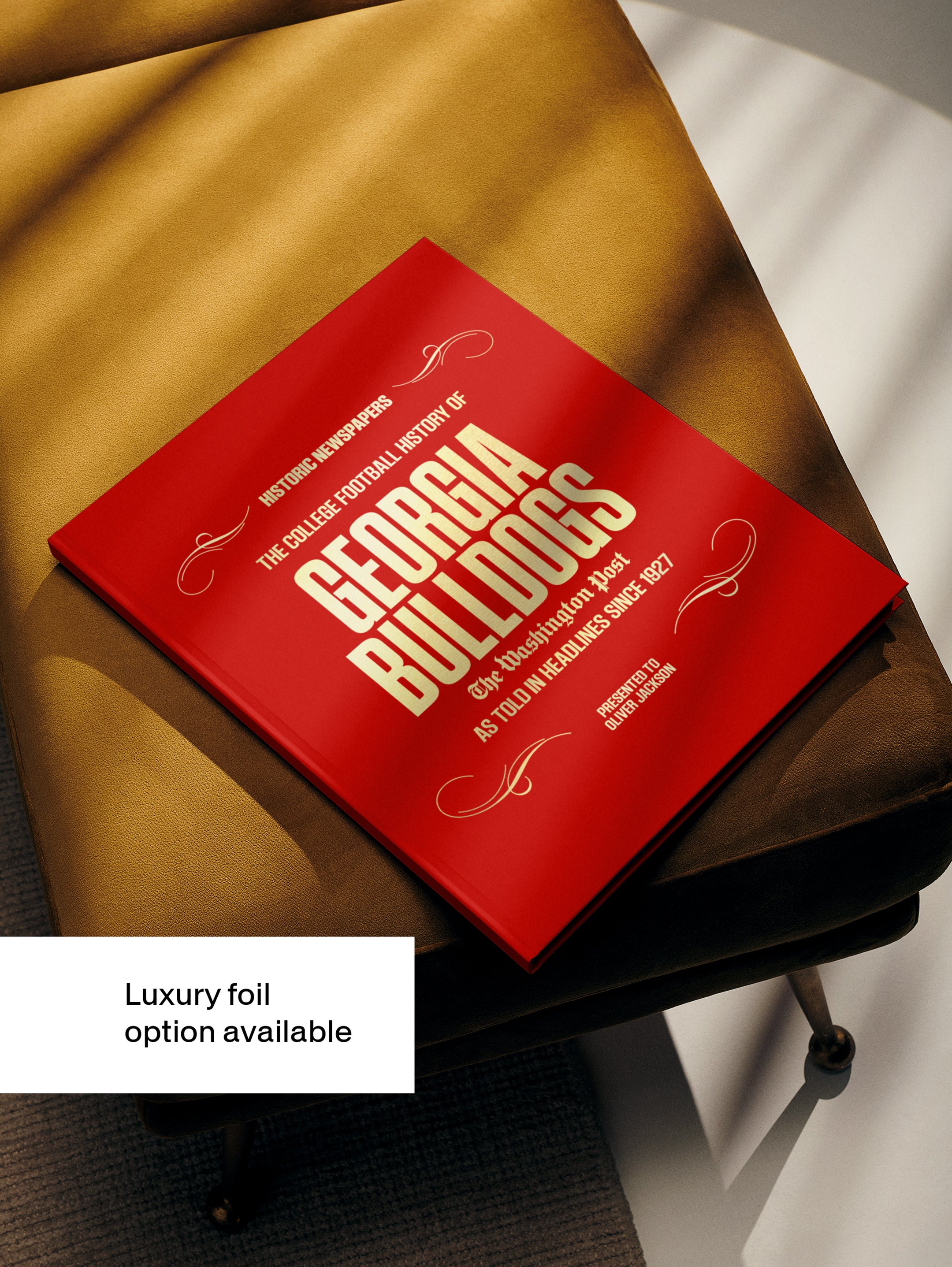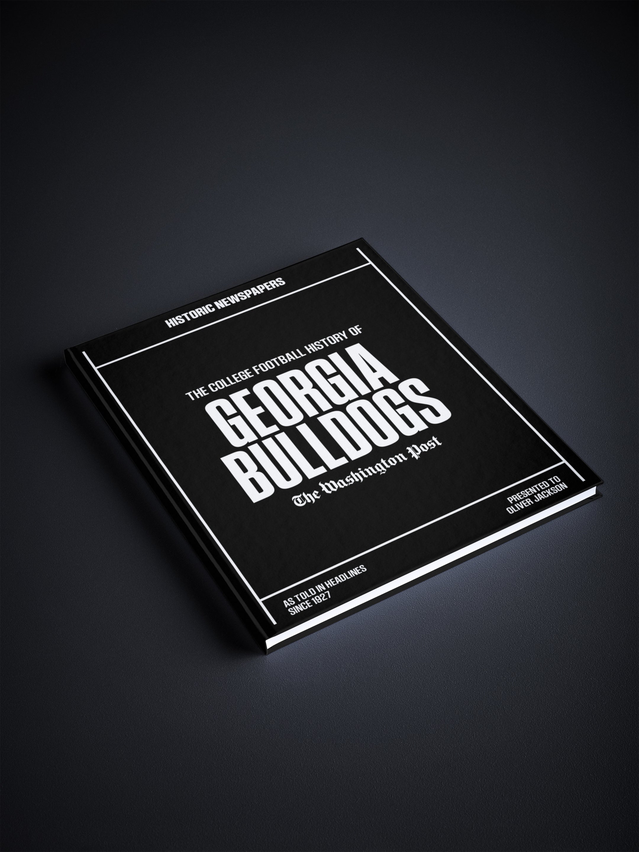 This coffee-table book features over 150 pages of authentic Washington Post newspaper reports about The History of Georgia Bulldogs College Football. It comes with a choice of covers and the option to have the recipient’s name printed on the cover for free.