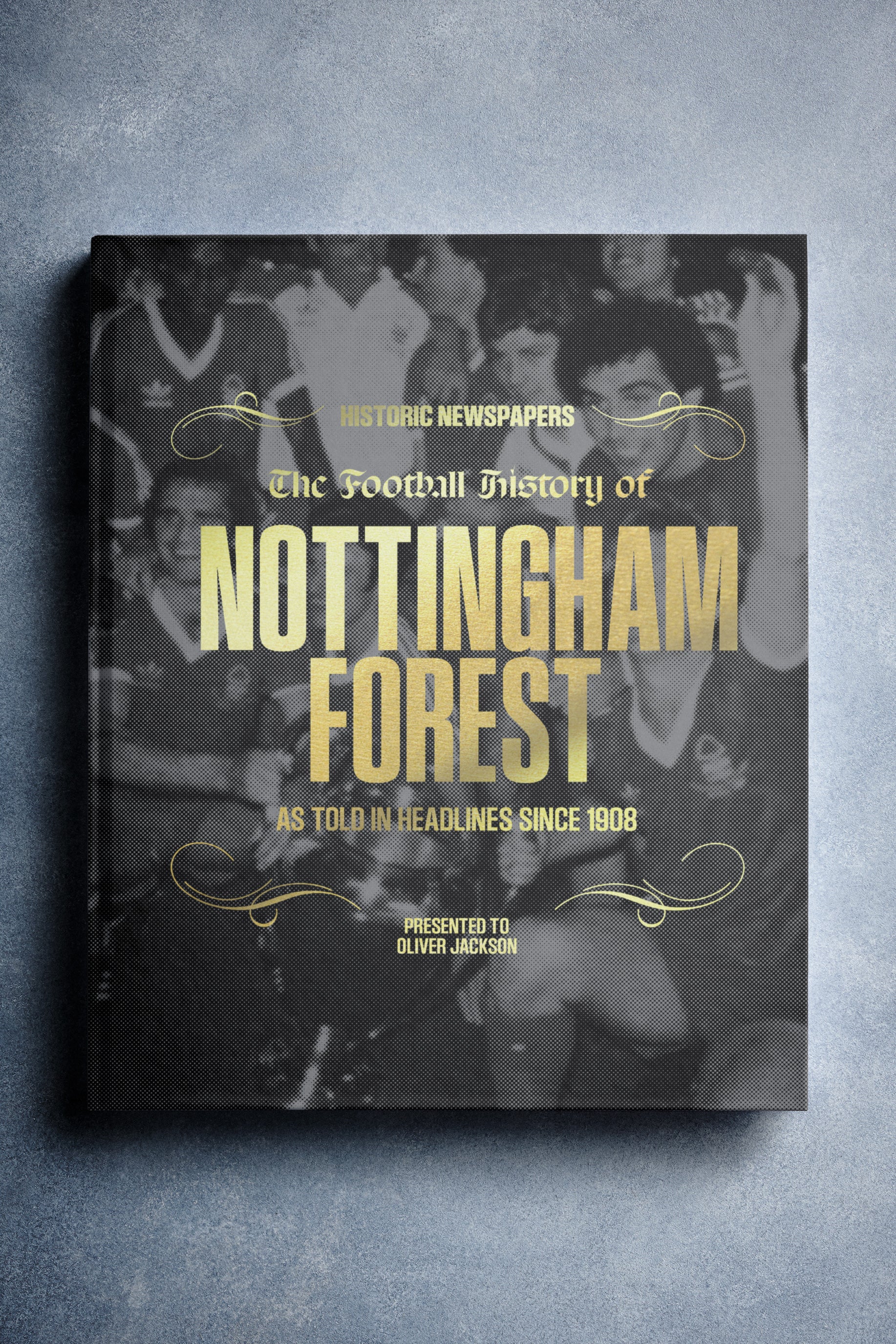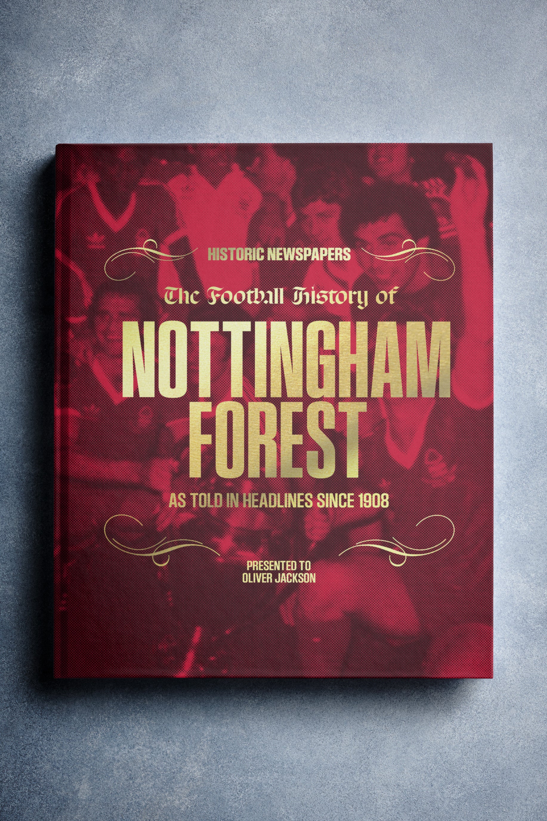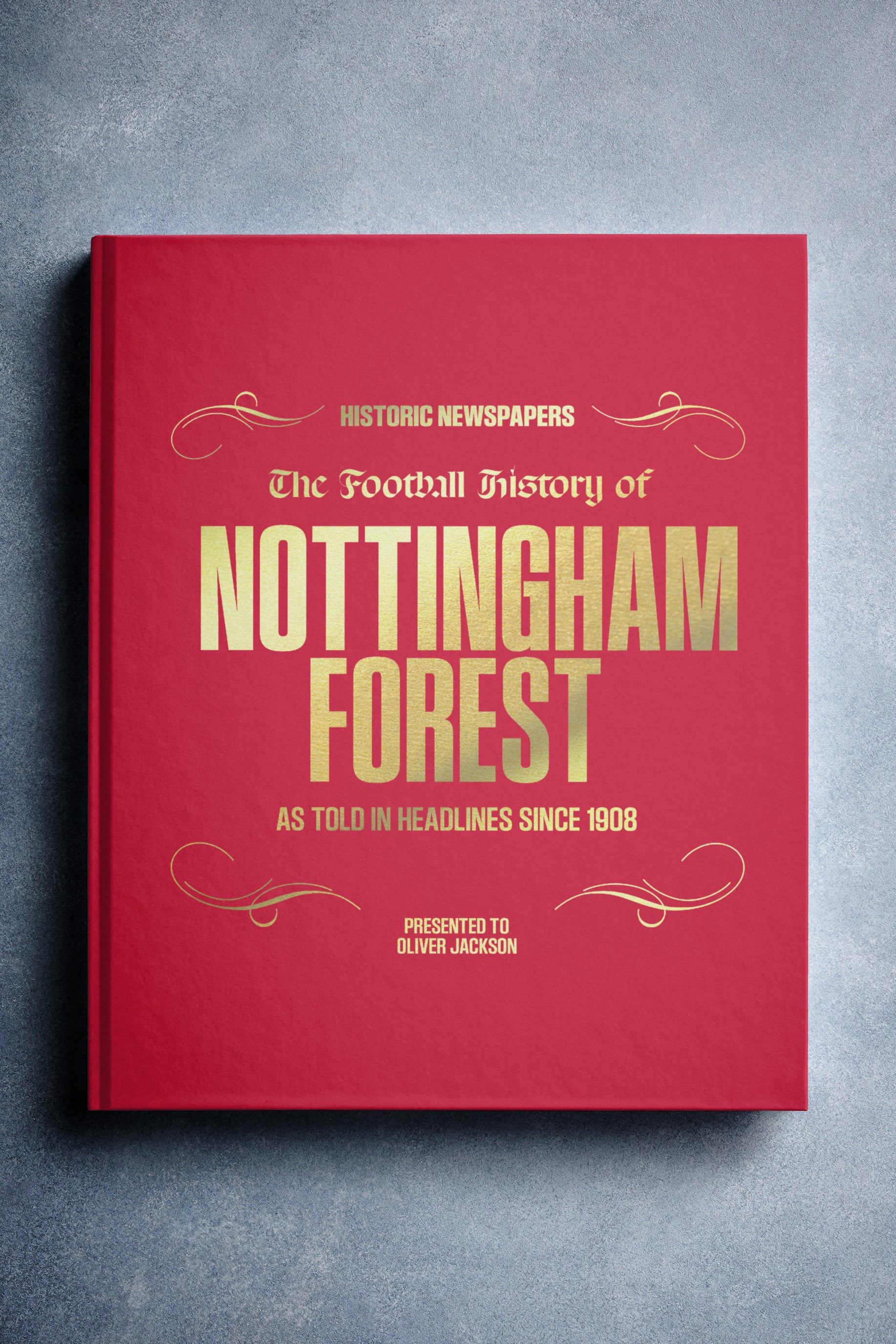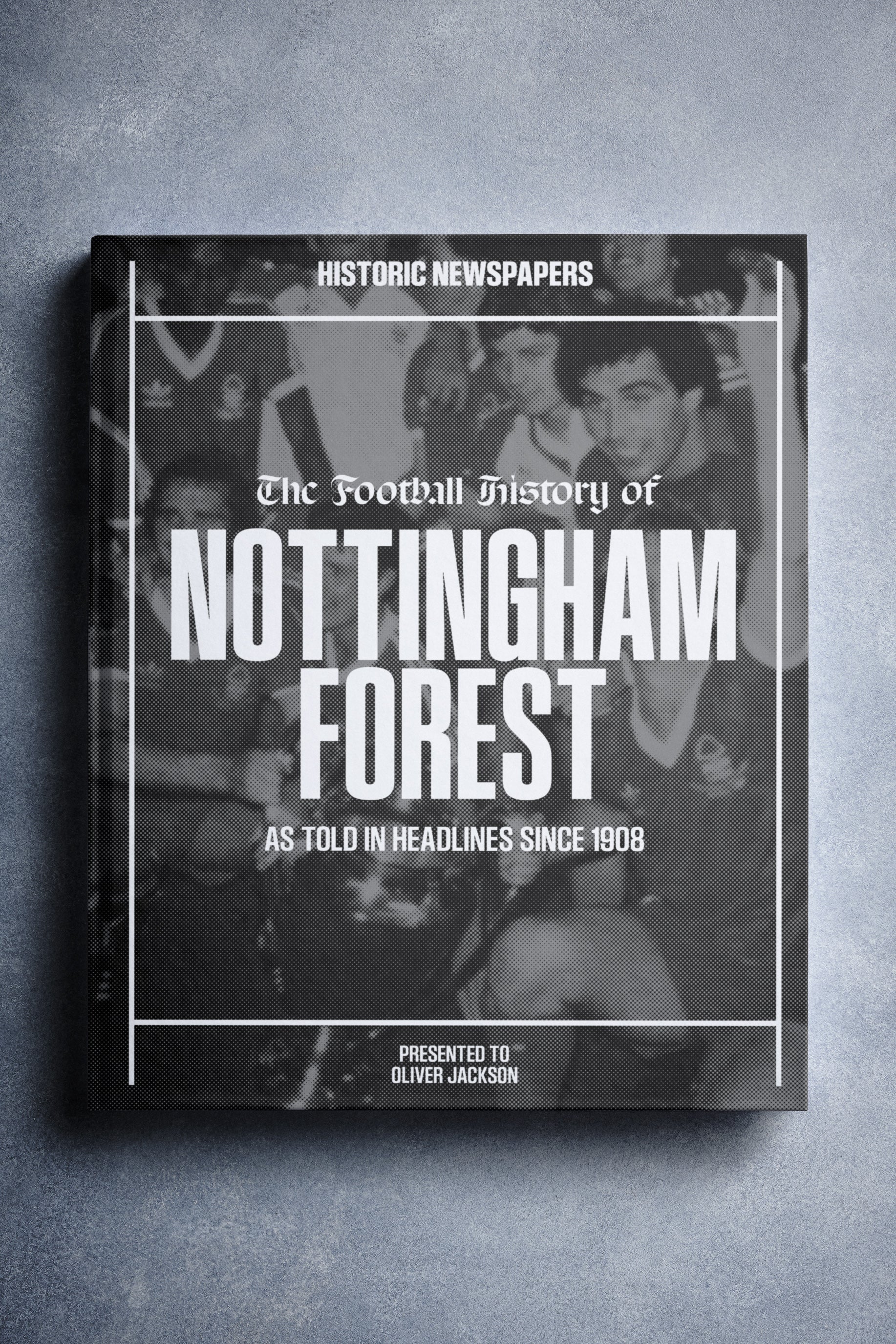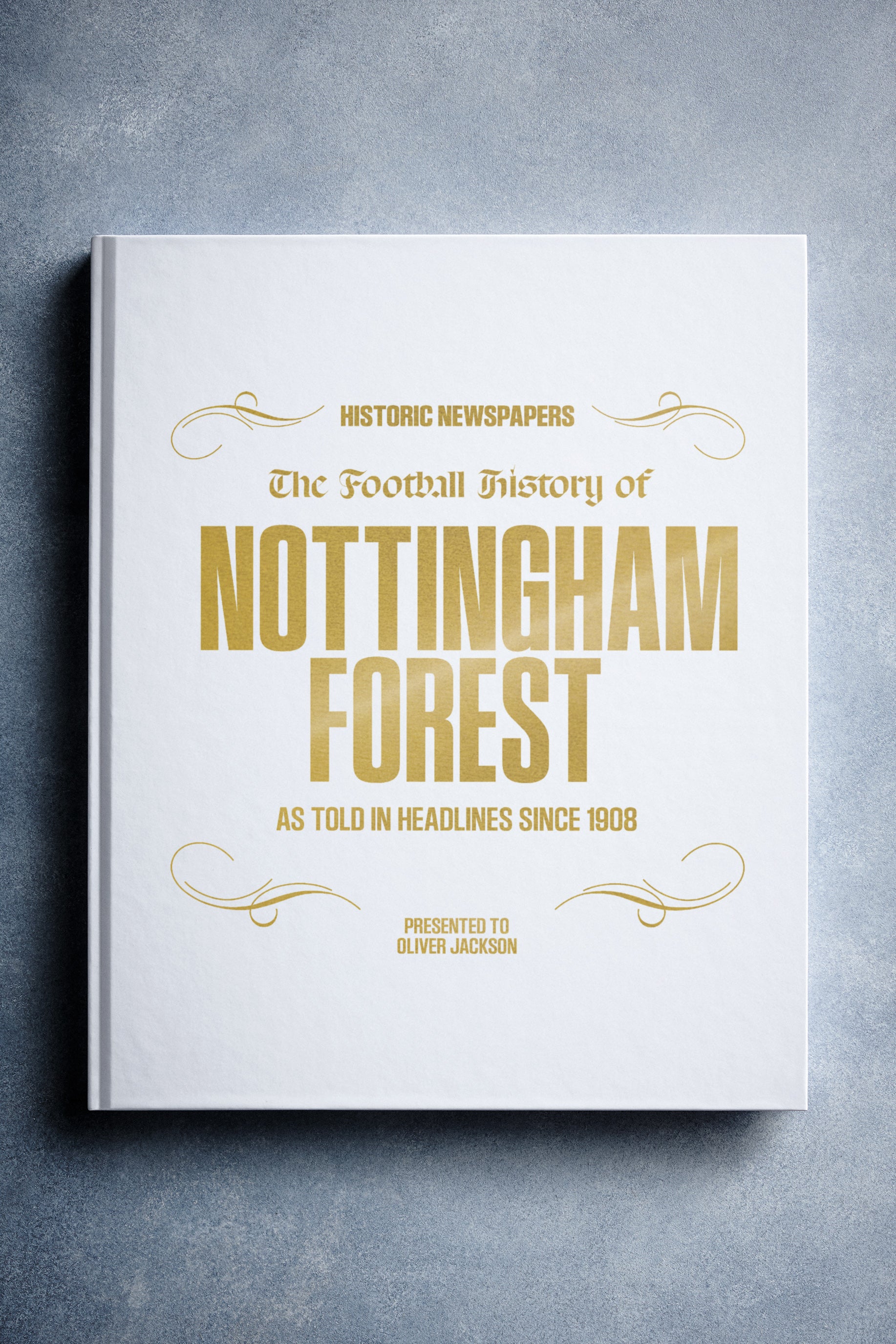 FOLLOW the story of Nottingham Forest Football Club from 1908 onwards, told through original newspaper reports. Relive defining moments — from the appointment of Brian Clough in 1975, to winning the first European Cup in 1979, and promotion to the Premier League in 2022. Choose from a range of book covers and personalise your book with a name and message to create a lasting keepsake. A piece of Forest history to gift, share, and relive.