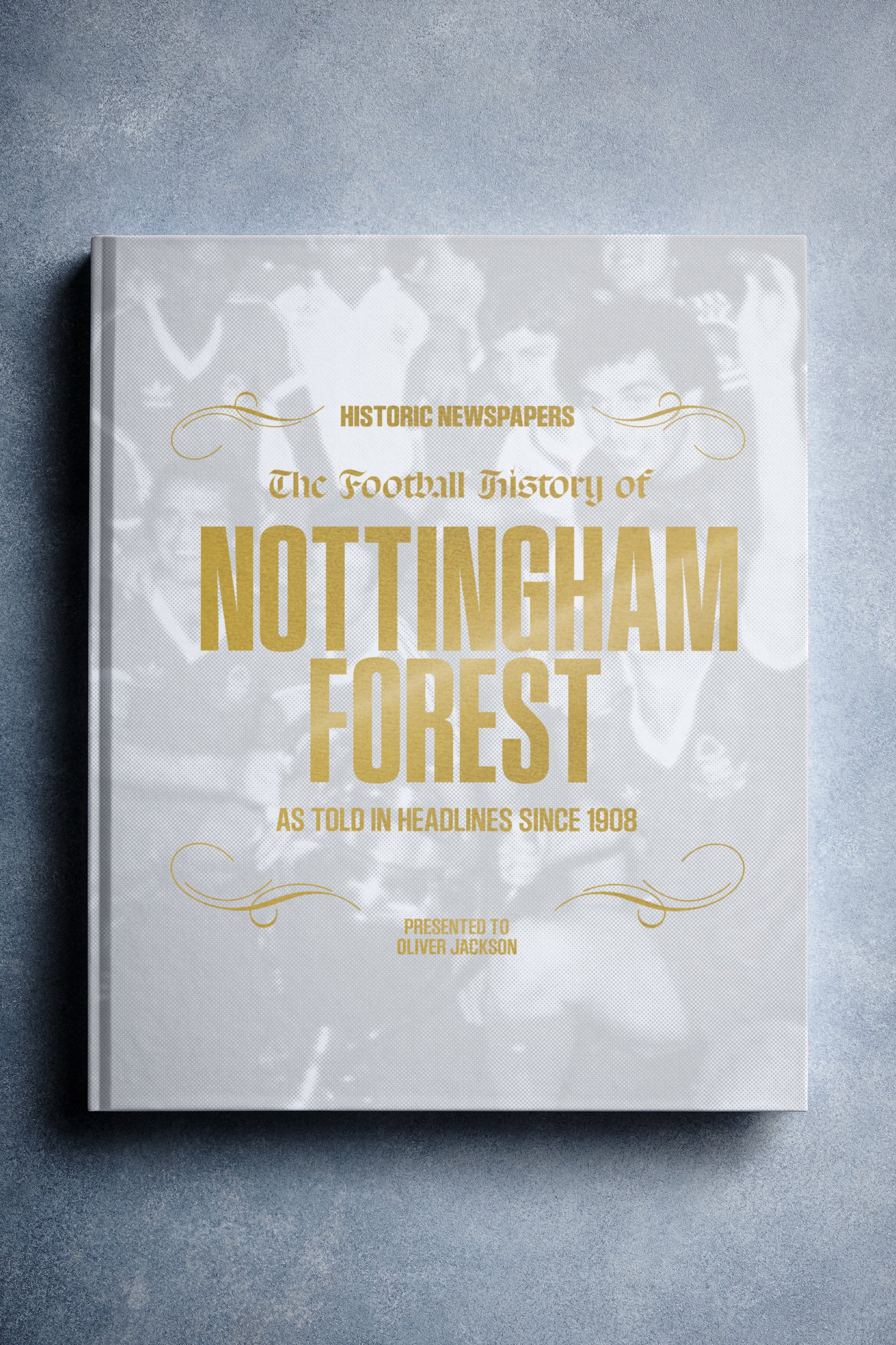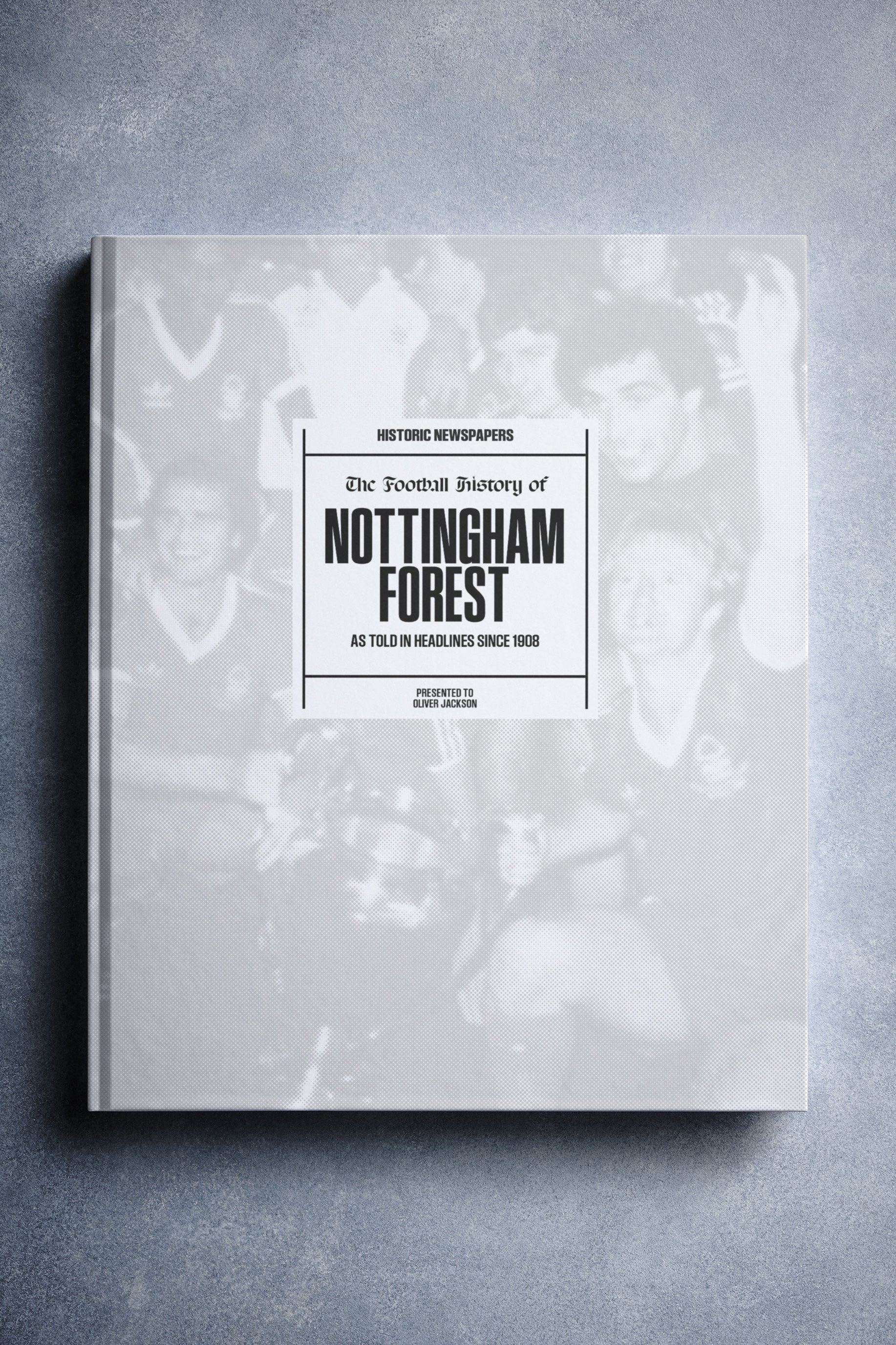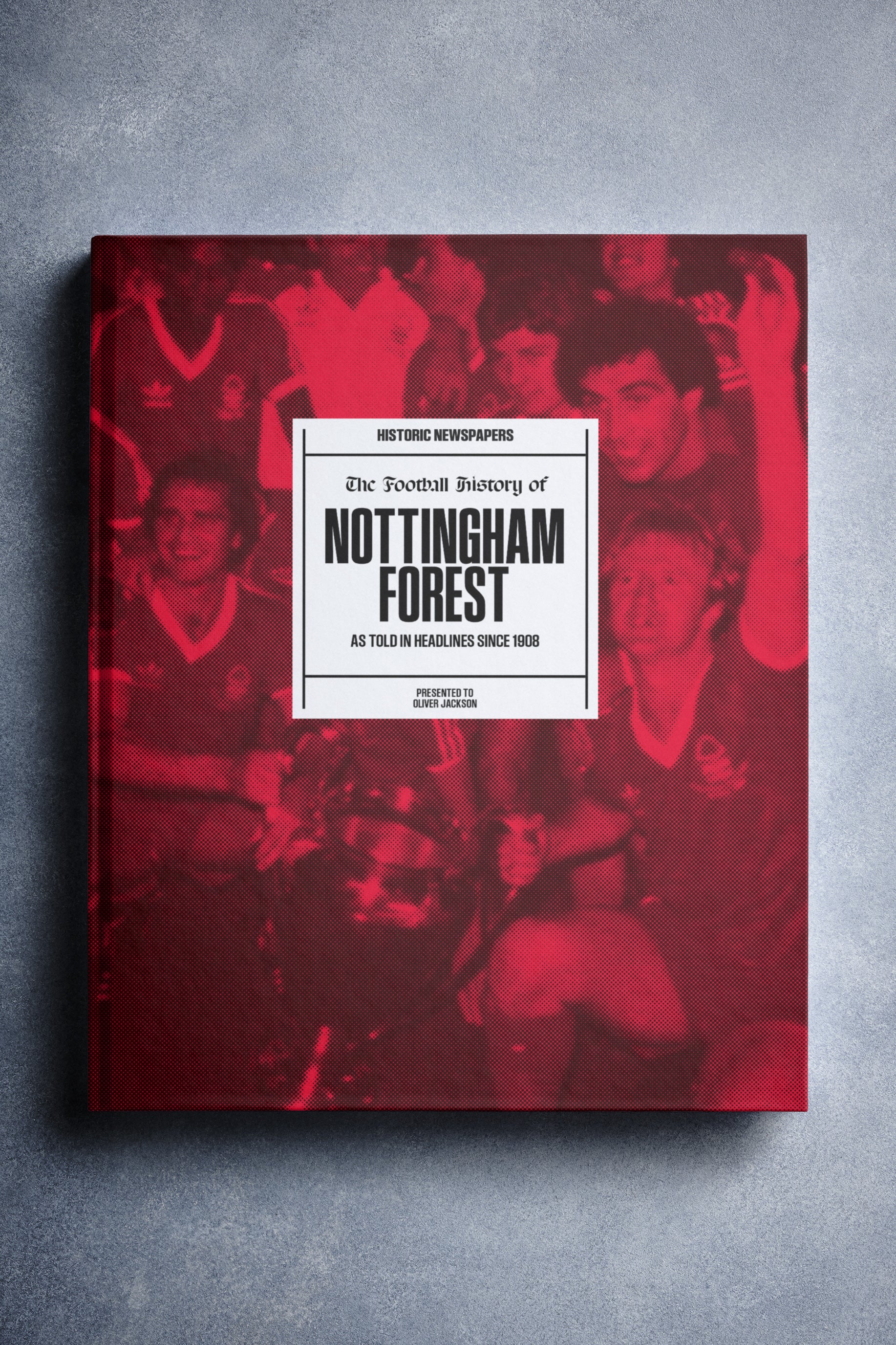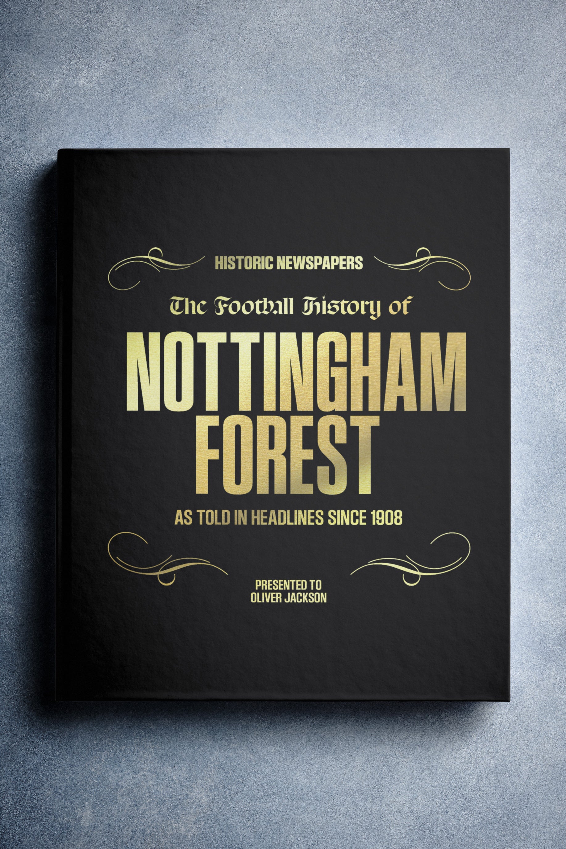 FOLLOW the story of Nottingham Forest Football Club from 1908 onwards, told through original newspaper reports. Relive defining moments — from the appointment of Brian Clough in 1975, to winning the first European Cup in 1979, and promotion to the Premier League in 2022. Choose from a range of book covers and personalise your book with a name and message to create a lasting keepsake. A piece of Forest history to gift, share, and relive.