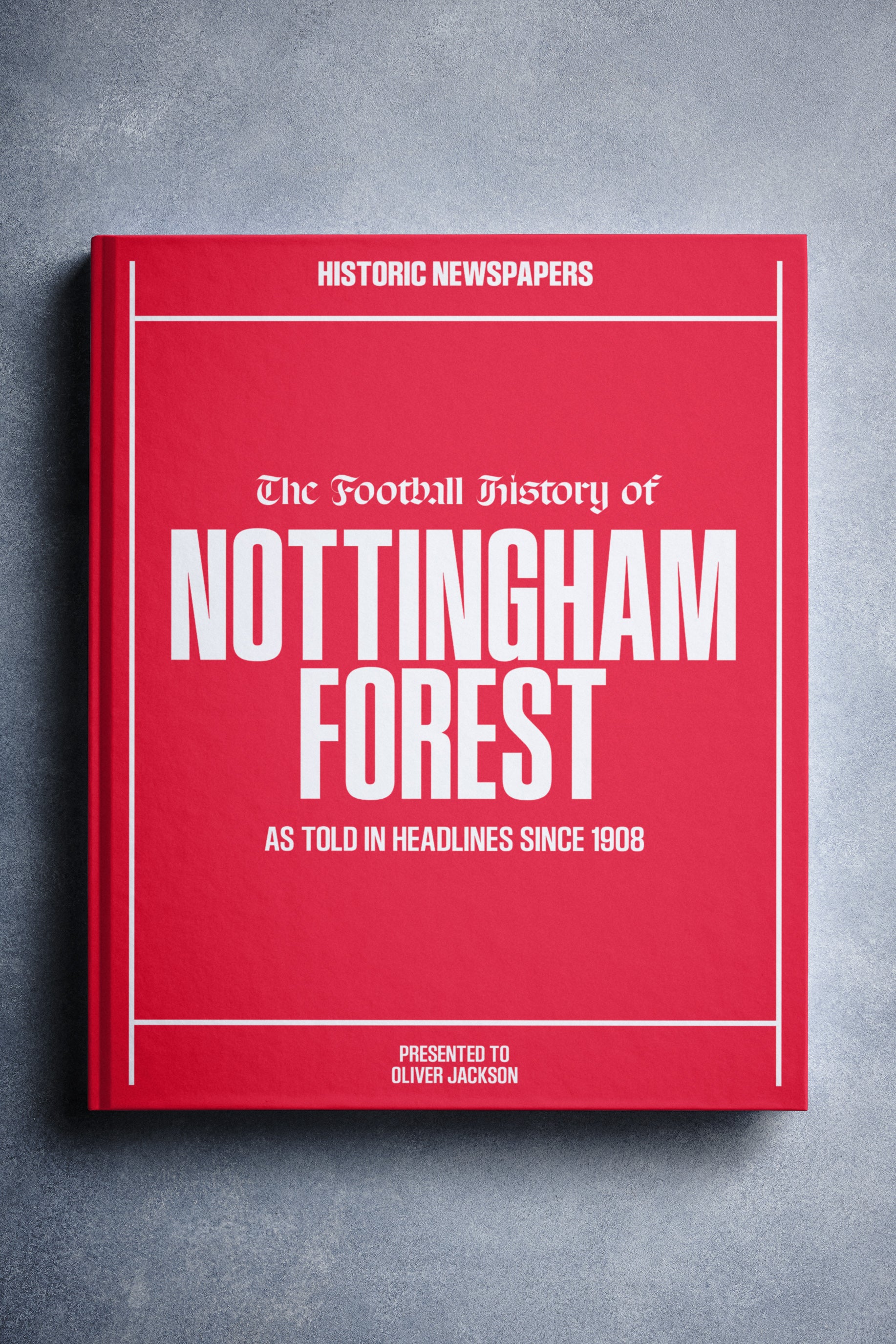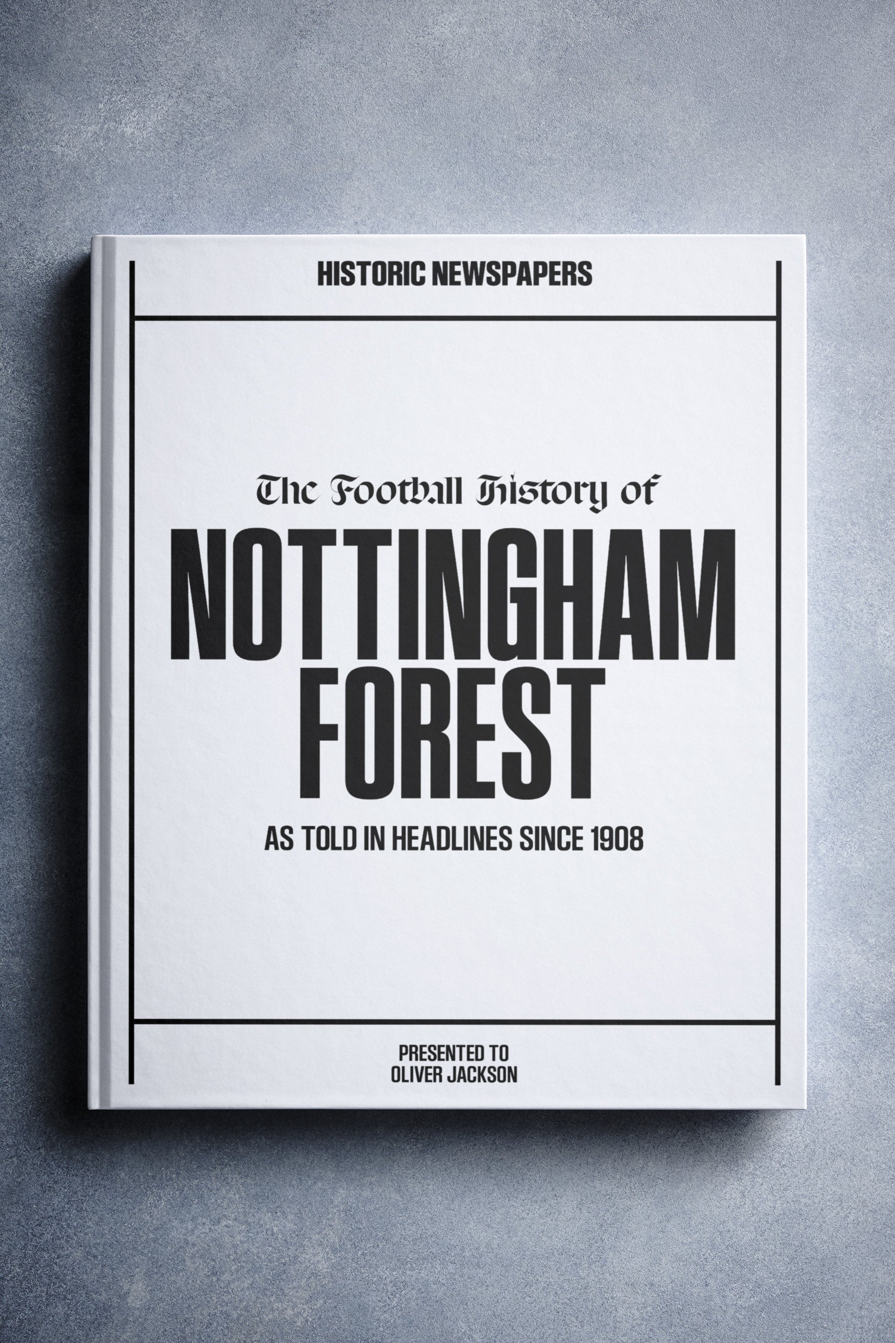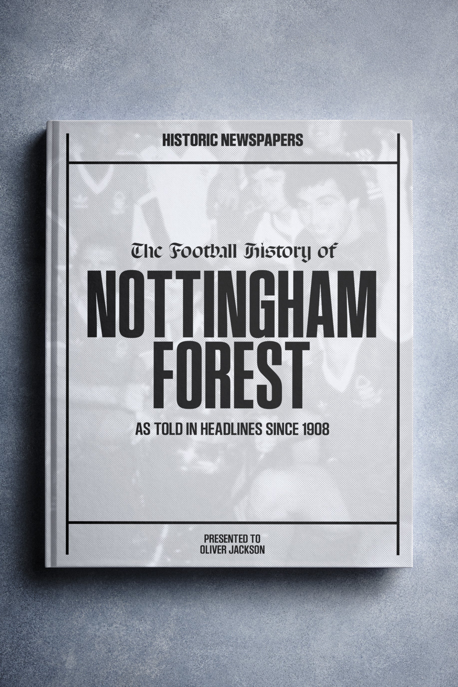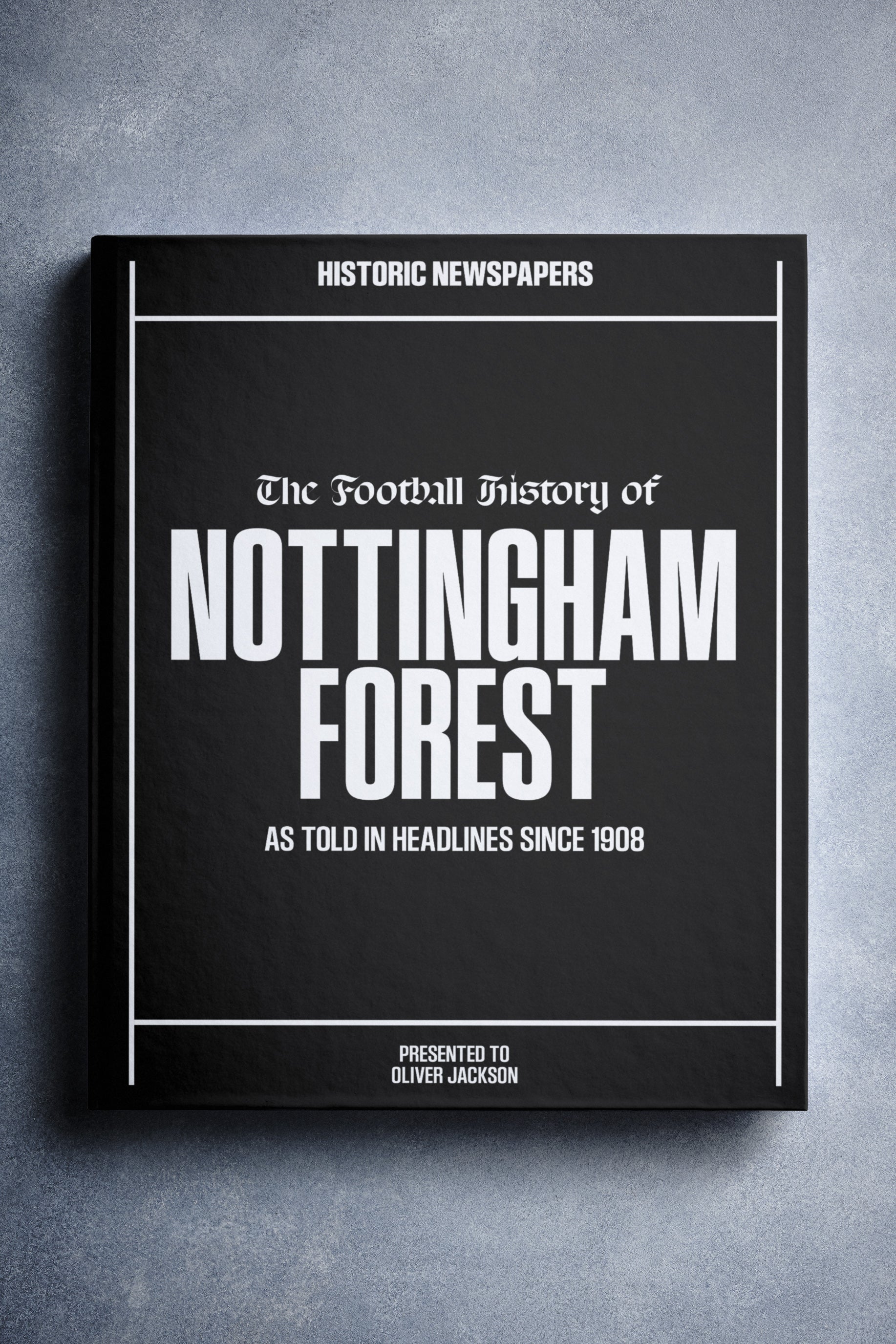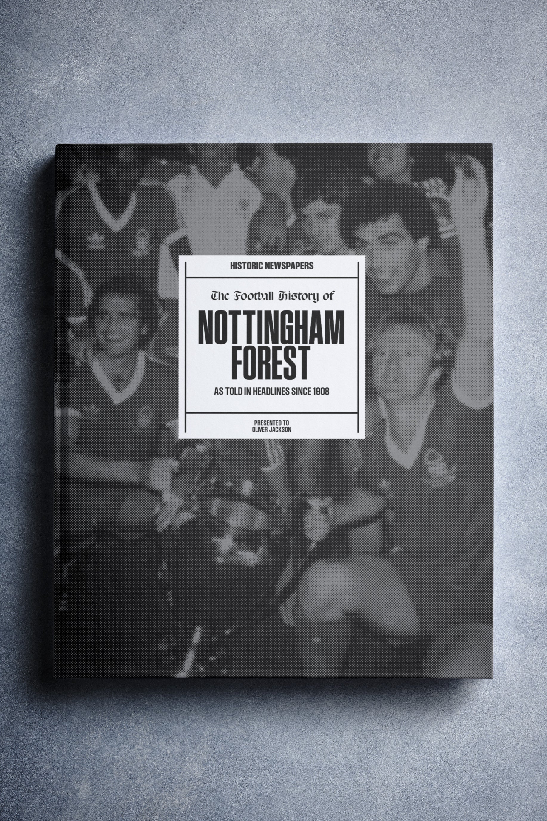 FOLLOW the story of Nottingham Forest Football Club from 1908 onwards, told through original newspaper reports. Relive defining moments — from the appointment of Brian Clough in 1975, to winning the first European Cup in 1979, and promotion to the Premier League in 2022. Choose from a range of book covers and personalise your book with a name and message to create a lasting keepsake. A piece of Forest history to gift, share, and relive.