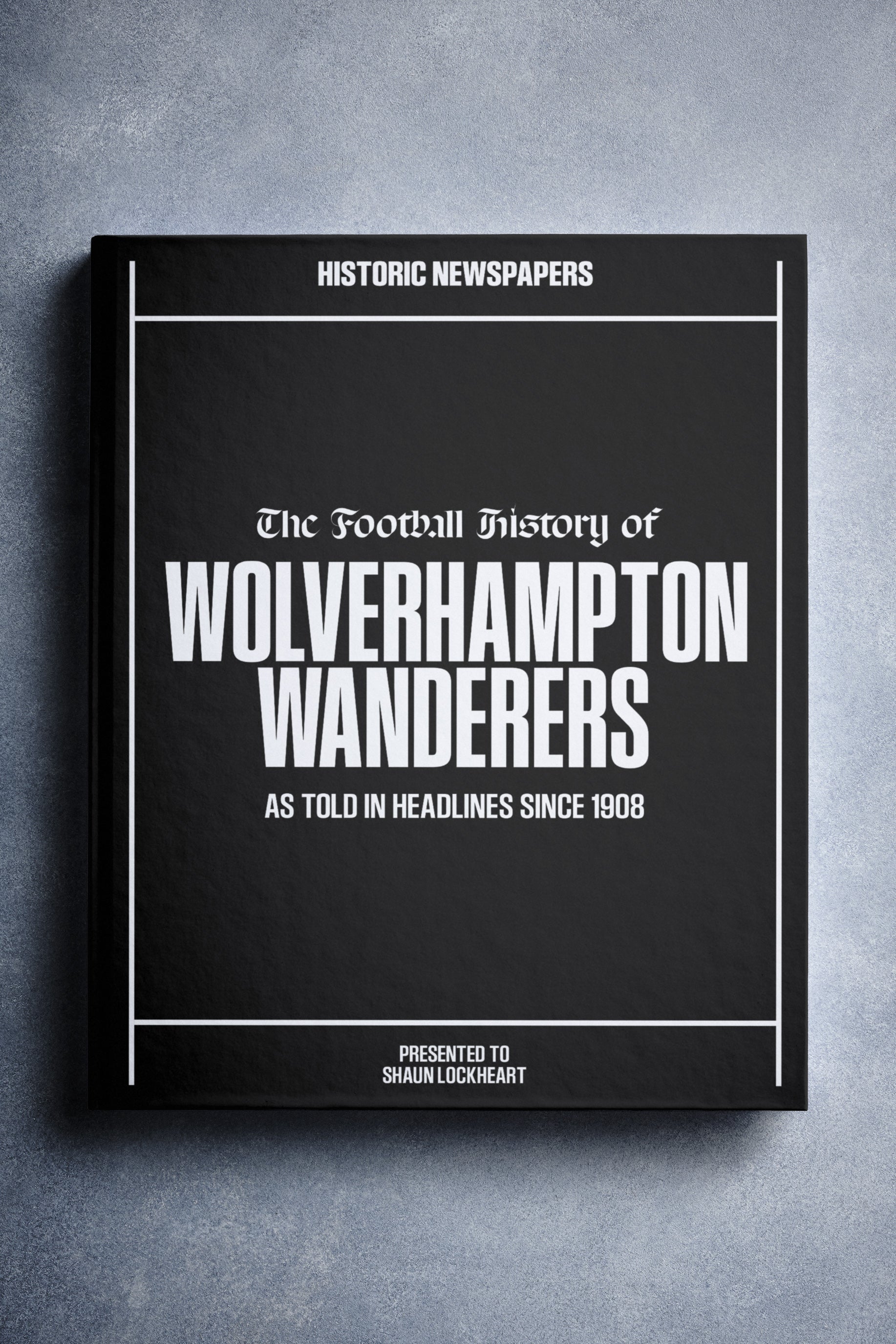 FOLLOW the story of Wolverhampton Wanderers Football Club from 1908 onwards, told through original newspaper reports. Relive historic moments — from the first league title in 1954 under Stan Cullis, to the floodlit friendlies against European giants, and the return to the Premier League in 2018. Choose from a range of book covers and personalise your book with a name and message to create a lasting keepsake. A piece of Wolves history to gift, share, and relive.