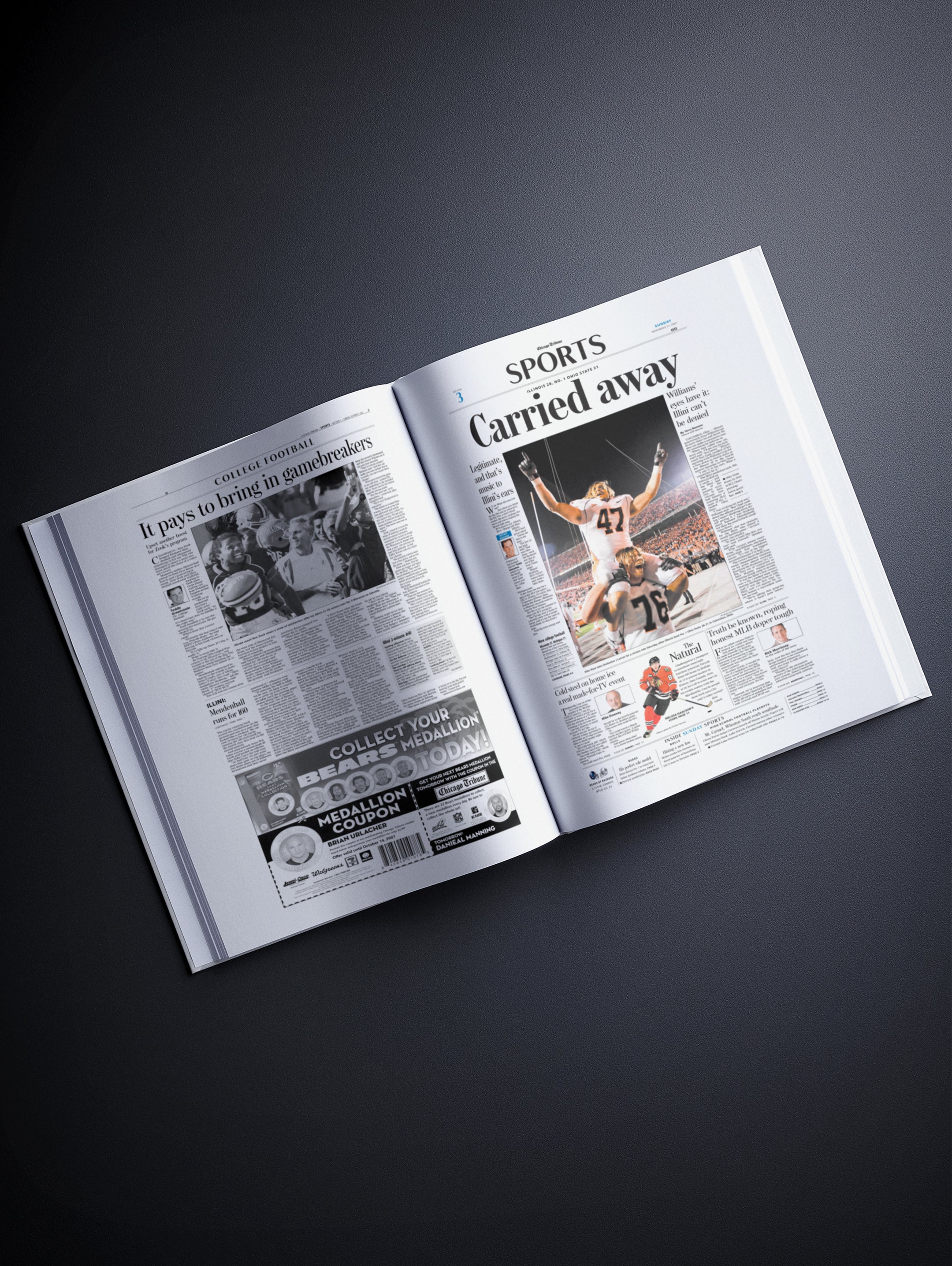 STEP into the story of Illinois Fighting Illini with a book of authentic newspaper articles, curated by Historic Newspapers. This edition documents key milestones in the team’s history — exactly as they were reported at the time. Relive pivotal Fighting Illini moments, including: