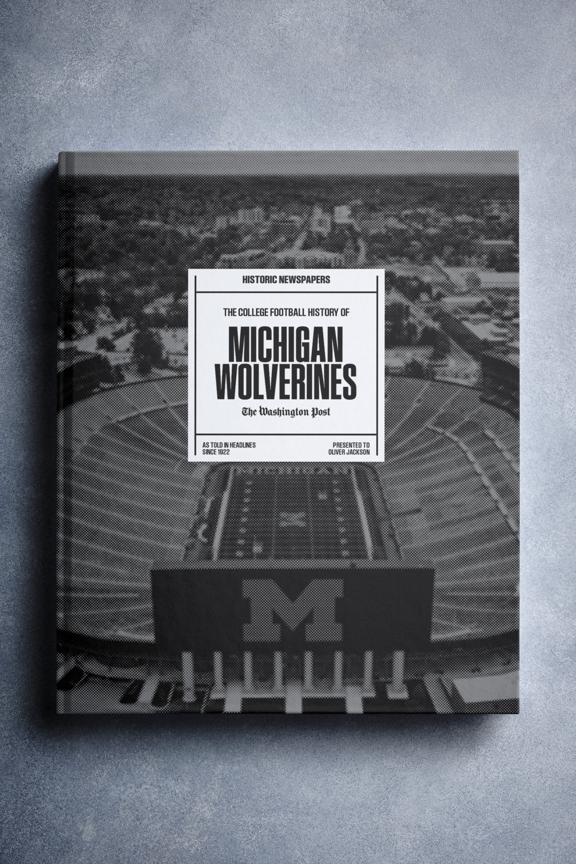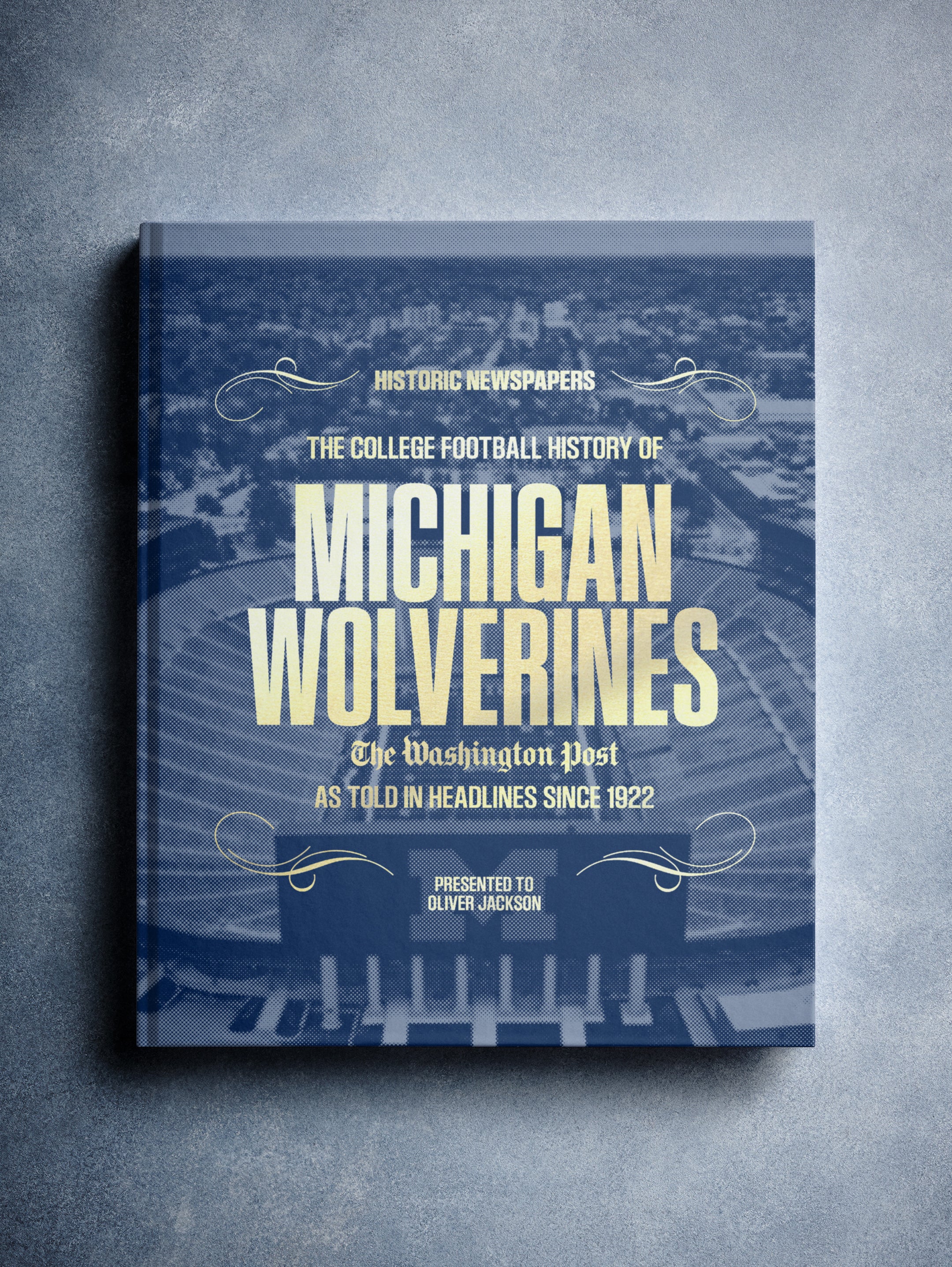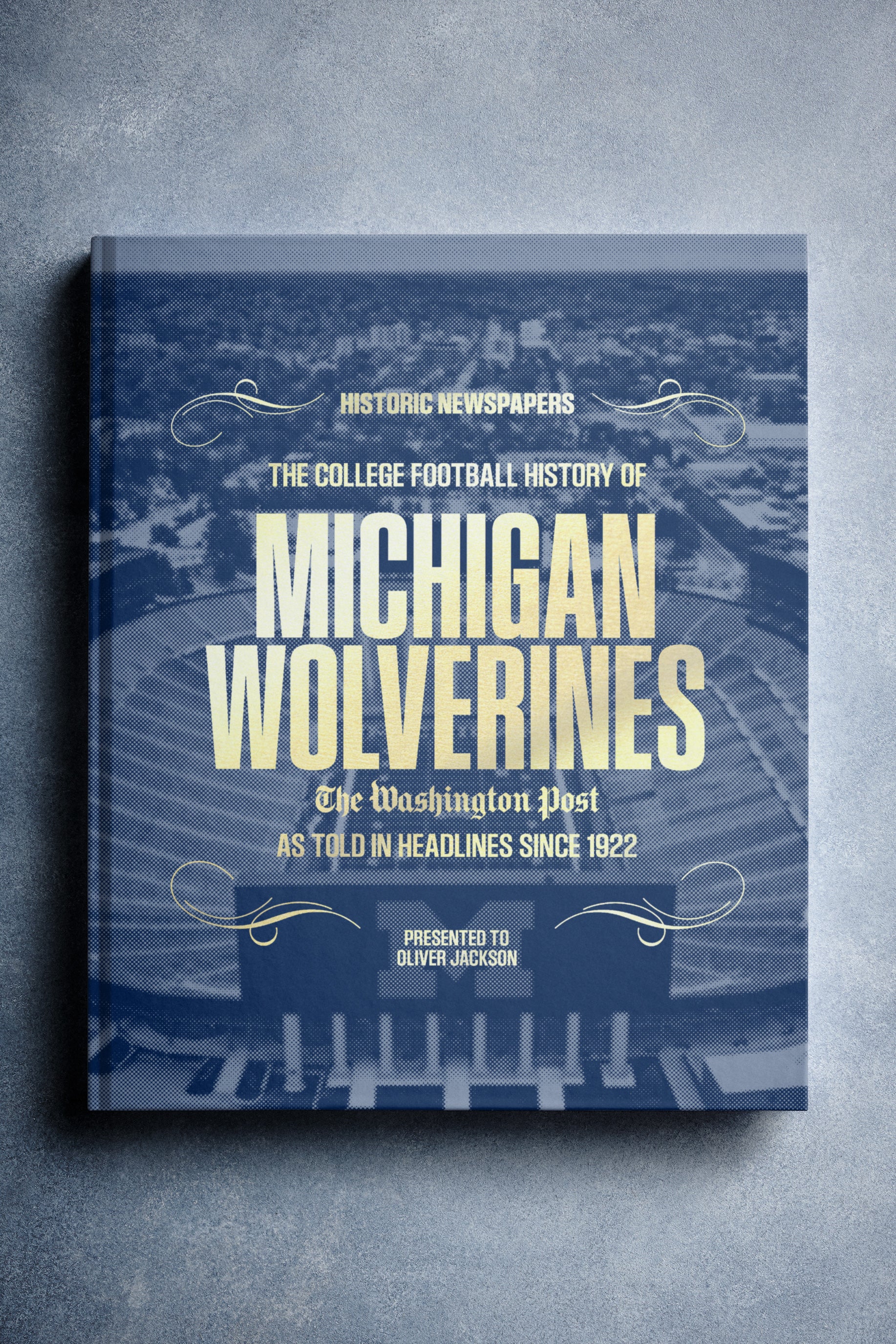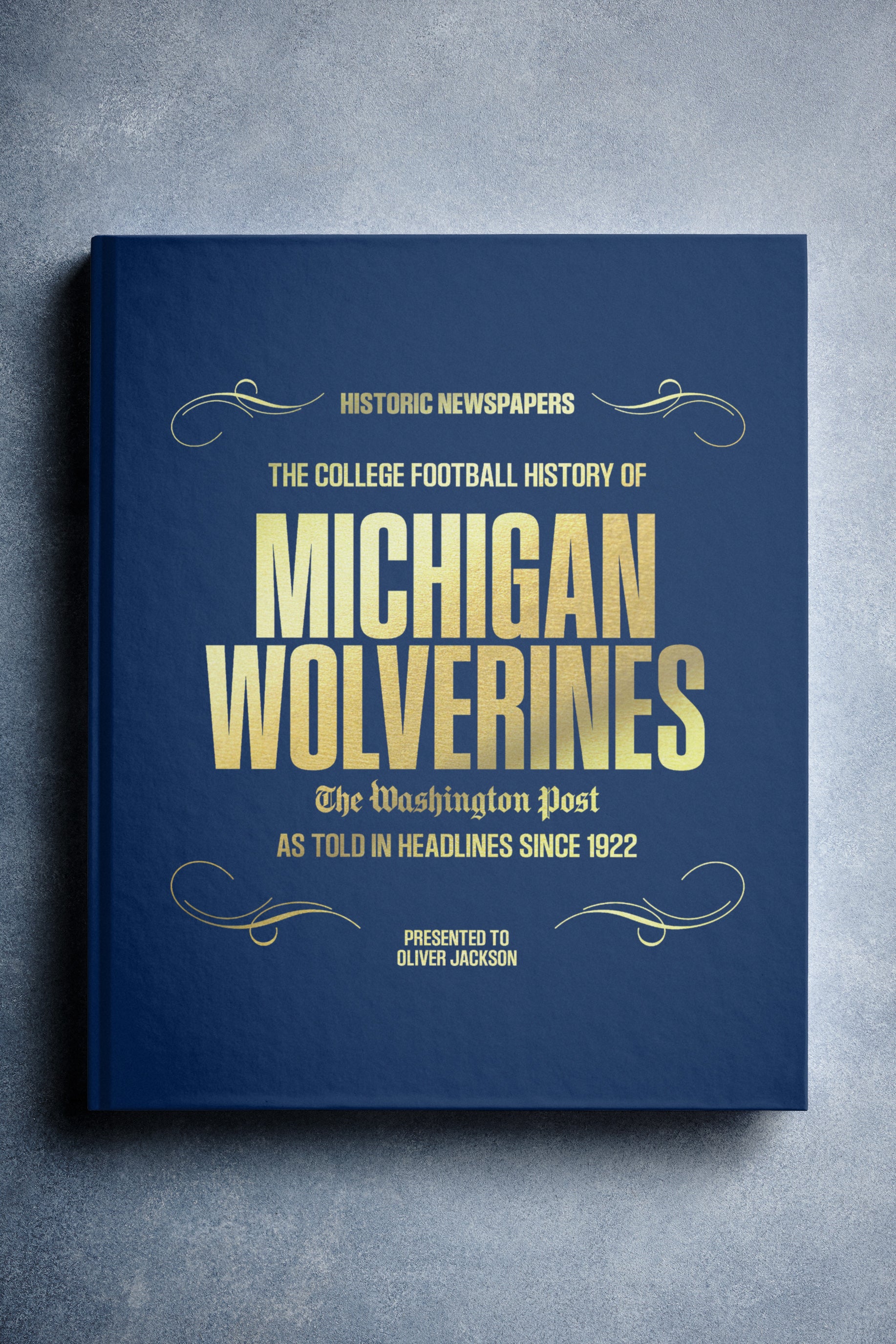 FOLLOW the story of the Michigan Wolverines from 1922 onwards, told through original newspaper reports. Relive historic moments — from the 1997 National Championship Season, to the 2021 win over Ohio State, and the 2024 undefeated 15 – 0 Season. Choose from a range of book covers and personalise your book with a name and message to create a lasting keepsake. A piece of Wolverines history to gift, share, and relive.
