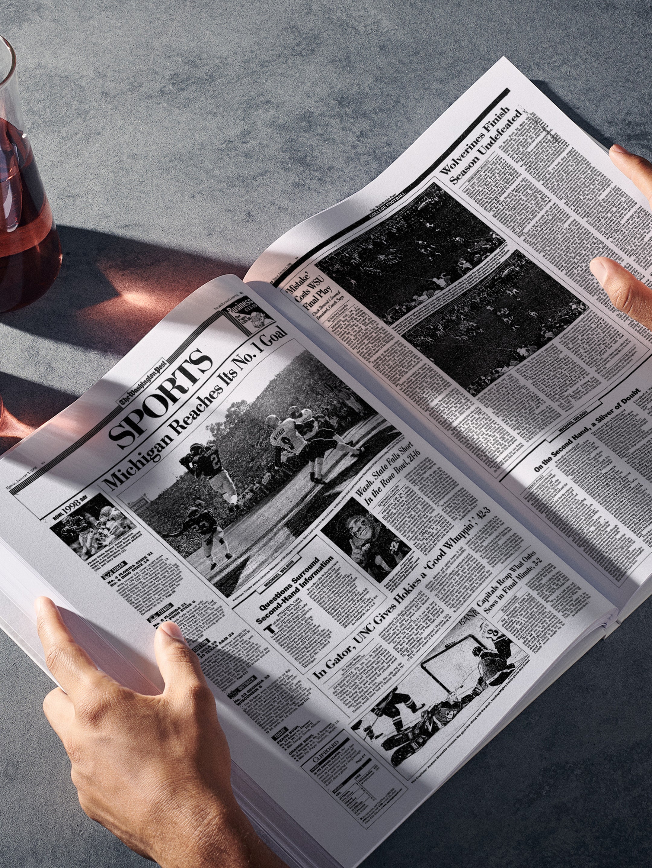 This book tells the story of the Michigan Wolverines through authentic newspaper reports, beginning in 1922. Relive historic moments — from the 1997 National Championship Season, to the 2021 win over Ohio State, and the 2024 undefeated 15 – 0 Season. Follow the team’s journey decade by decade, told through the words of journalists who witnessed it.
