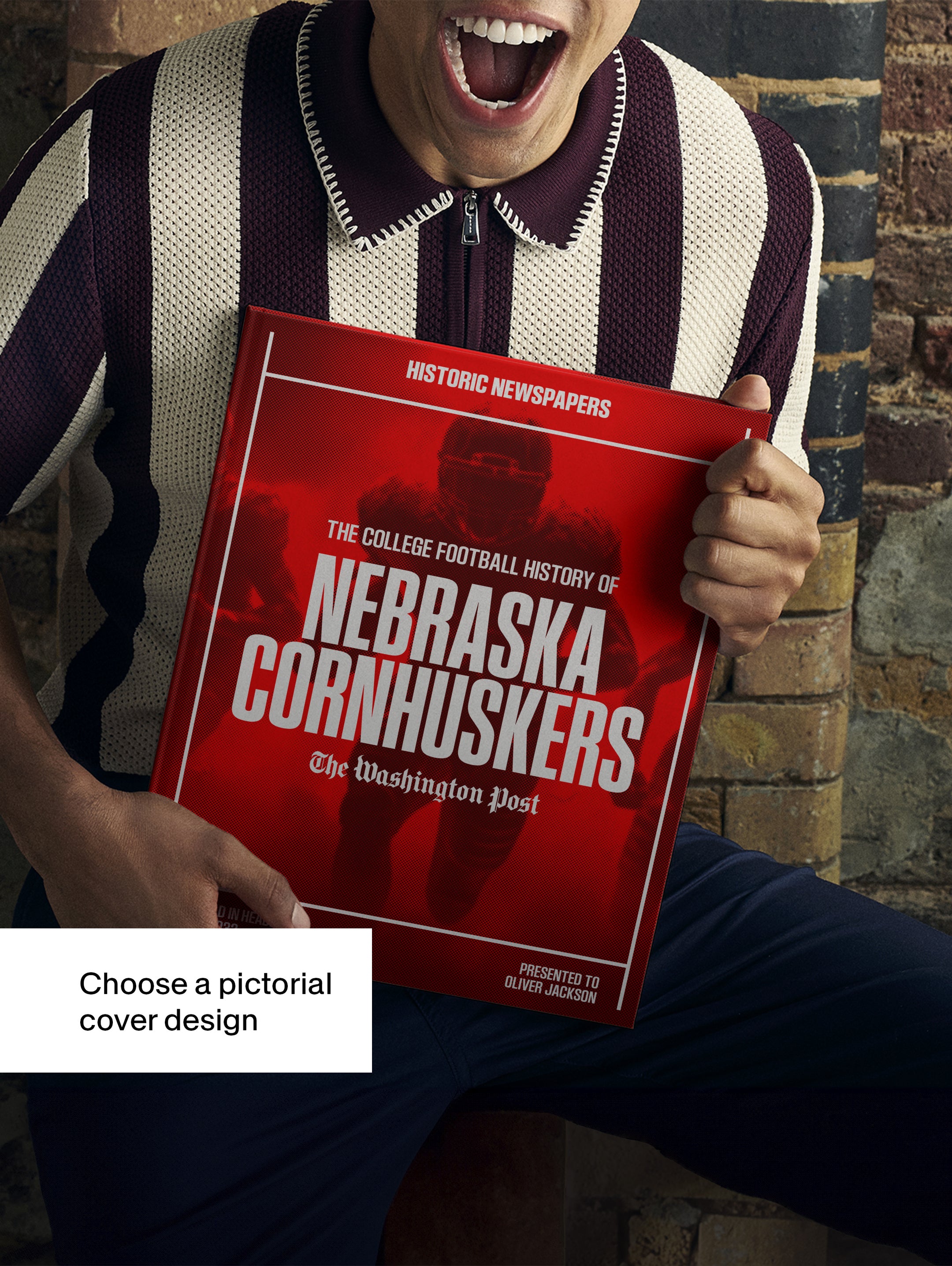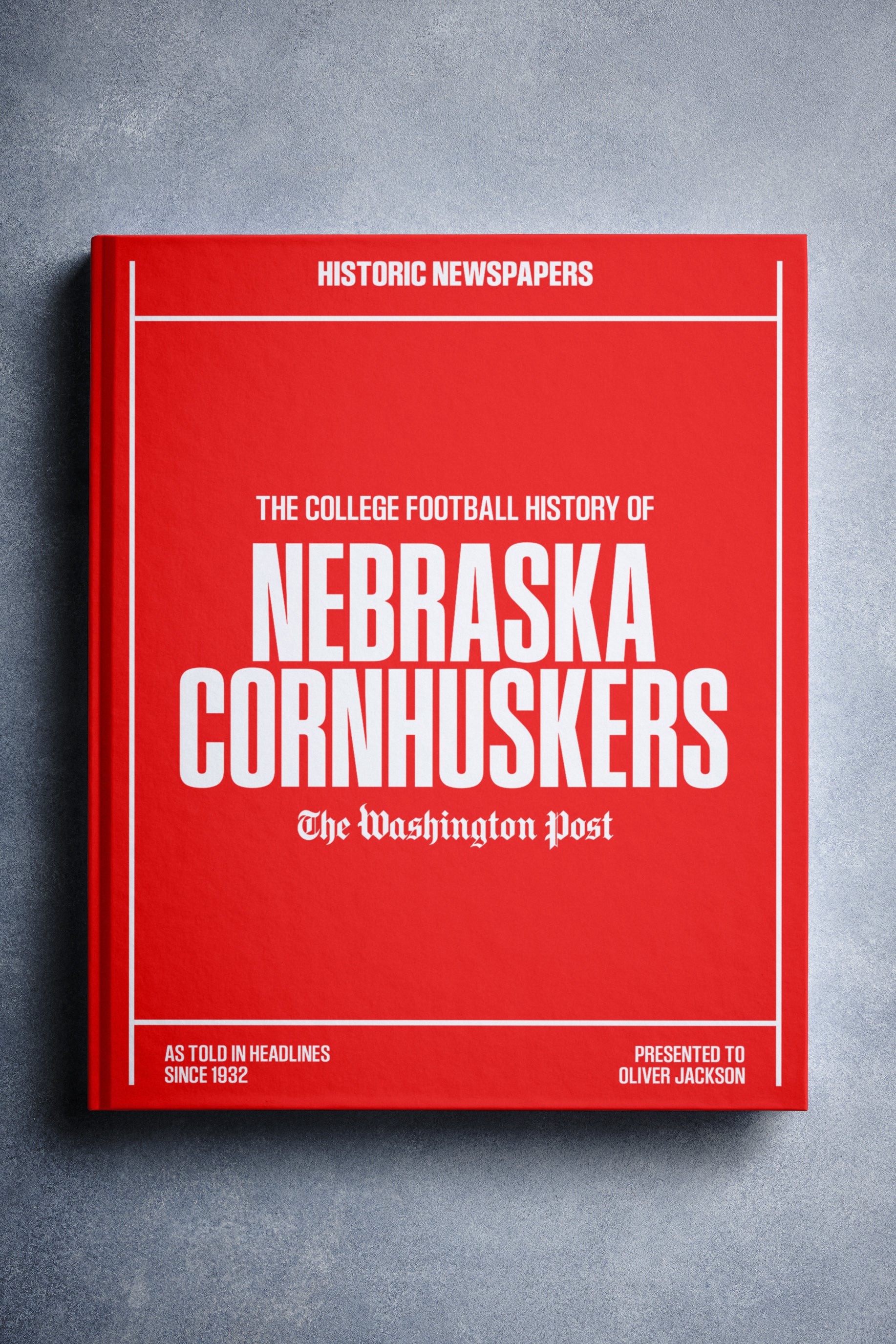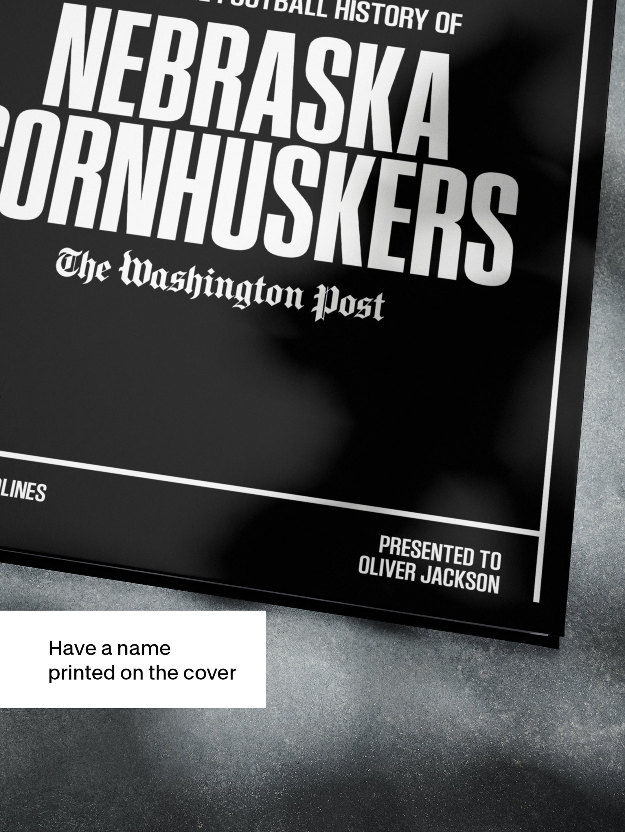 This coffee-table book features 160 pages of authentic Washington Post newspaper reports about The History of Nebraska Cornhuskers College Football. It comes with a choice of covers and the option to have the recipient’s name printed on the cover for free.