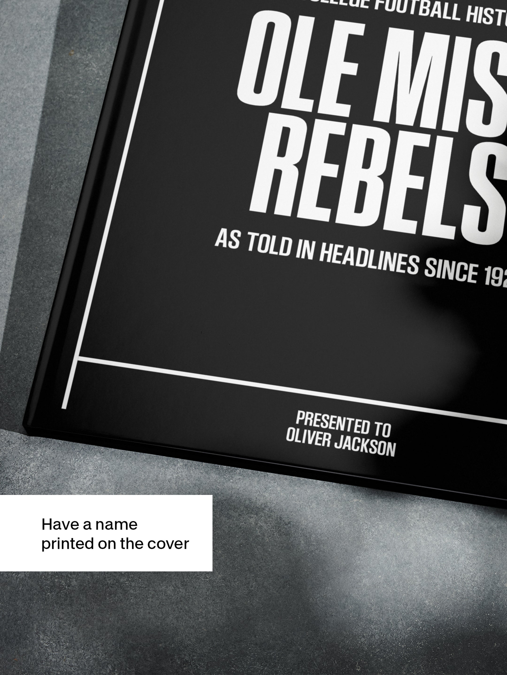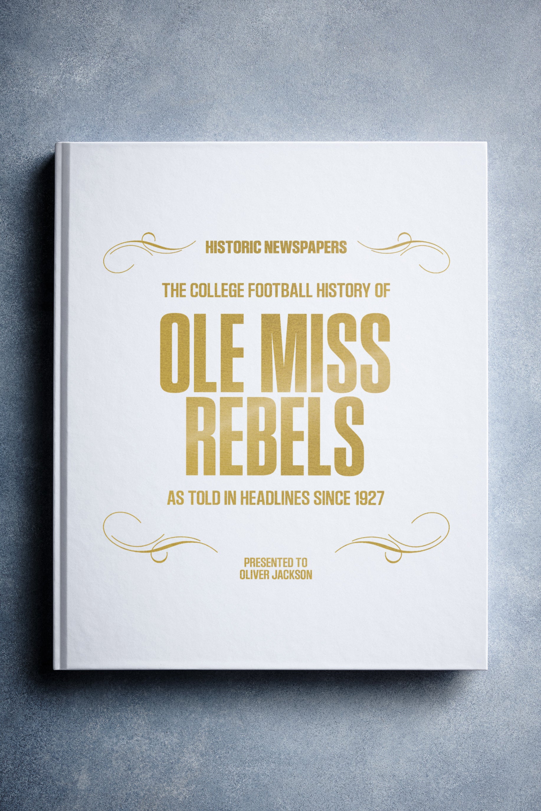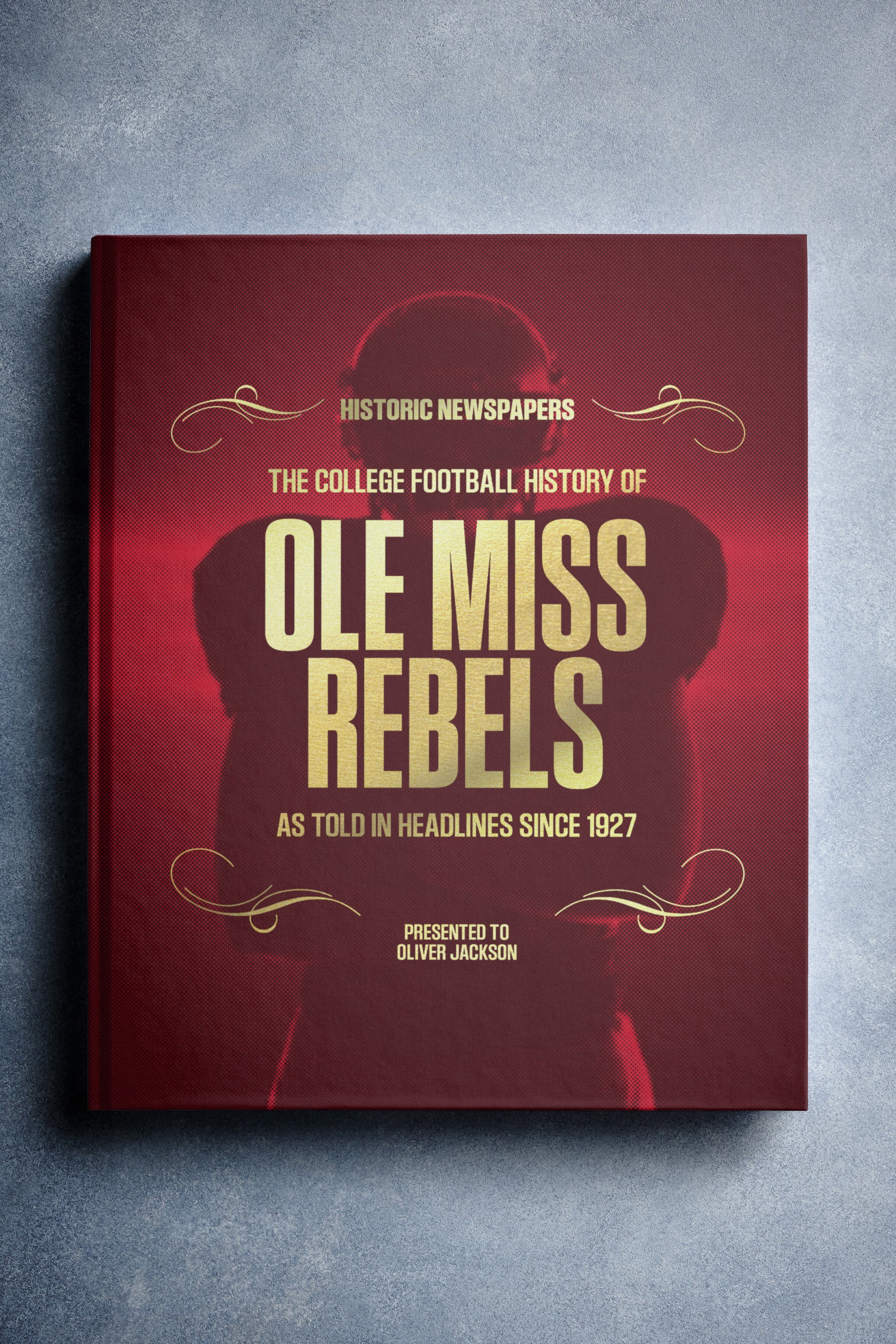 This coffee-table book features 170 pages of authentic Clarion Ledger newspaper reports about The History of Ole Miss Rebels College Football. It comes with a choice of covers and the option to have the recipient’s name printed on the cover for free.