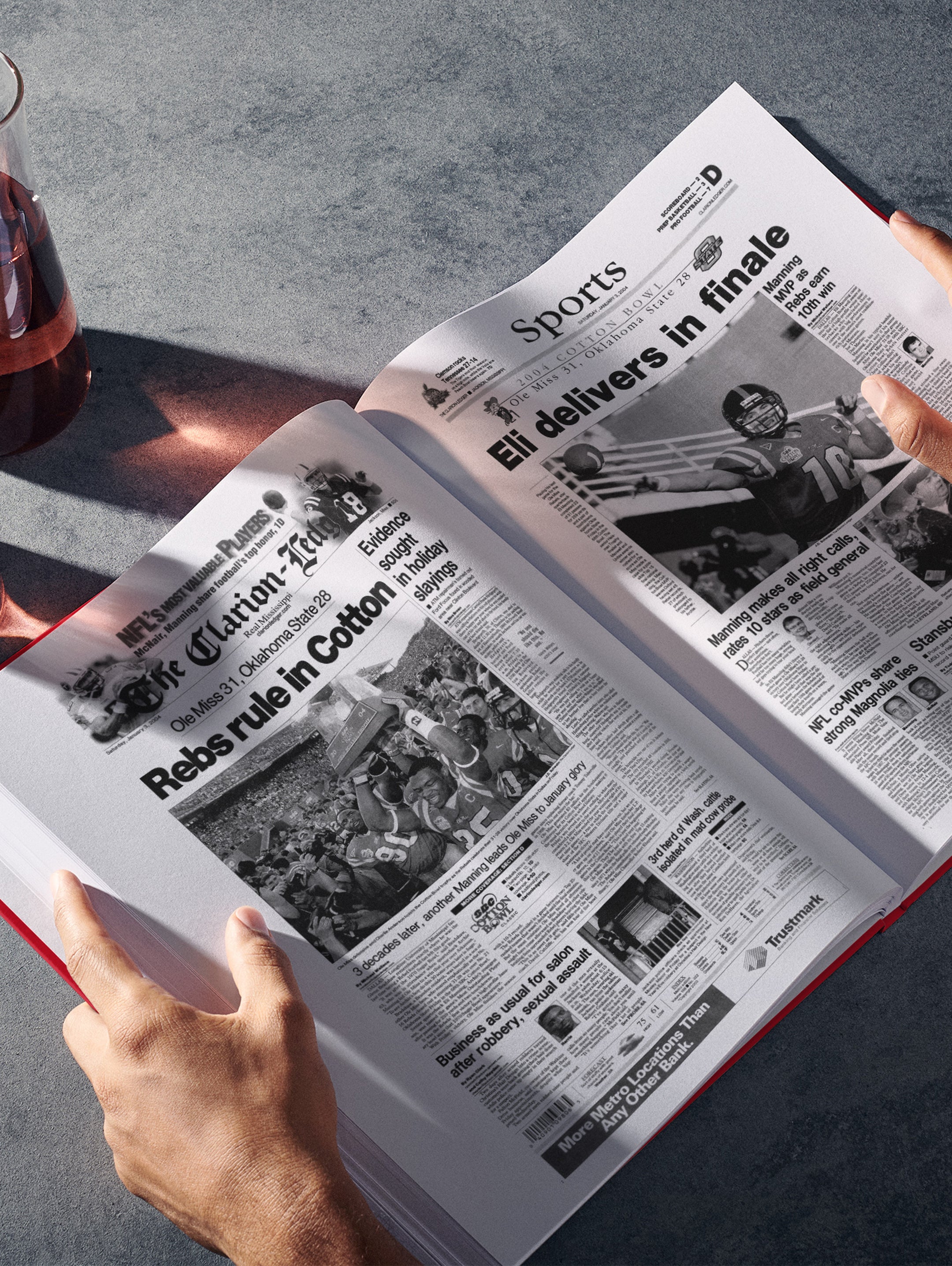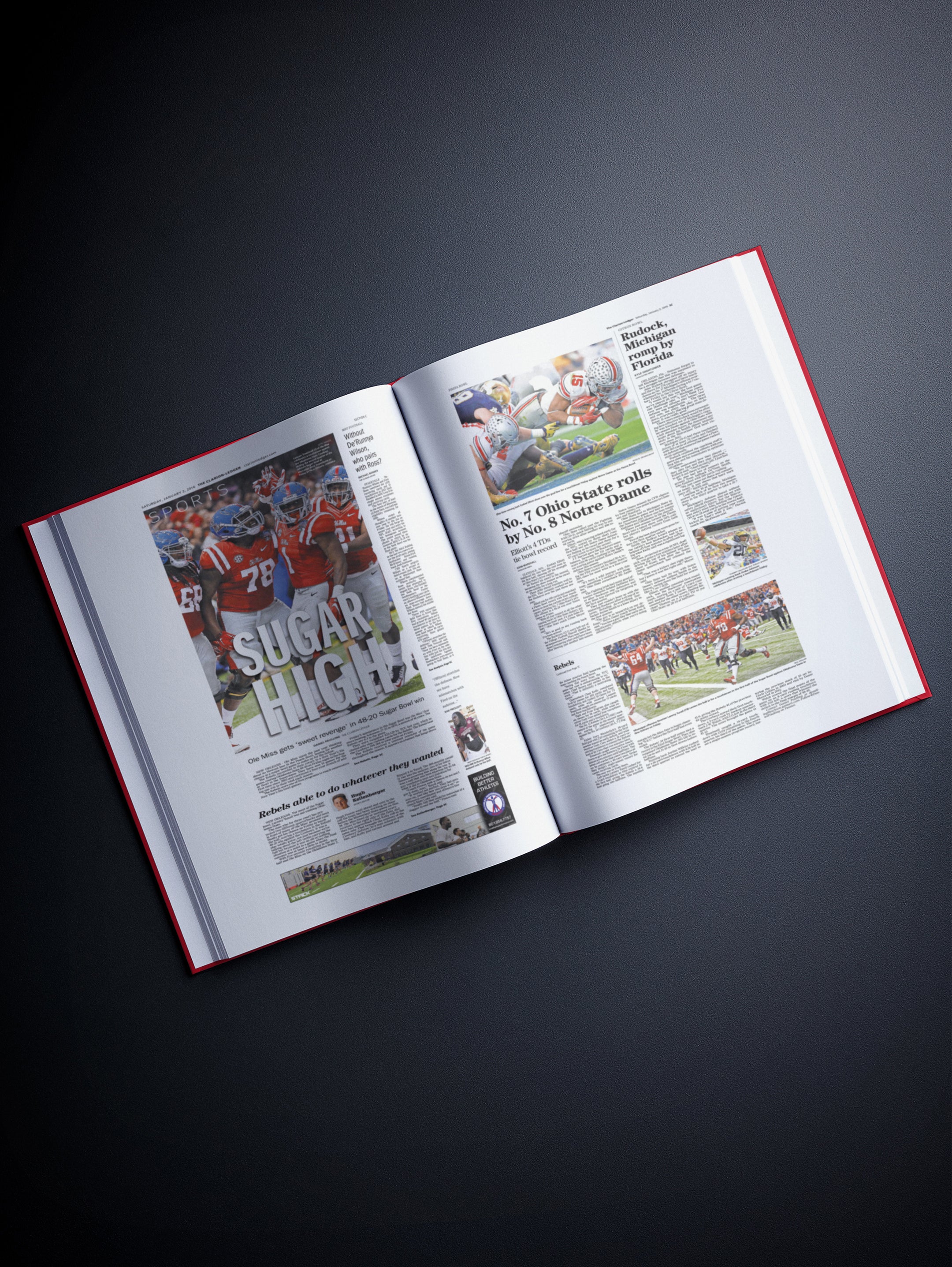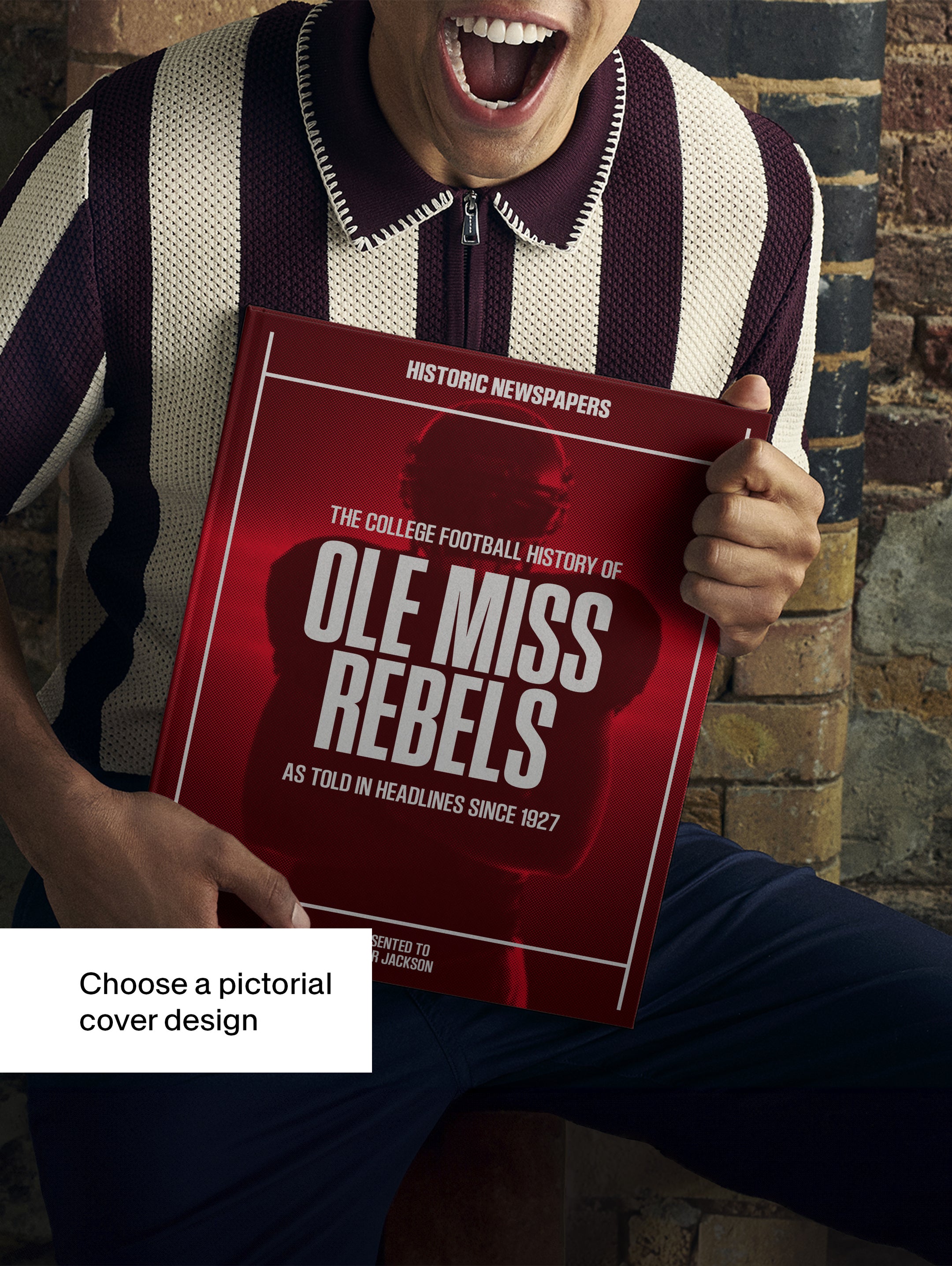 This coffee-table book features 170 pages of authentic Clarion Ledger newspaper reports about The History of Ole Miss Rebels College Football. It comes with a choice of covers and the option to have the recipient’s name printed on the cover for free.