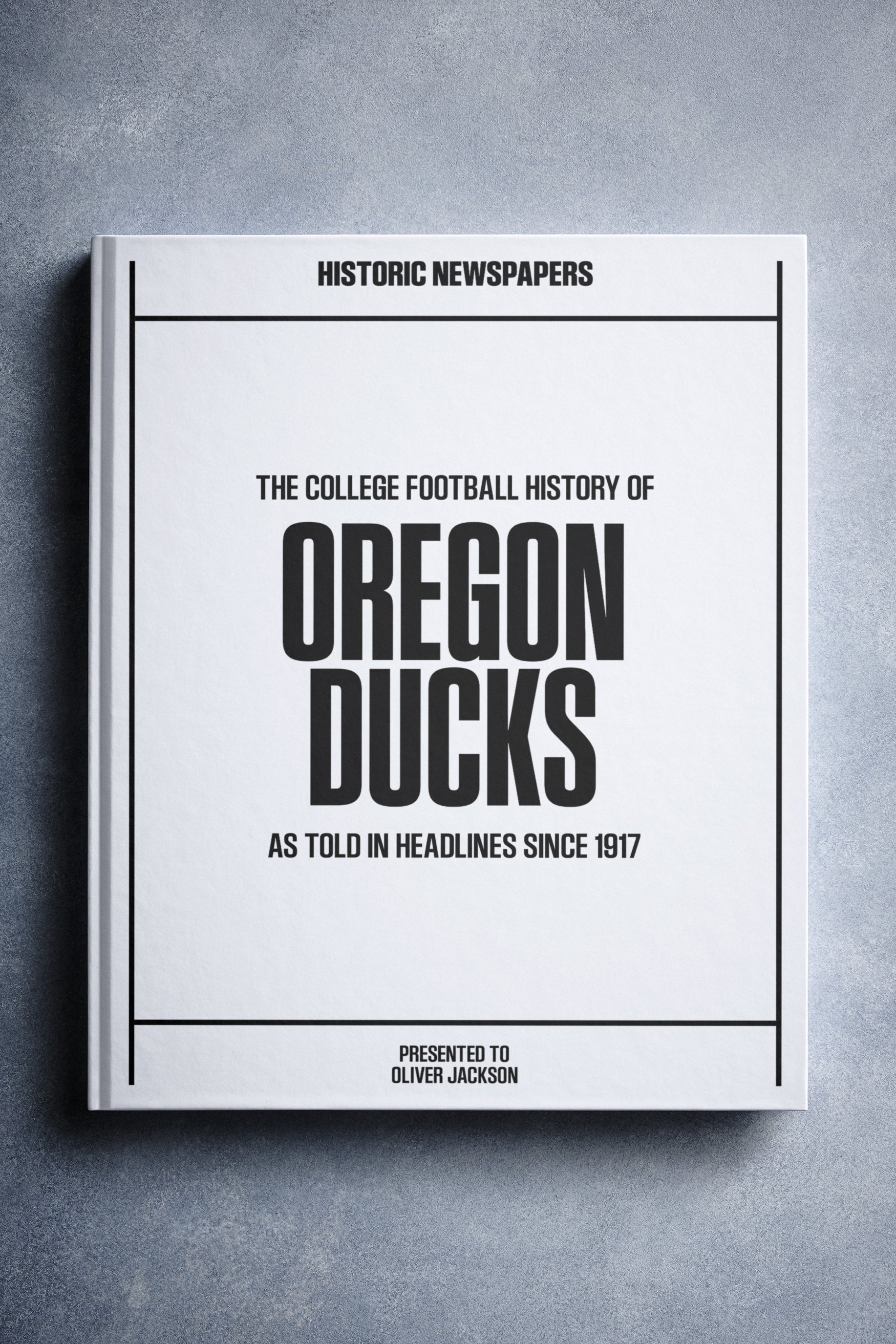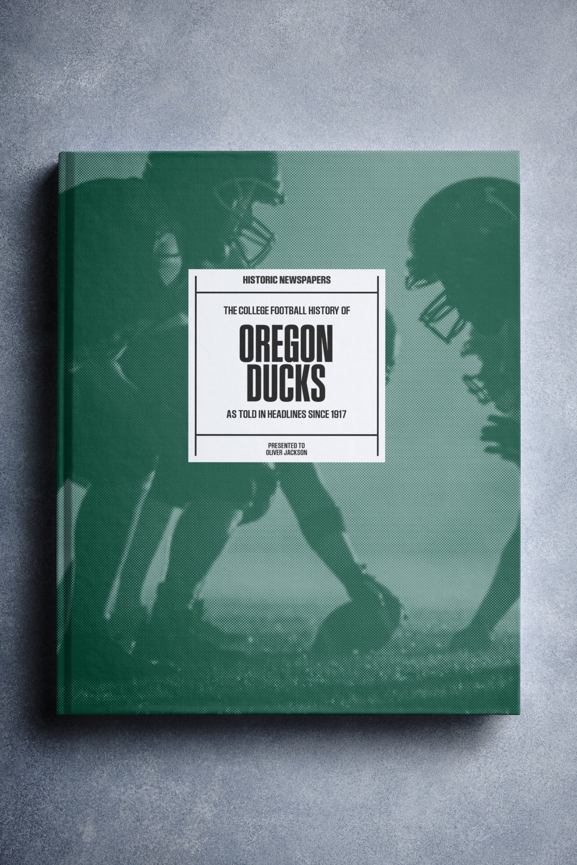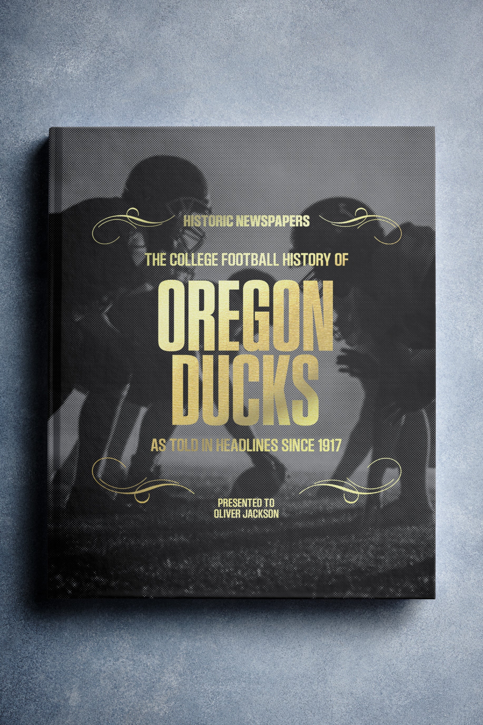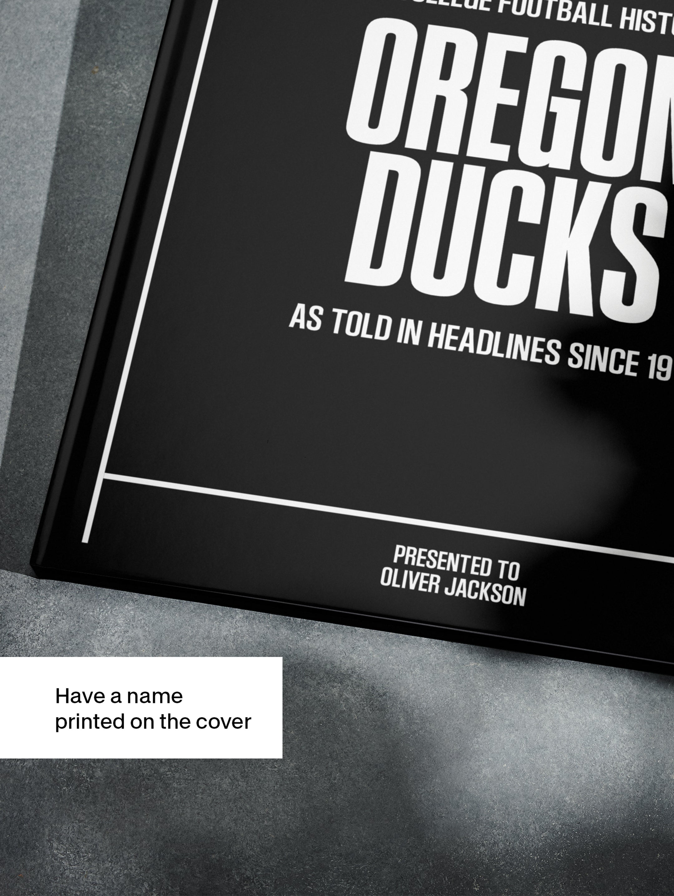 This coffee-table book features over 160 pages of authentic Register Guard and The Statesman Journal newspaper reports about The History of Oregon Ducks College Football. It comes with a choice of covers and the option to have the recipient’s name printed on the cover for free.