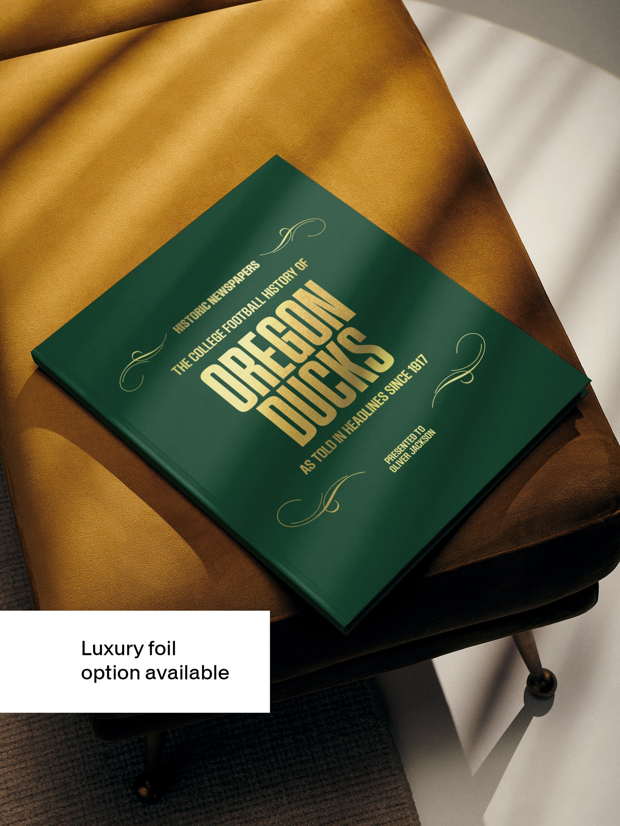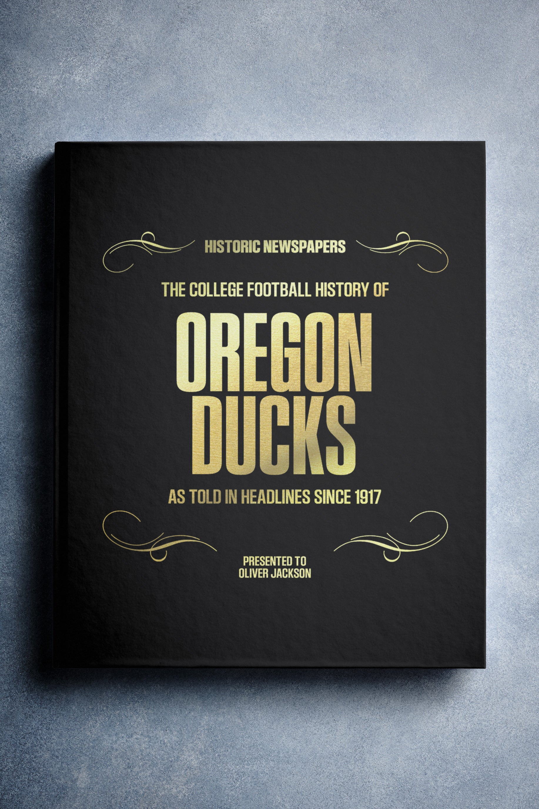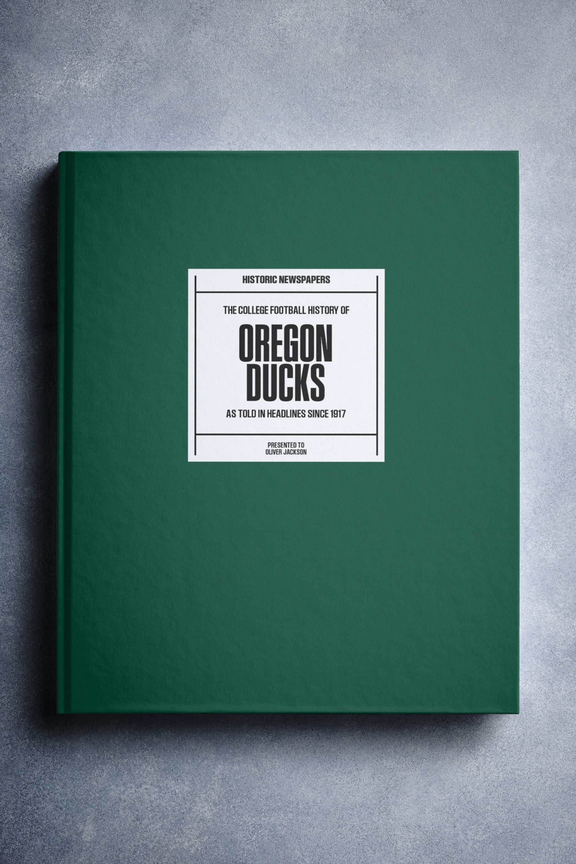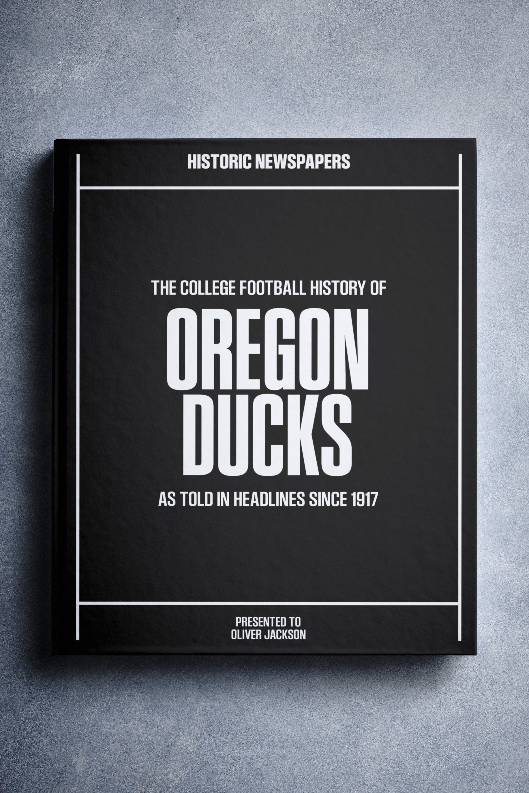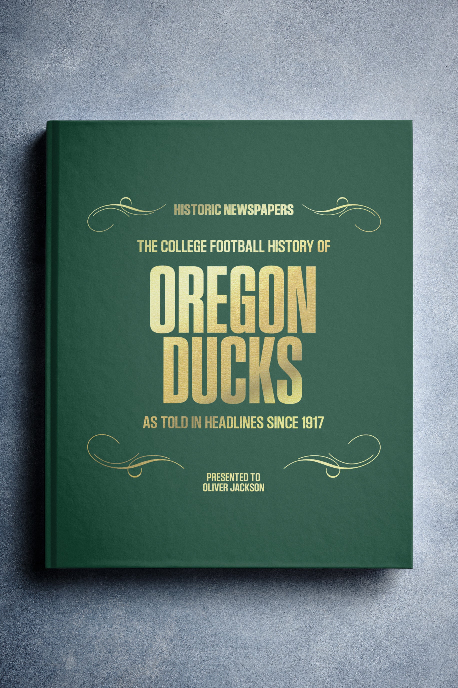 This coffee-table book features over 160 pages of authentic Register Guard and The Statesman Journal newspaper reports about The History of Oregon Ducks College Football. It comes with a choice of covers and the option to have the recipient’s name printed on the cover for free.
