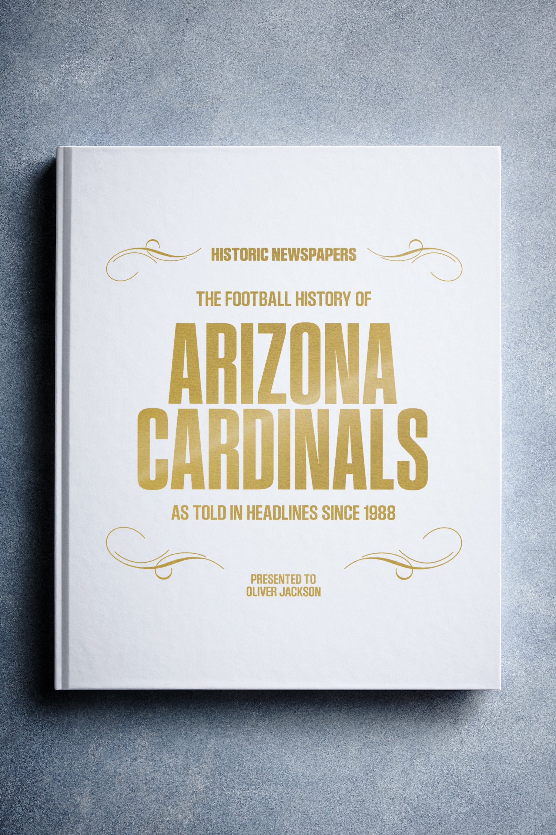 This personalized football book honors the Arizona Cardinals' legacy and is a top choice among Arizona Cardinals Gifts. The coffee-table book features over 150 pages of authentic Arizona Republic newspaper reports about The Arizona Cardinals, from 1988 onwards.