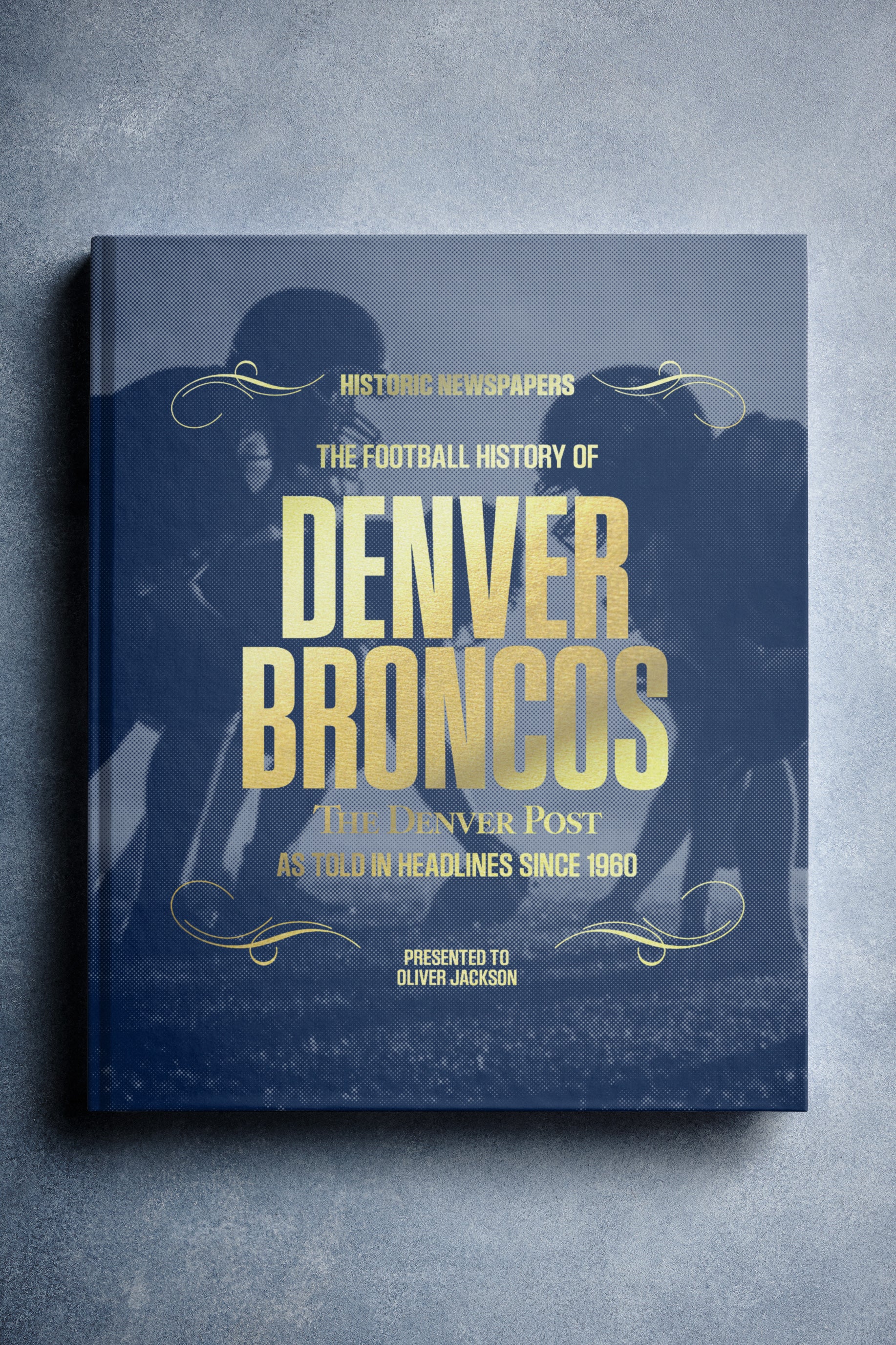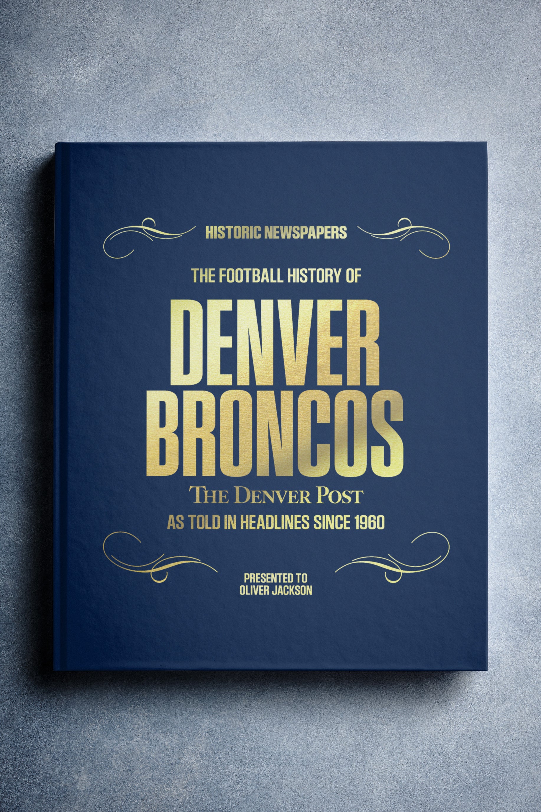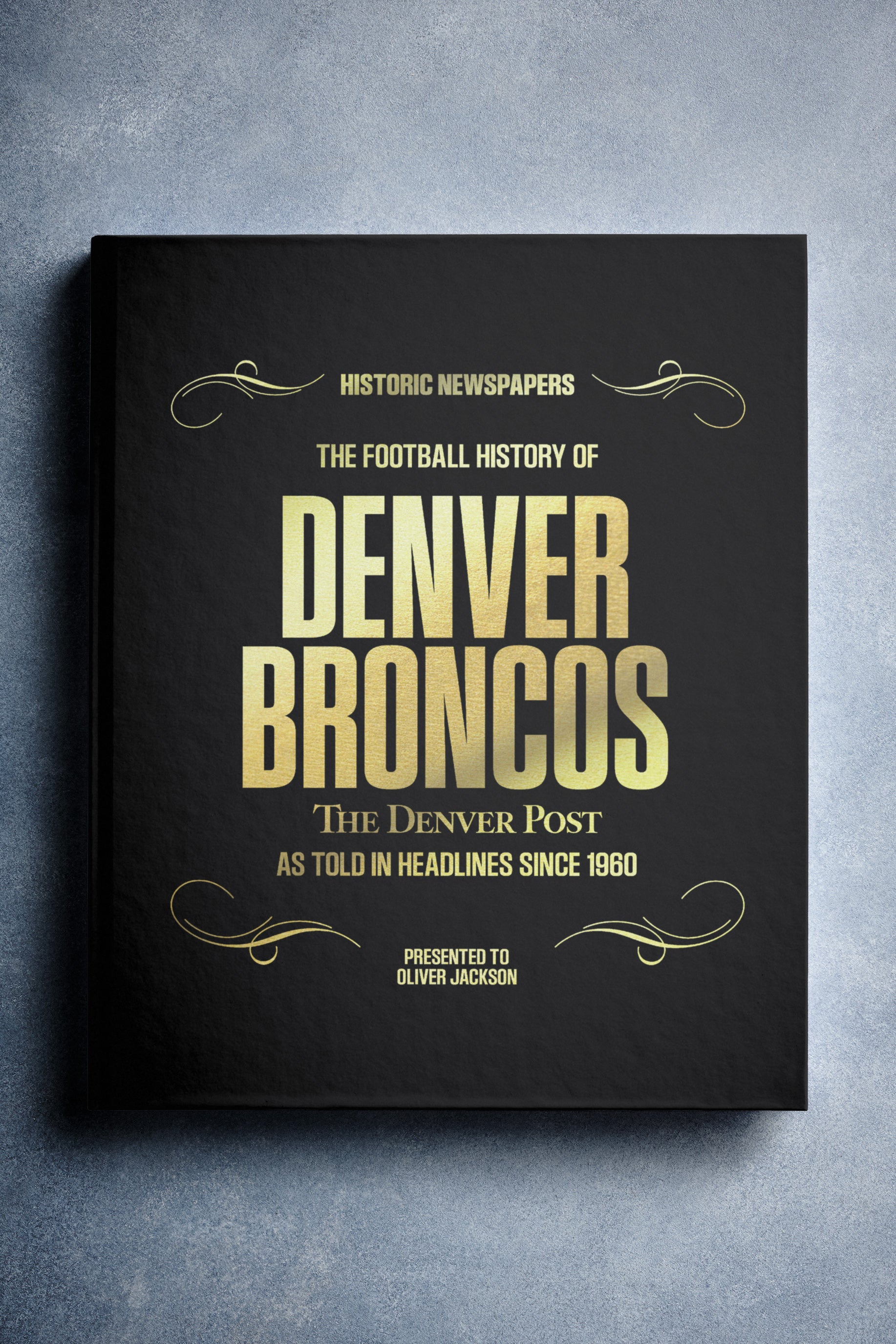 This personalized football book honors the Denver Broncos' legacy and is a top choice among Denver Broncos Gifts.