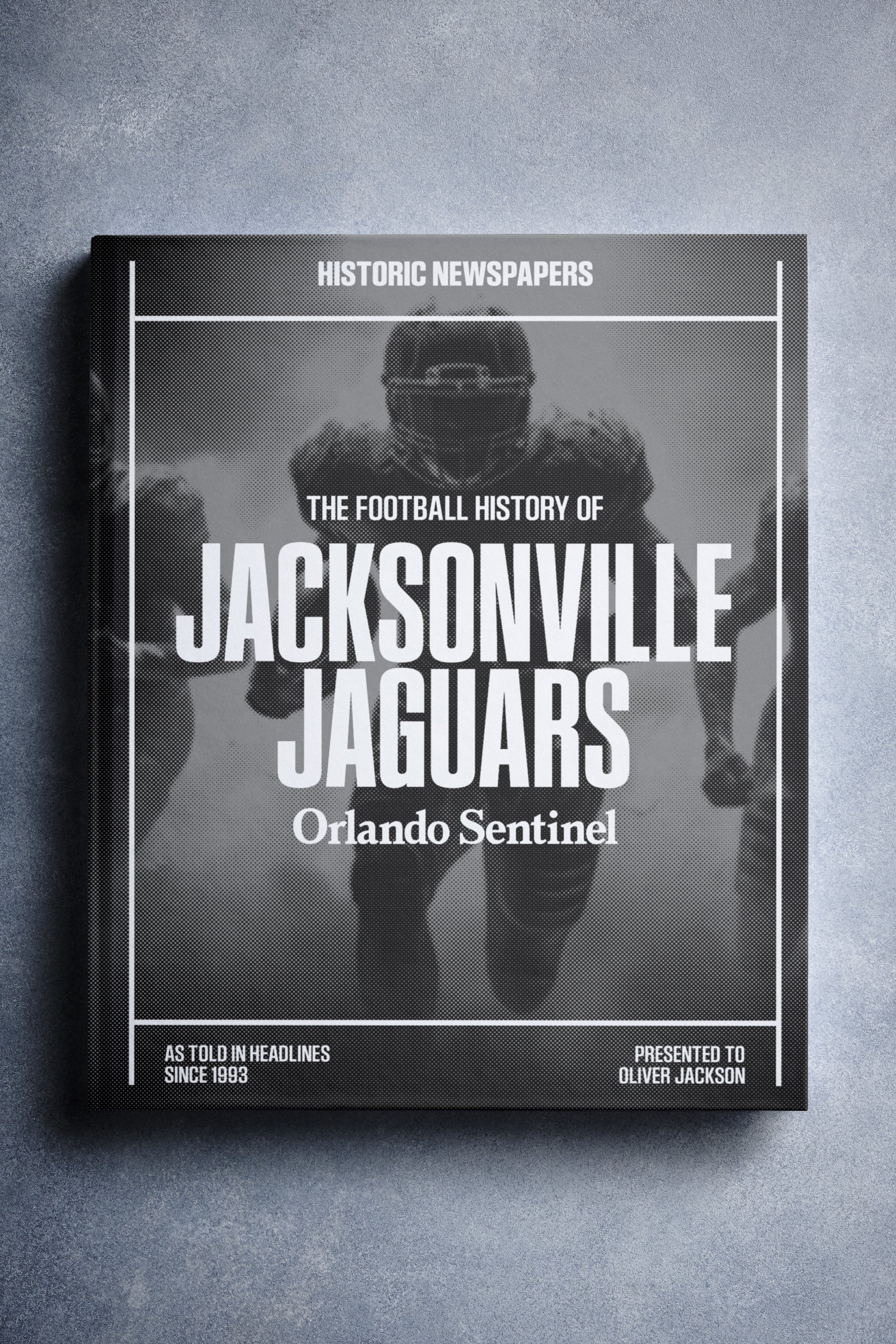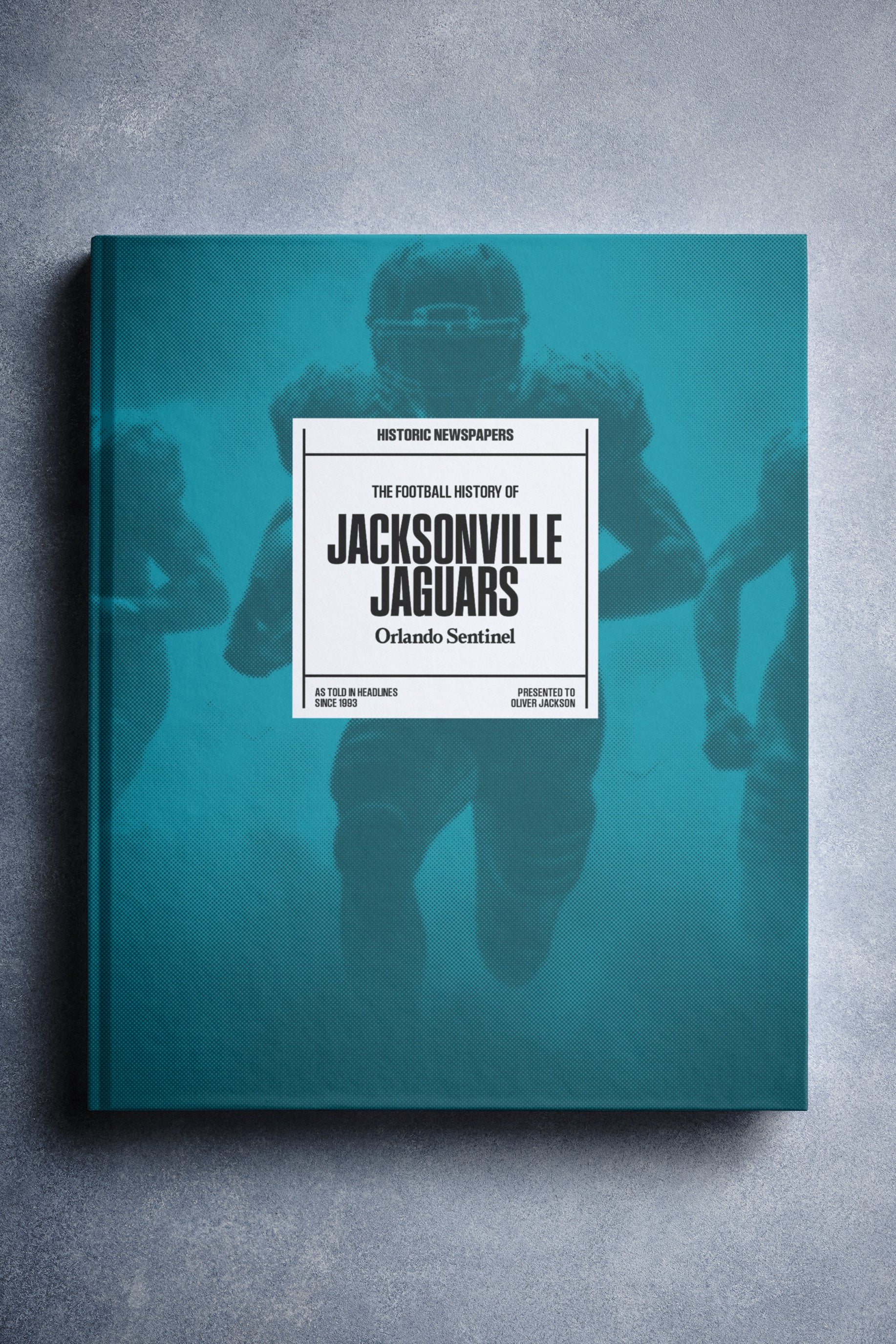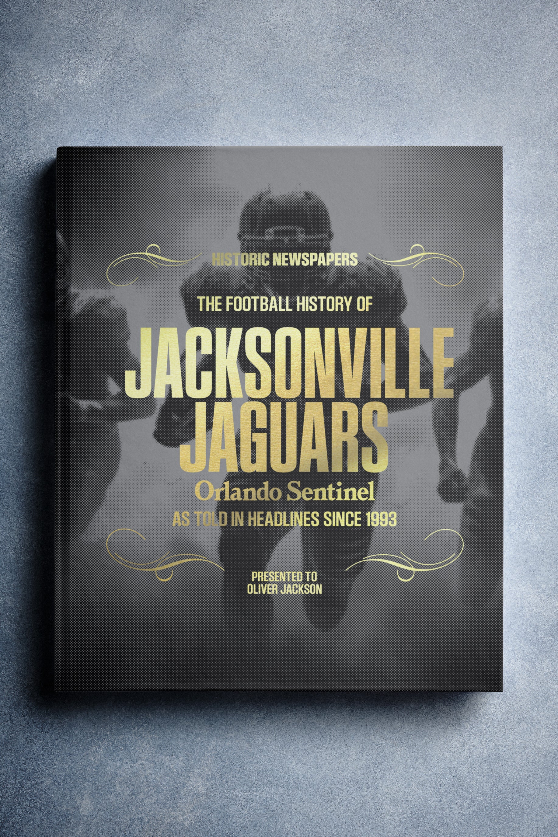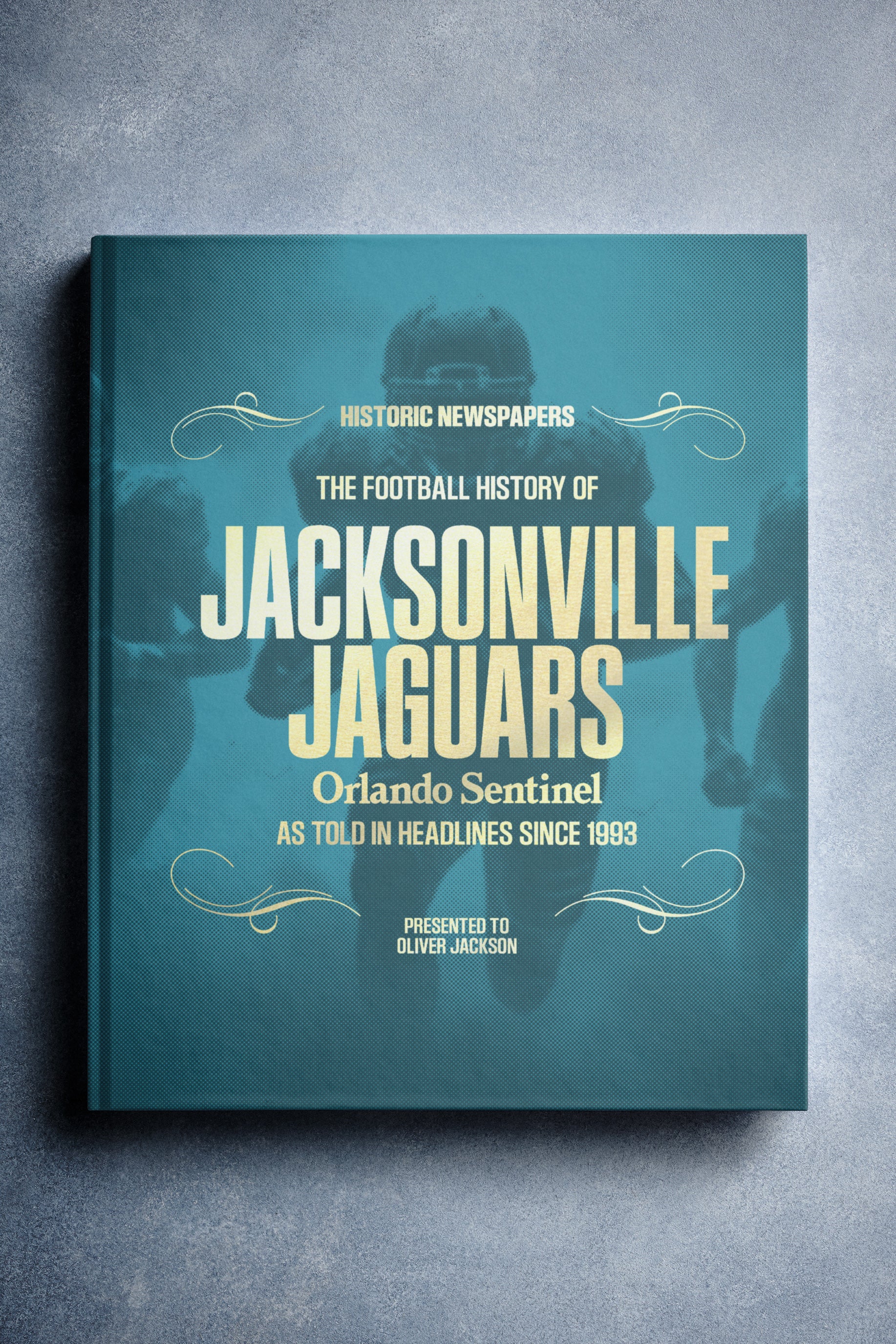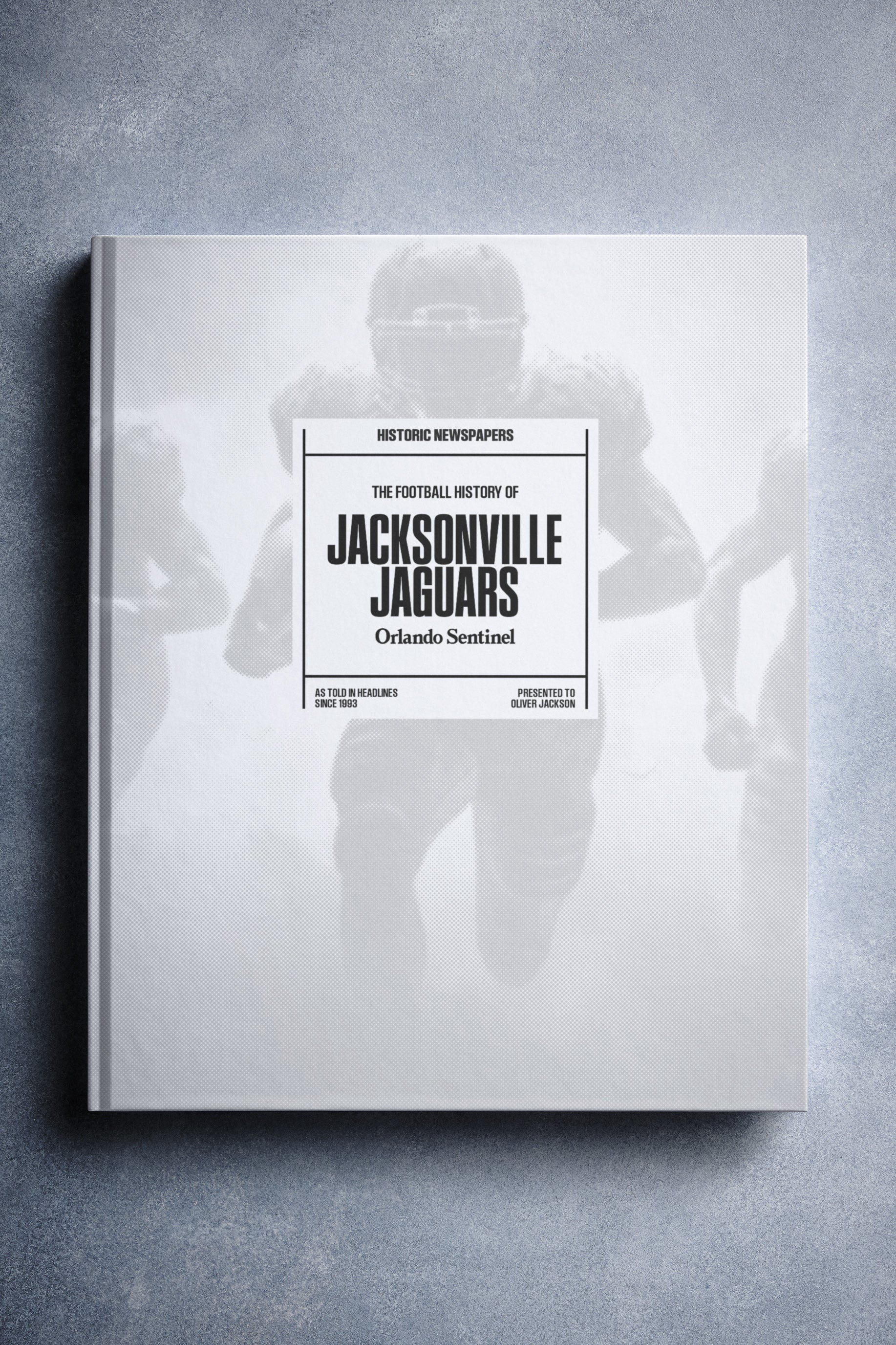This personalized football book covers the history of the Jacksonville Jaguars, honoring the team's legacy and making it a top choice among Jacksonville Jaguars Gifts.