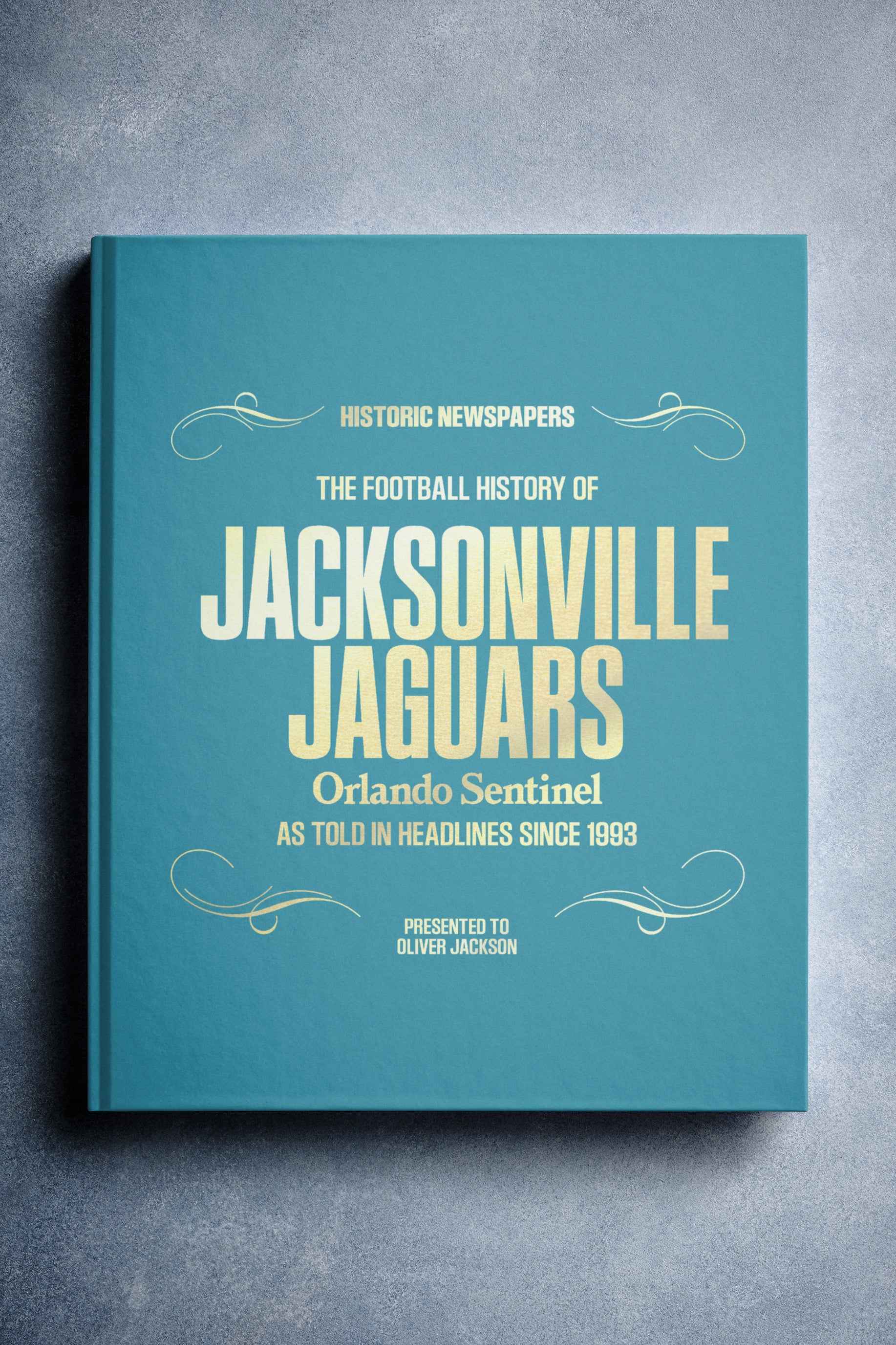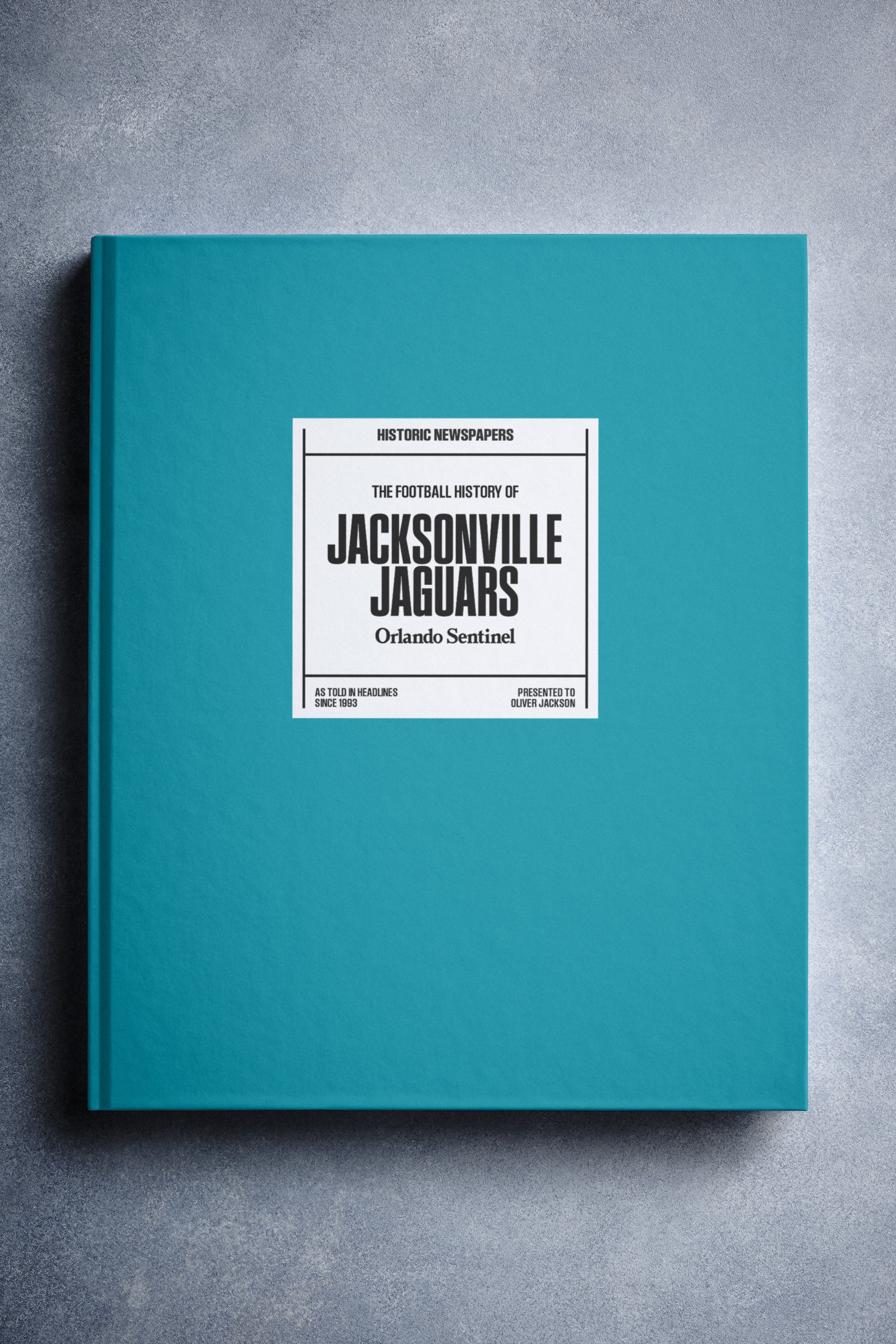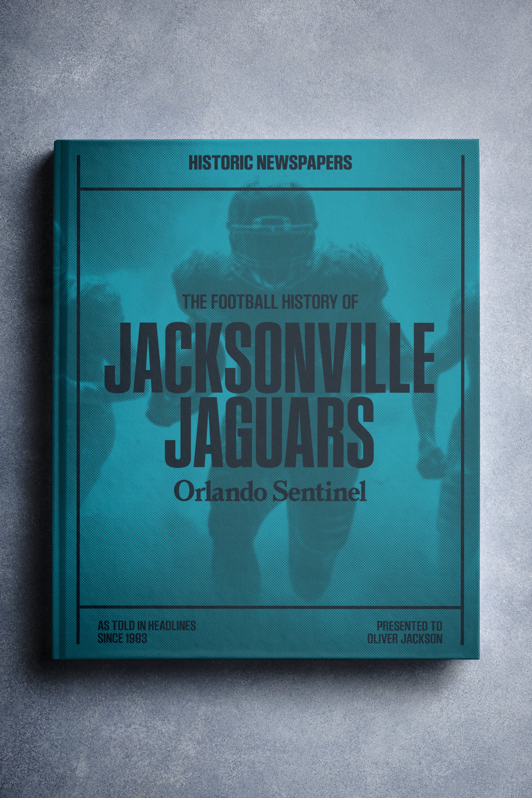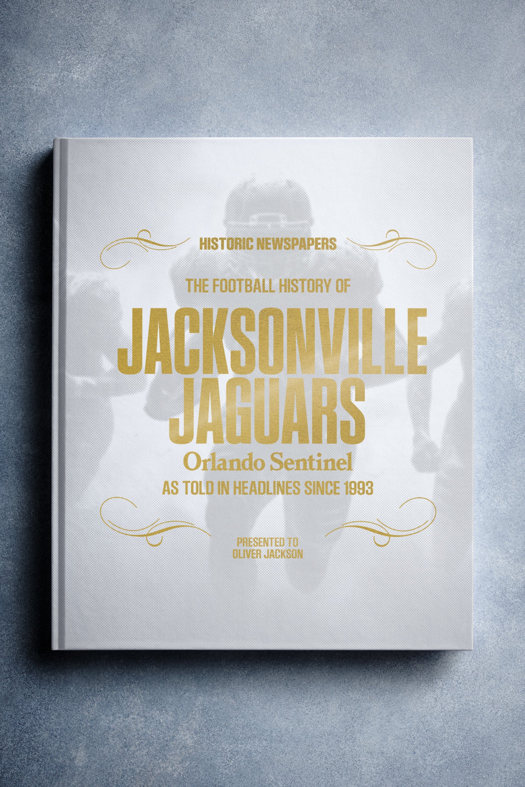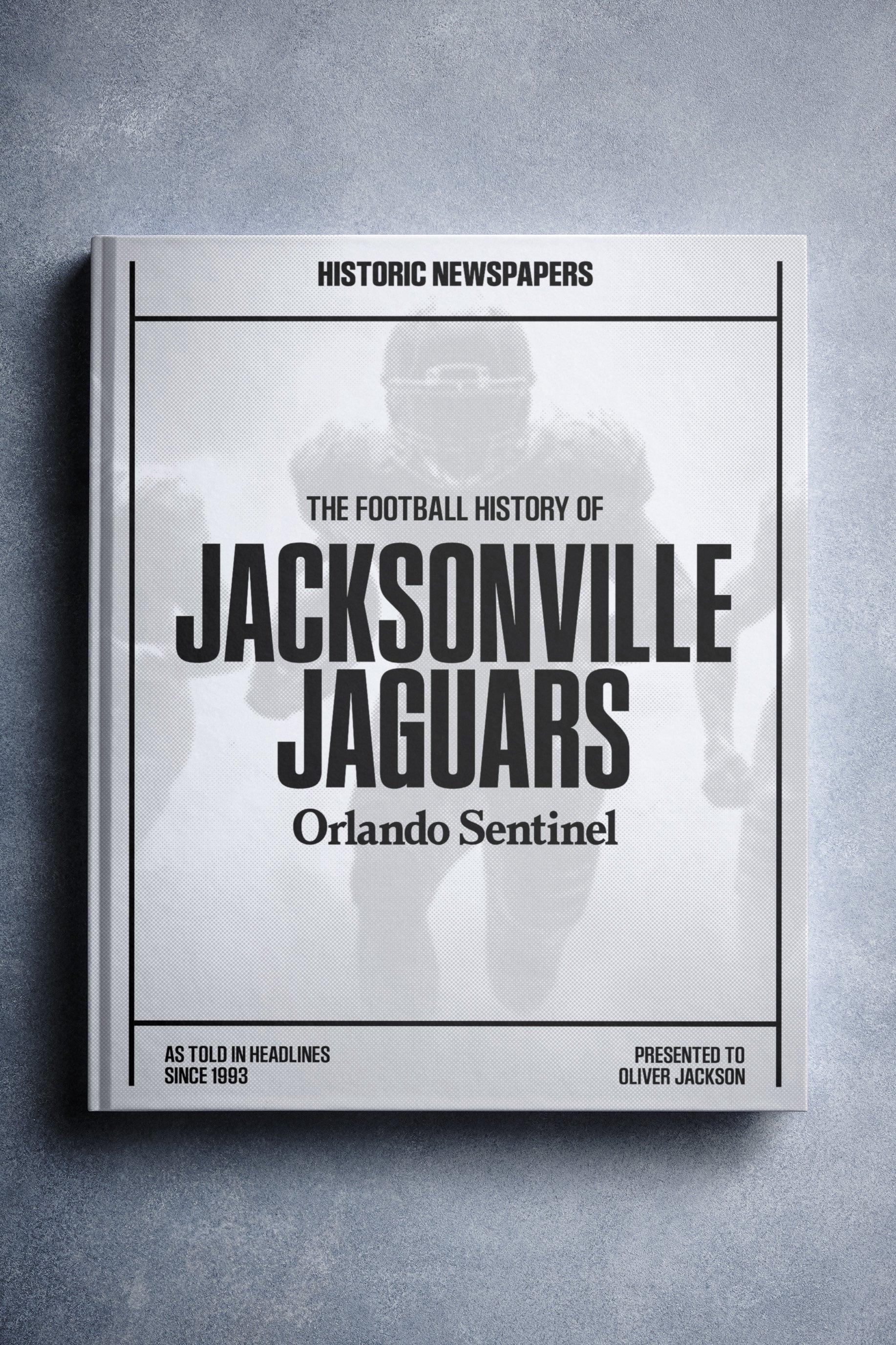 This personalized football book covers the history of the Jacksonville Jaguars, honoring the team's legacy and making it a top choice among Jacksonville Jaguars Gifts.