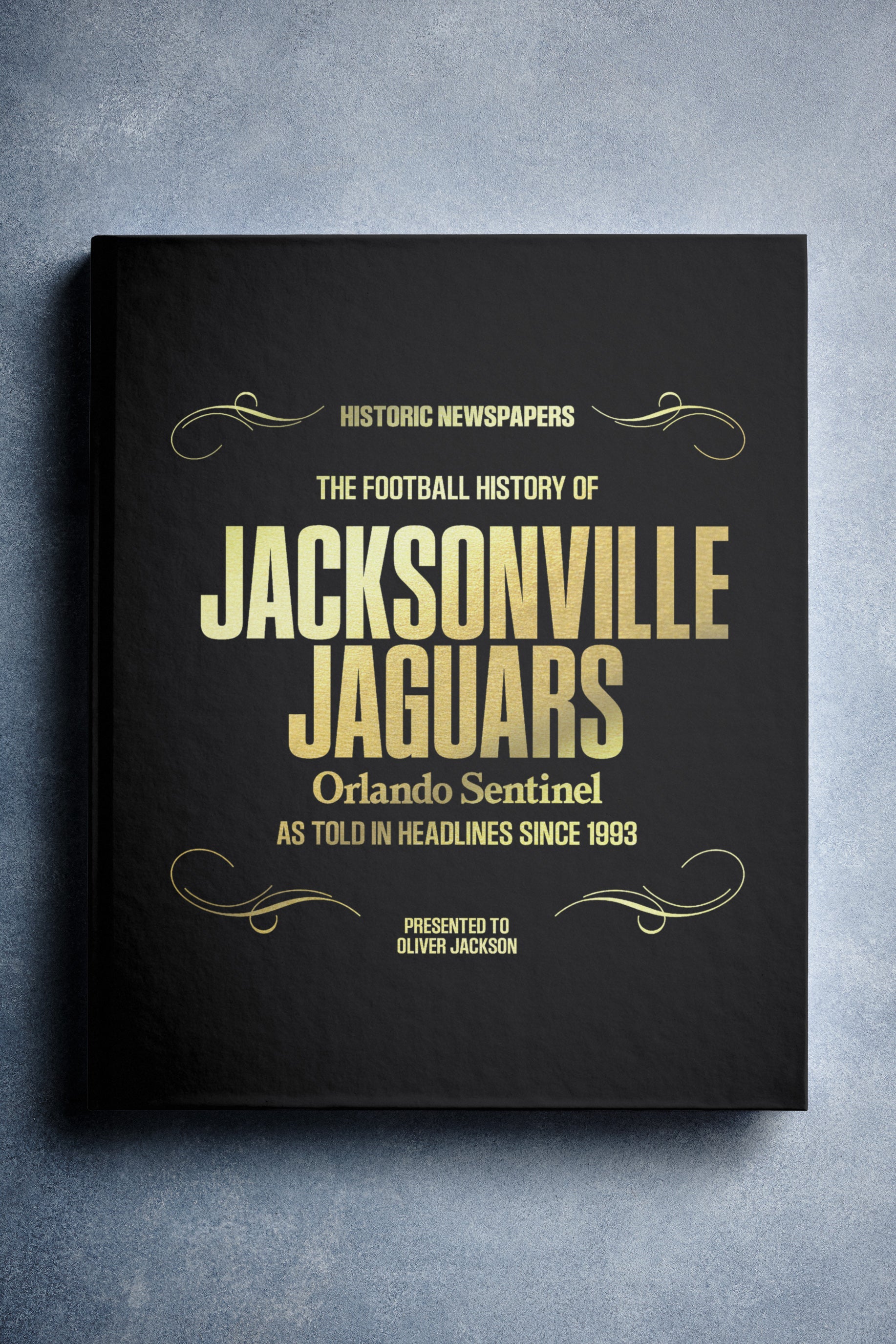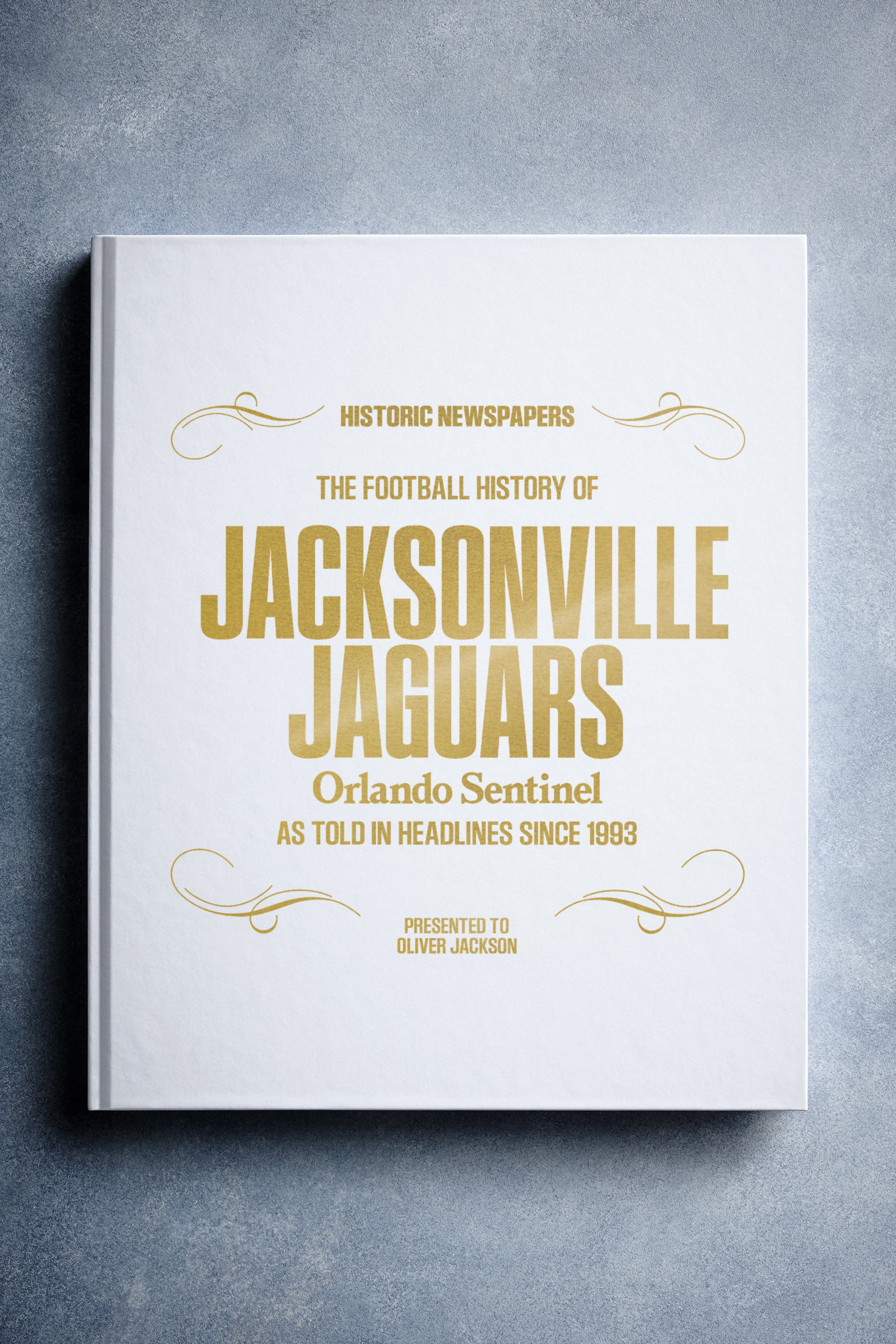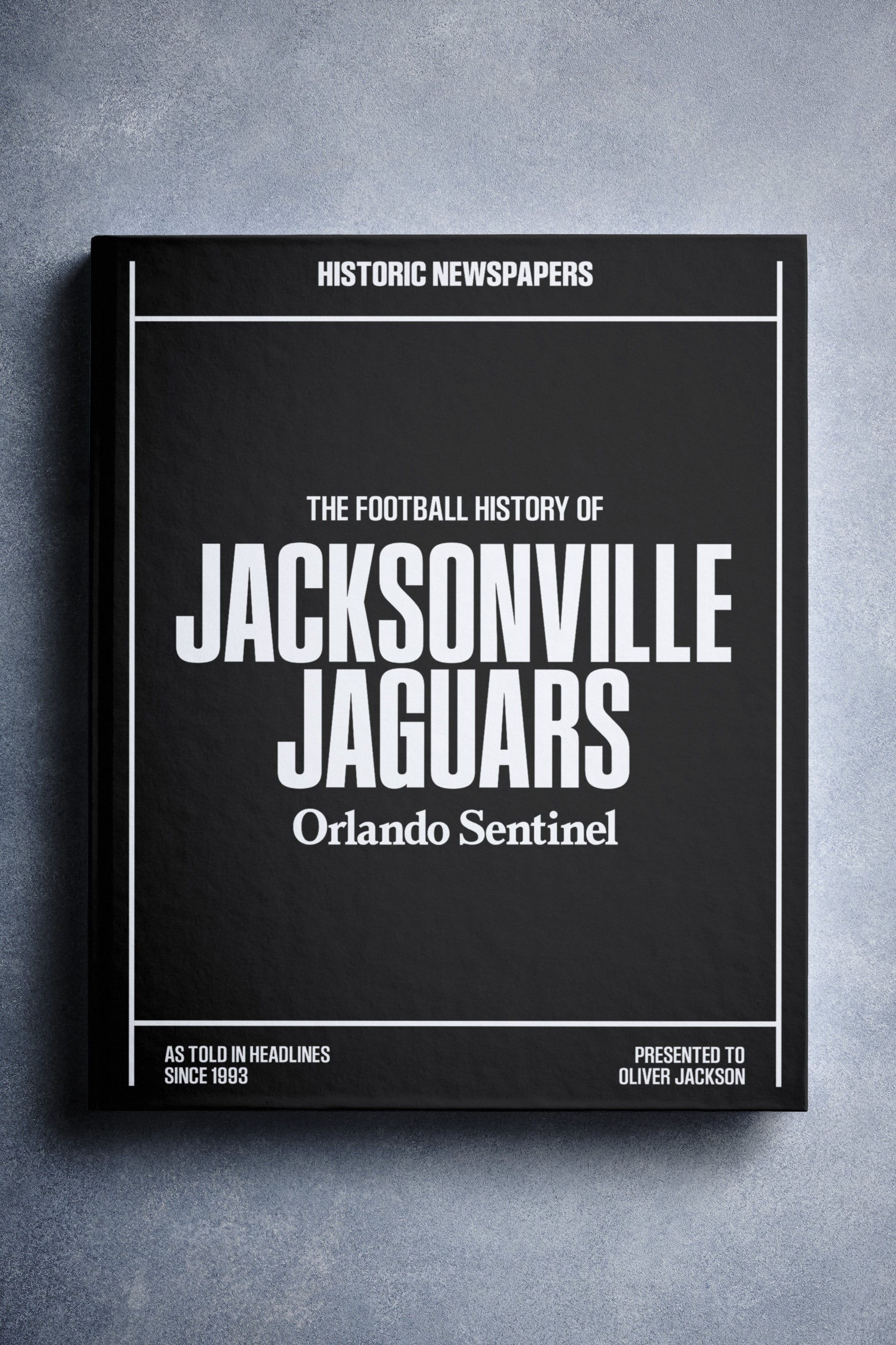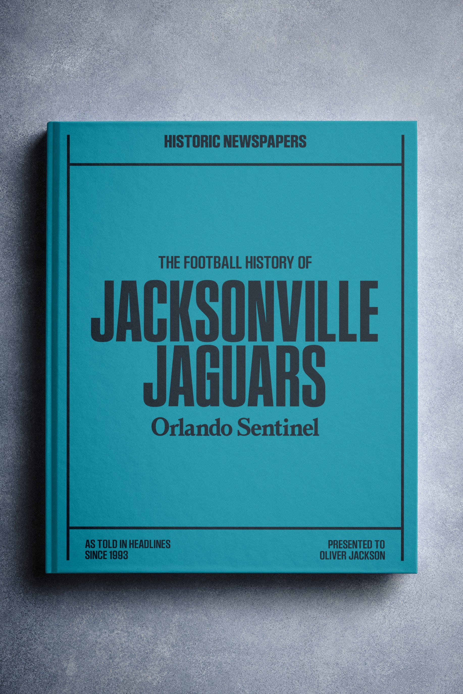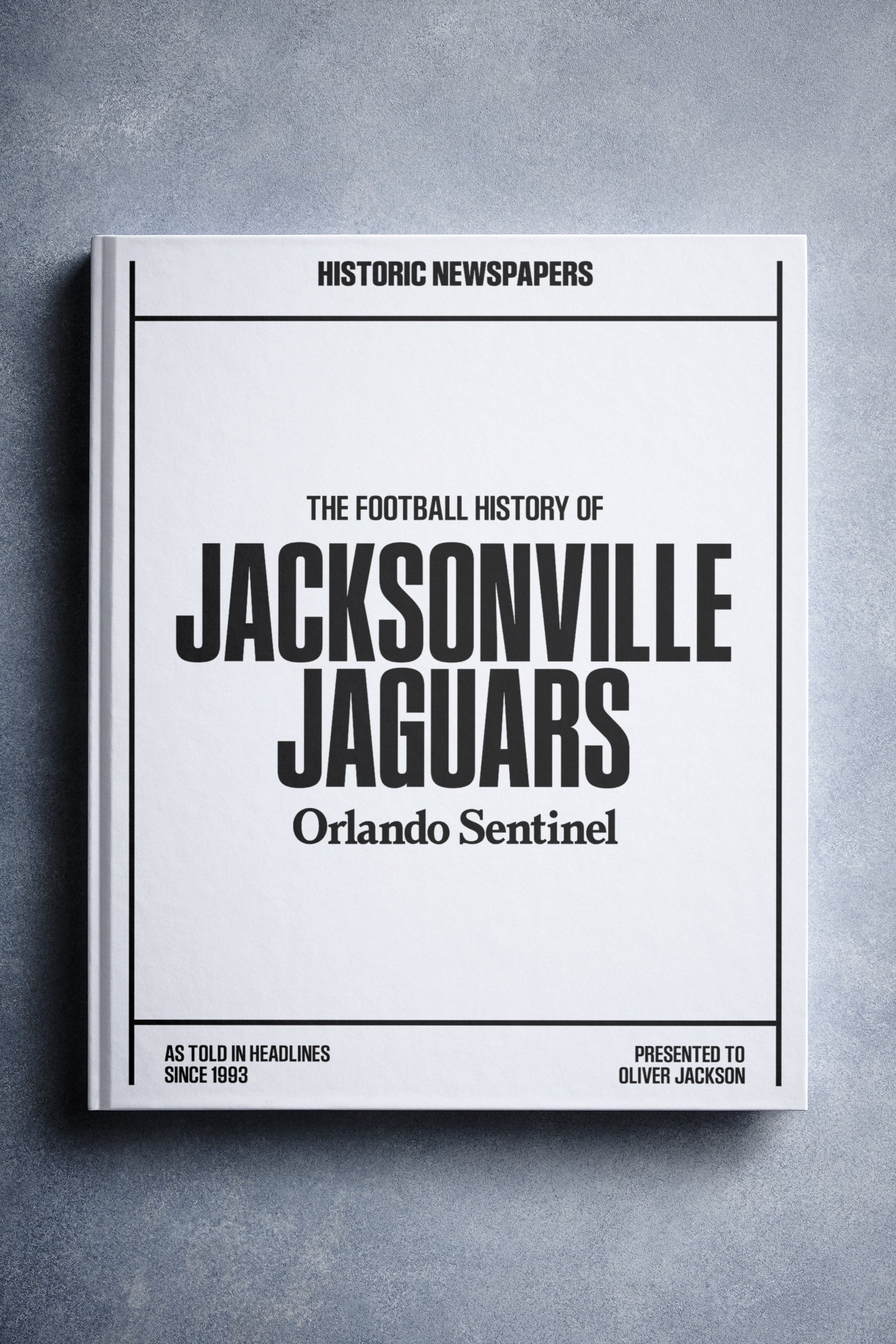 This personalized football book covers the history of the Jacksonville Jaguars, honoring the team's legacy and making it a top choice among Jacksonville Jaguars Gifts.