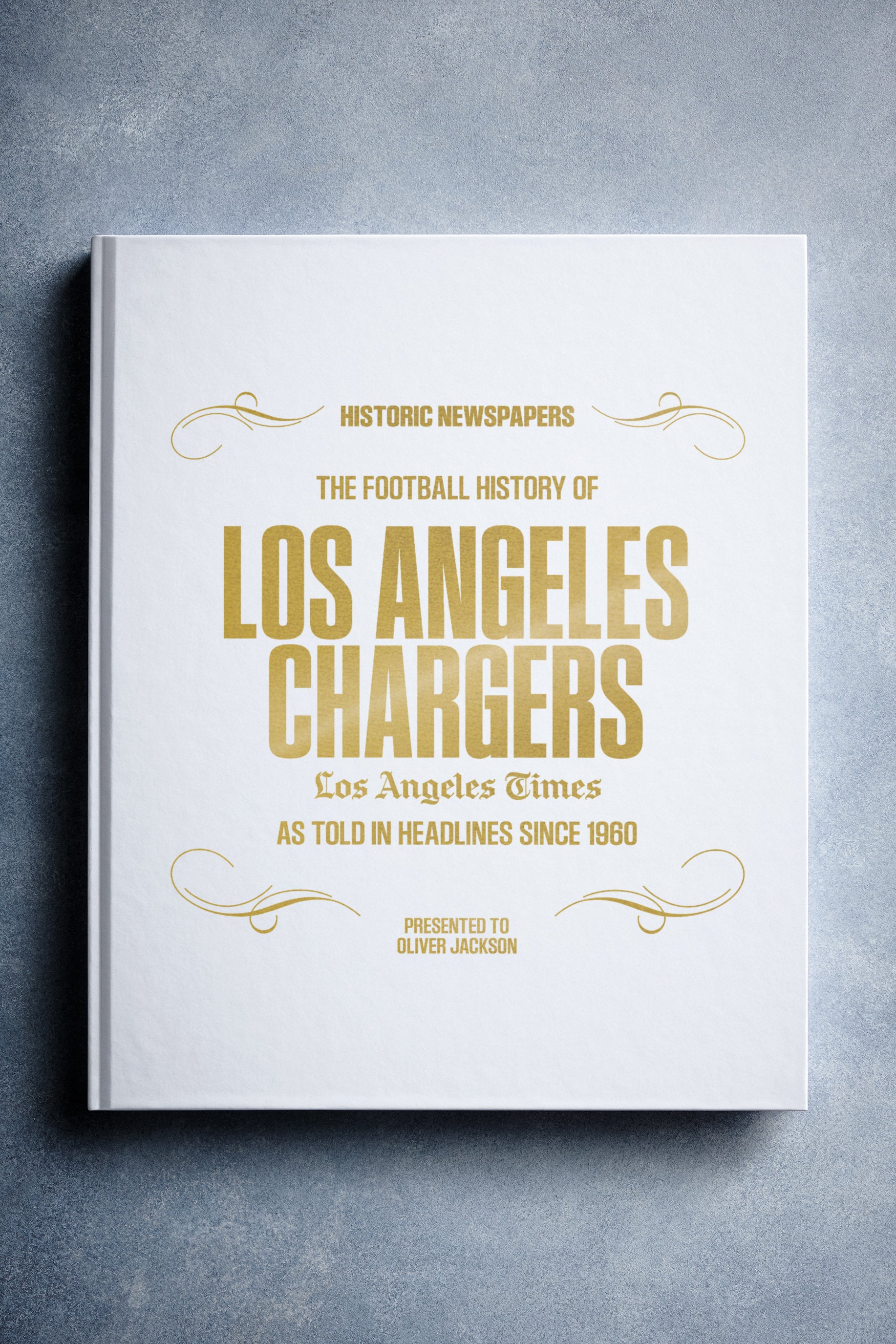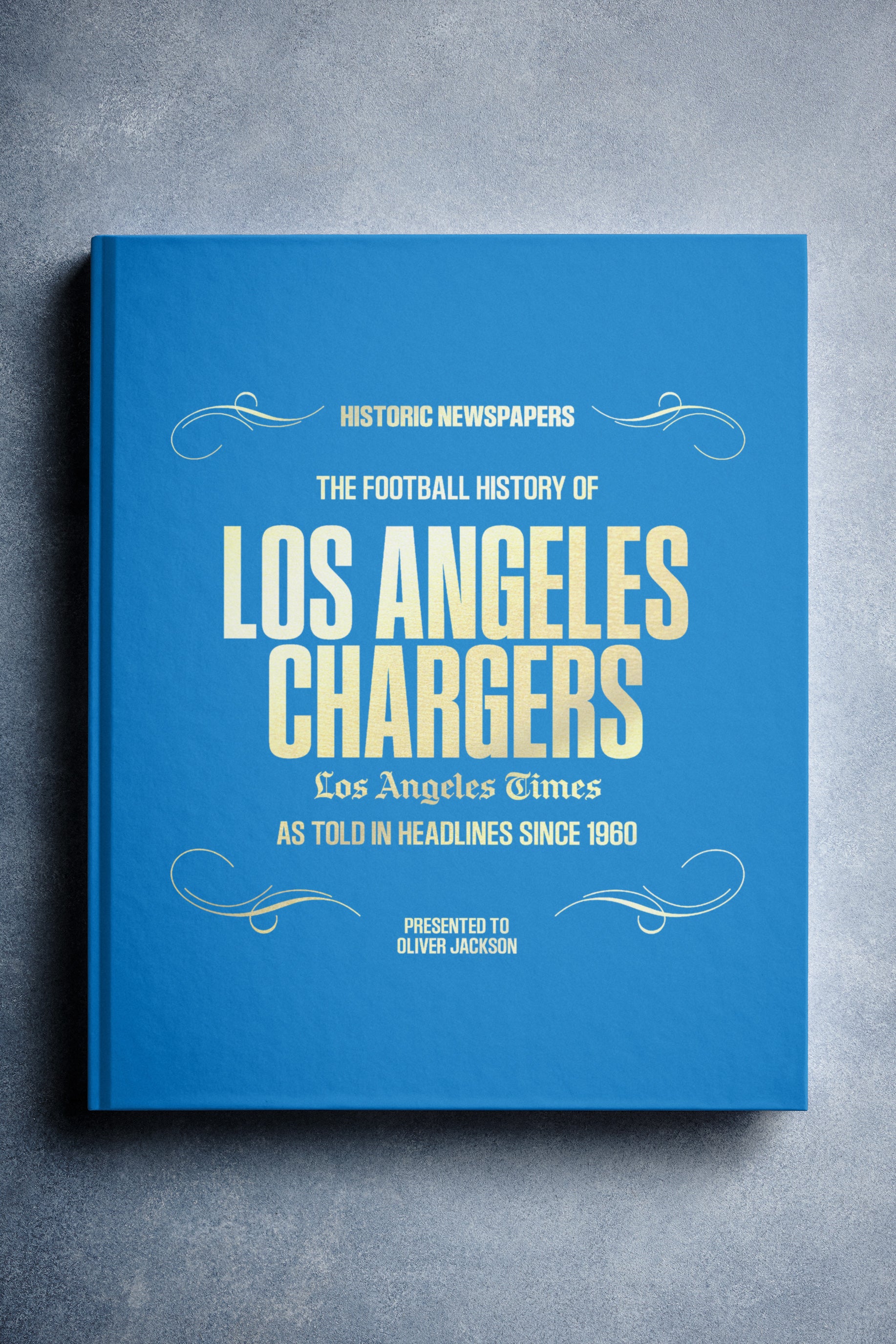 This personalized football book covers the history of the Los Angeles Chargers, honoring the team's legacy and making it a top choice among Los Angeles Chargers Gifts.