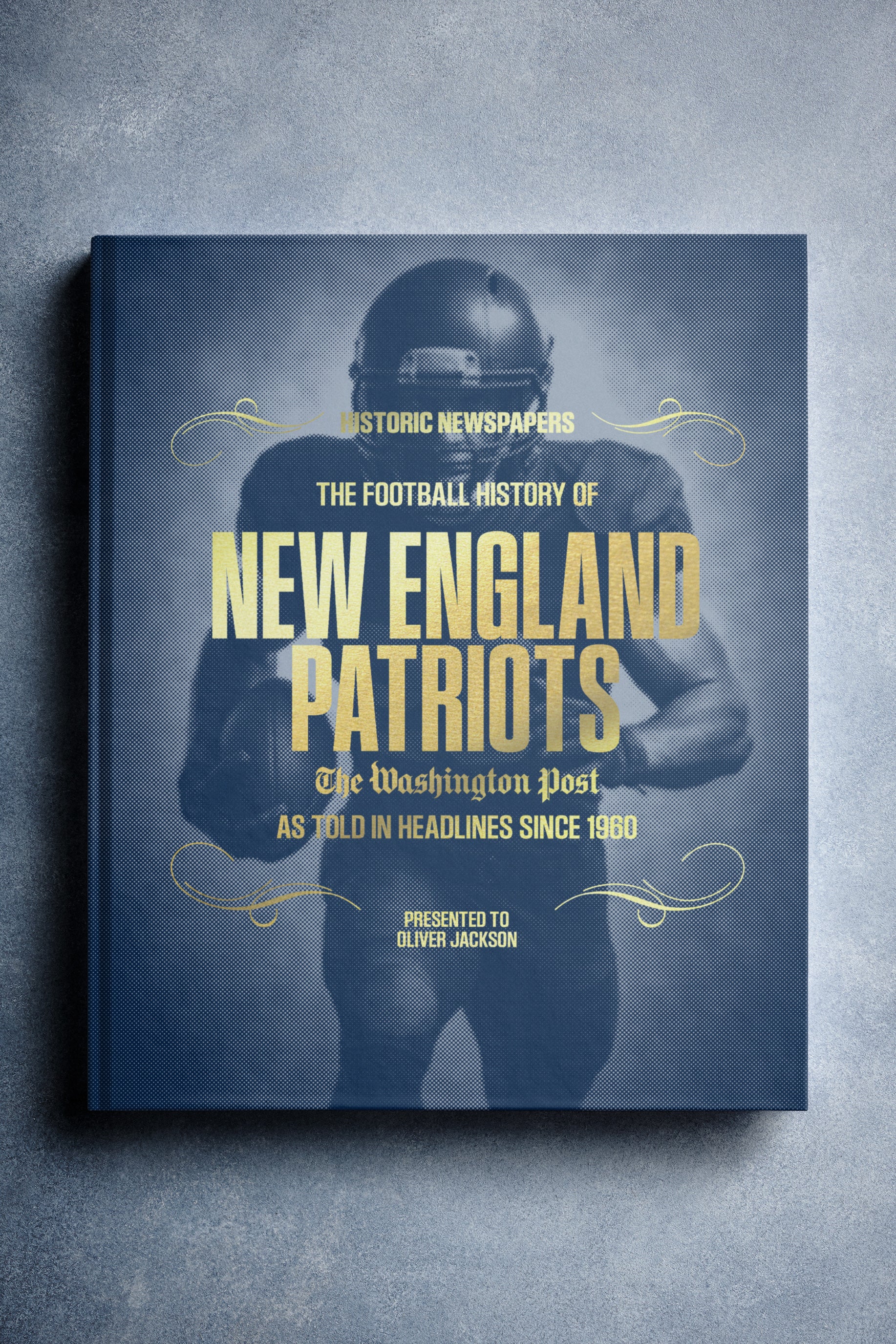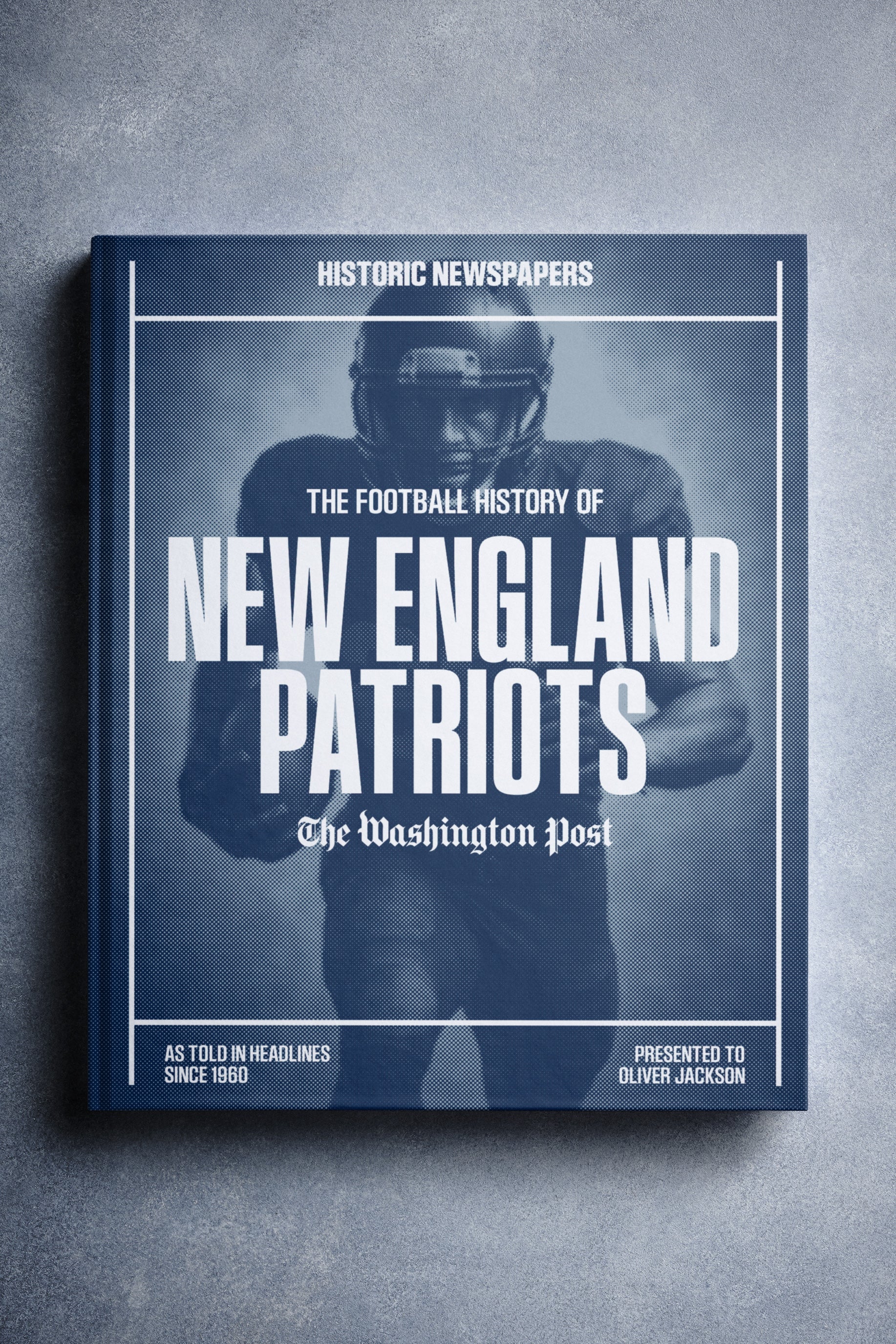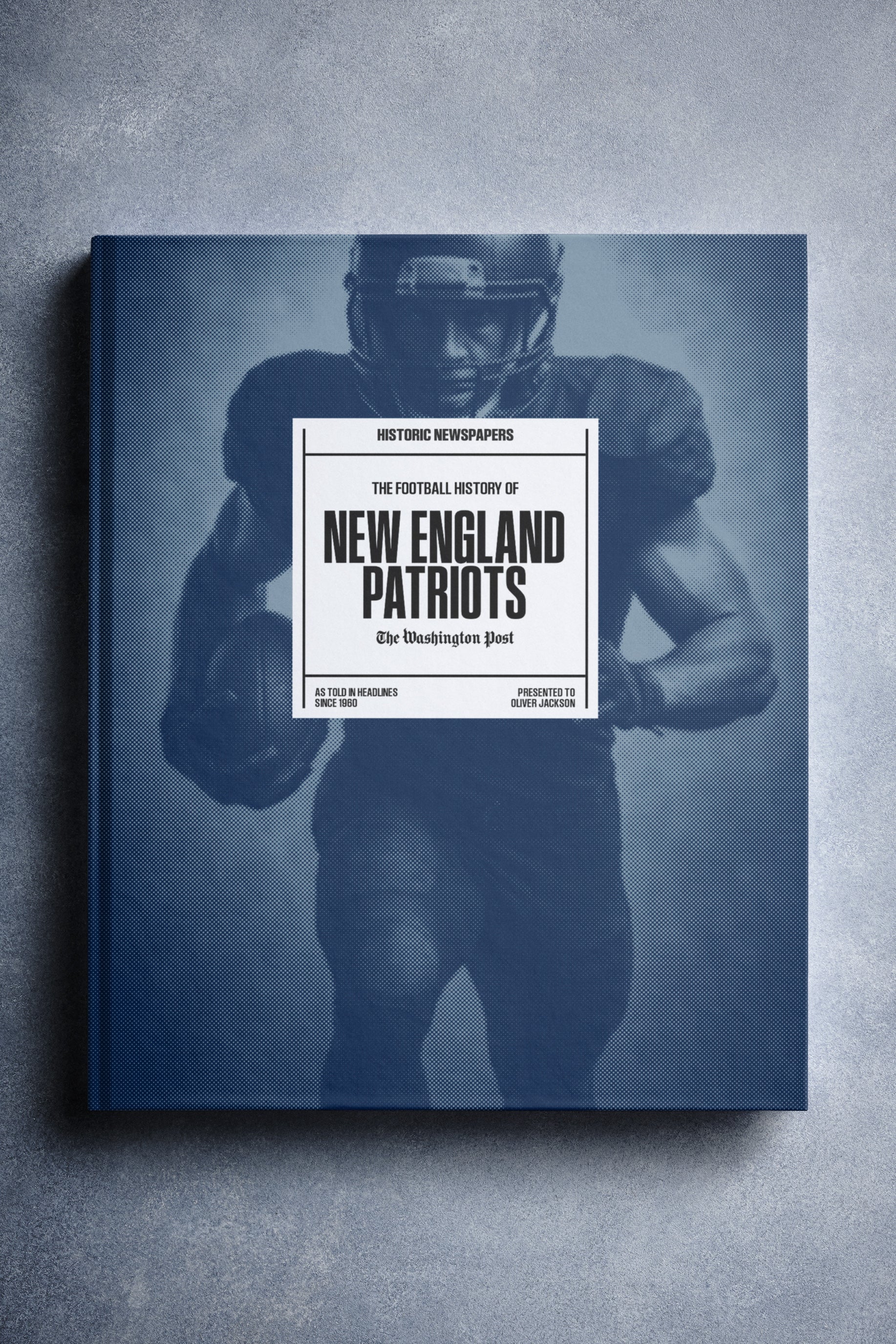 This personalized football book covers the history of the New England Patriots, honoring the team's legacy and making it a top choice among New England Patriots Gifts.