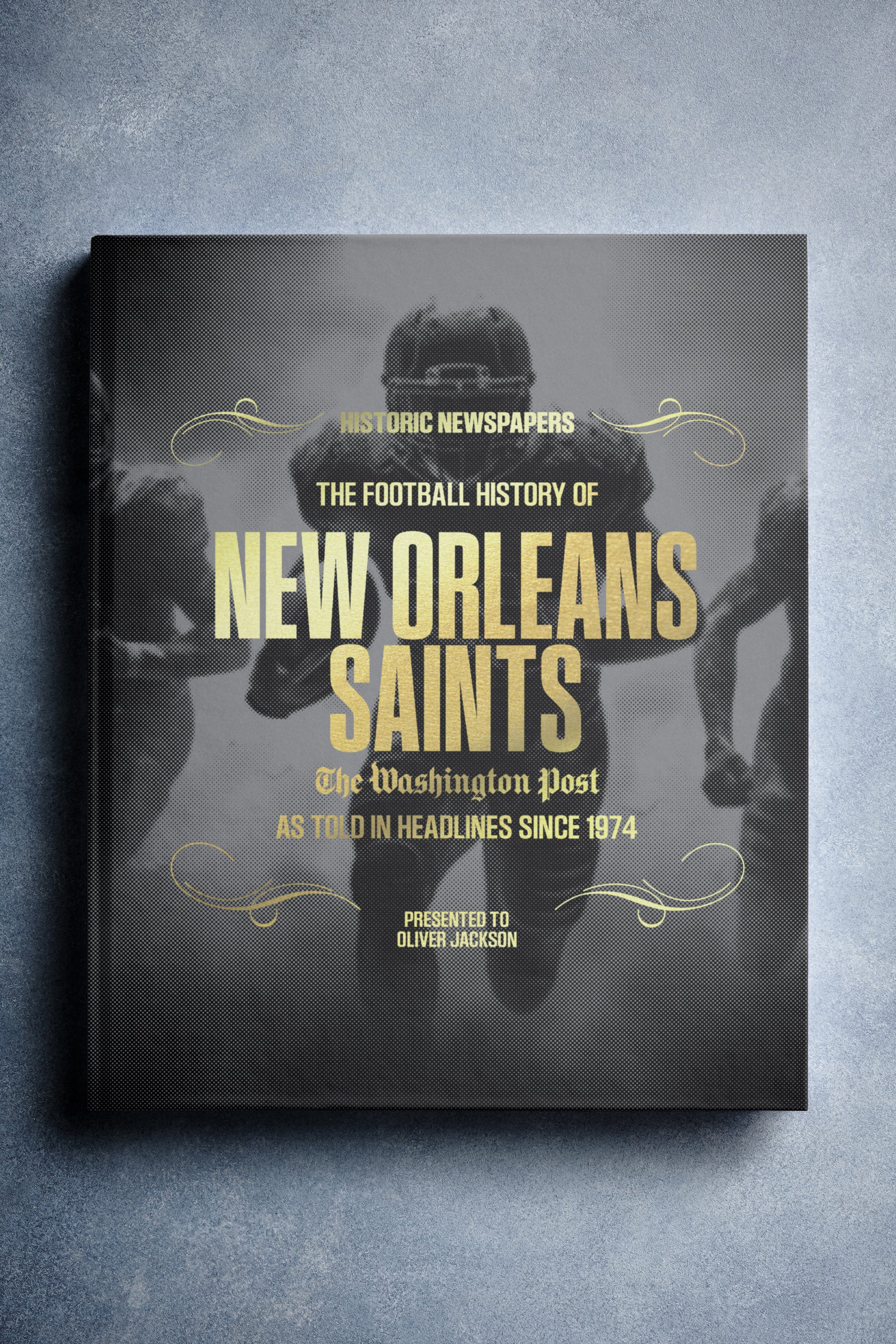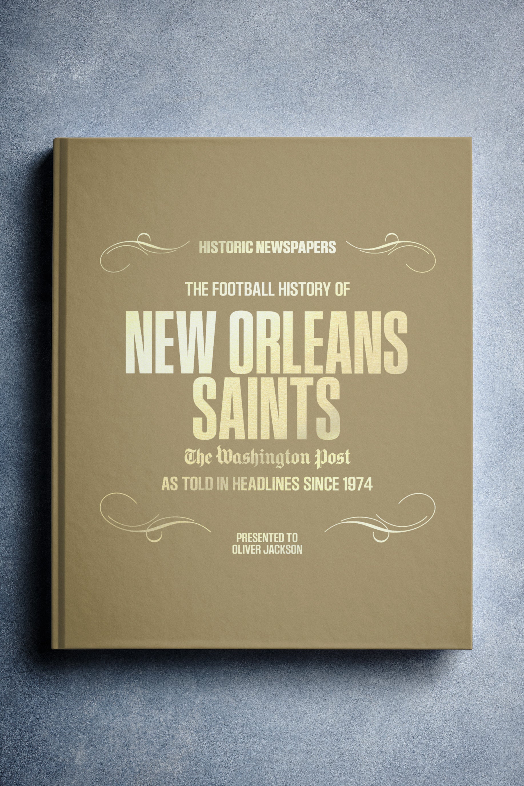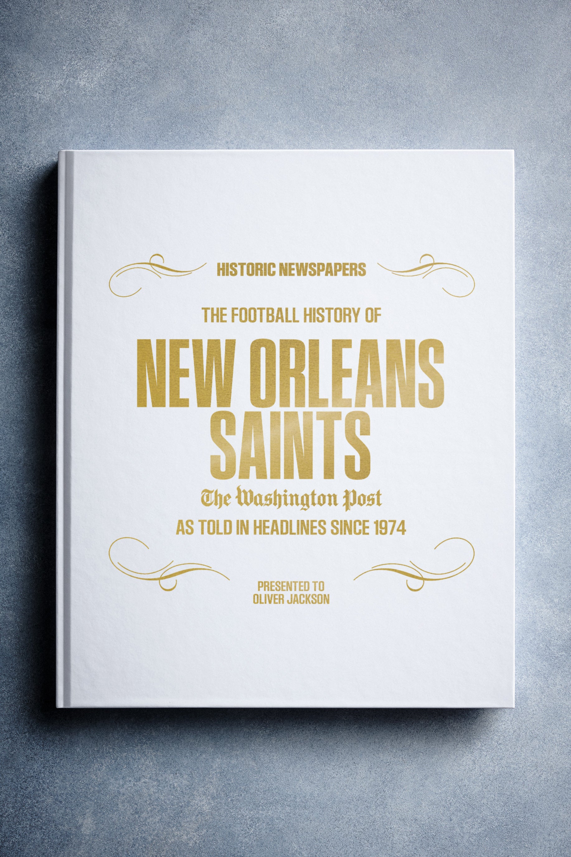 This personalized football book covers the history of the New Orleans Saints, honoring the team's legacy and making it a top choice among New Orleans Saints Gifts.