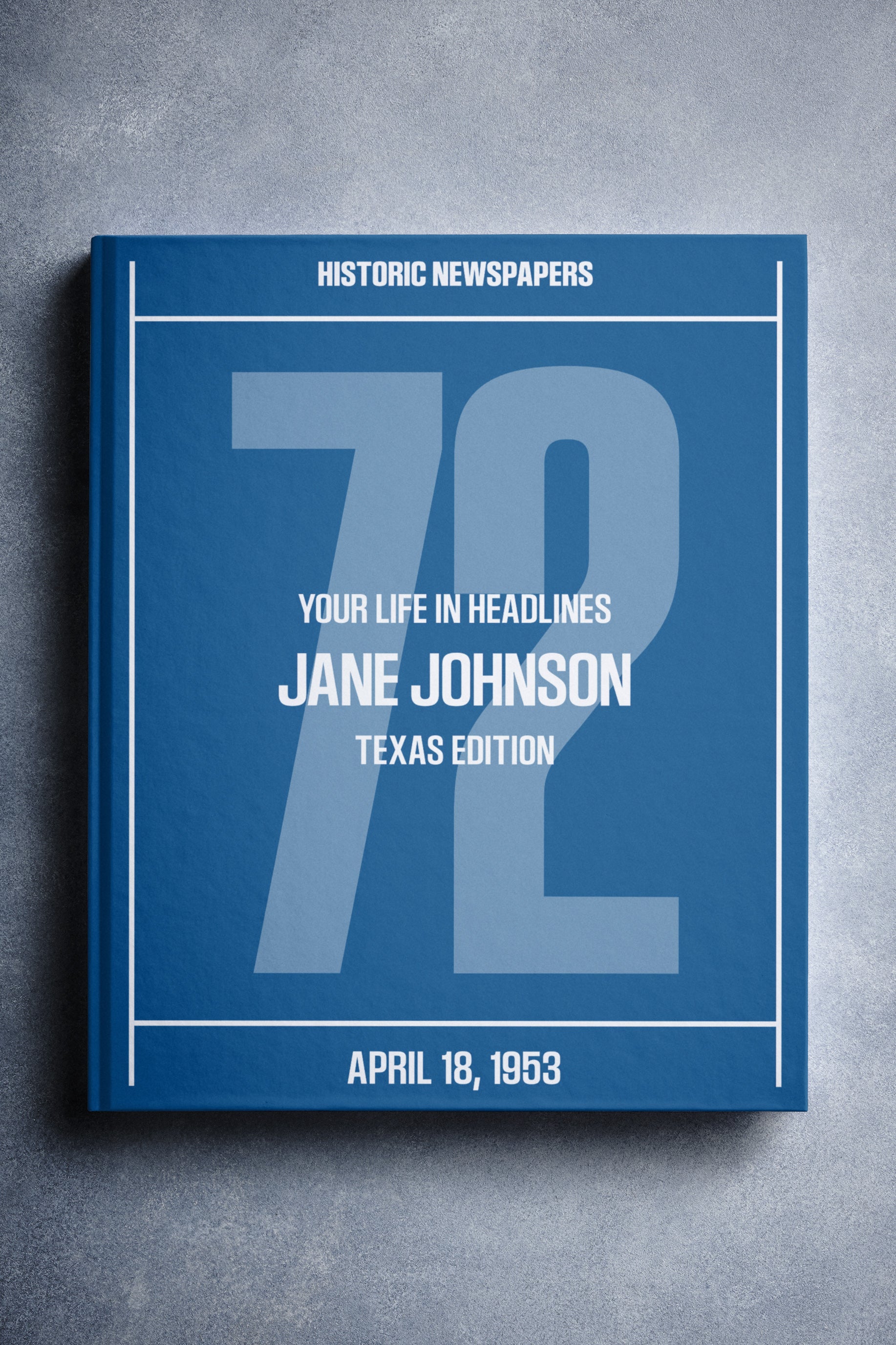 This coffee table book opens with the front page of assorted Texas papers from the day the recipient was born – followed by the cover story for every birthday since. It comes in hardback or softback, with the option to print the recipient’s name on the cover for free.