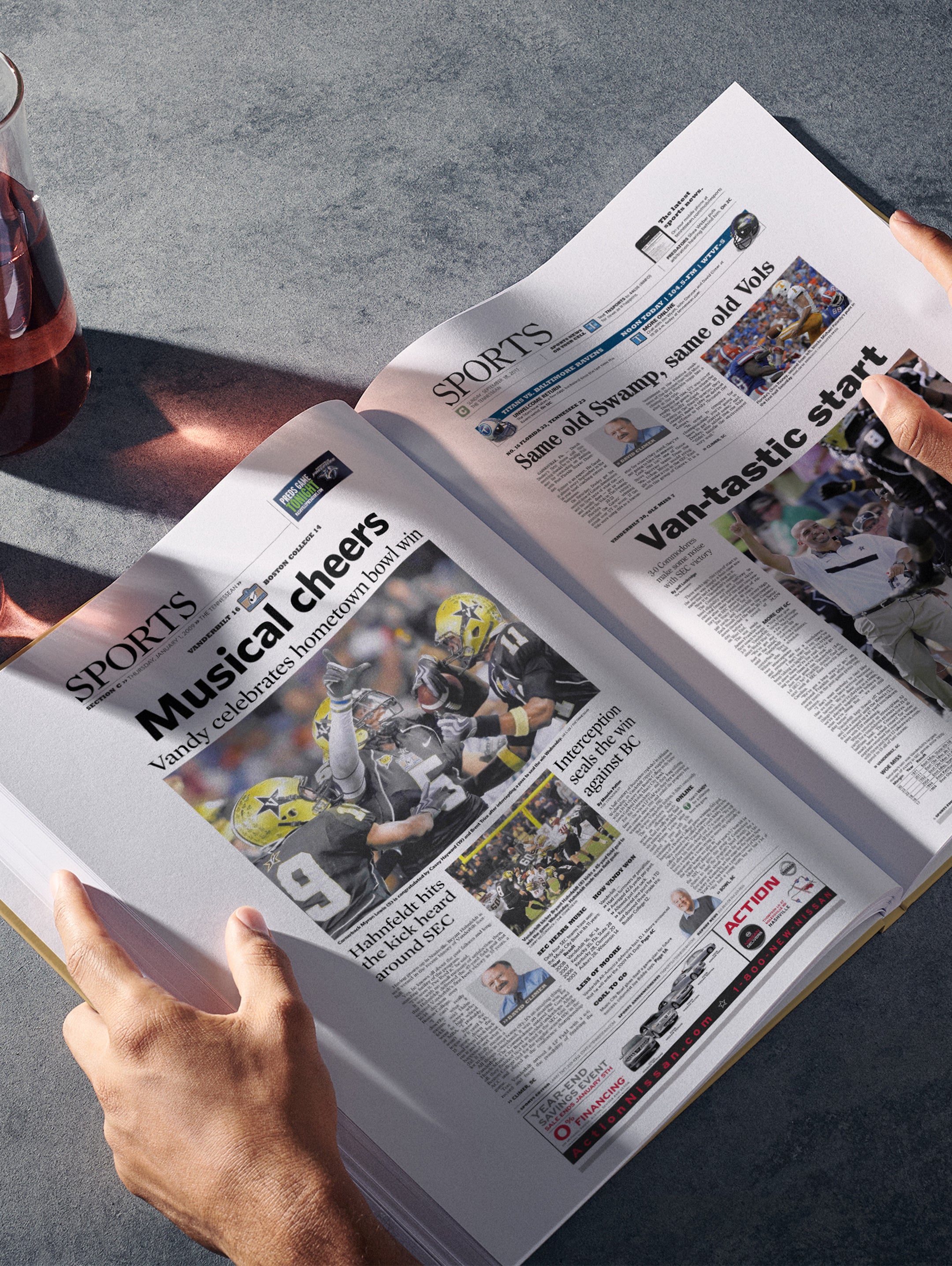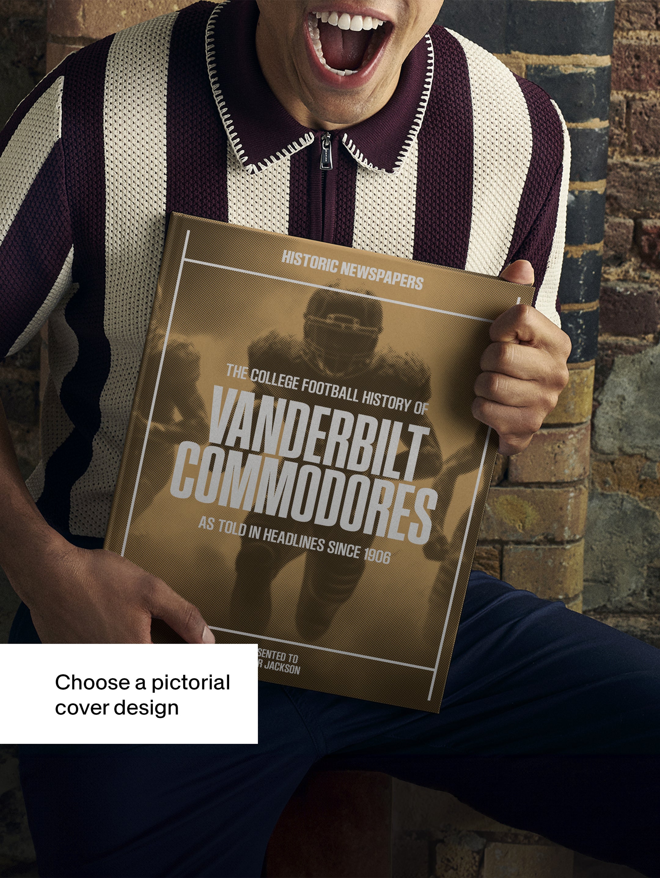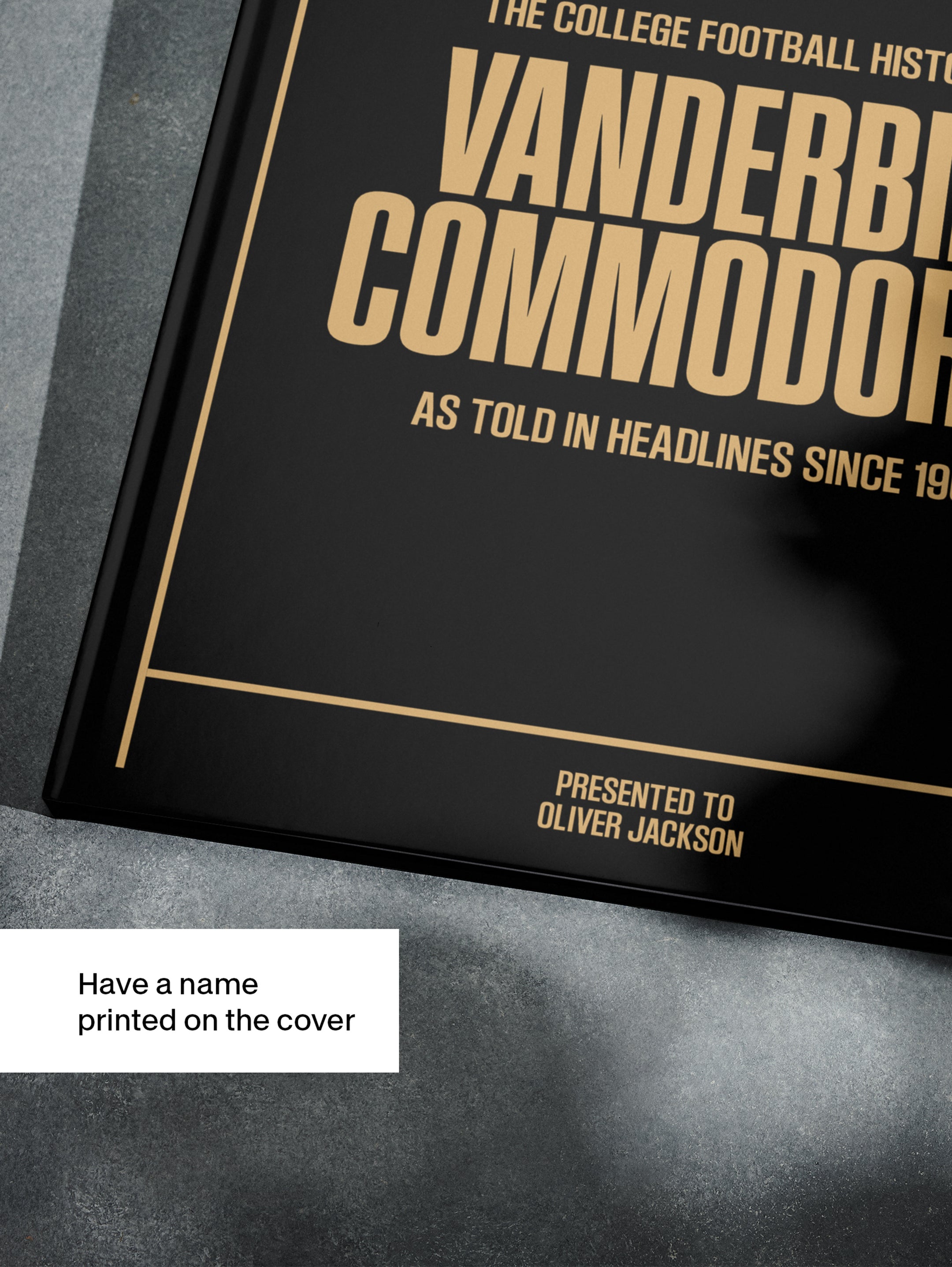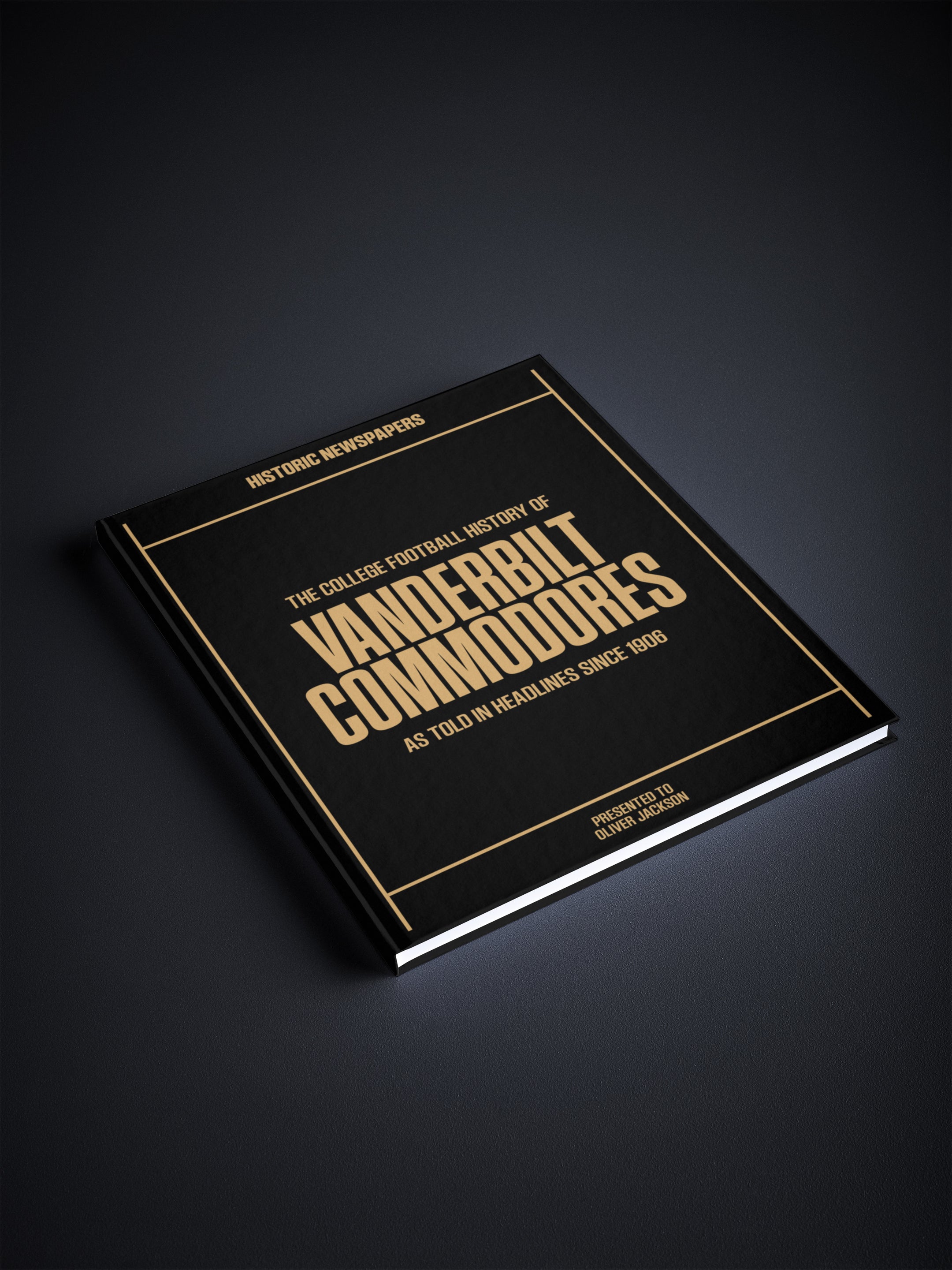FOLLOW the story of the Vanderbilt Commodores from 1906 onwards, told through original newspaper reports as they were published at the time. From the 1955 Gator Bowl victory to the 41 – 18 win over Tennessee in 2012, and the 40 – 35 triumph over Alabama in 2024. Choose from a range of book covers and personalise your book with a name and message to create a lasting keepsake. A piece of Vanderbilt Commodores history to gift, share, and relive.