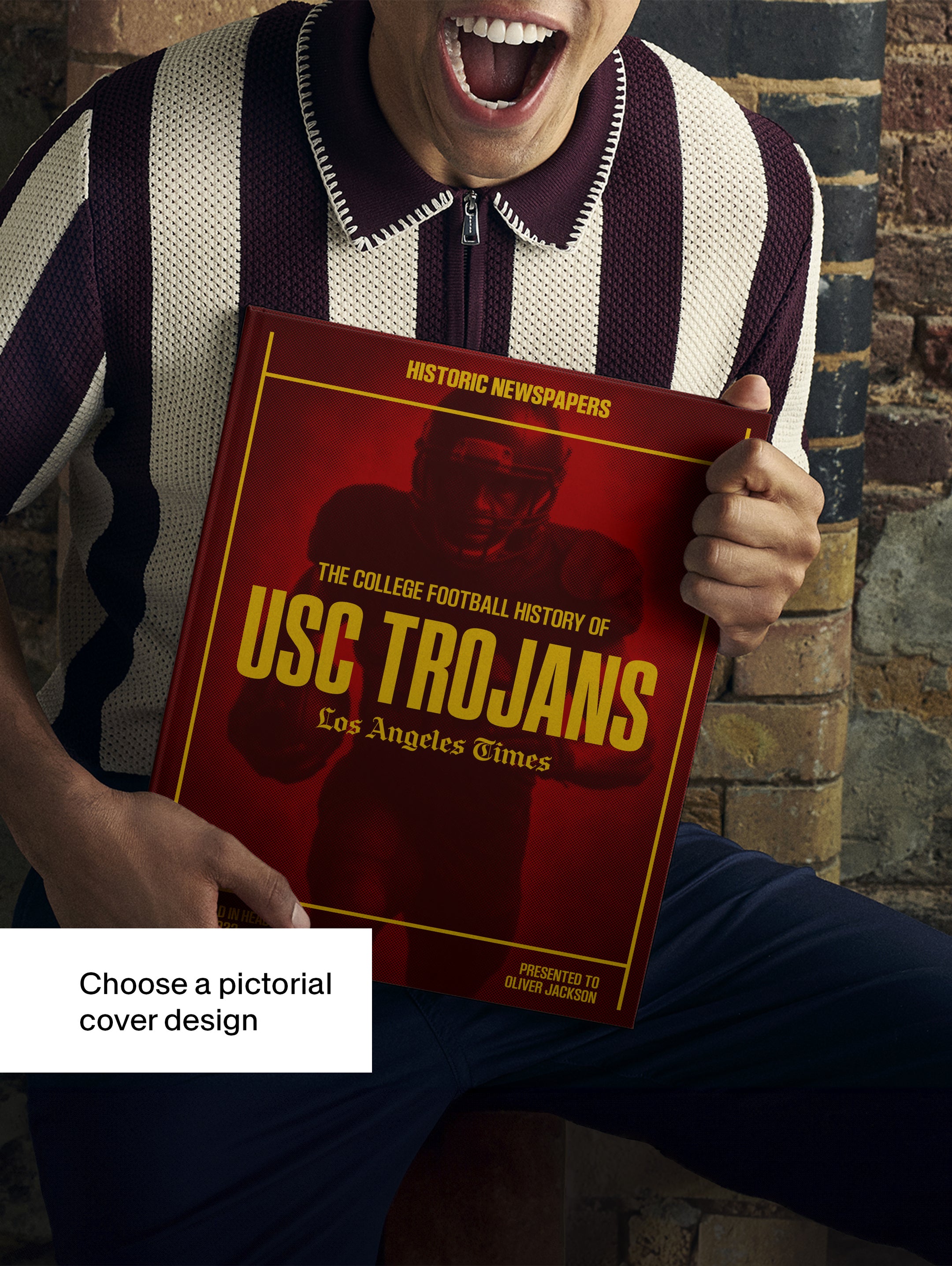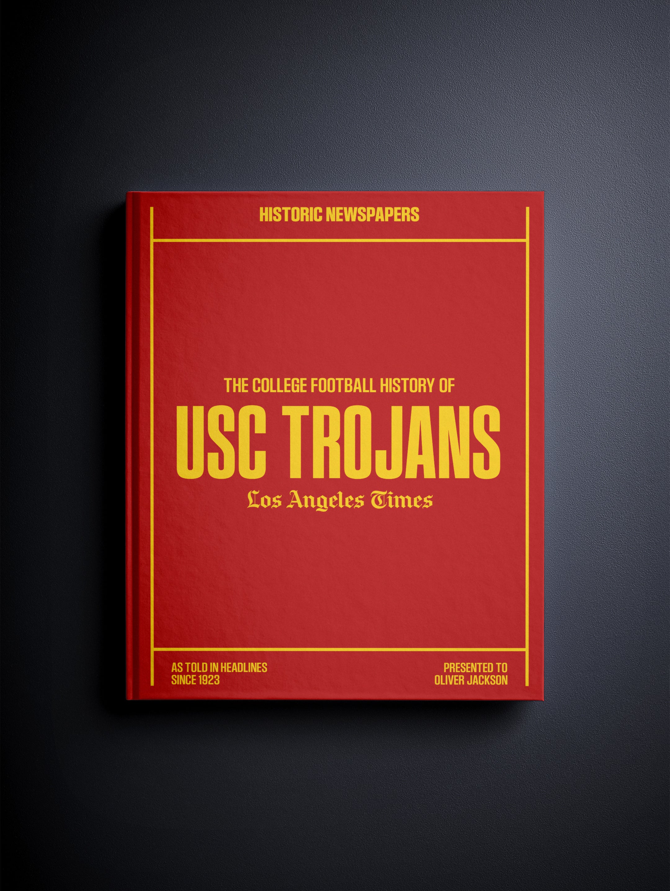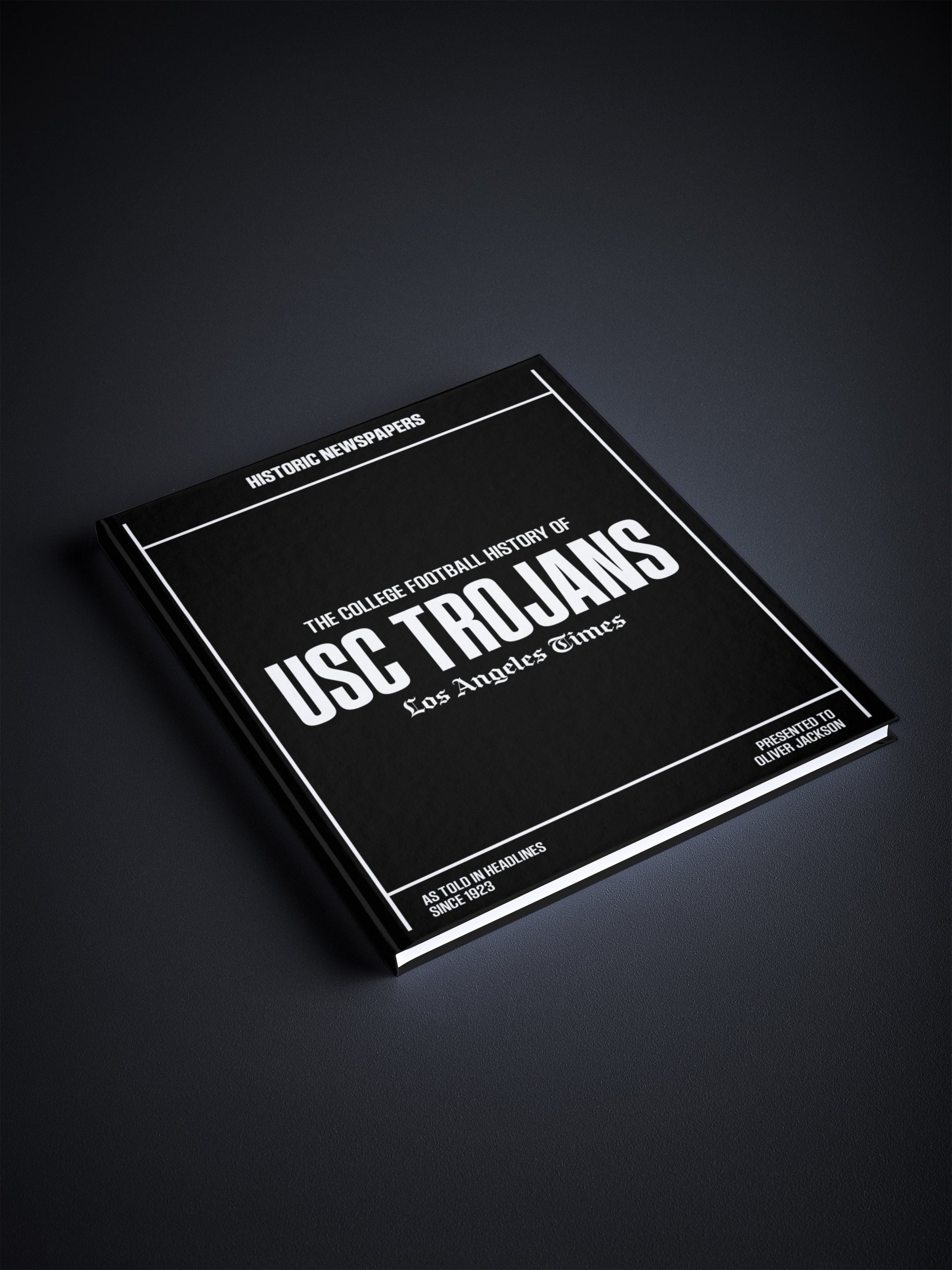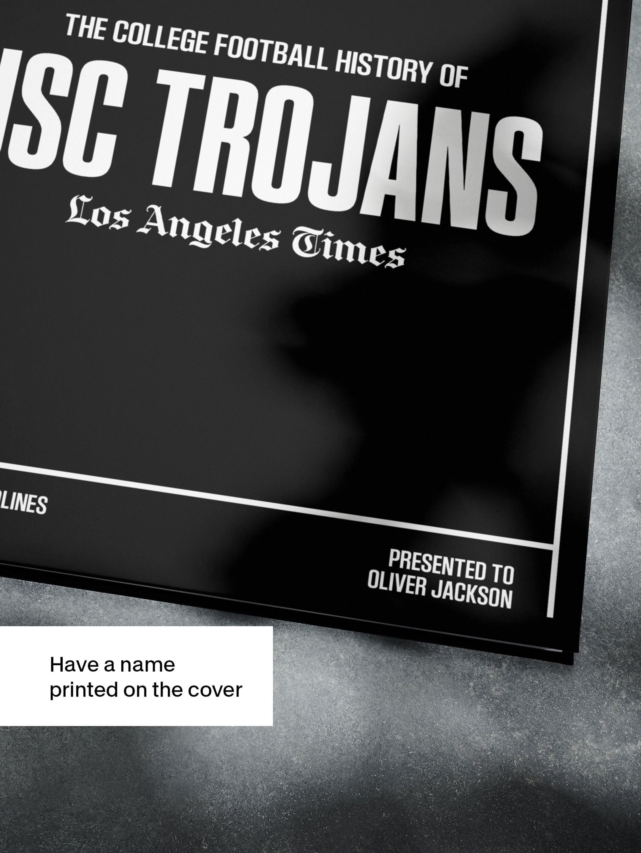 This coffee-table book features over 160 pages of authentic Los Angeles Times newspaper reports about The History of USC Trojans College Football. It comes with a choice of covers and the option to have the recipient’s name printed on the cover for free.