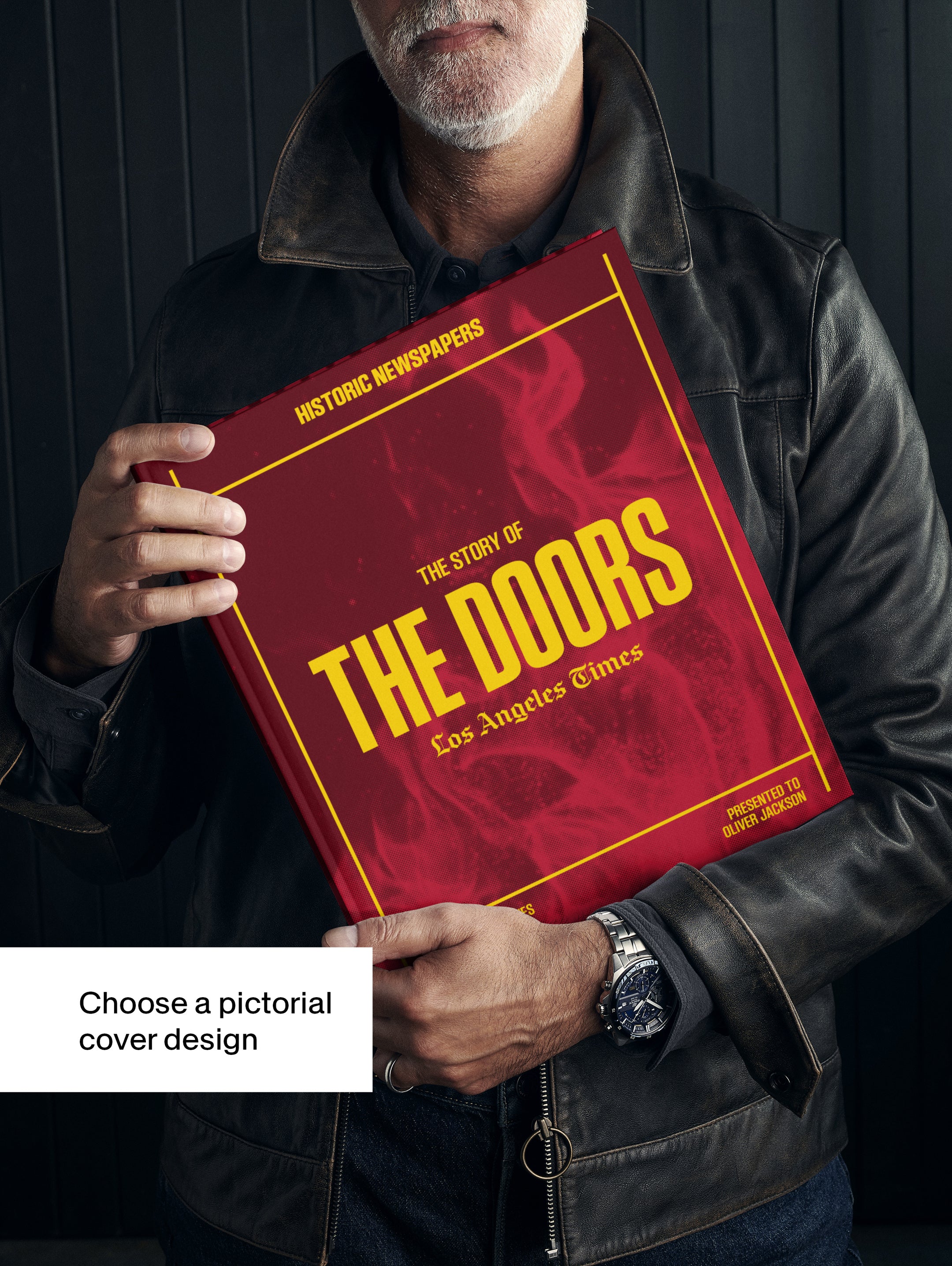 This coffee-table book features over 140 pages of authentic Los Angeles Times newspaper reports about The Story of The Doors. It comes with a choice of covers and the option to have the recipient’s name printed on the cover for free.