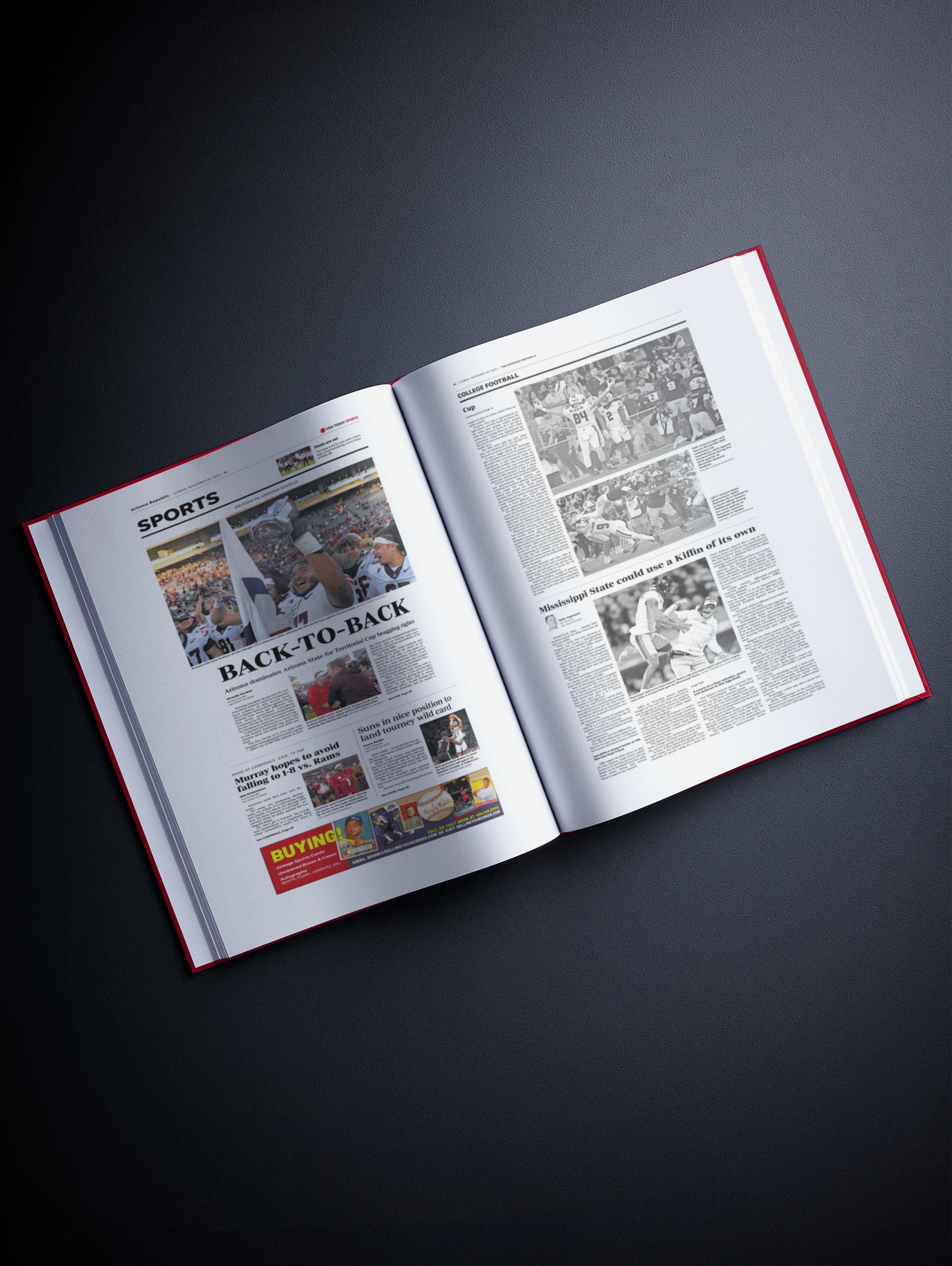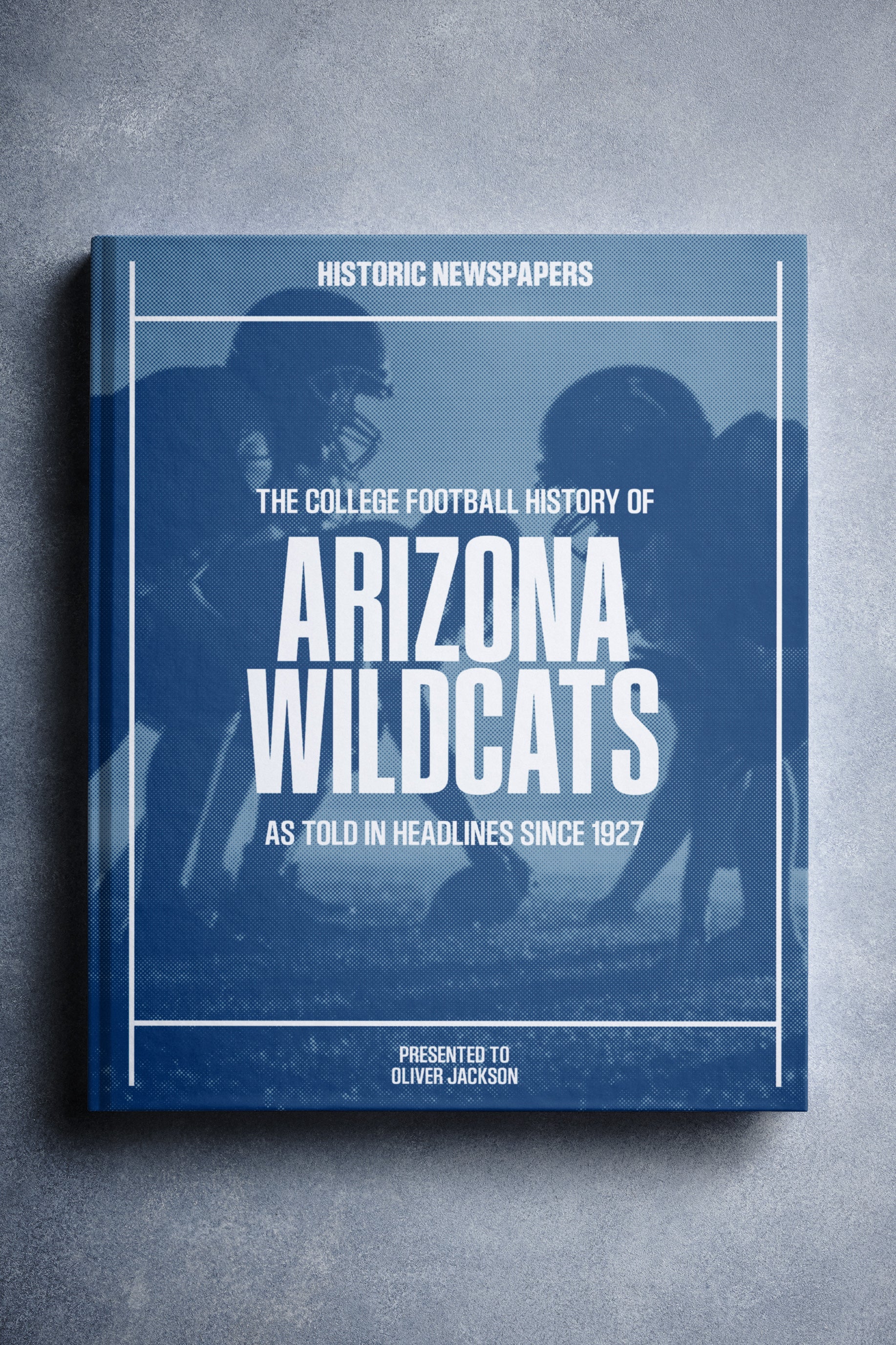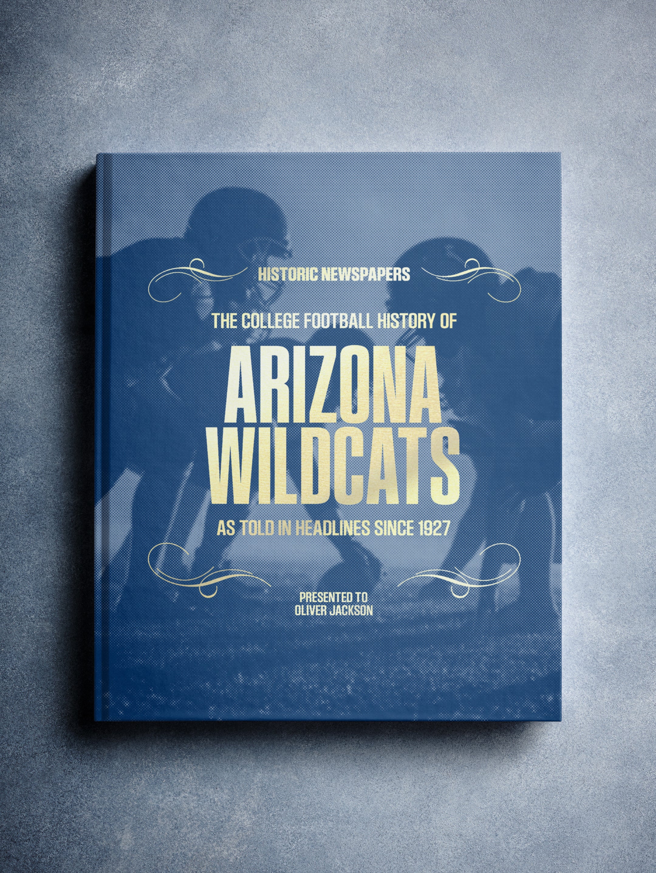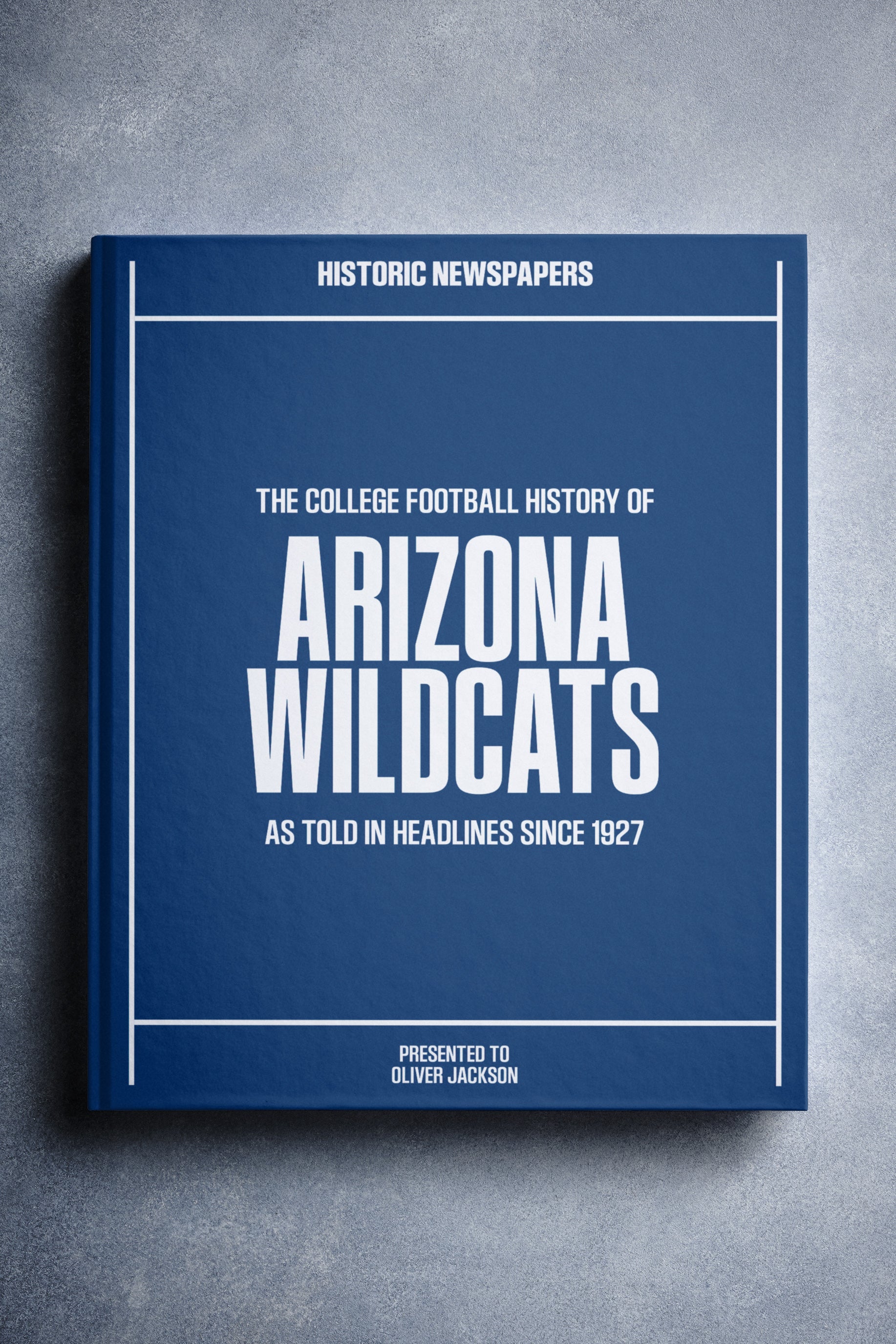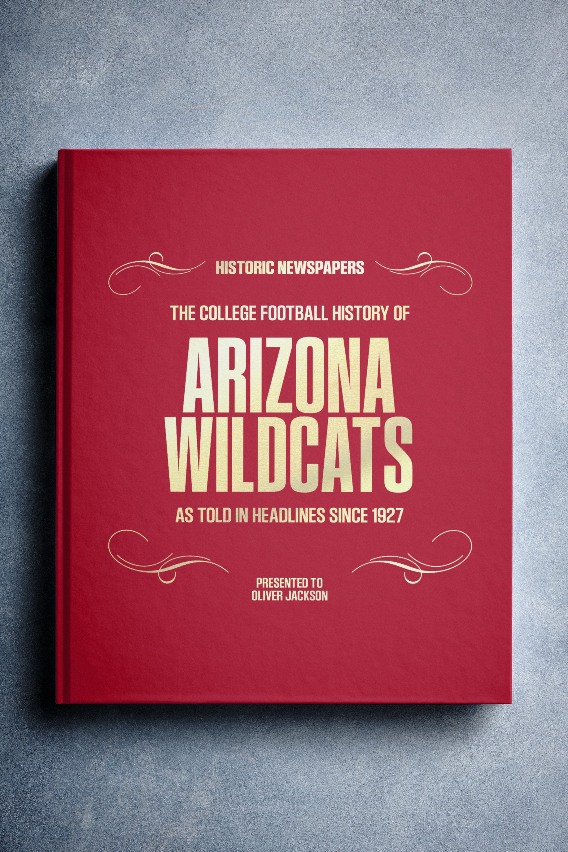 This coffee-table book features 160 pages of authentic newspaper reports about The History of the Arizona Wildcats College Football Team. It comes with a choice of covers and the option to have the recipient’s name printed on the cover for free.