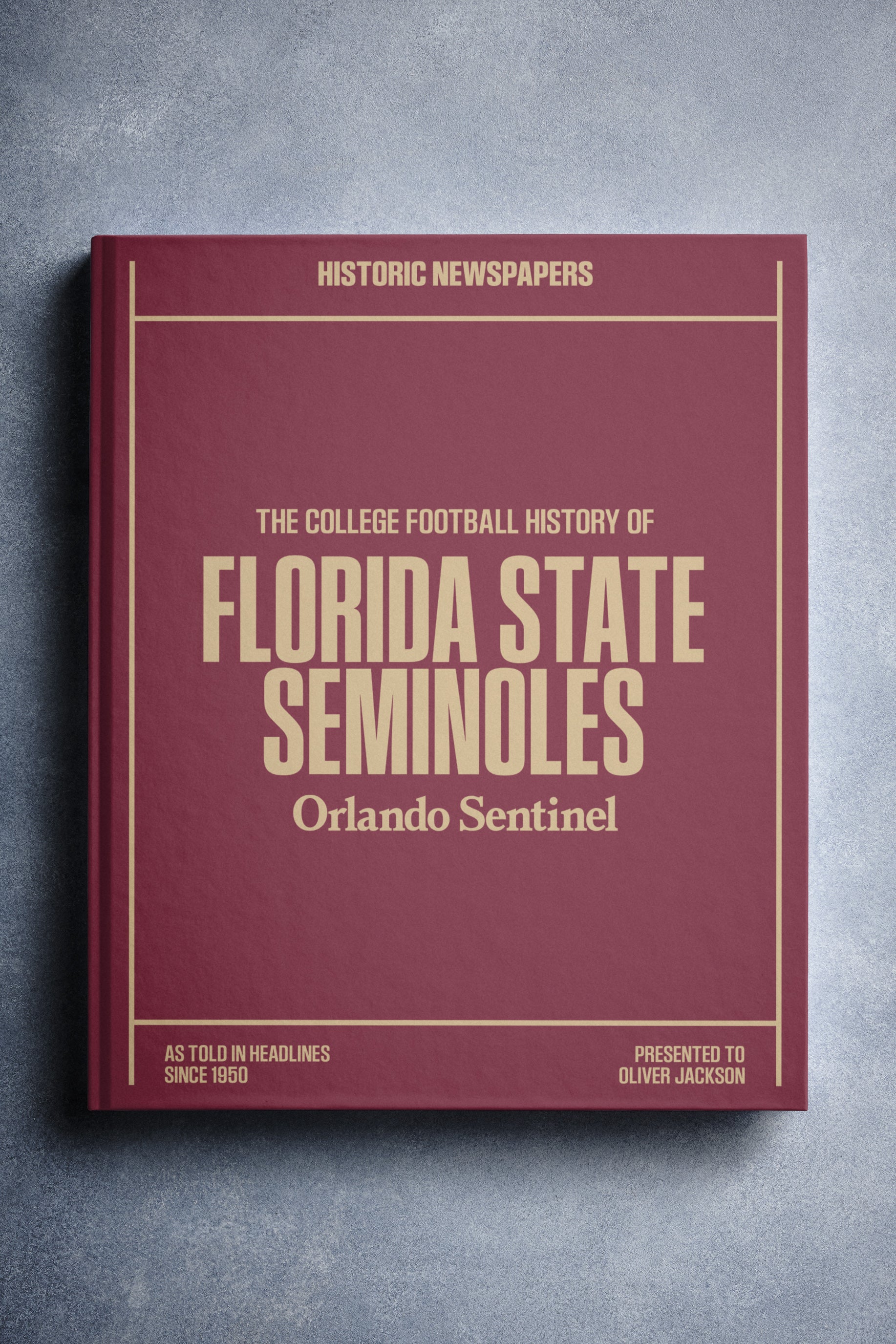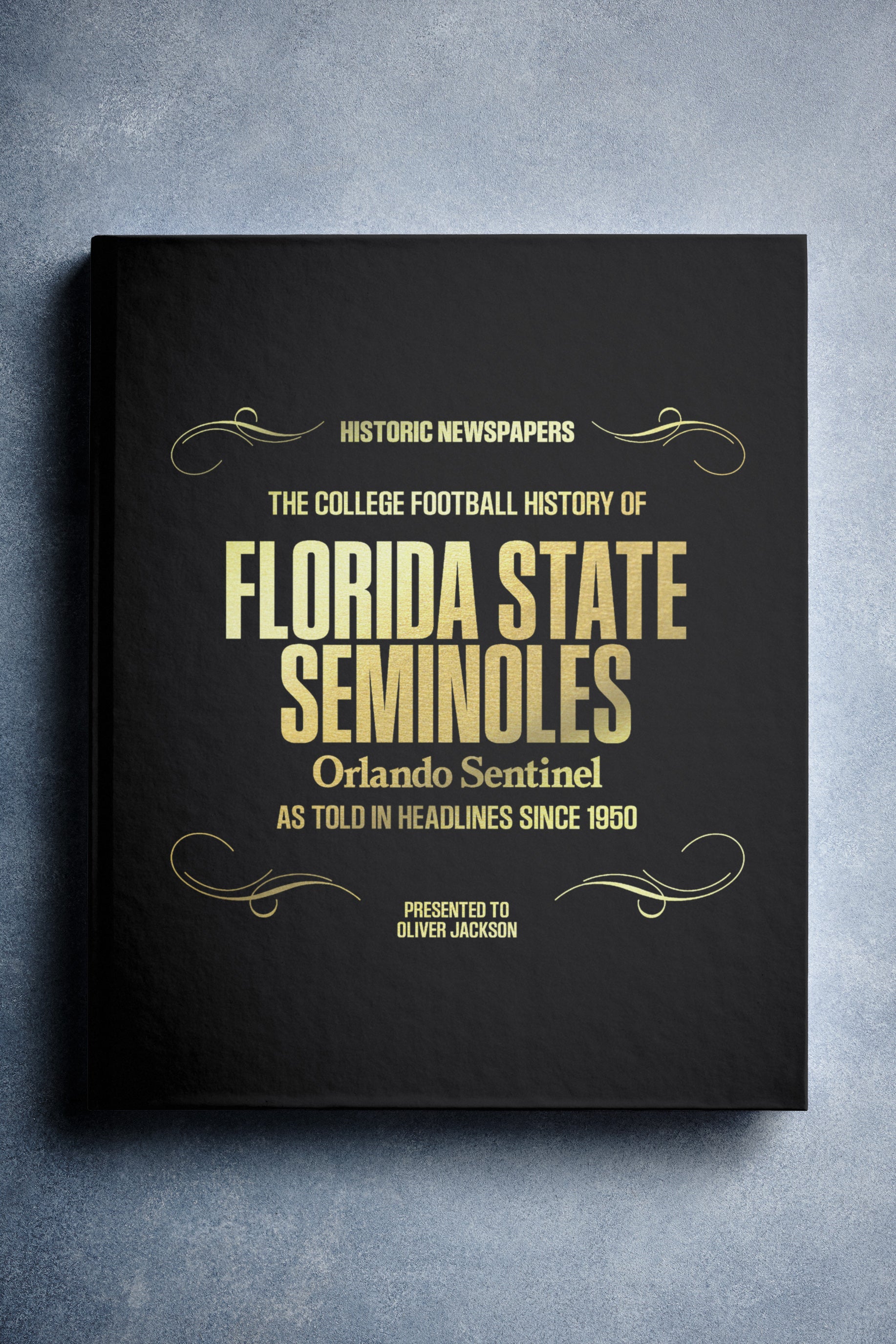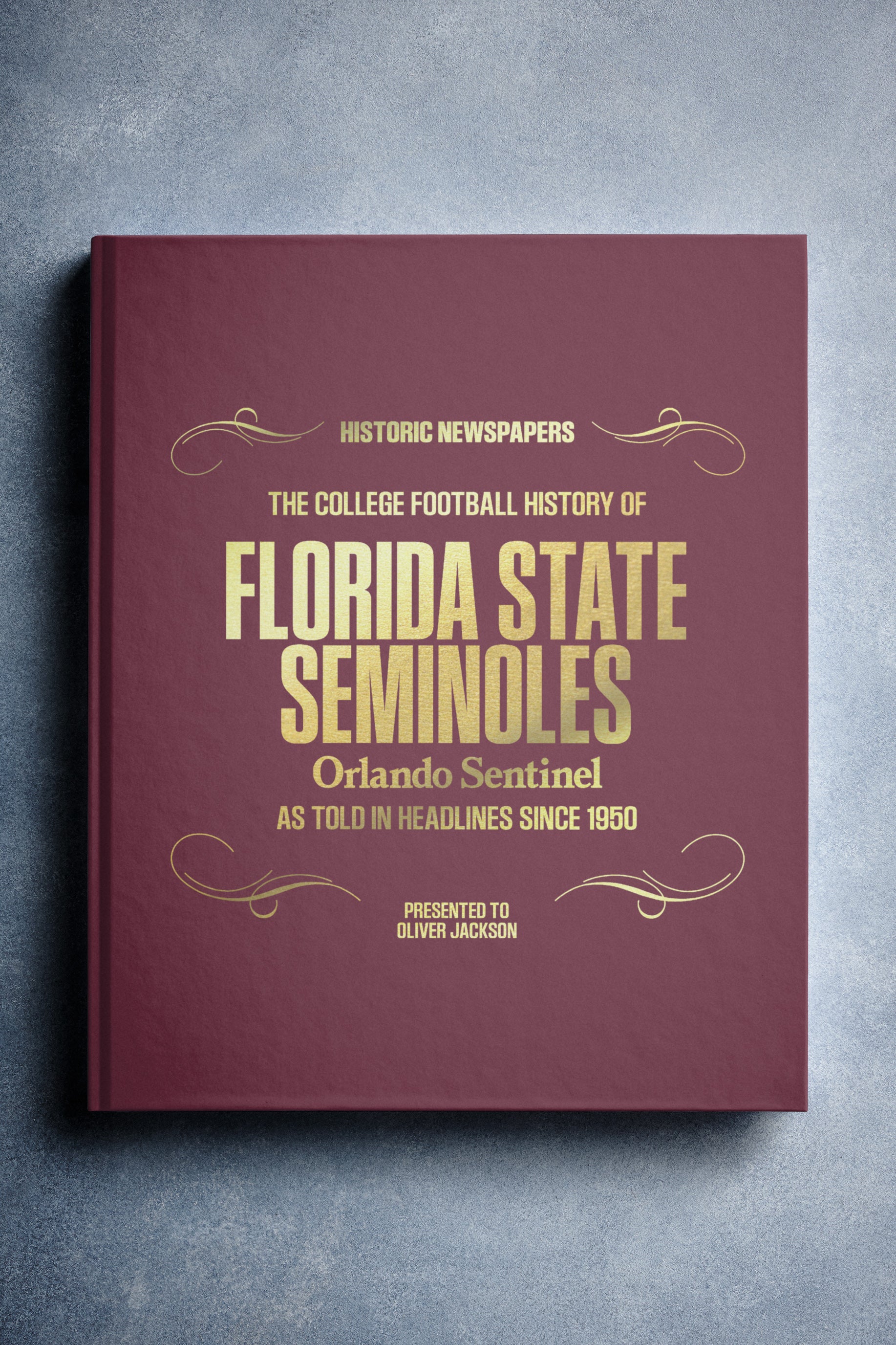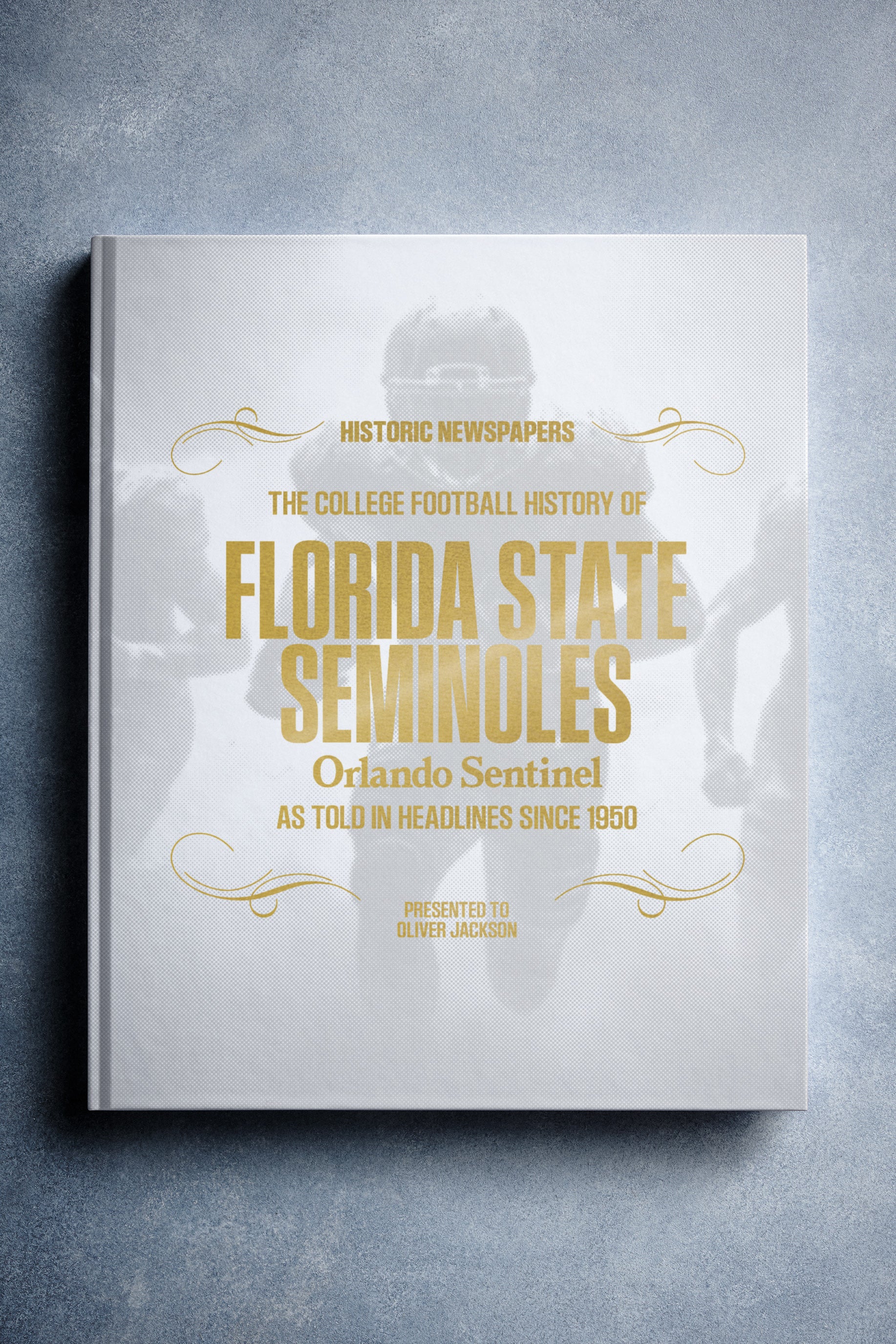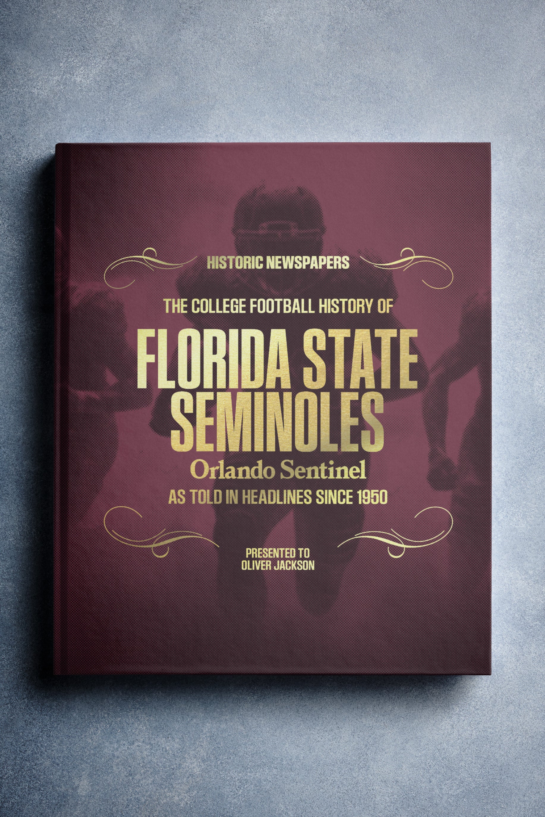 This coffee-table book features 170 pages of authentic Orlando Sentinel newspaper reports about The History of Florida State Seminoles College Football. It comes with a choice of covers and the option to have the recipient’s name printed on the cover for free.