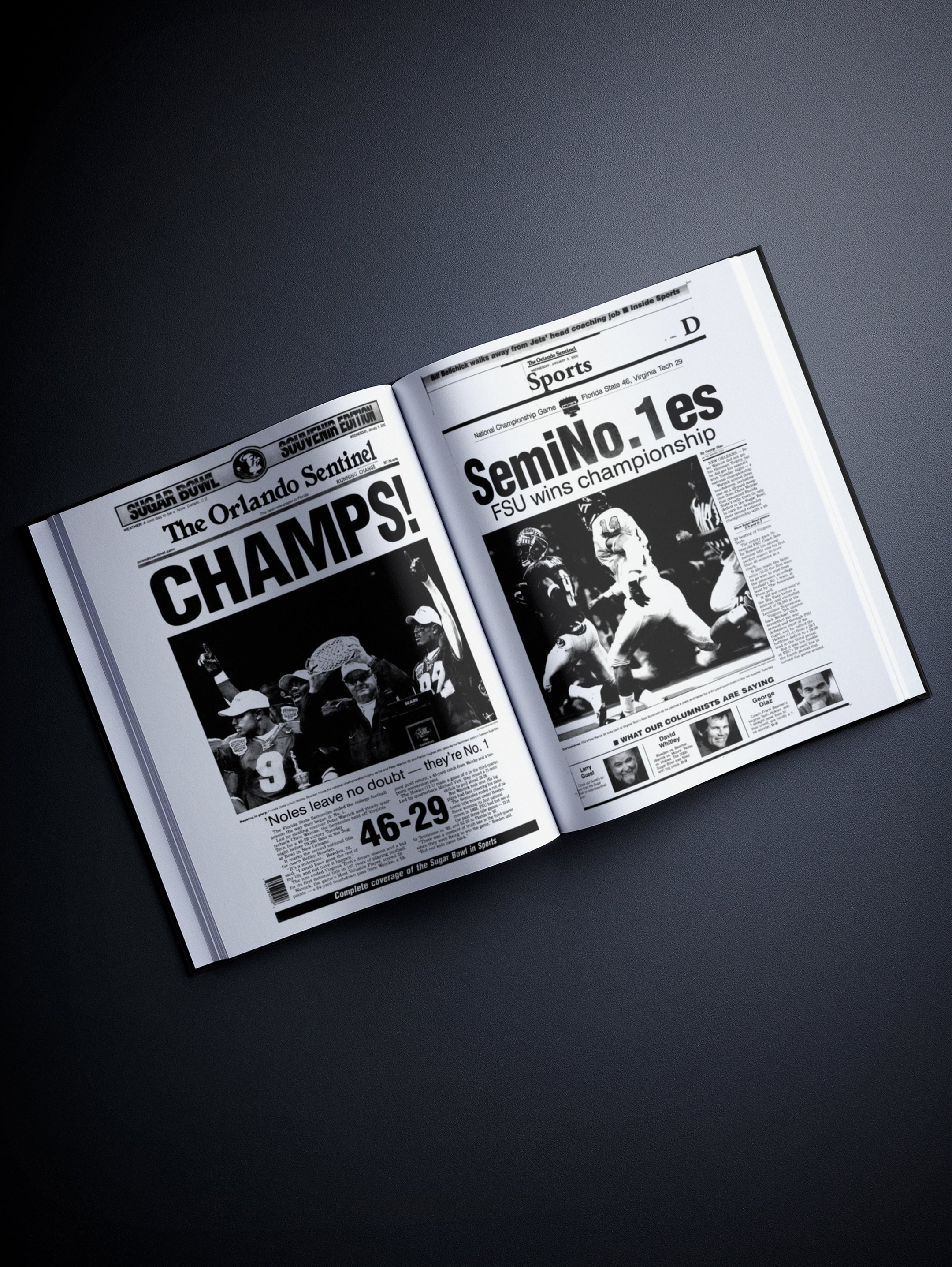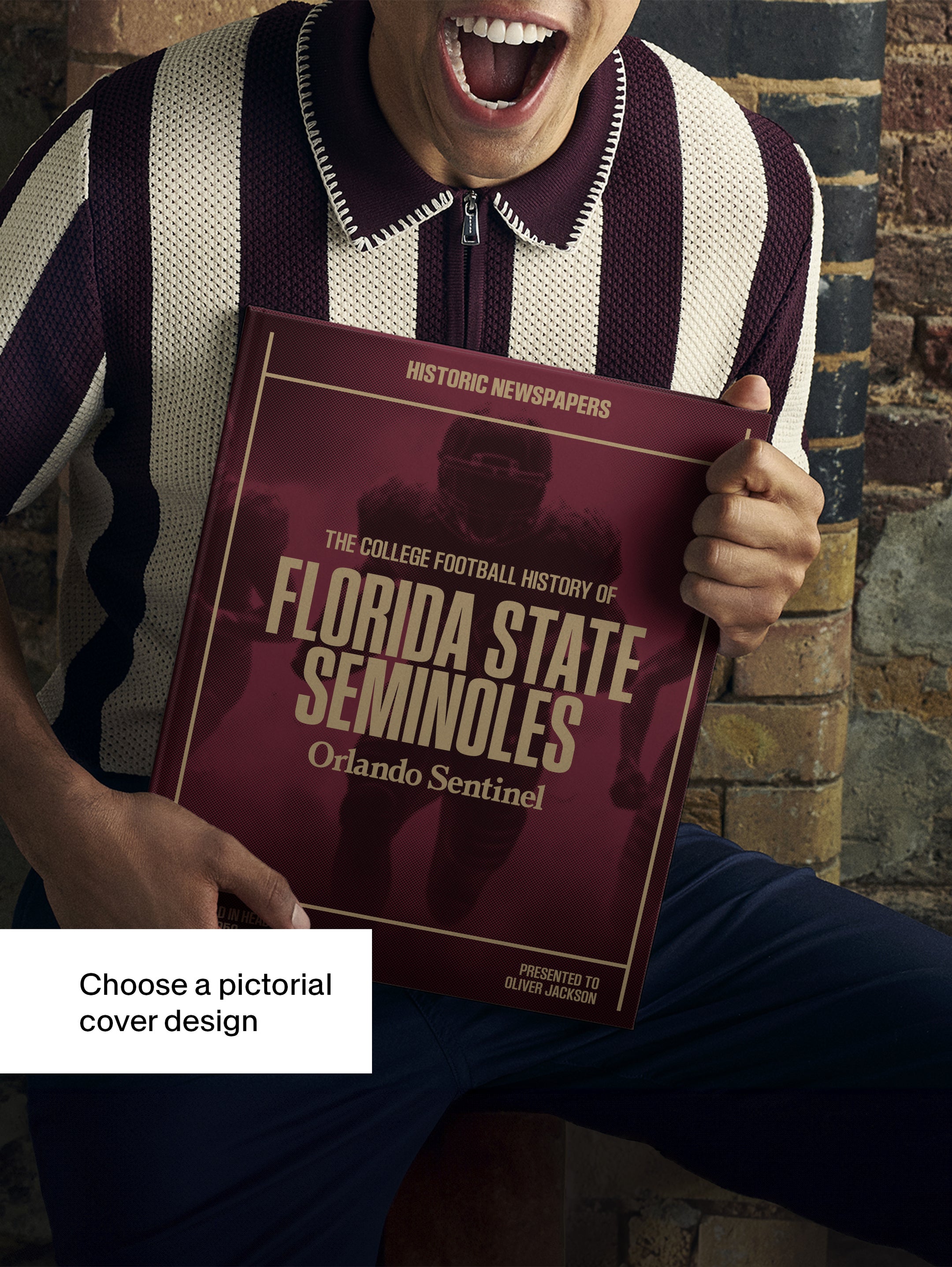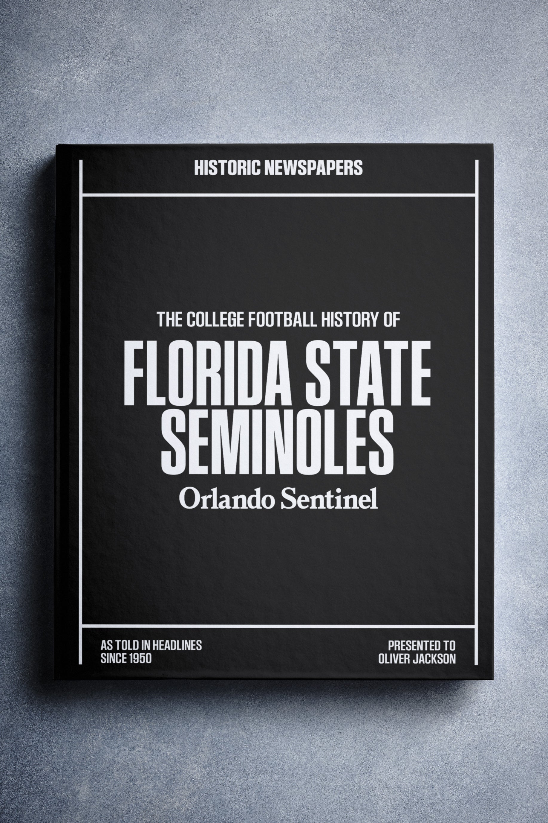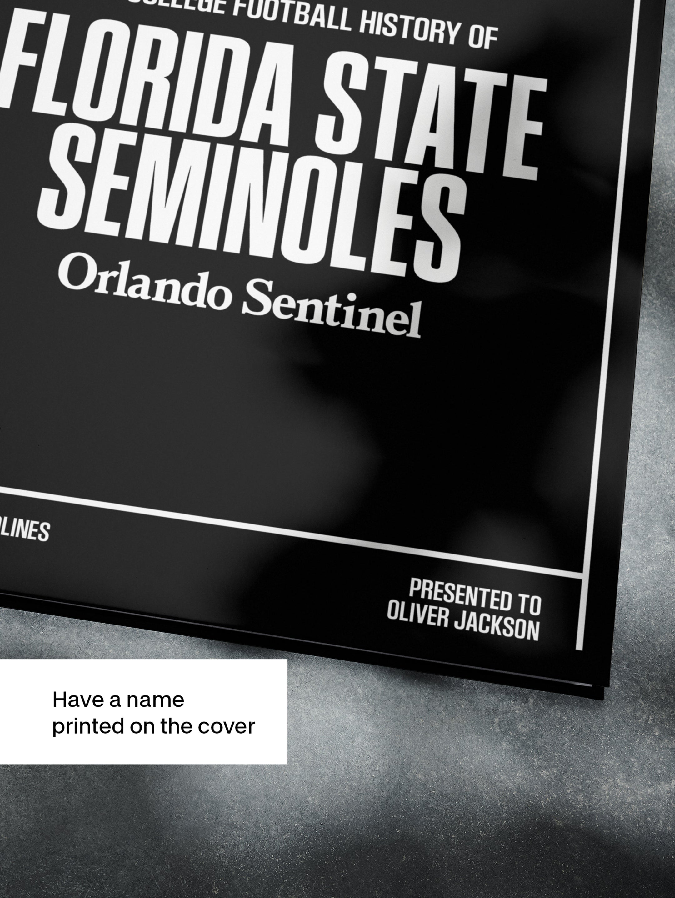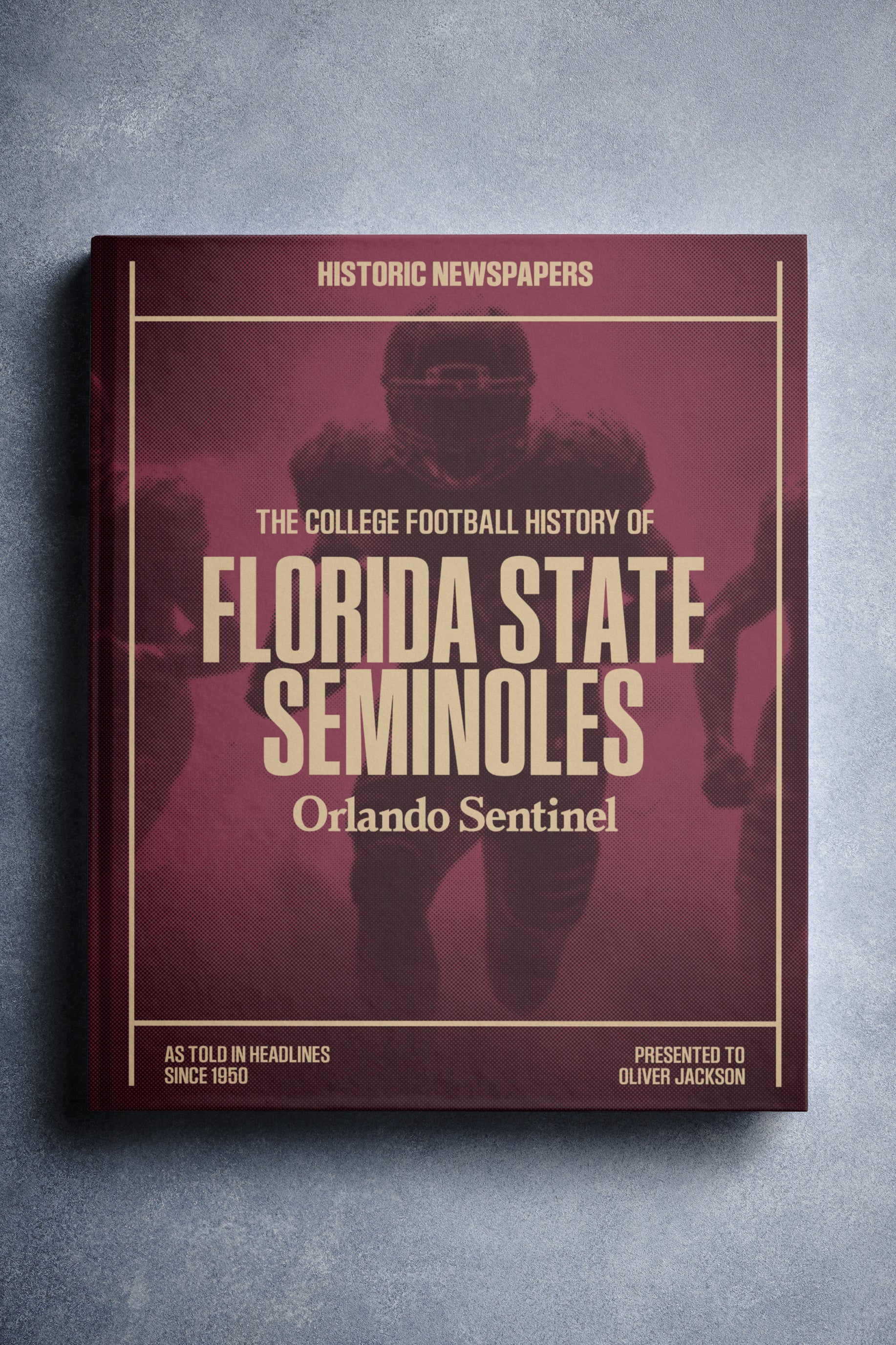 This coffee-table book features 170 pages of authentic Orlando Sentinel newspaper reports about The History of Florida State Seminoles College Football. It comes with a choice of covers and the option to have the recipient’s name printed on the cover for free.