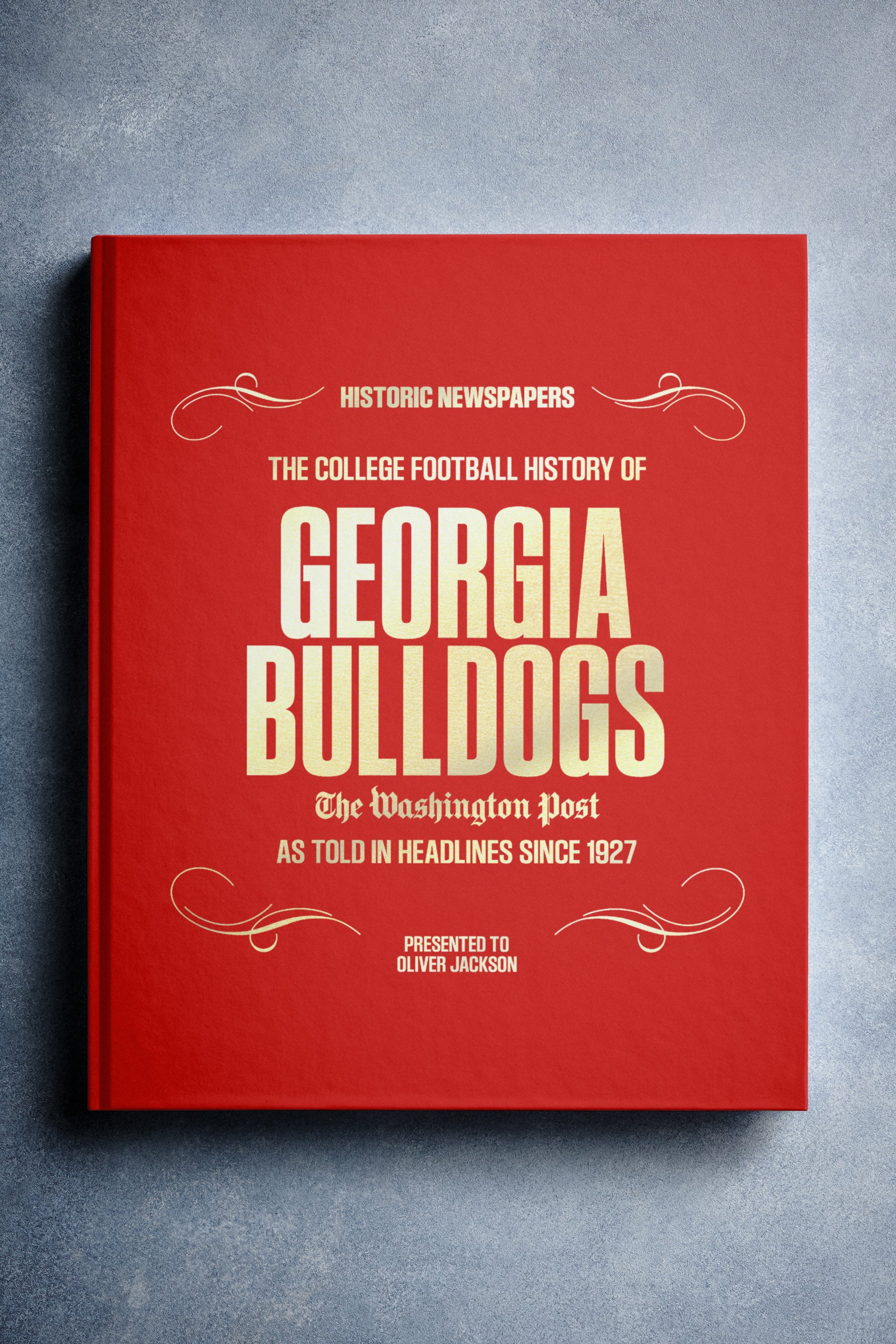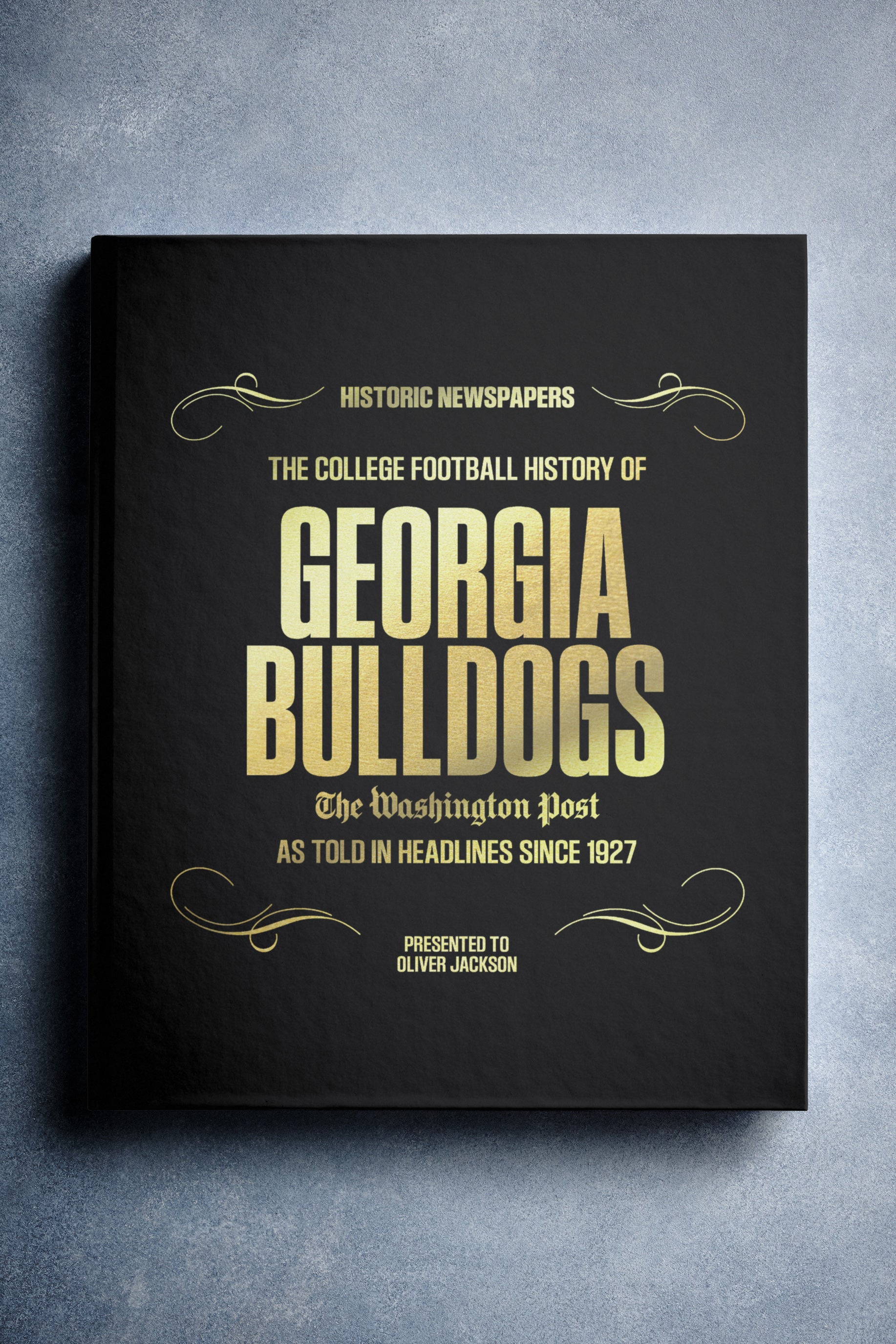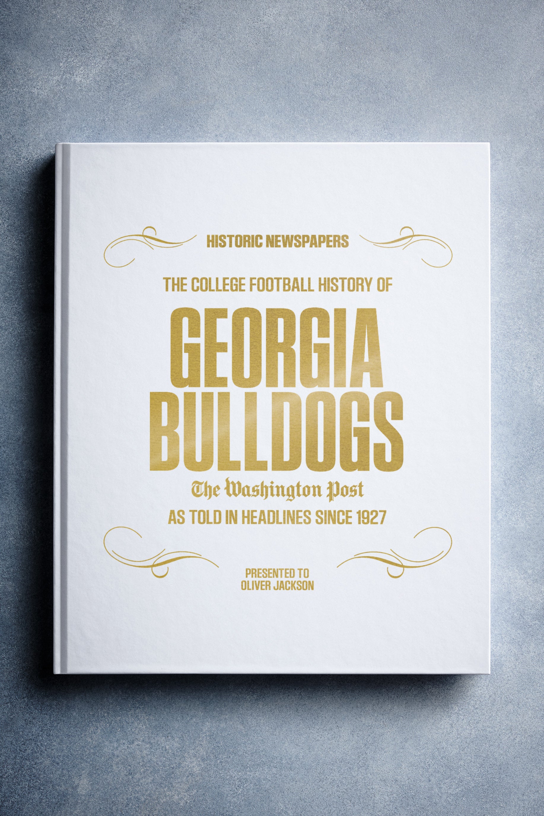 This coffee-table book features over 150 pages of authentic Washington Post newspaper reports about The History of Georgia Bulldogs College Football. It comes with a choice of covers and the option to have the recipient’s name printed on the cover for free.