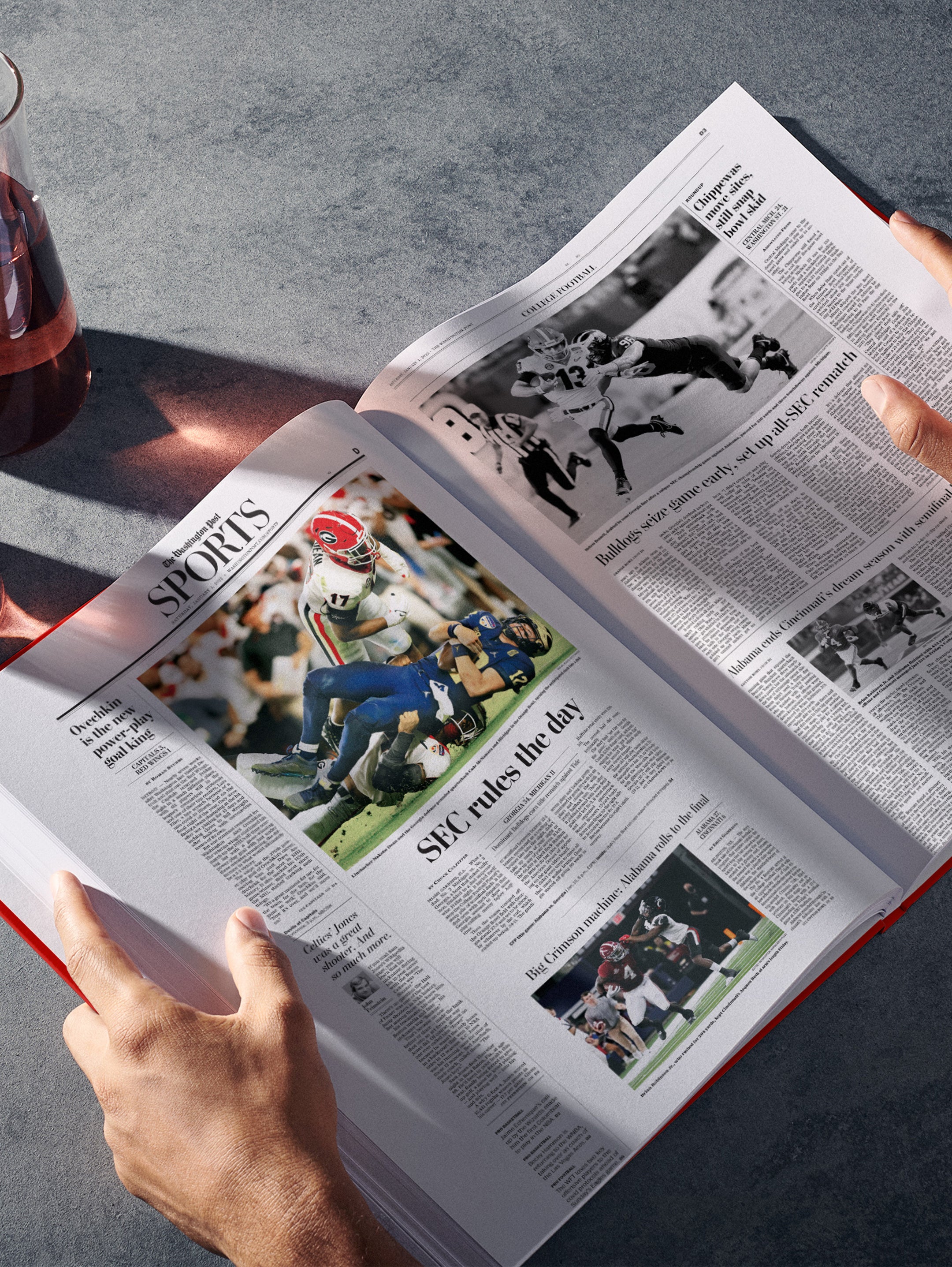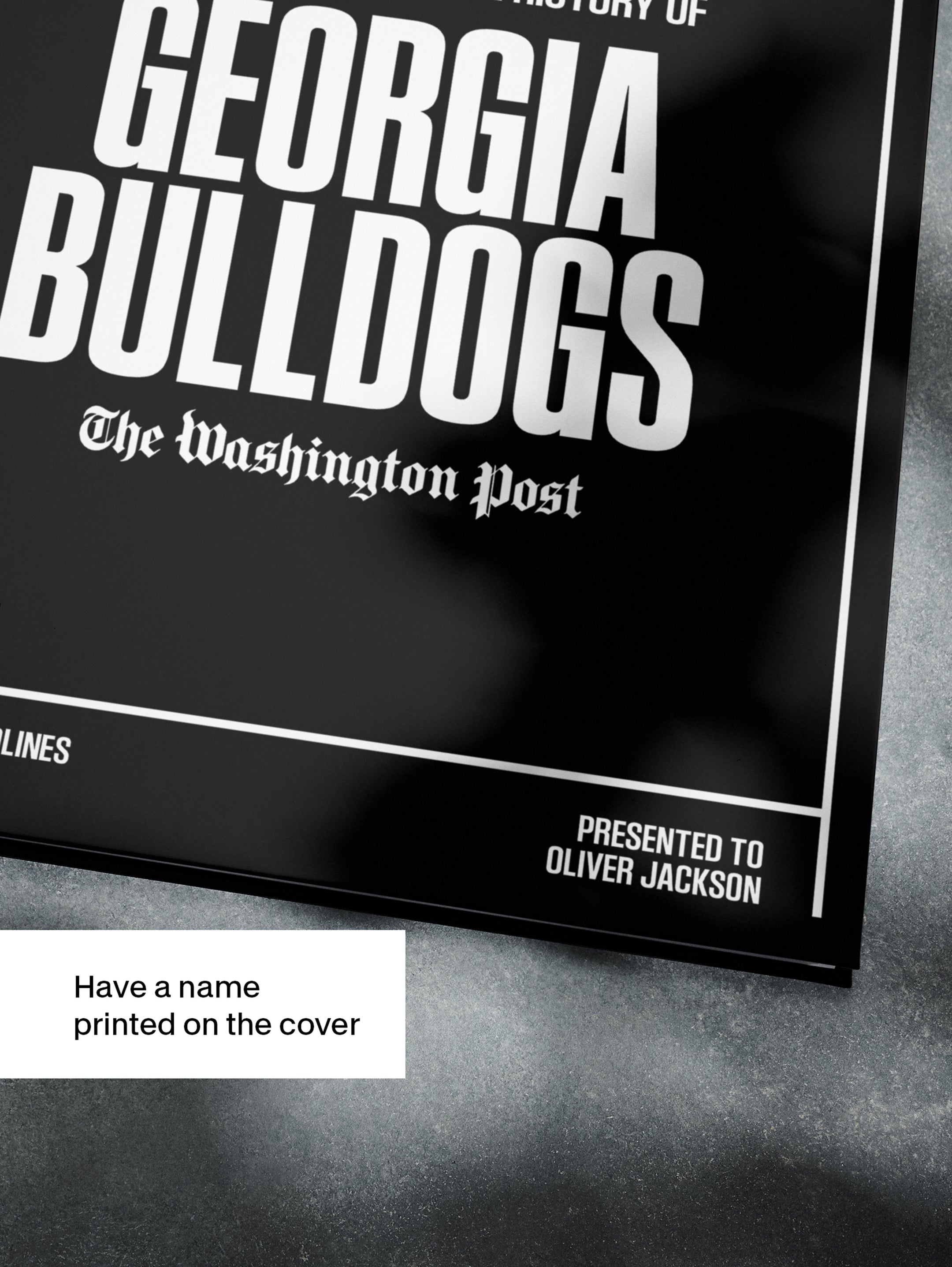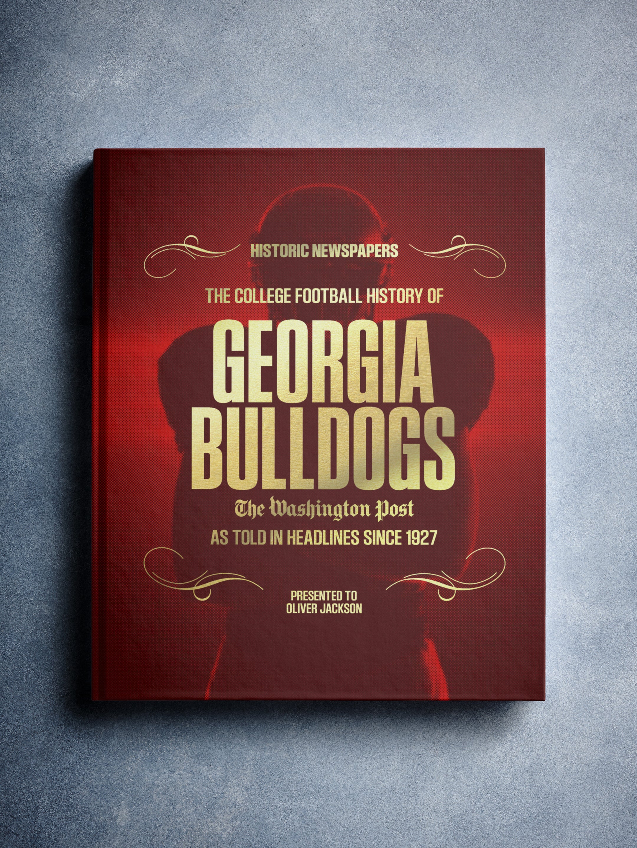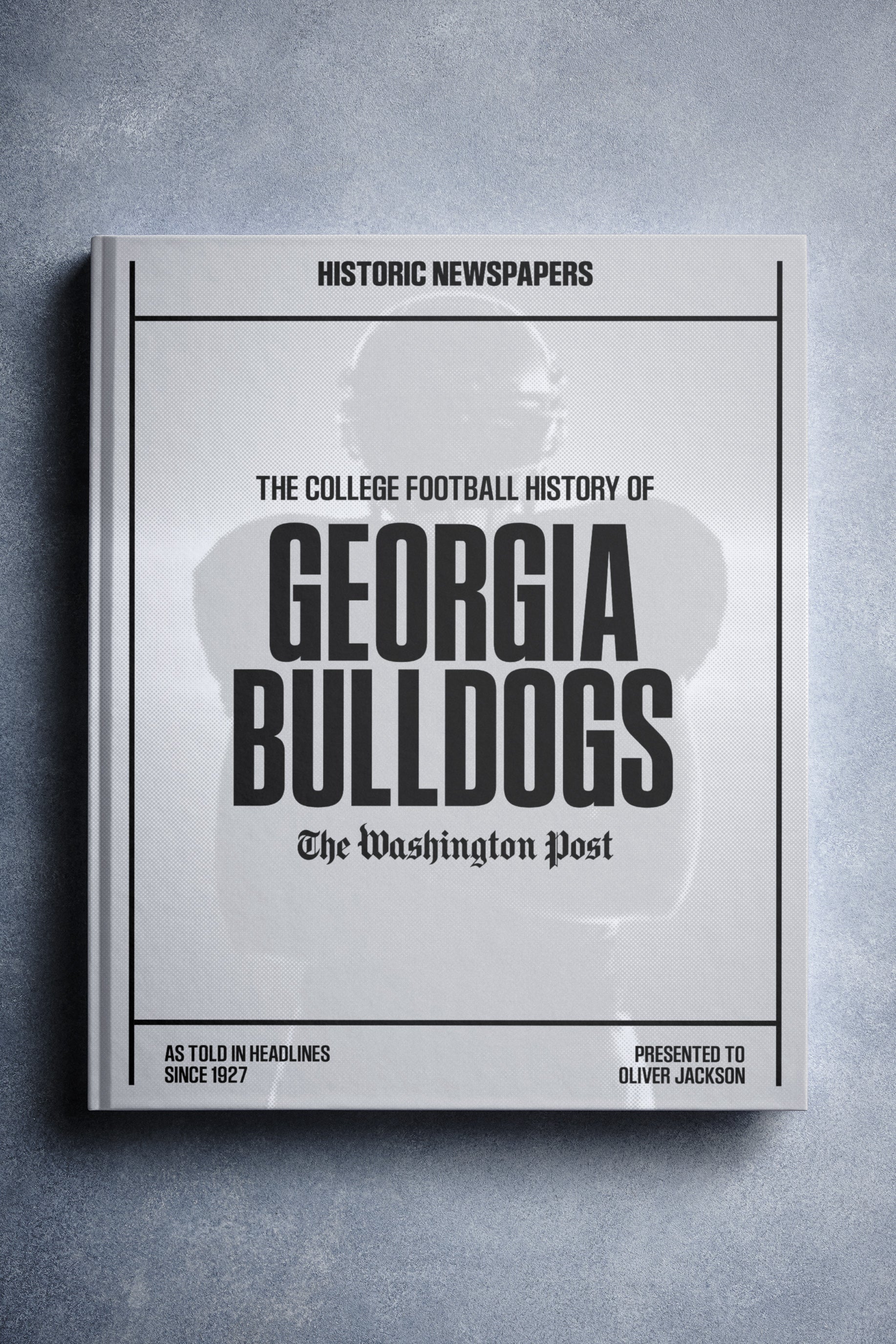 This coffee-table book features over 150 pages of authentic Washington Post newspaper reports about The History of Georgia Bulldogs College Football. It comes with a choice of covers and the option to have the recipient’s name printed on the cover for free.