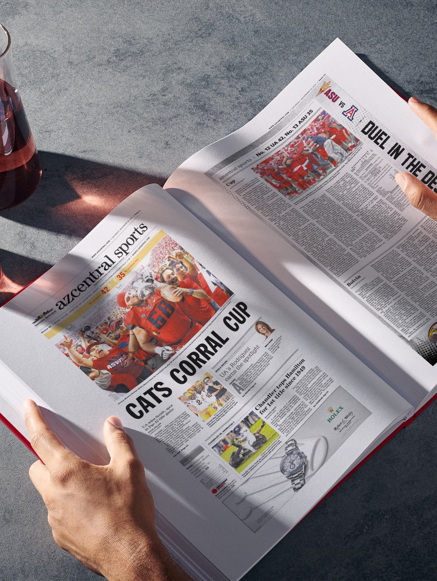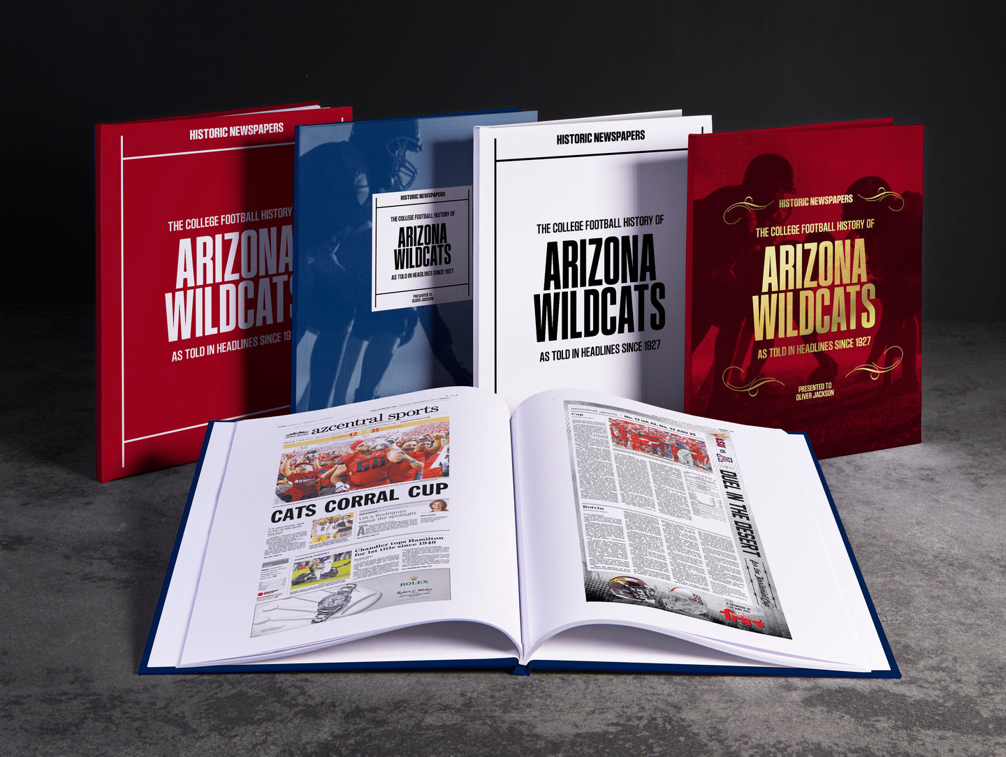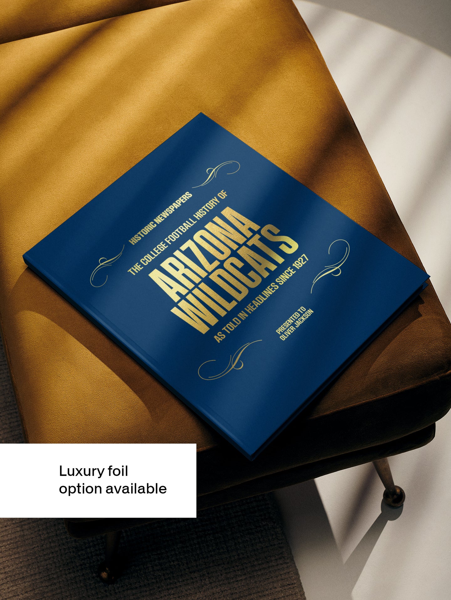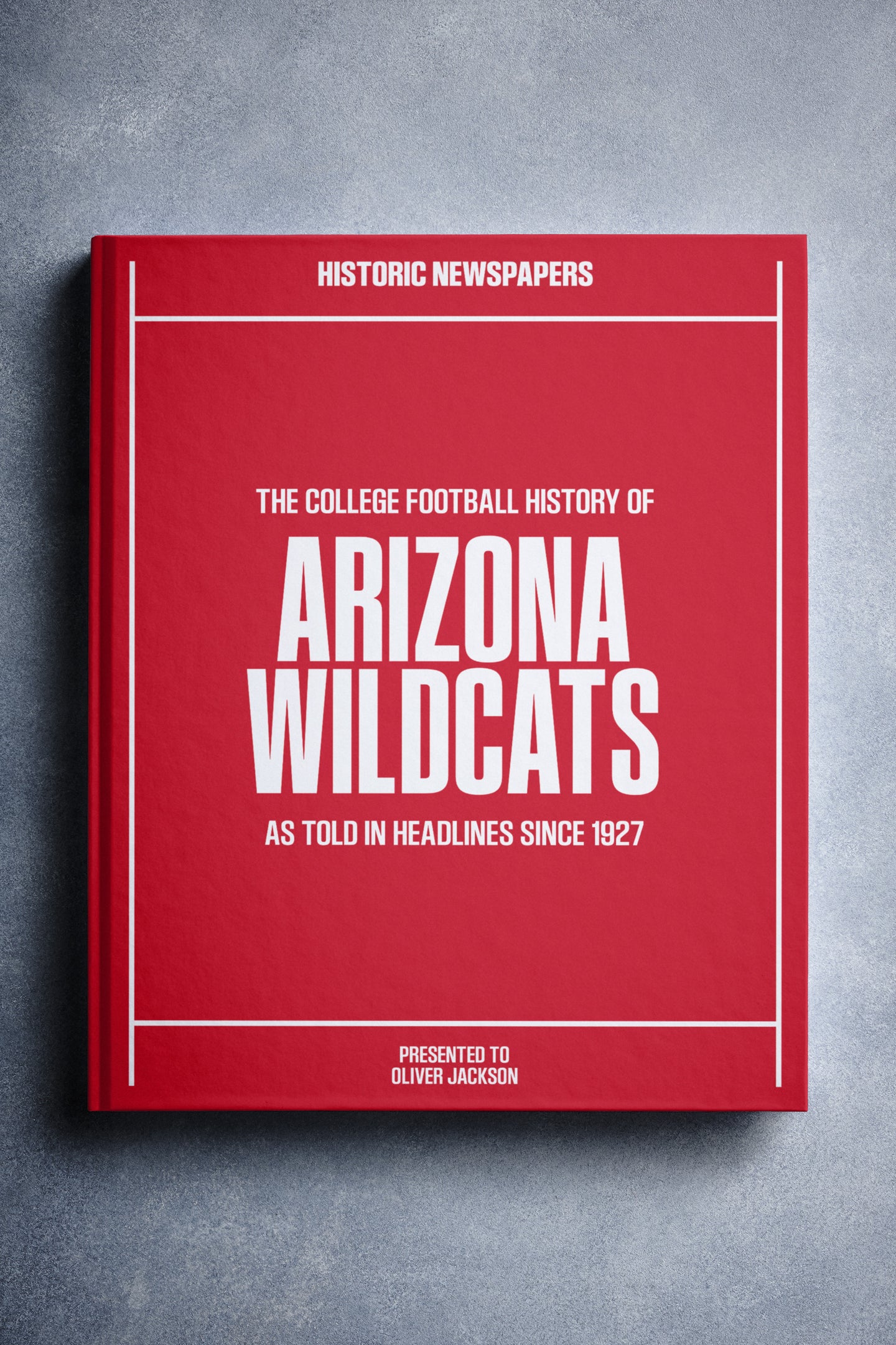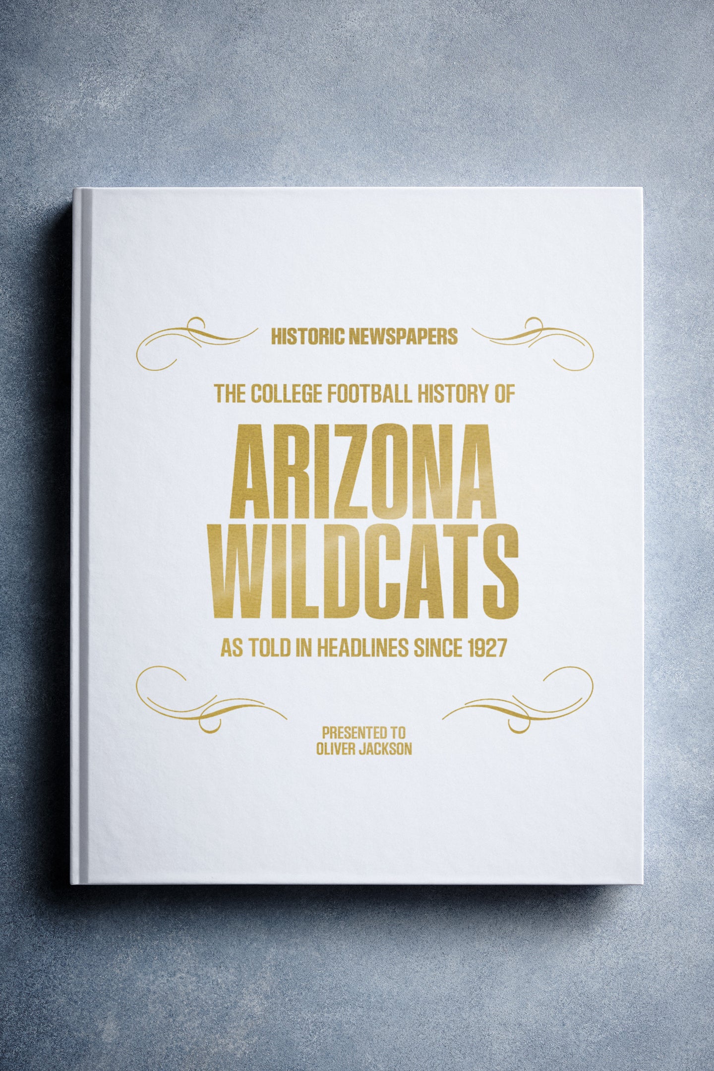 This coffee-table book features 160 pages of authentic newspaper reports about The History of the Arizona Wildcats College Football Team. It comes with a choice of covers and the option to have the recipient’s name printed on the cover for free.