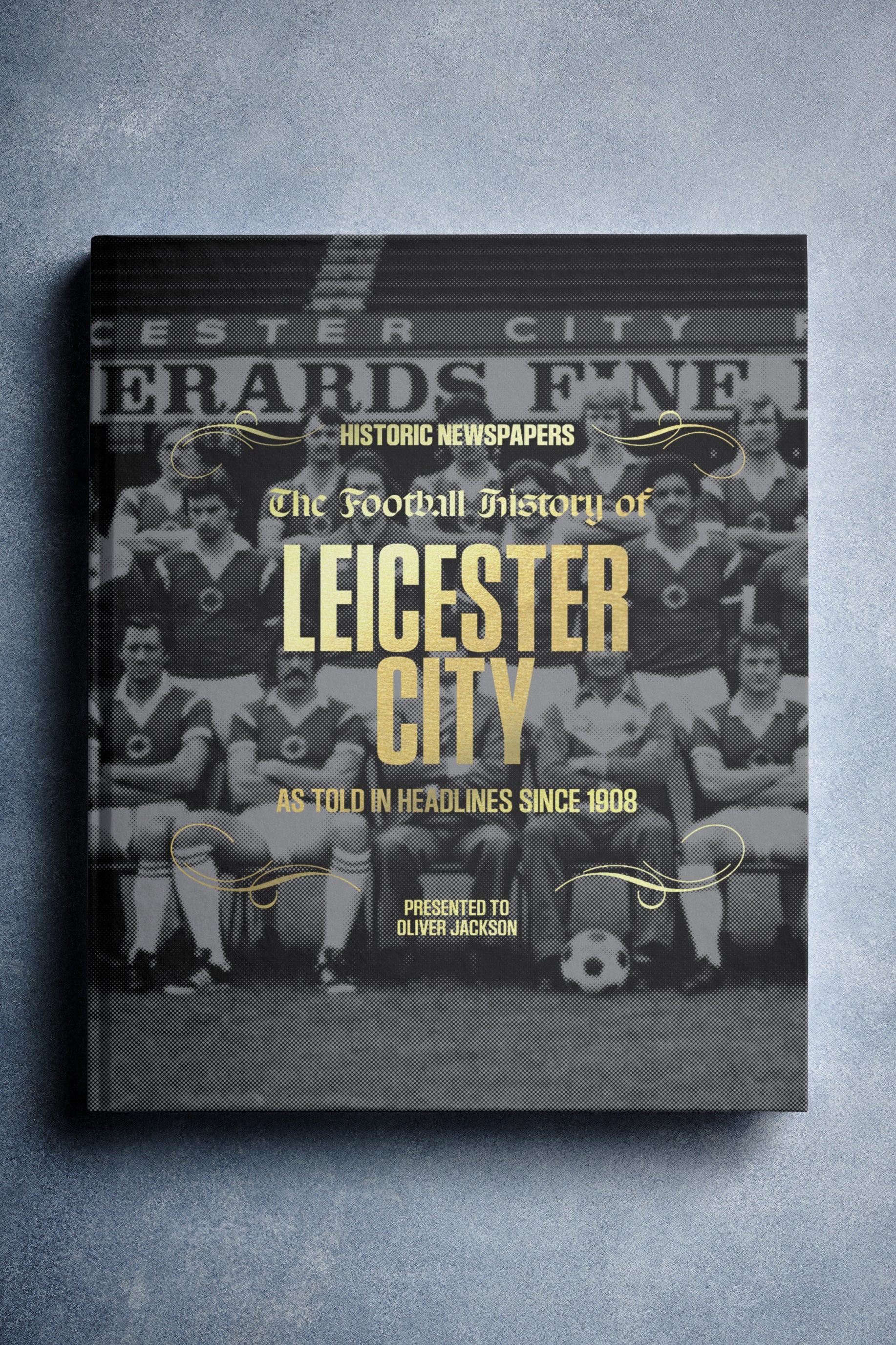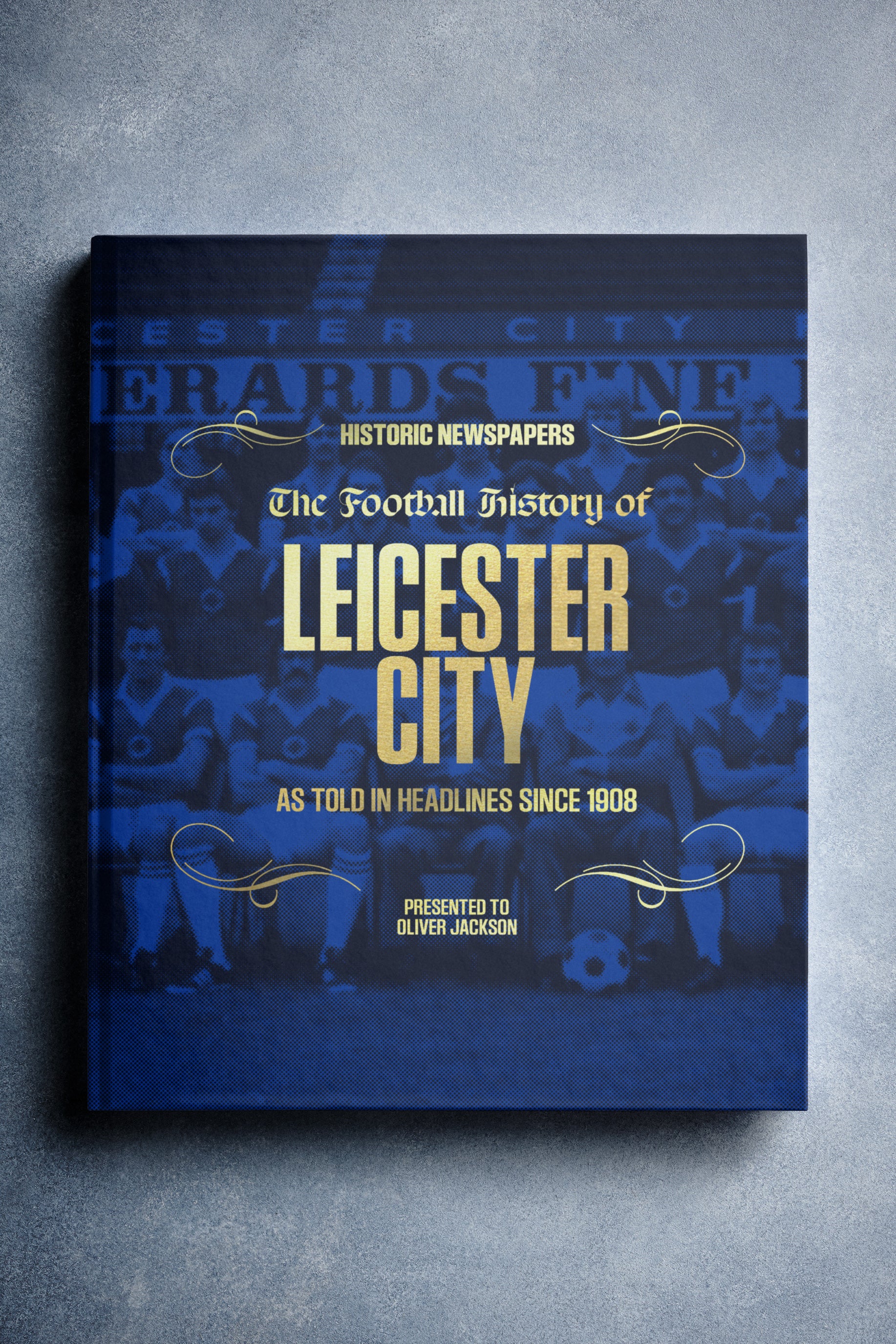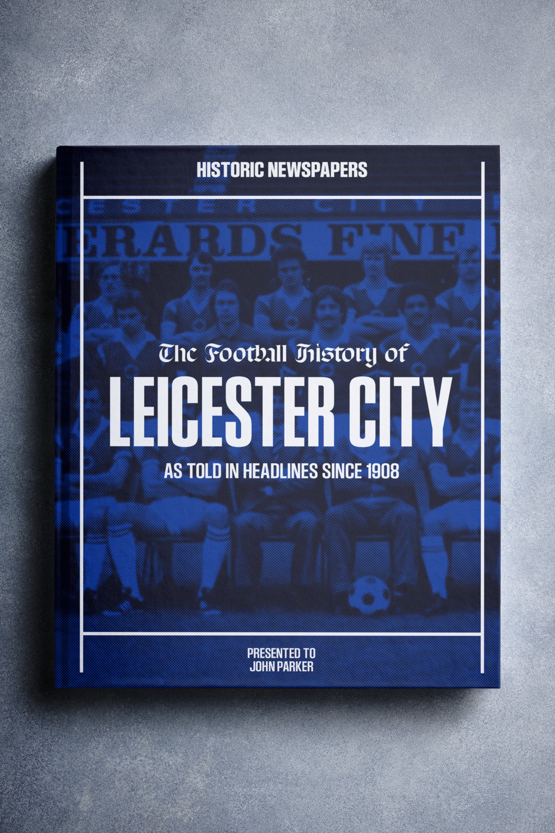 This personalised book features 140 pages of authentic newspaper football reports about Leicester City, from 1908 onwards. It comes with a choice of covers and the option to have the recipient’s name printed on the cover for free.