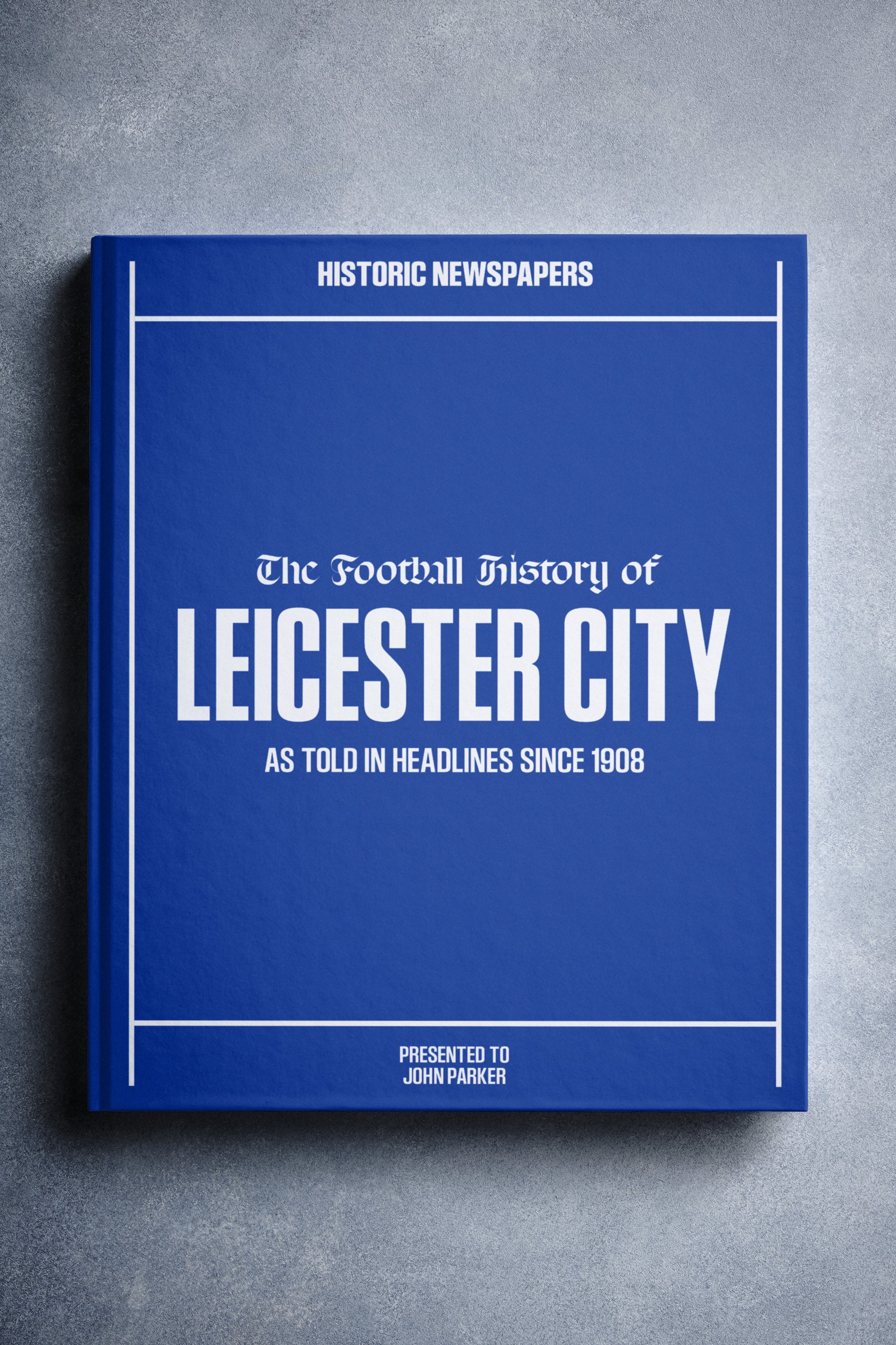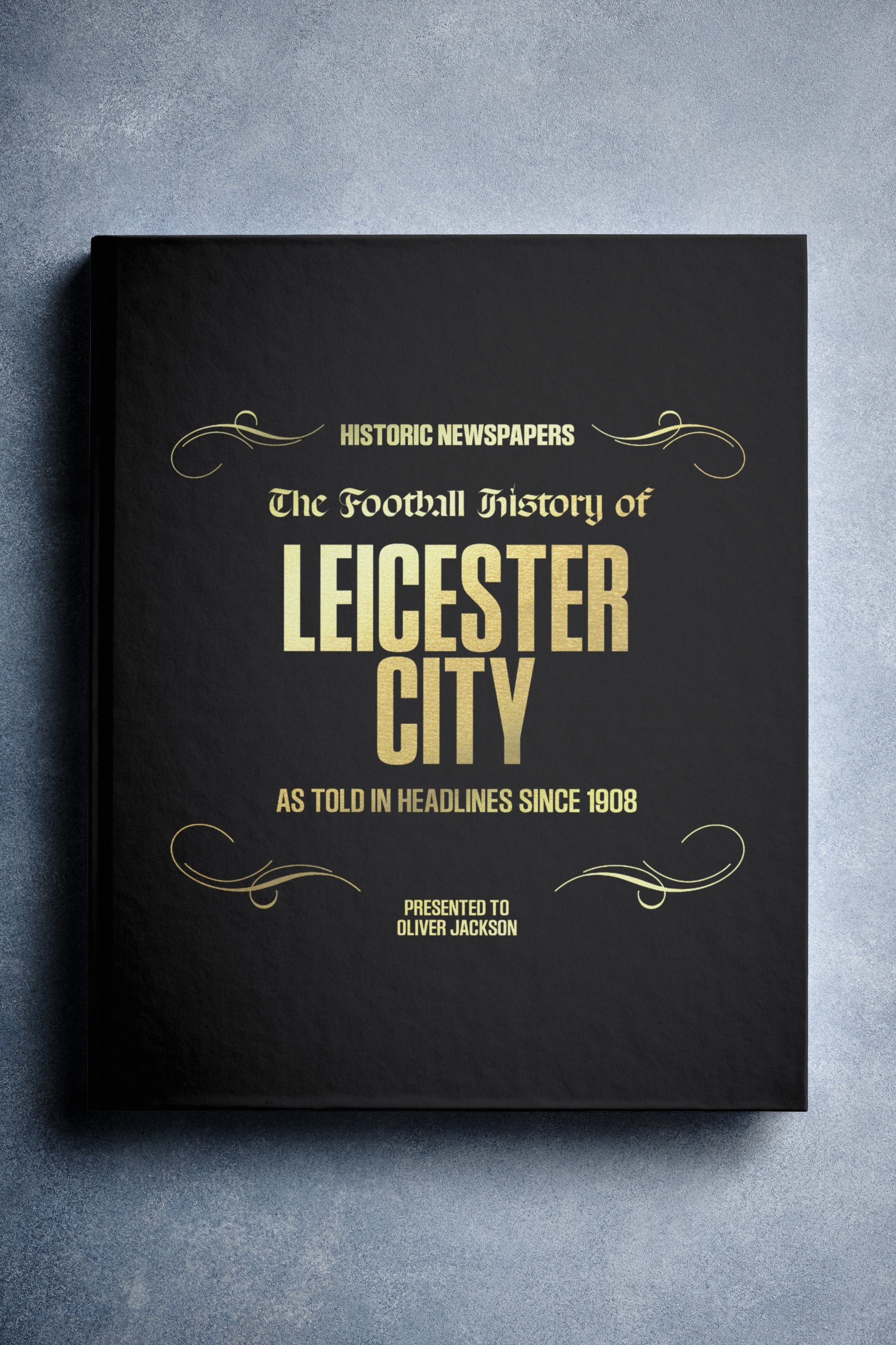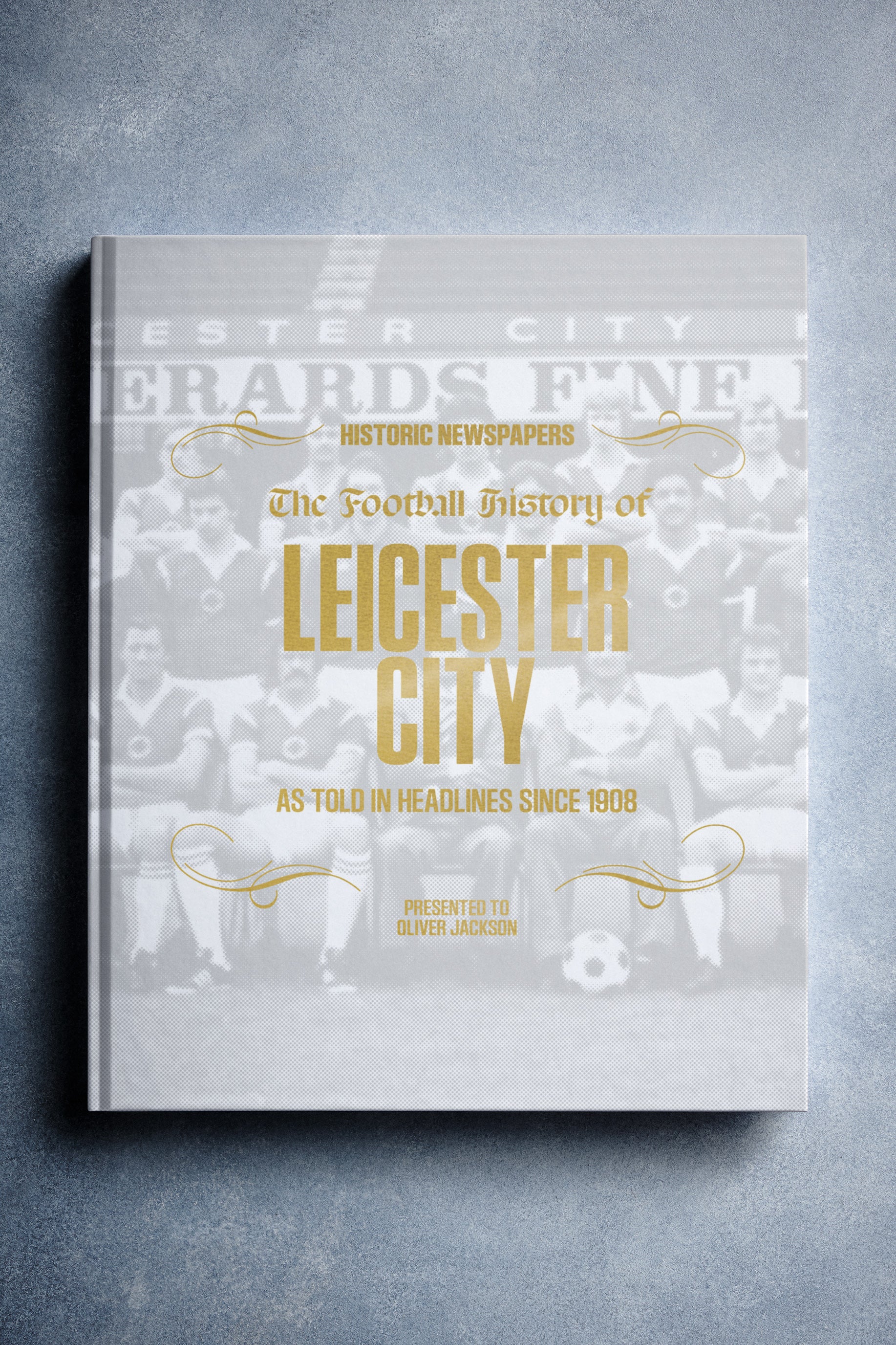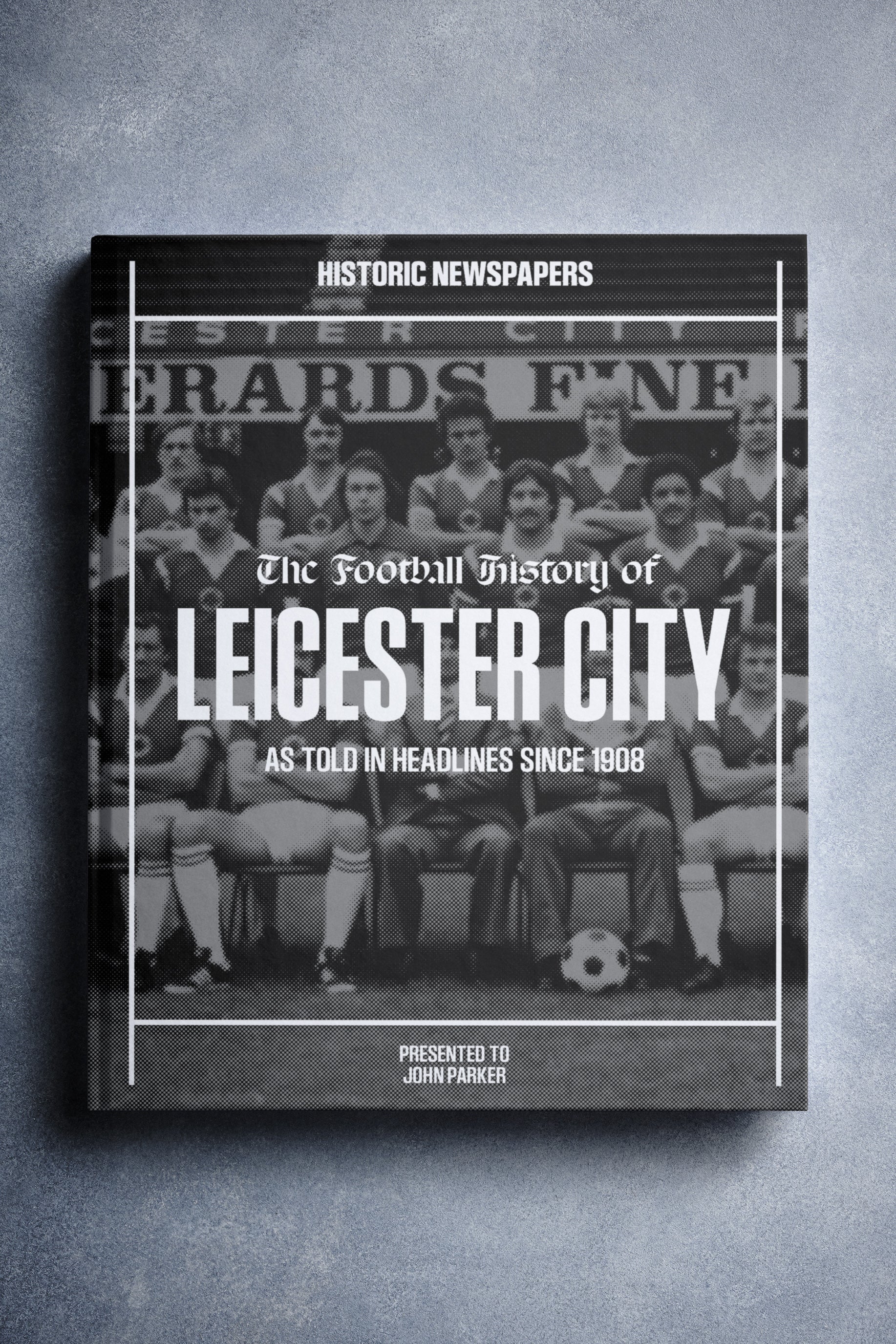 This personalised book features 140 pages of authentic newspaper football reports about Leicester City, from 1908 onwards. It comes with a choice of covers and the option to have the recipient’s name printed on the cover for free.