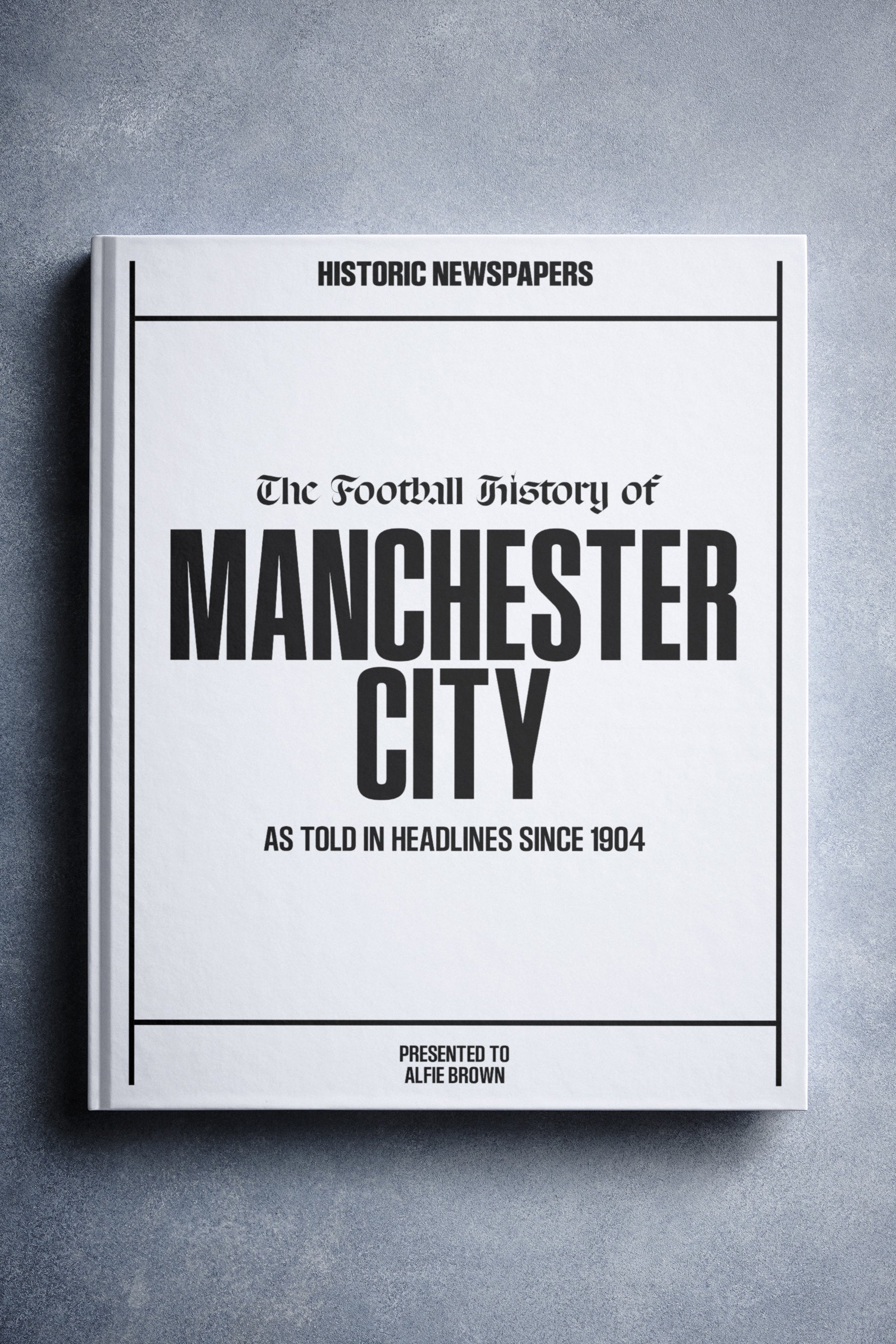 FOLLOW the story of Manchester City Football Club from 1919 onwards, told through original newspaper reports. Relive defining moments — from the 1969 FA Cup Final, to Agüero’s 94th-minute goal to win the 2012 Premier League, and the historic treble-winning 2022 – 23 season. Choose from a range of book covers and personalise your book with a name and message to create a lasting keepsake. A piece of City history to gift, share, and relive.
