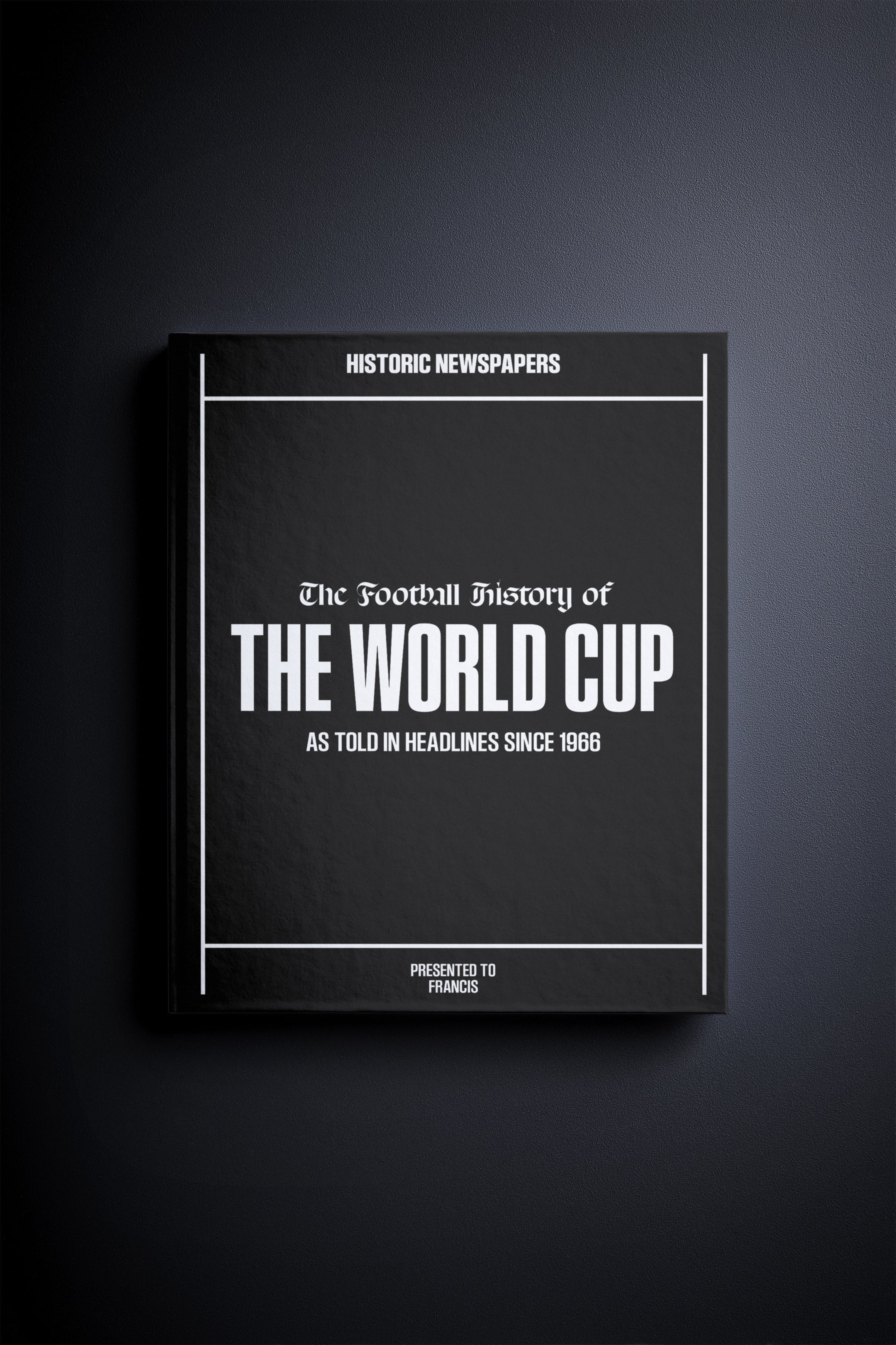 This personalised book features over 170 pages of authentic newspaper football reports about the World Cup, from 1966 onwards.It comes with a choice of covers and the option to have the recipient’s name printed on the cover for free.