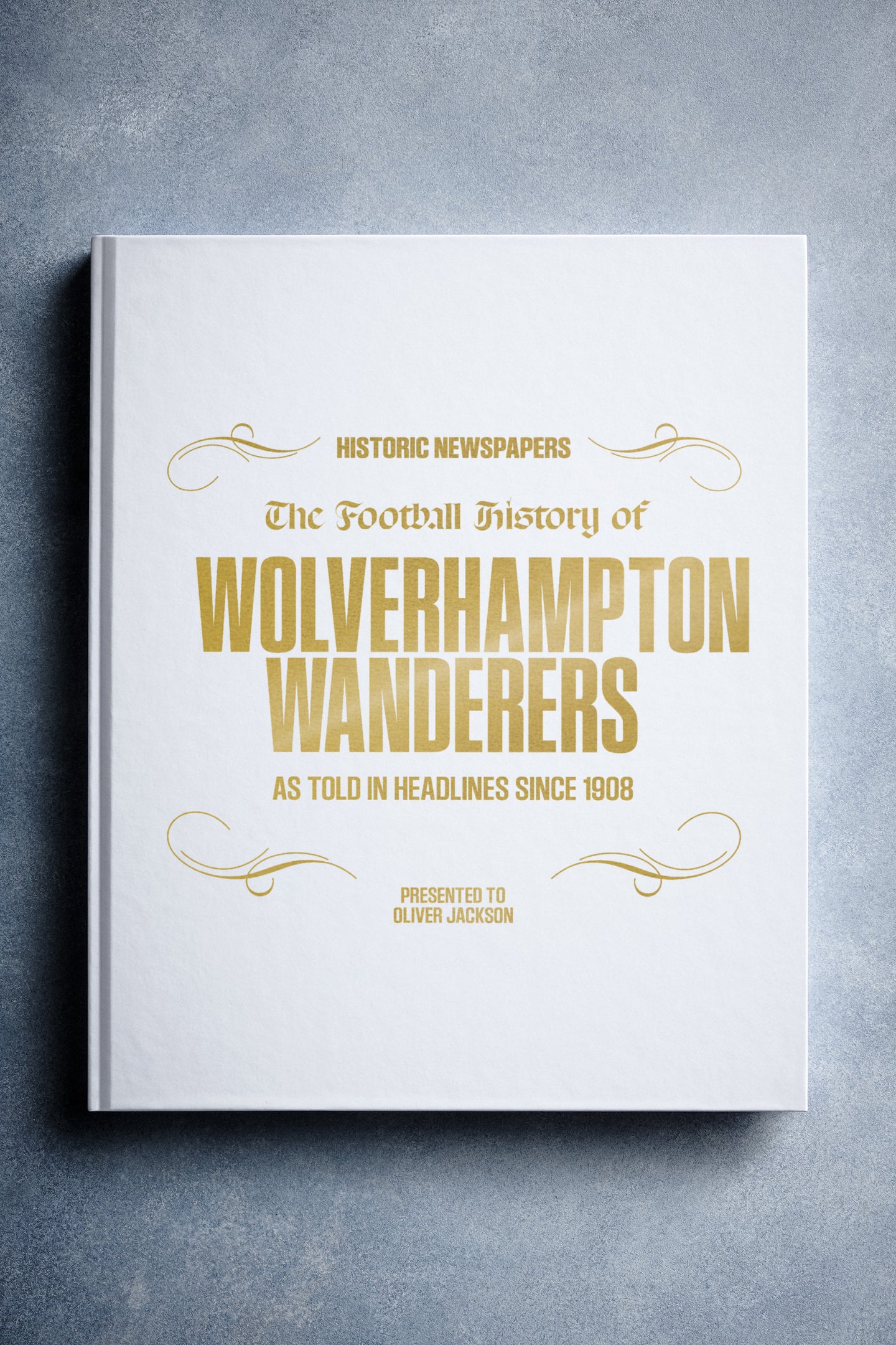 FOLLOW the story of Wolverhampton Wanderers Football Club from 1908 onwards, told through original newspaper reports. Relive historic moments — from the first league title in 1954 under Stan Cullis, to the floodlit friendlies against European giants, and the return to the Premier League in 2018. Choose from a range of book covers and personalise your book with a name and message to create a lasting keepsake. A piece of Wolves history to gift, share, and relive.